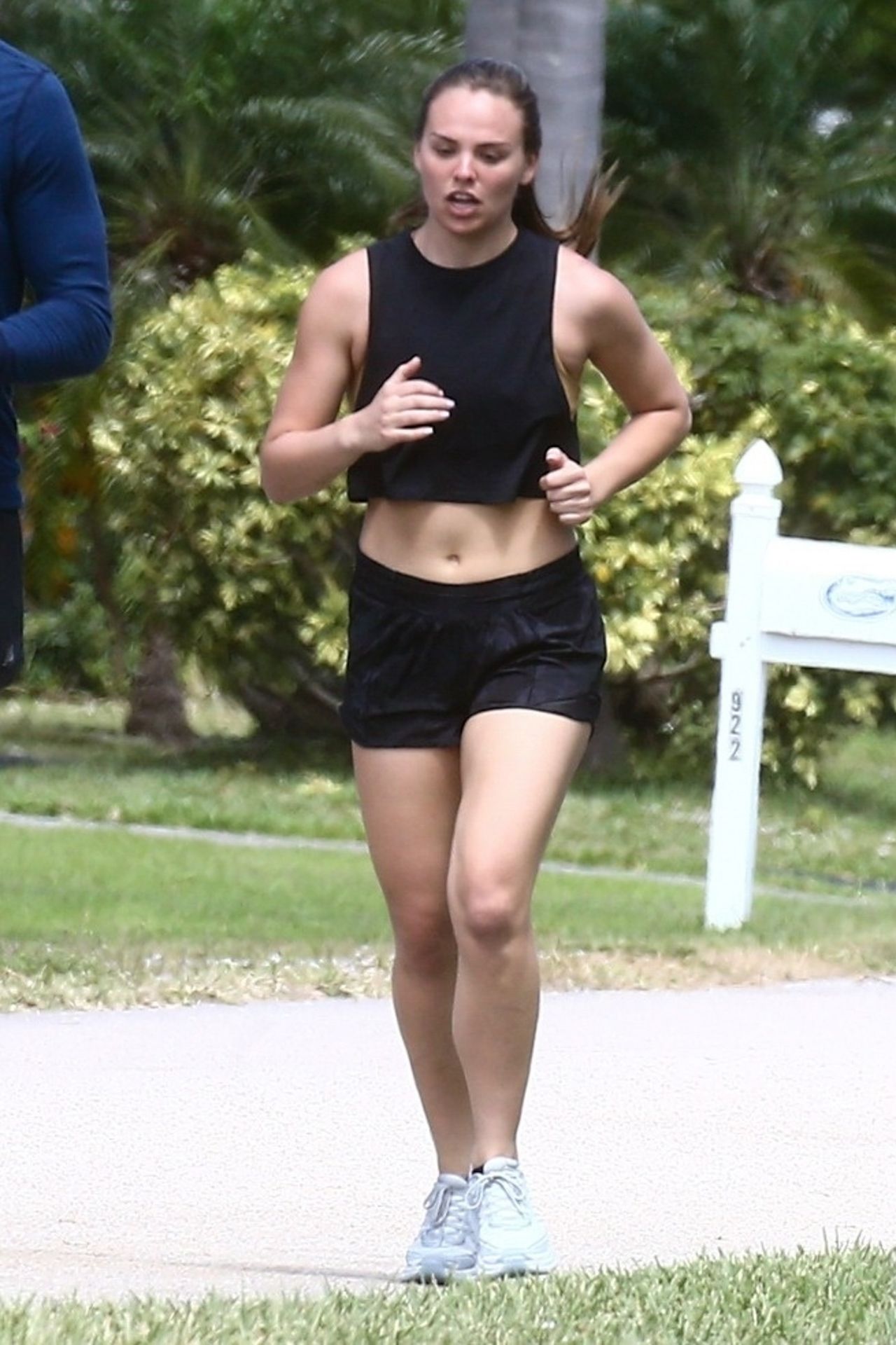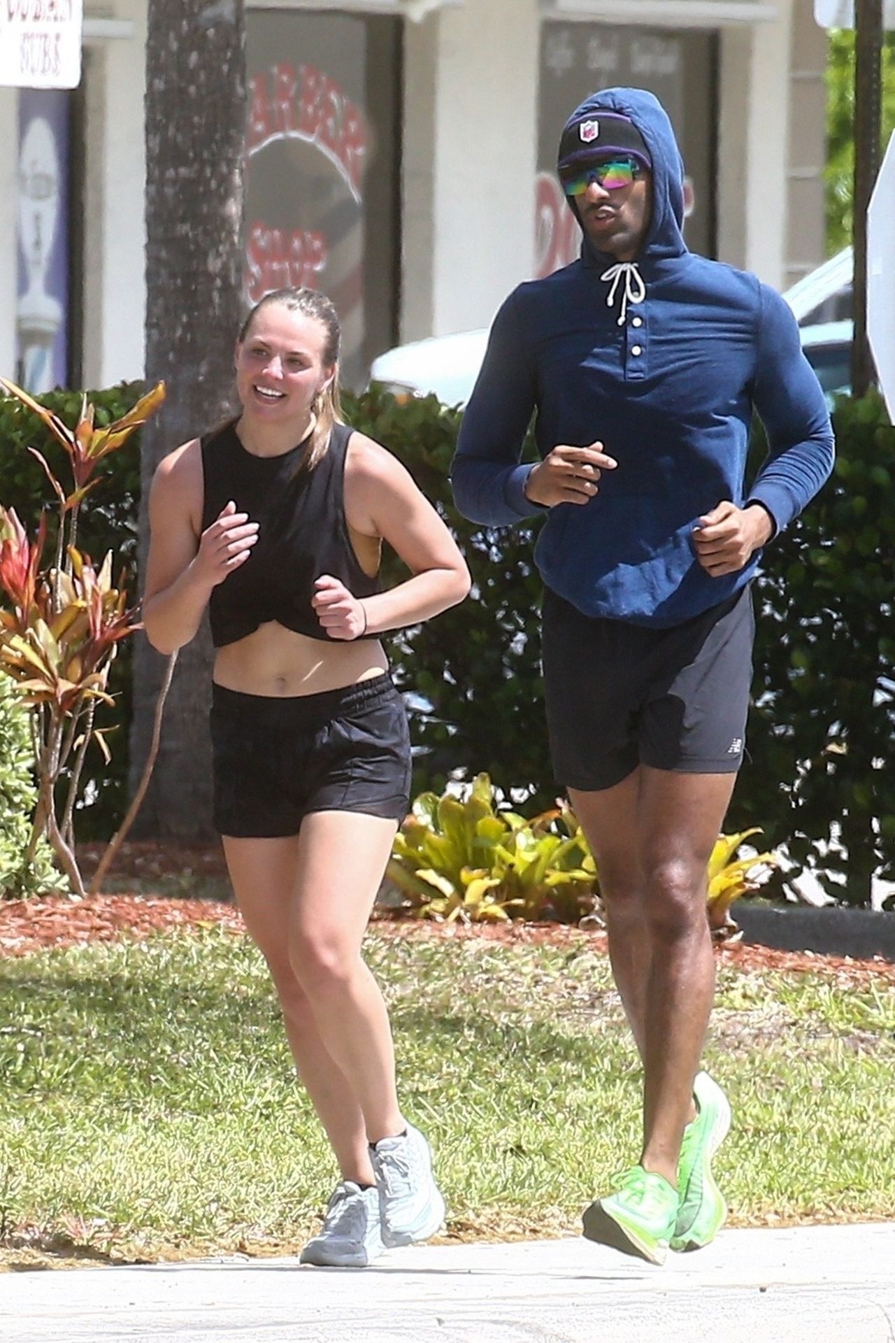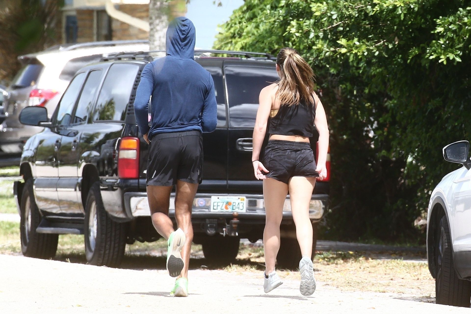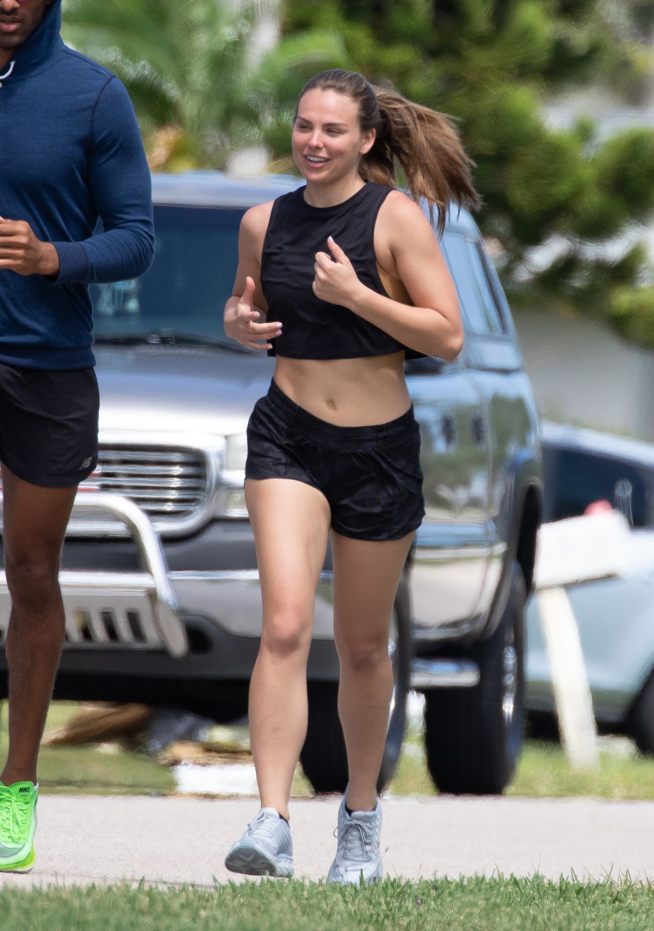 Hannah Brown Goes Jogging With Her Trainer During Self Quarantine In Florida 0006