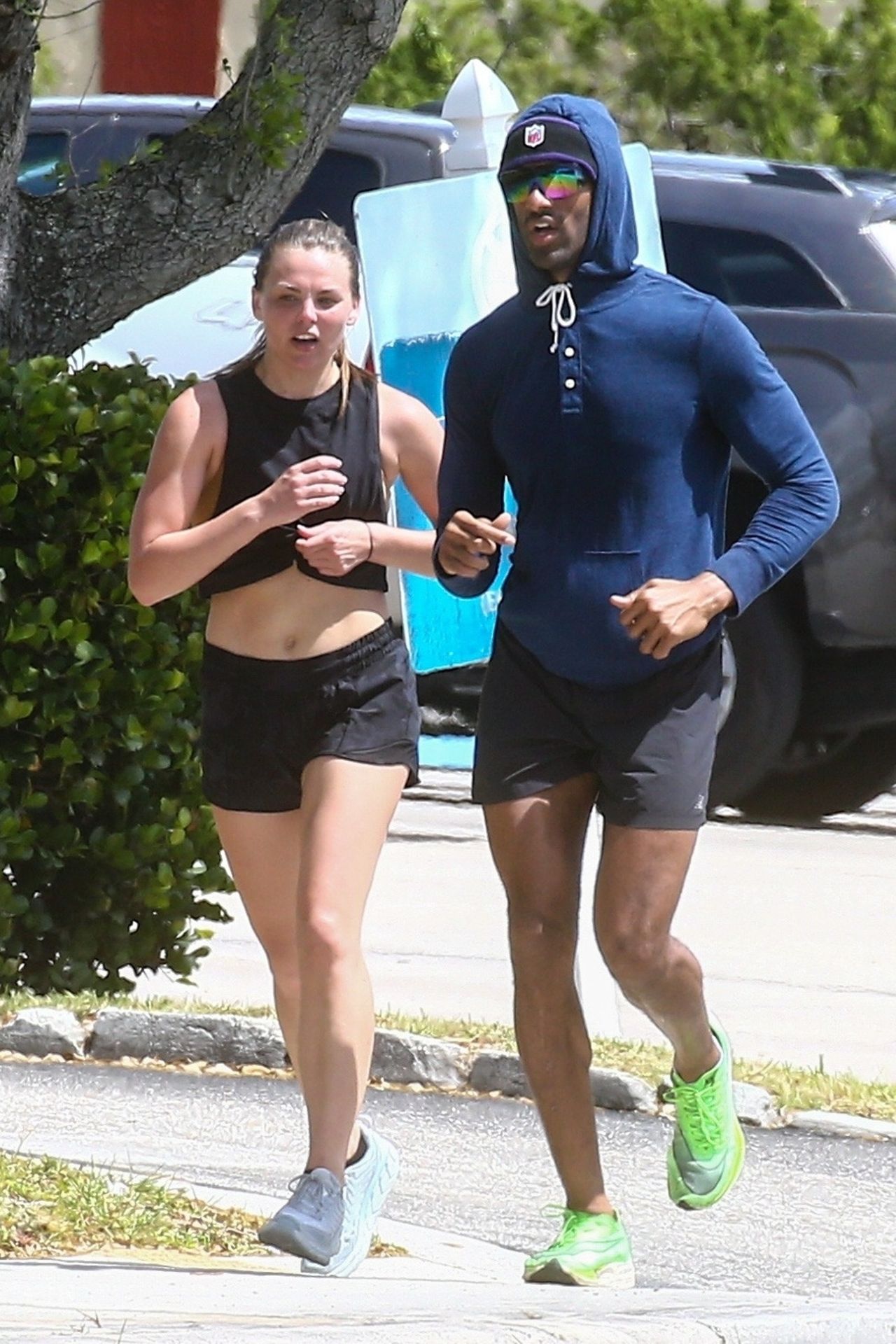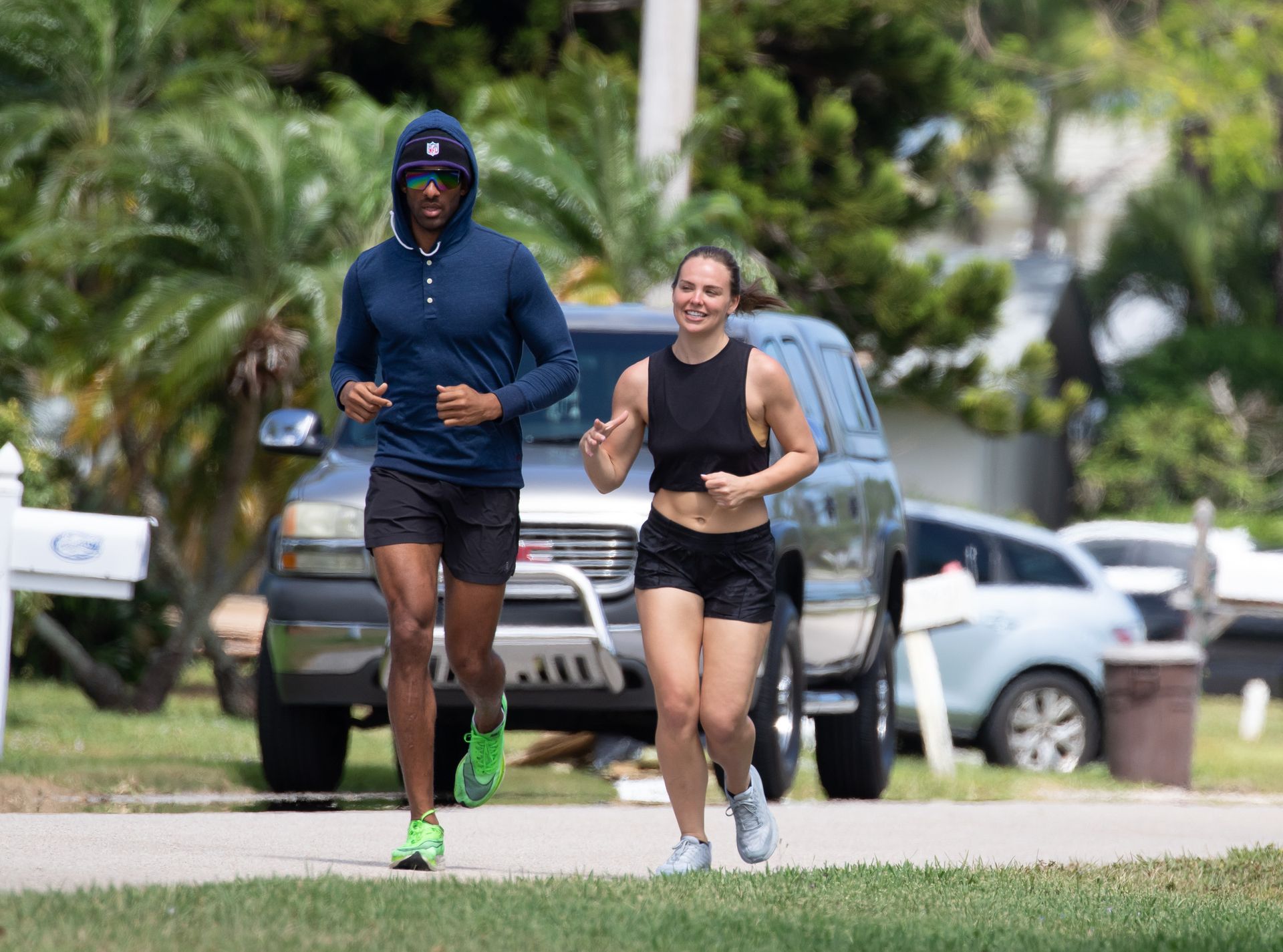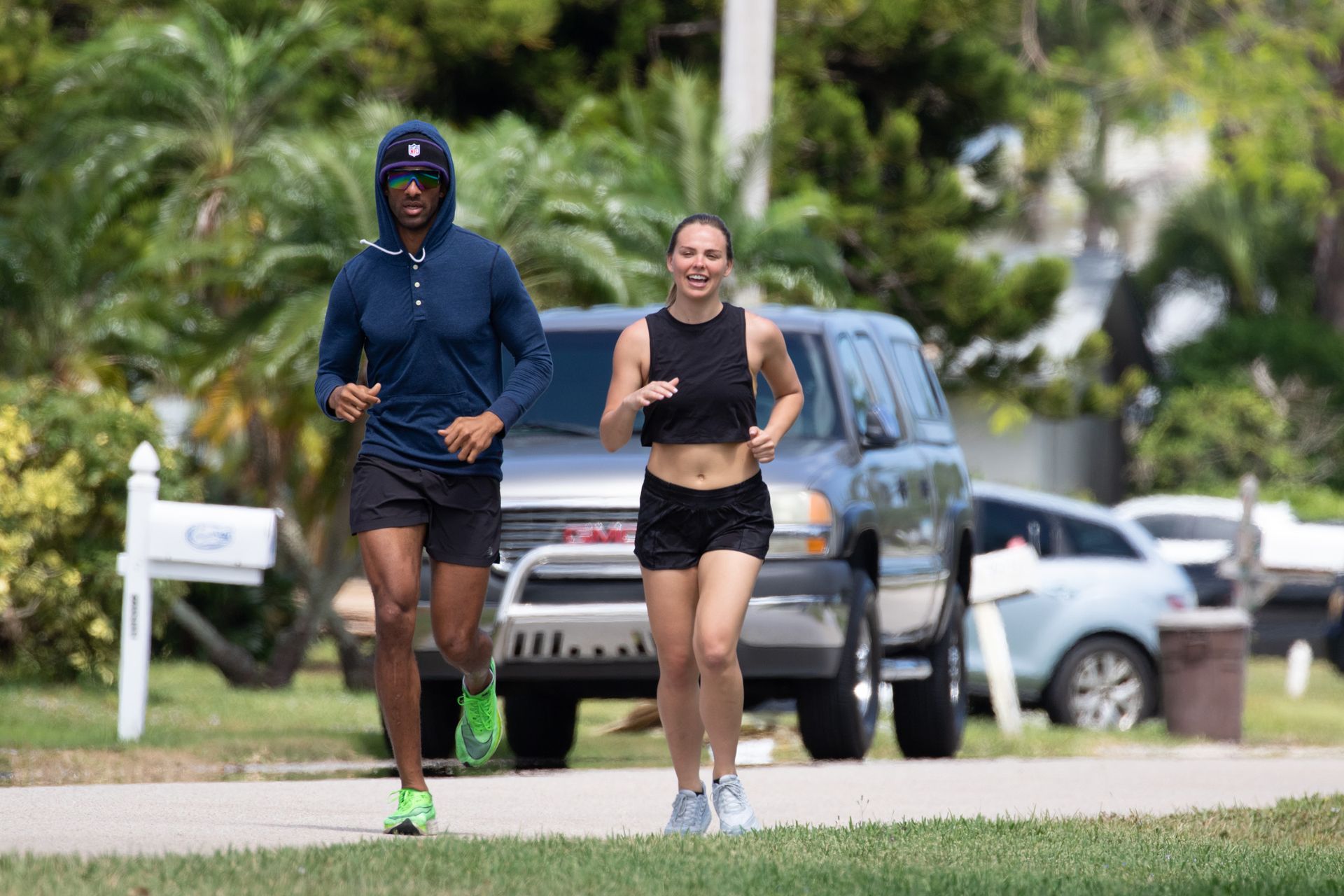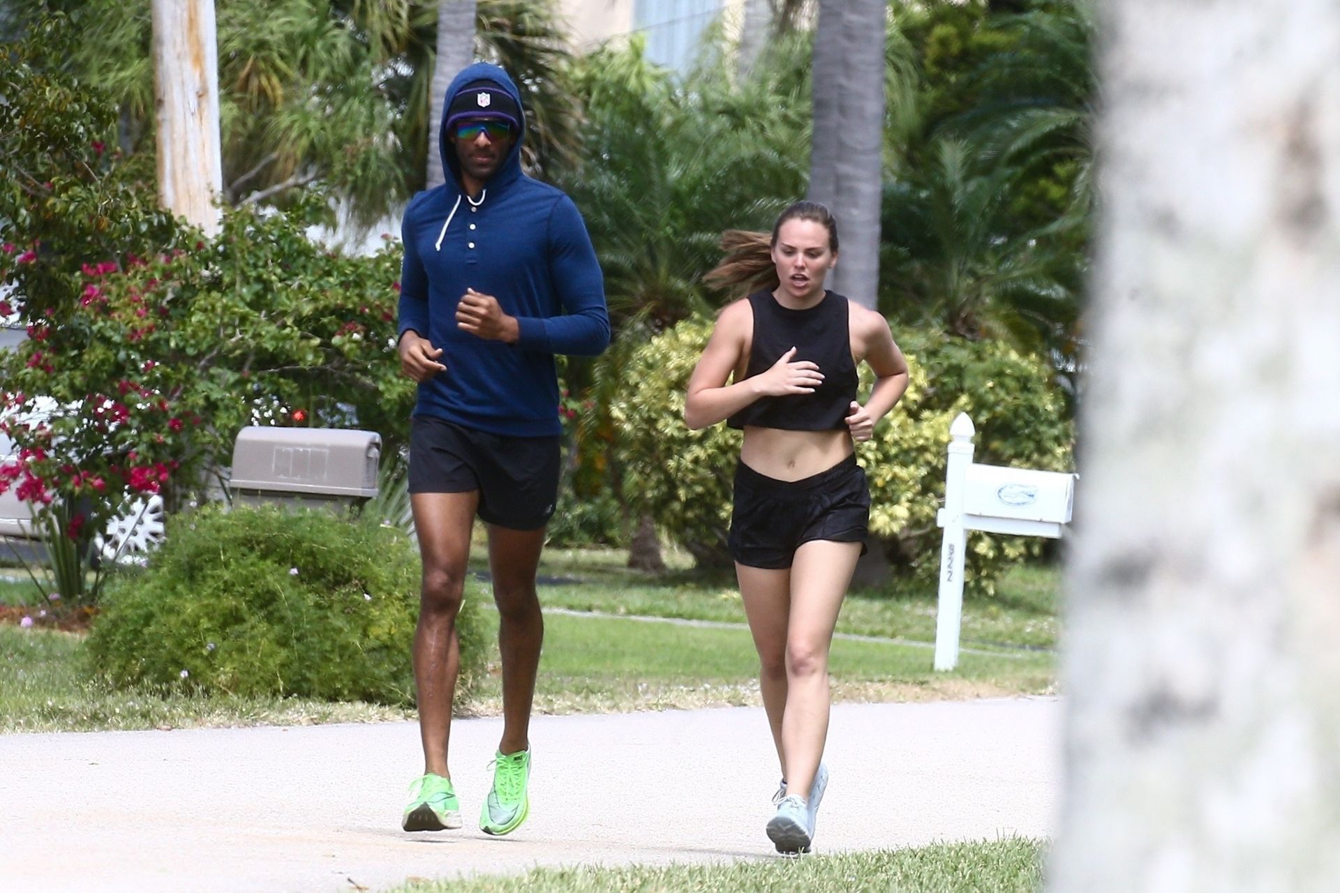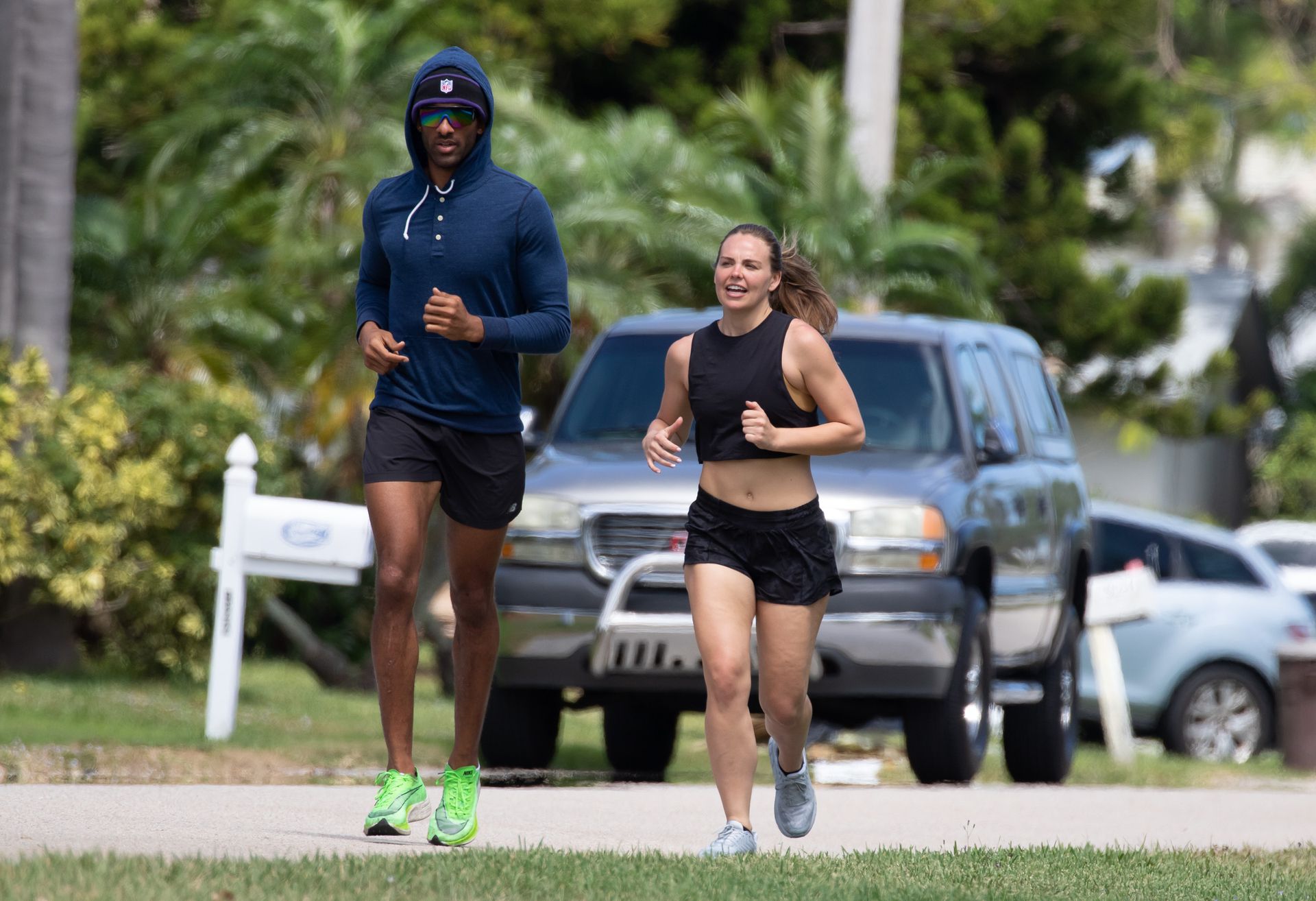 Hannah Brown Goes Jogging With Her Trainer During Self Quarantine In Florida 0006