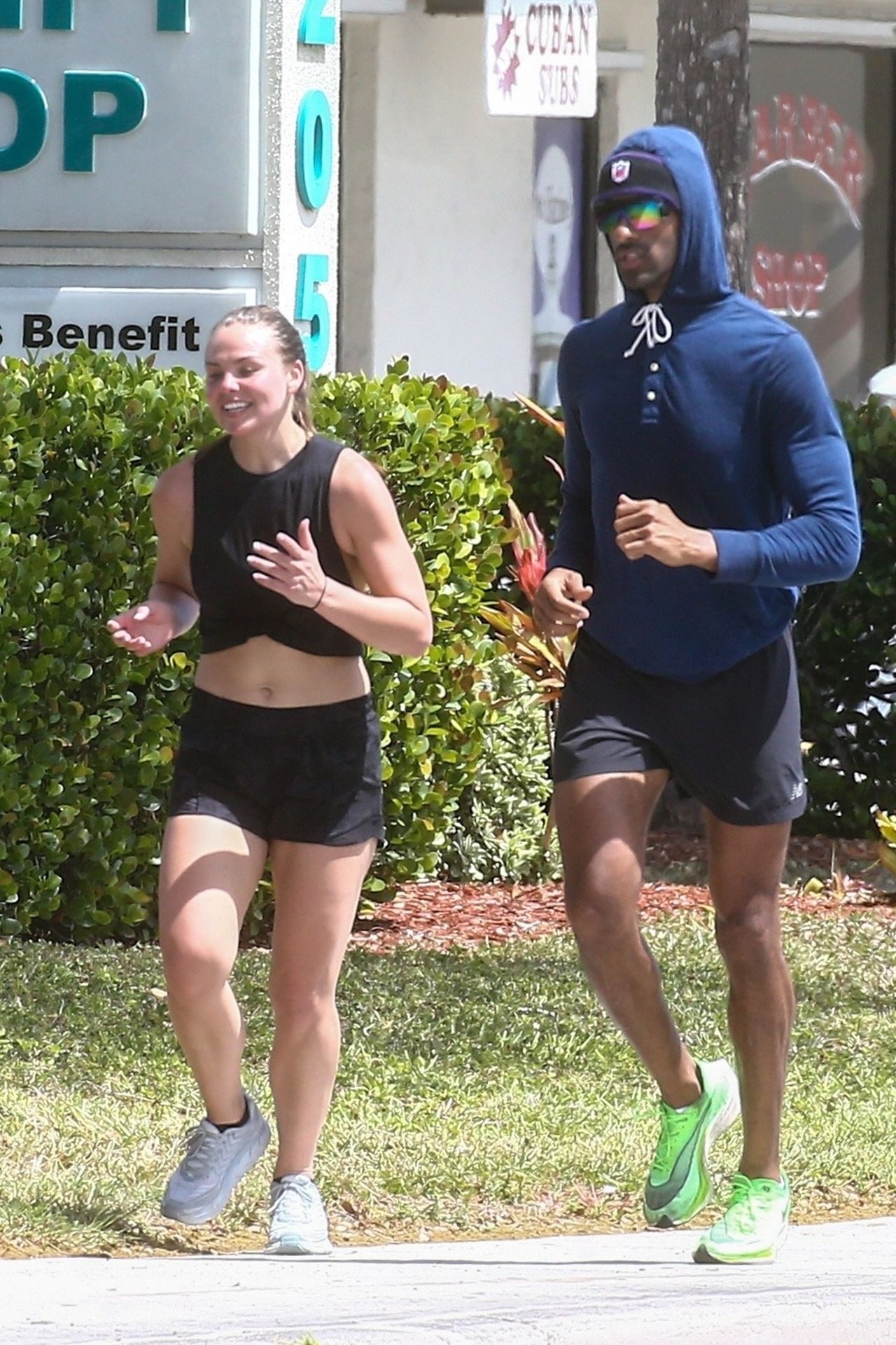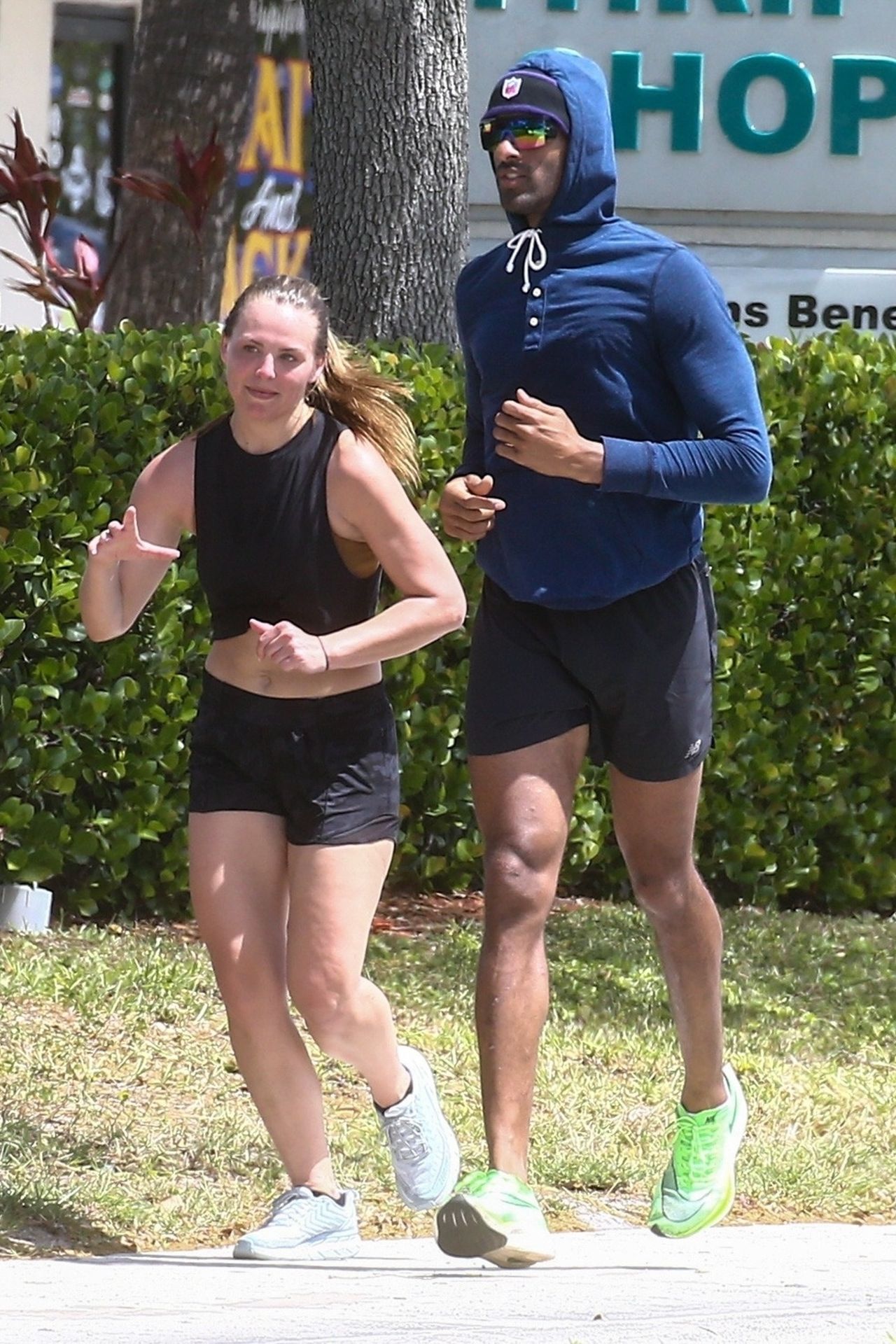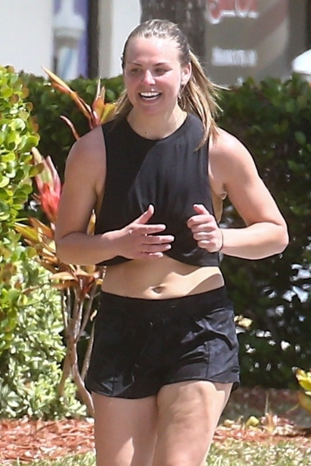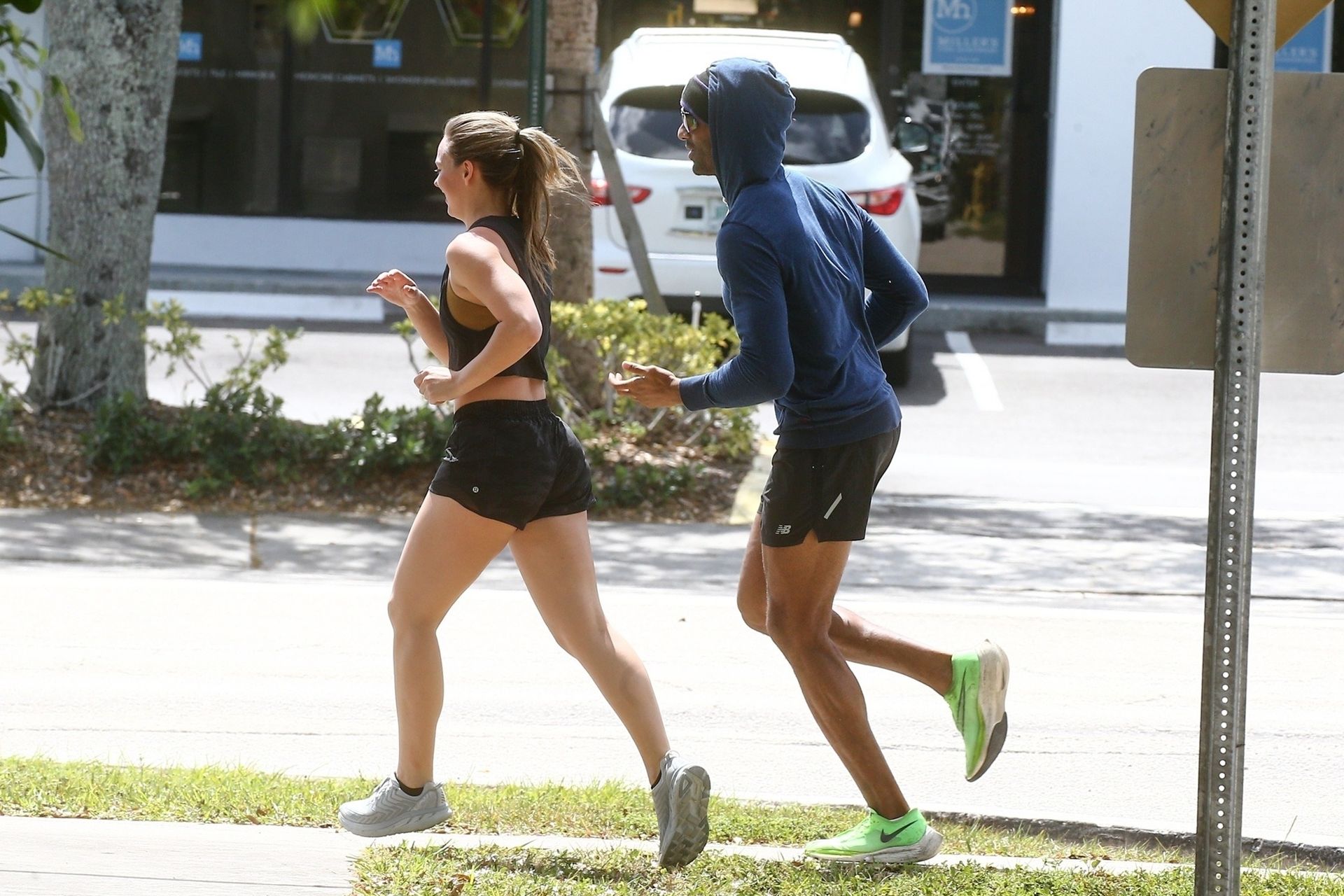 Hannah Brown Goes Jogging With Her Trainer During Self Quarantine In Florida 0006
