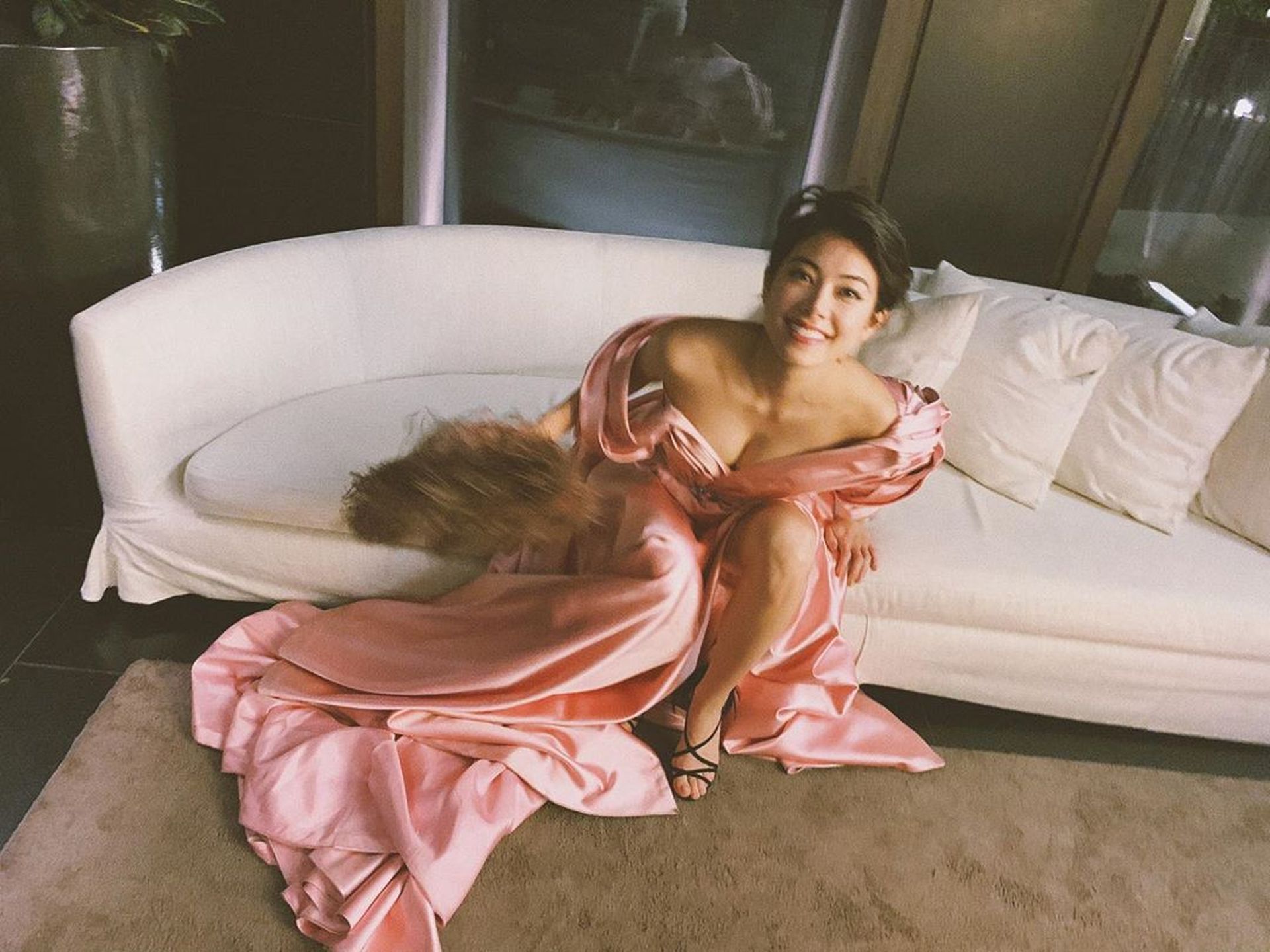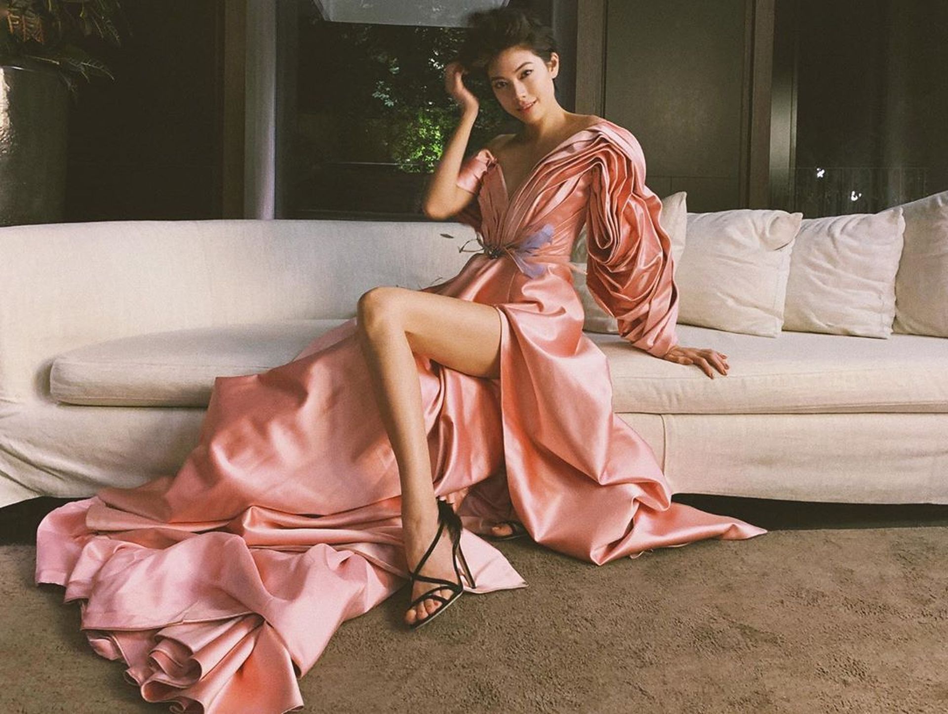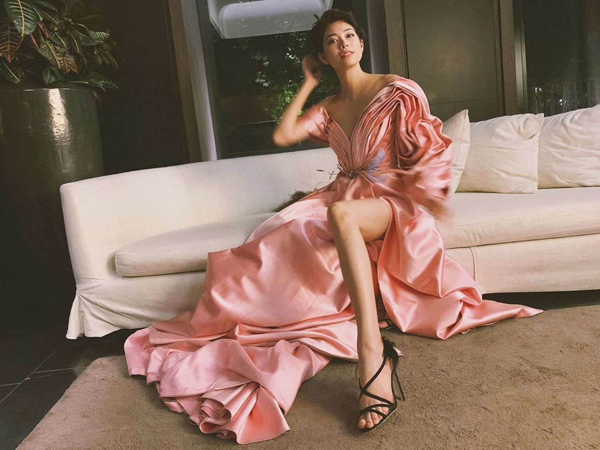 Hikari Mori (27) attends the amfAR Gala Milano 2019 at Palazzo Mezzanotte in Milan, Italy, 09/22/2019. The Japanese actress and model flaunts her stunning figure, wearing a pink dress.