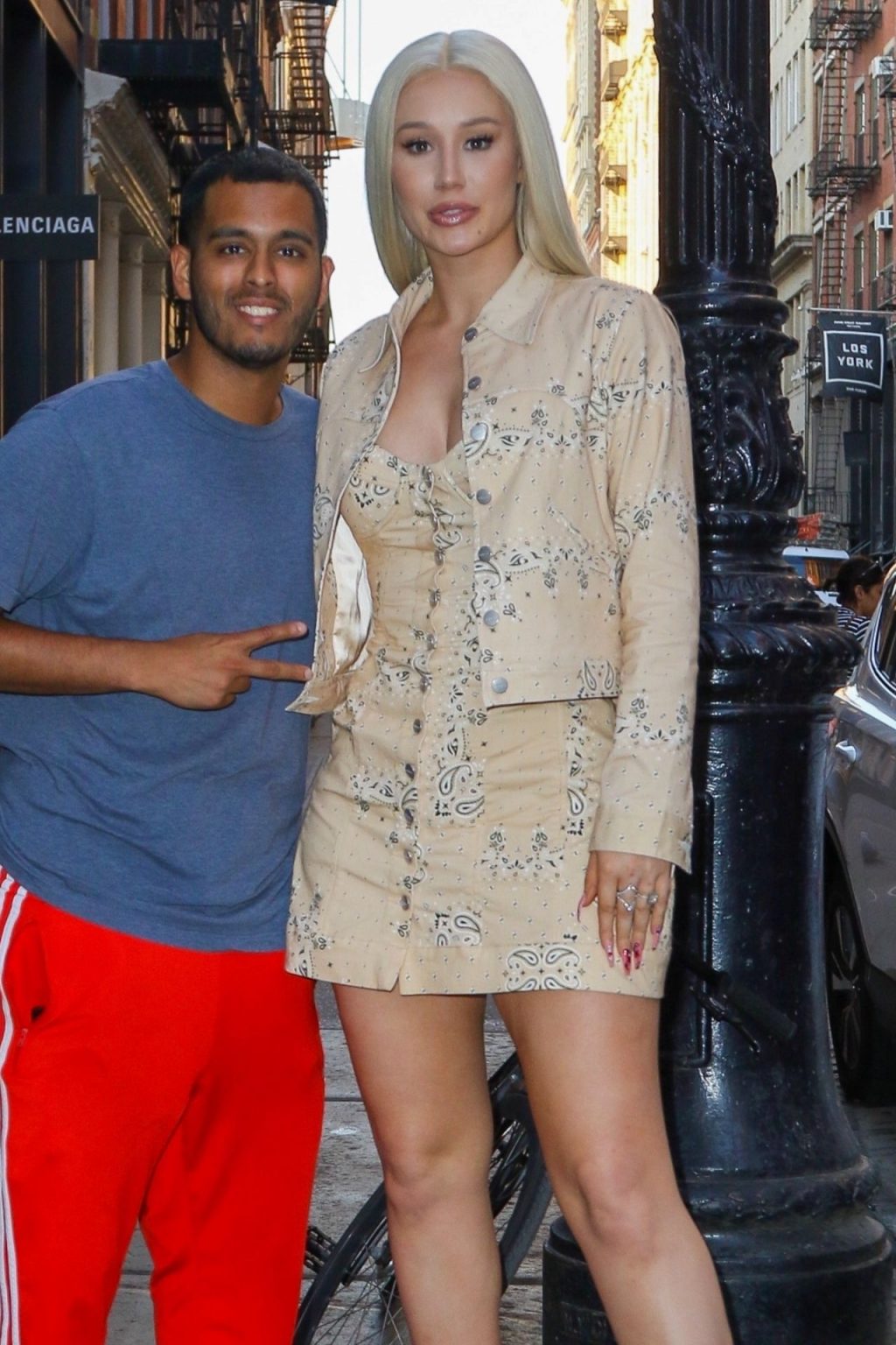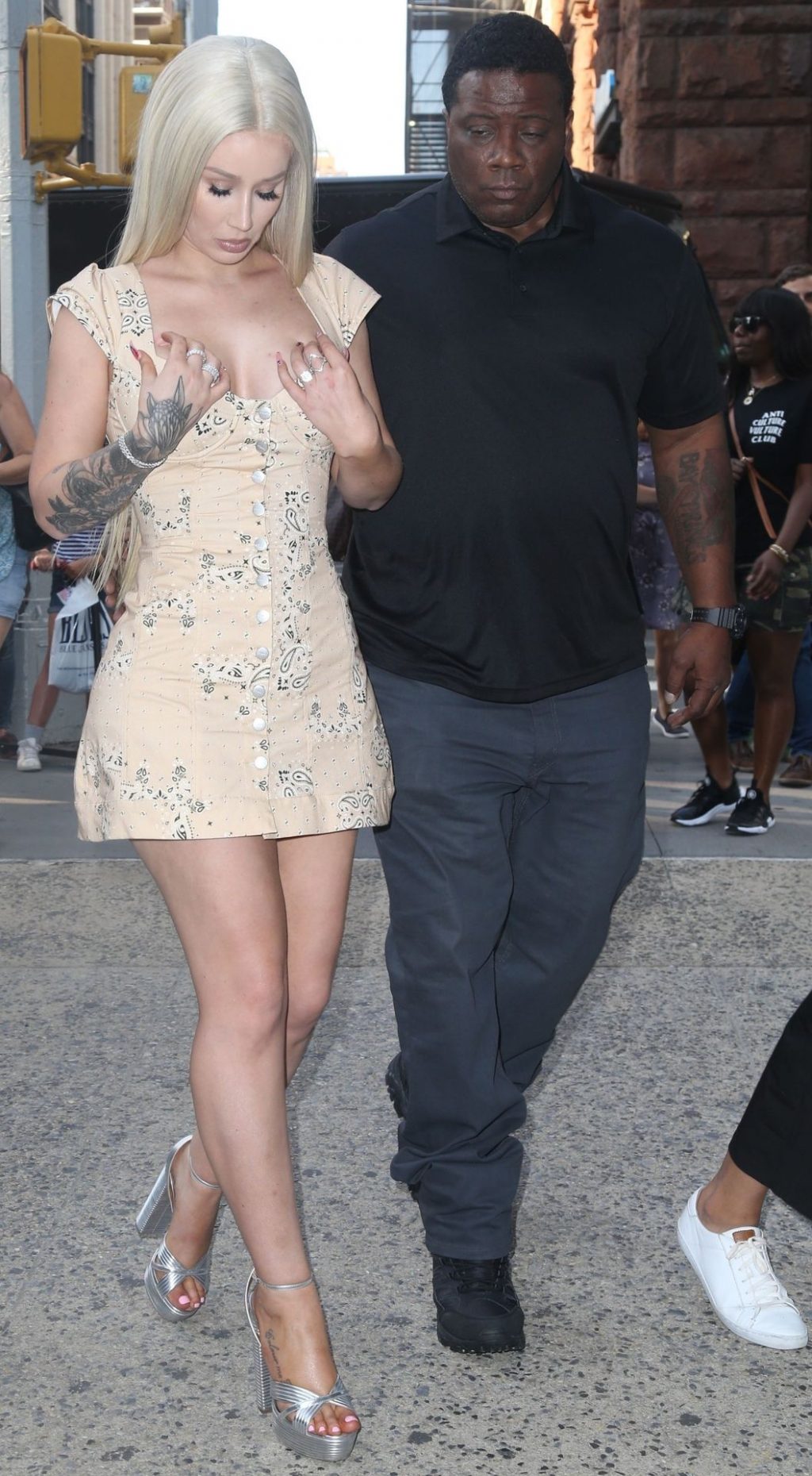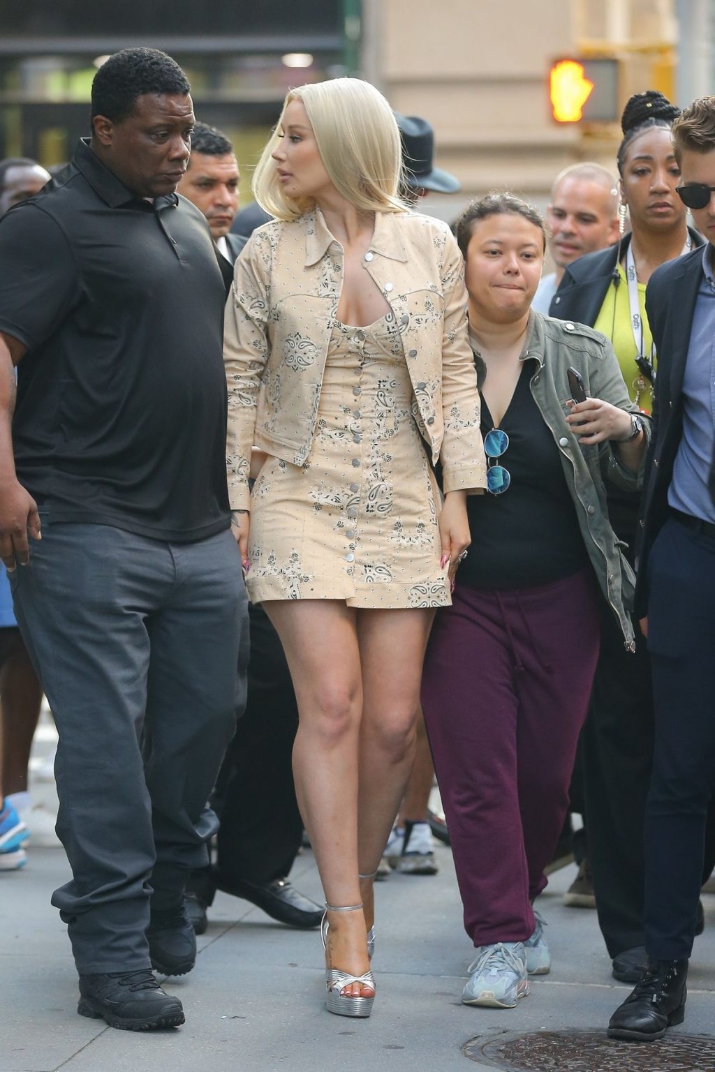 Rapper Iggy Azalea looks sexy in a mini-floral print dress as she steps out in New York City for a press run promoting her new project at Build Series, 07/25/2019.