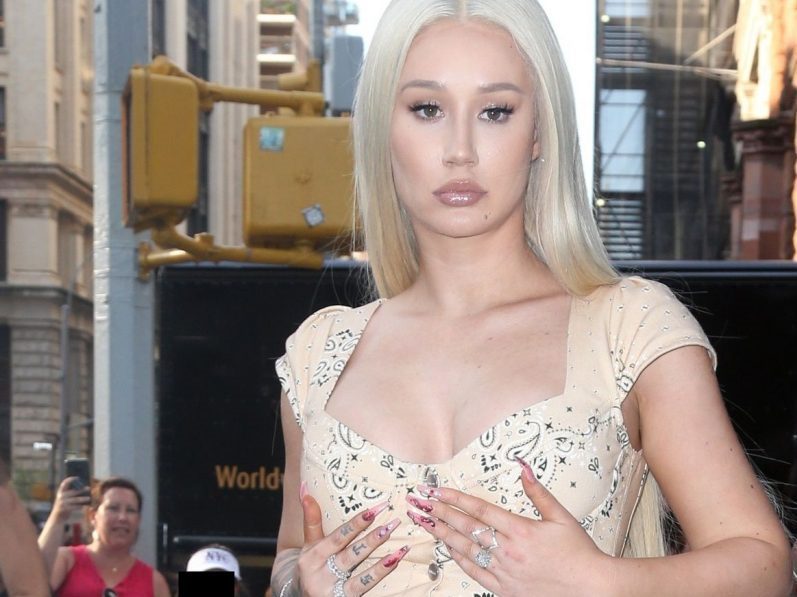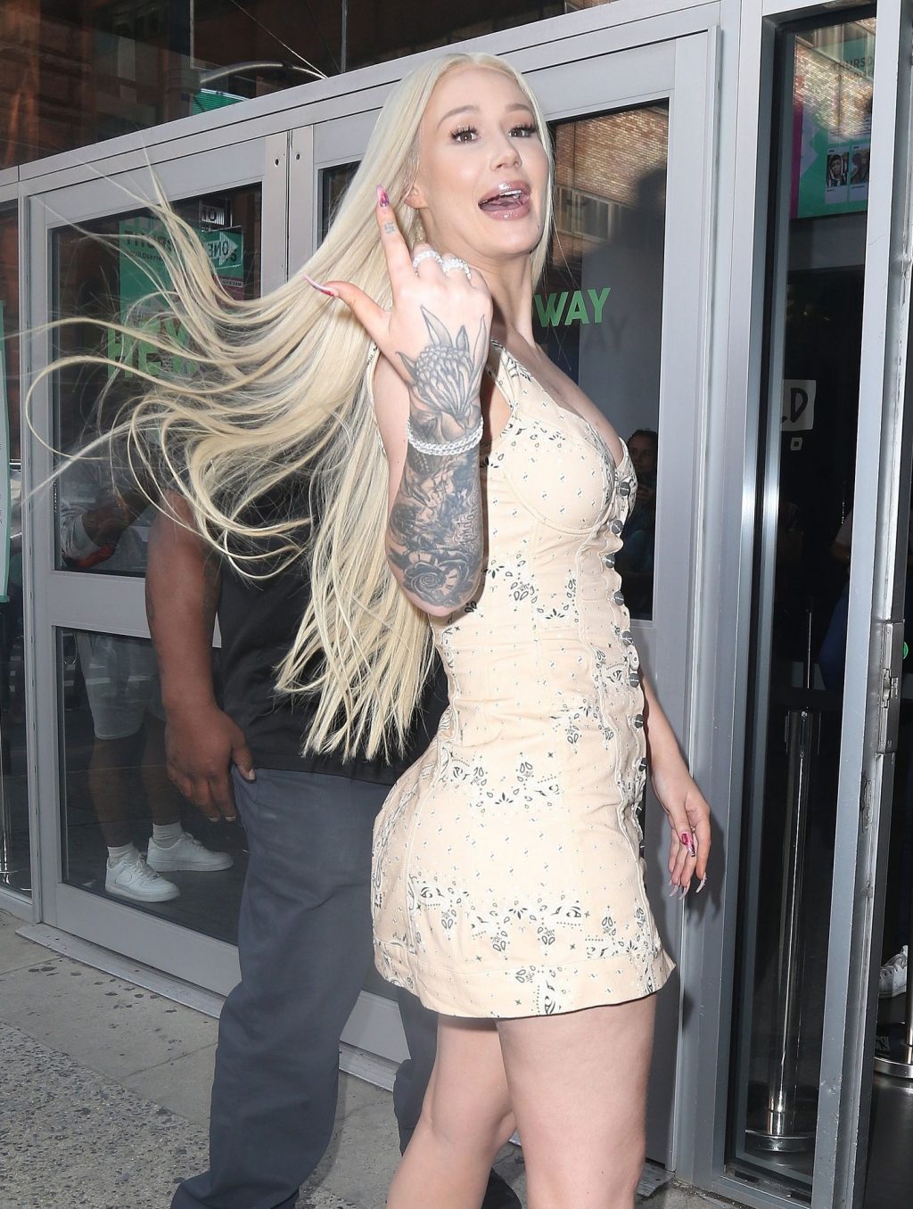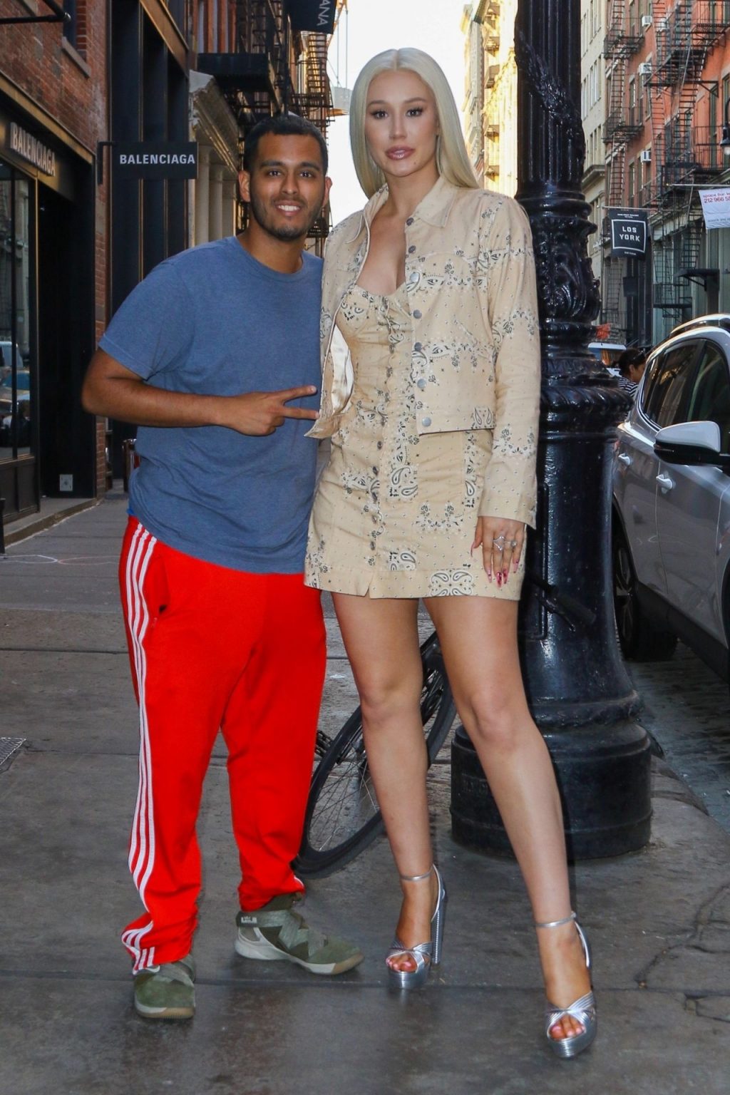 Rapper Iggy Azalea looks sexy in a mini-floral print dress as she steps out in New York City for a press run promoting her new project at Build Series, 07/25/2019.