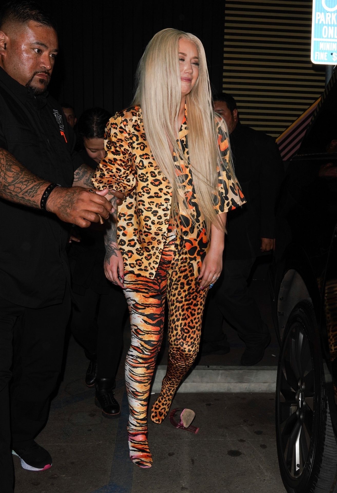Australian rapper Iggy Azalea suffers a wardrobe malfunction and breaks her shoe leaving Nightingale Nightclub in West Hollywood. The sassy Aussie kept it cool and handled the situation with grace as she walked with one foot bare to the car. Fuck it up, sis!