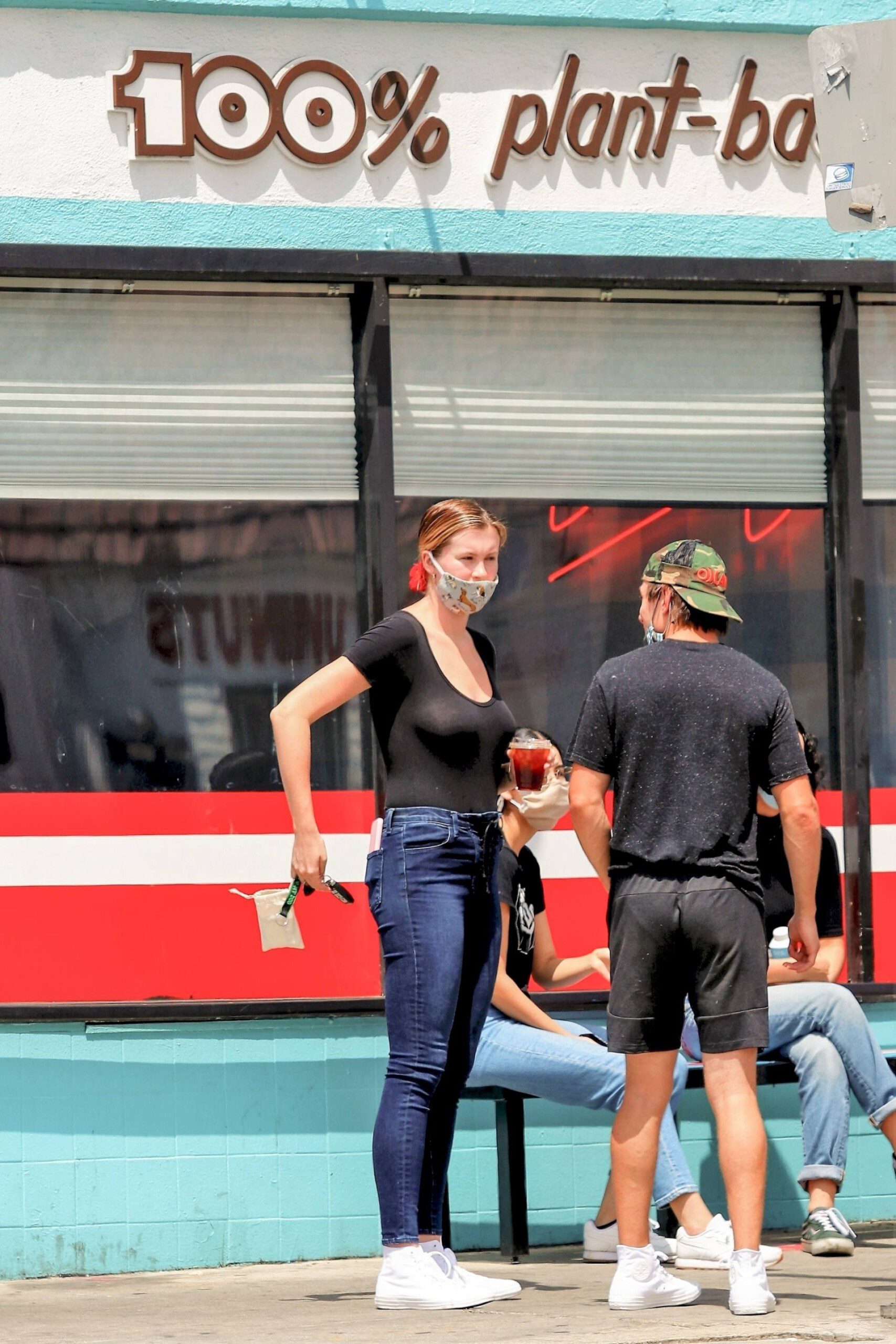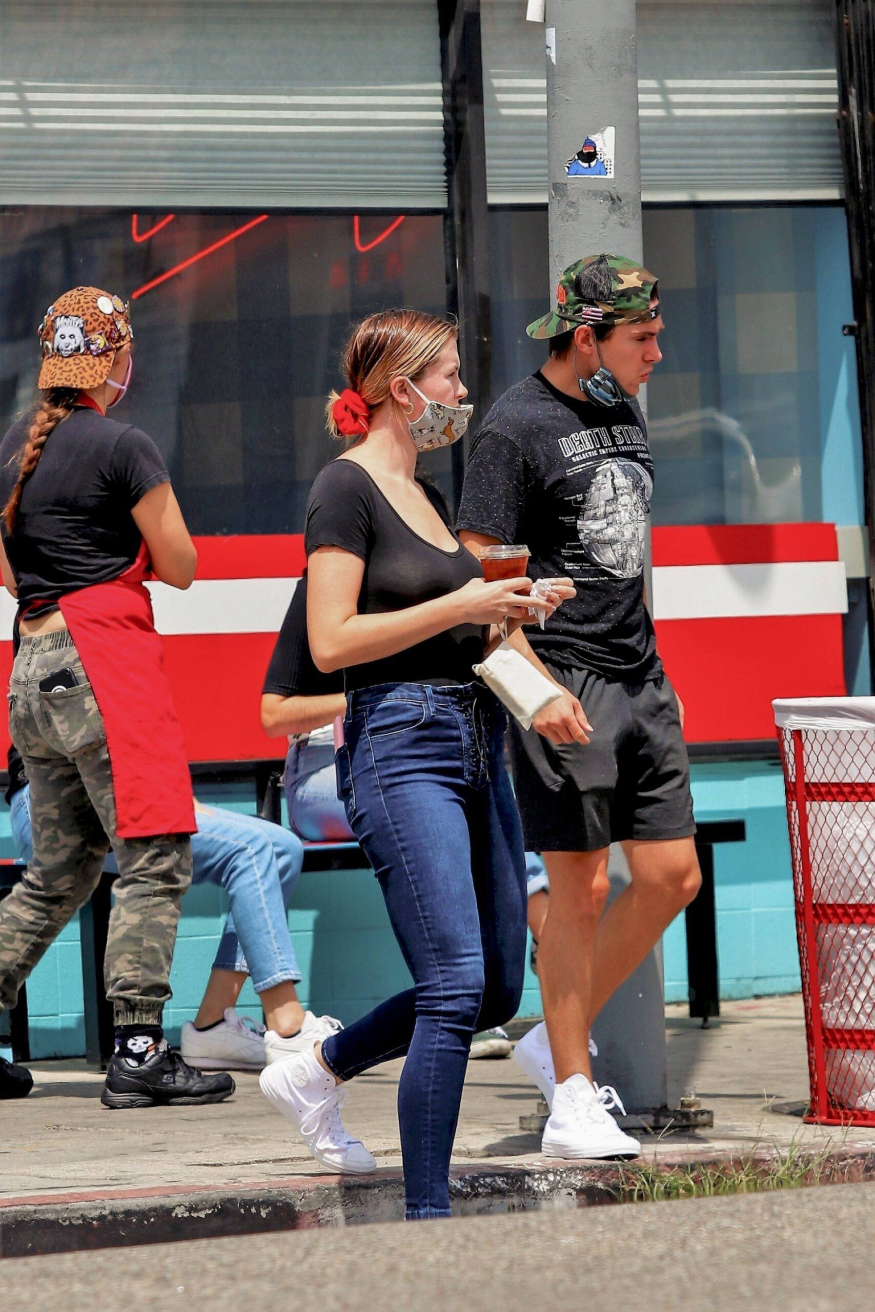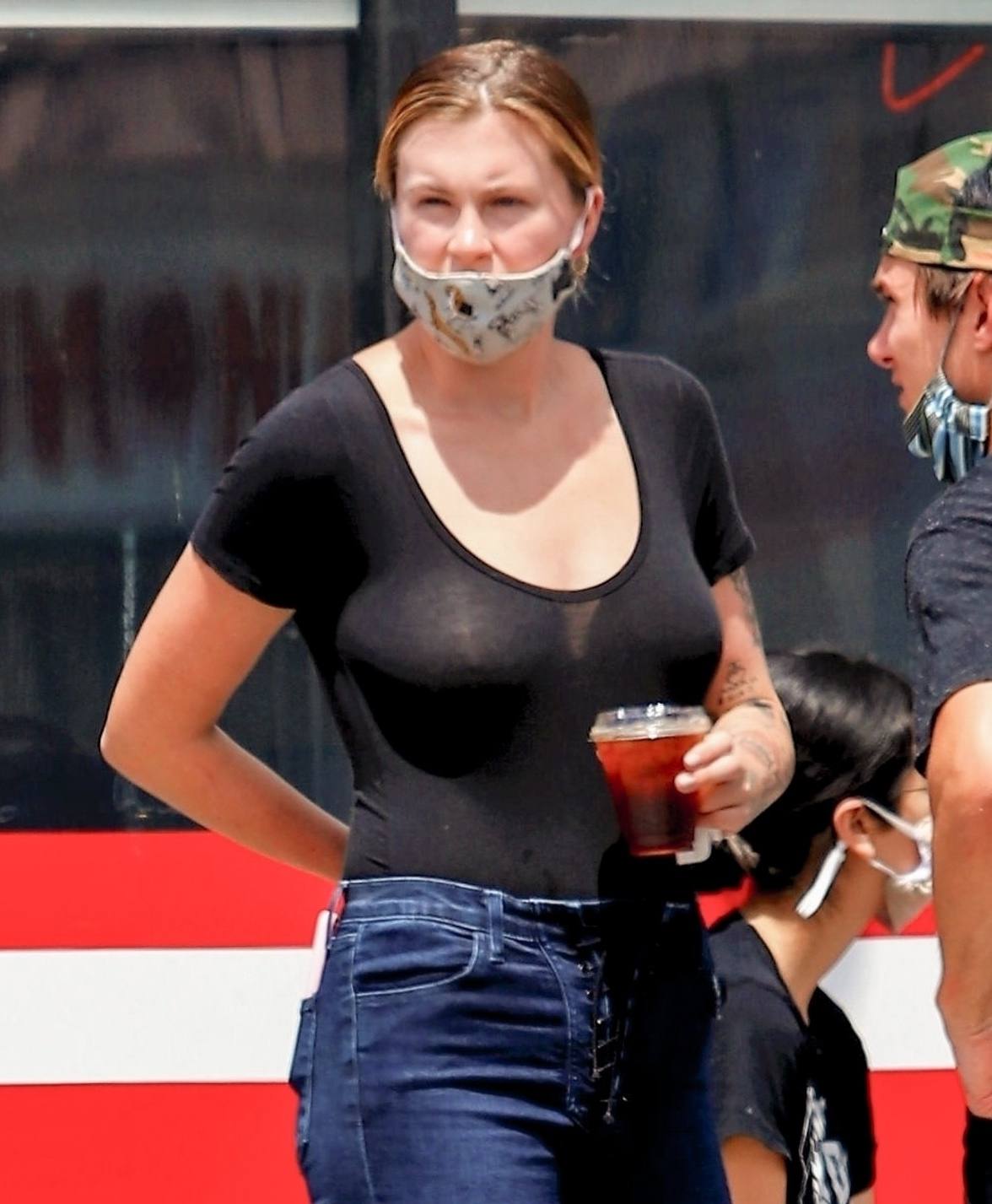 Ireland Baldwin show off her beautiful big breasts wearing sheer black top at Monty’s Good Burger in Los Angeles.