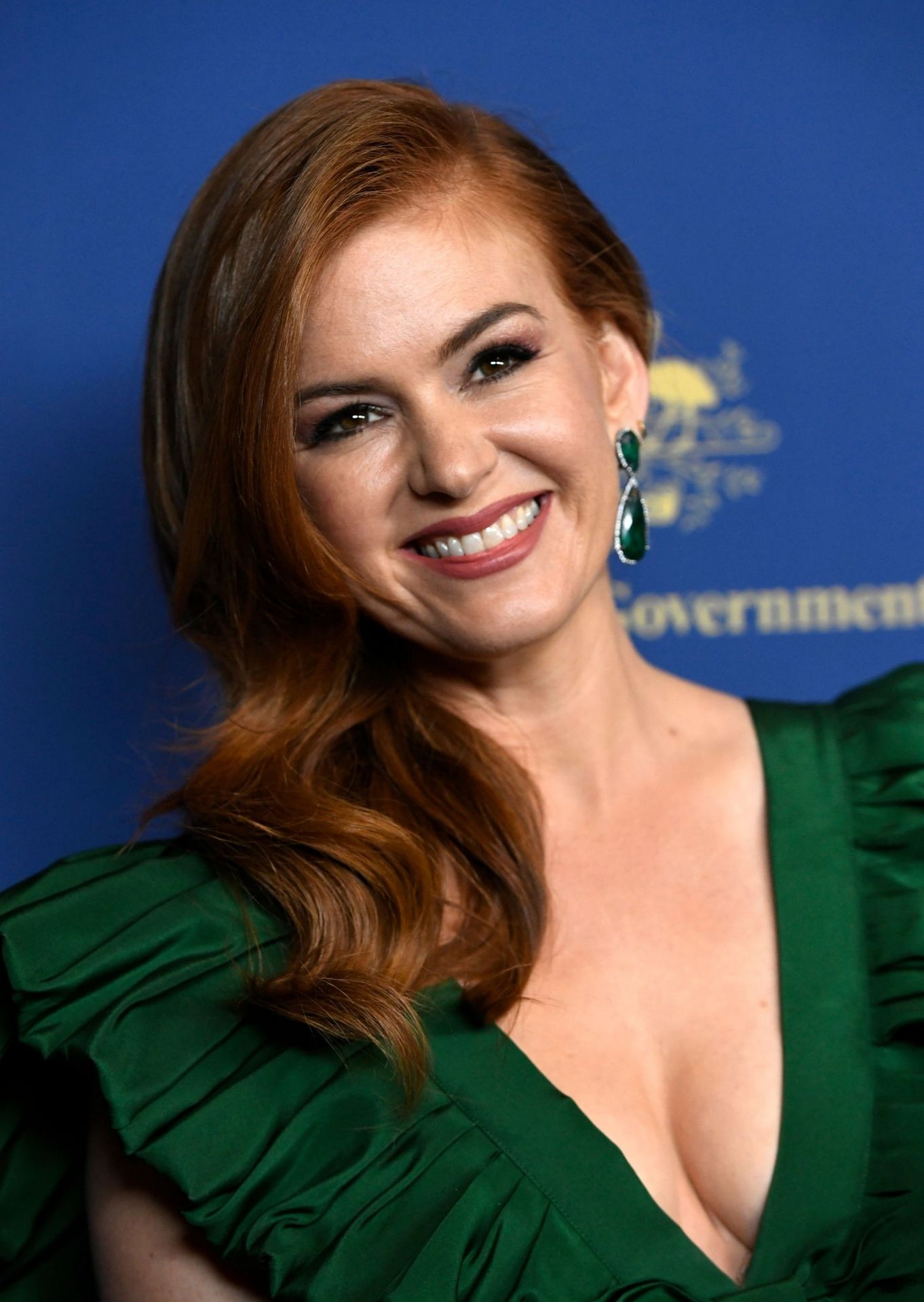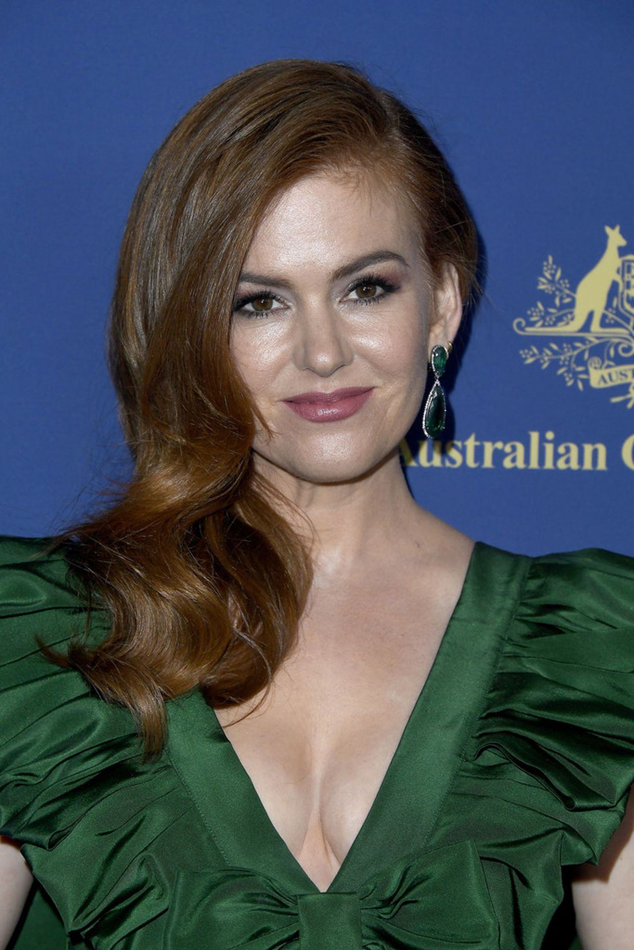Actress Isla Fisher showed off her cleavage, posing in a green dress at the 2019 Australians In Film Awards in Los Angeles, 10/23/2019.