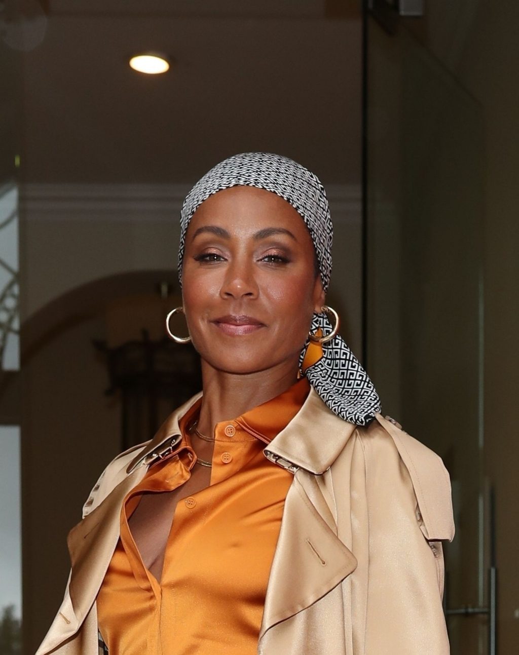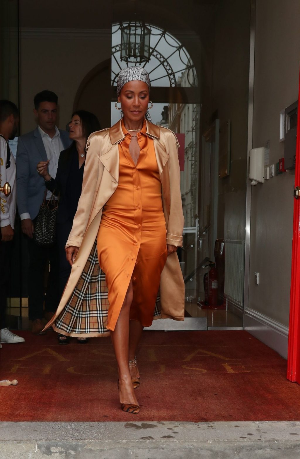 American actress Jada Pinkett Smith arrives at Asia House wearing trench beige coat in London, 07/30/2019.
