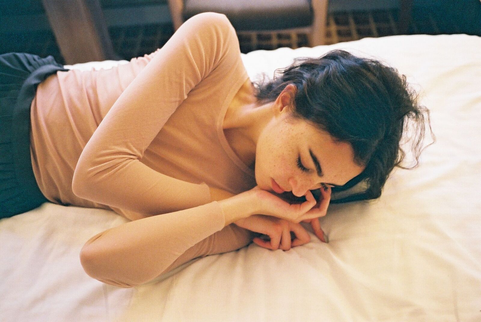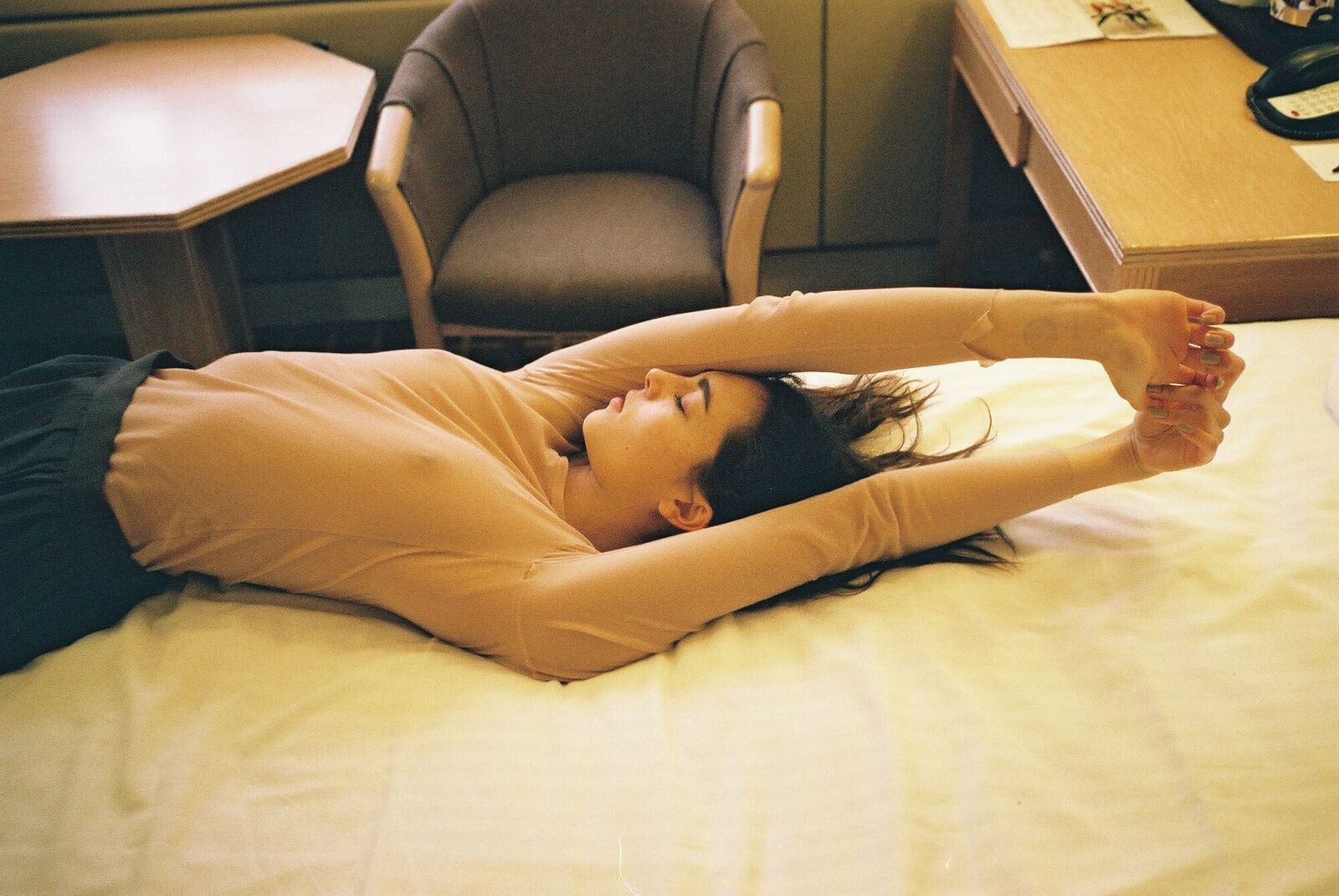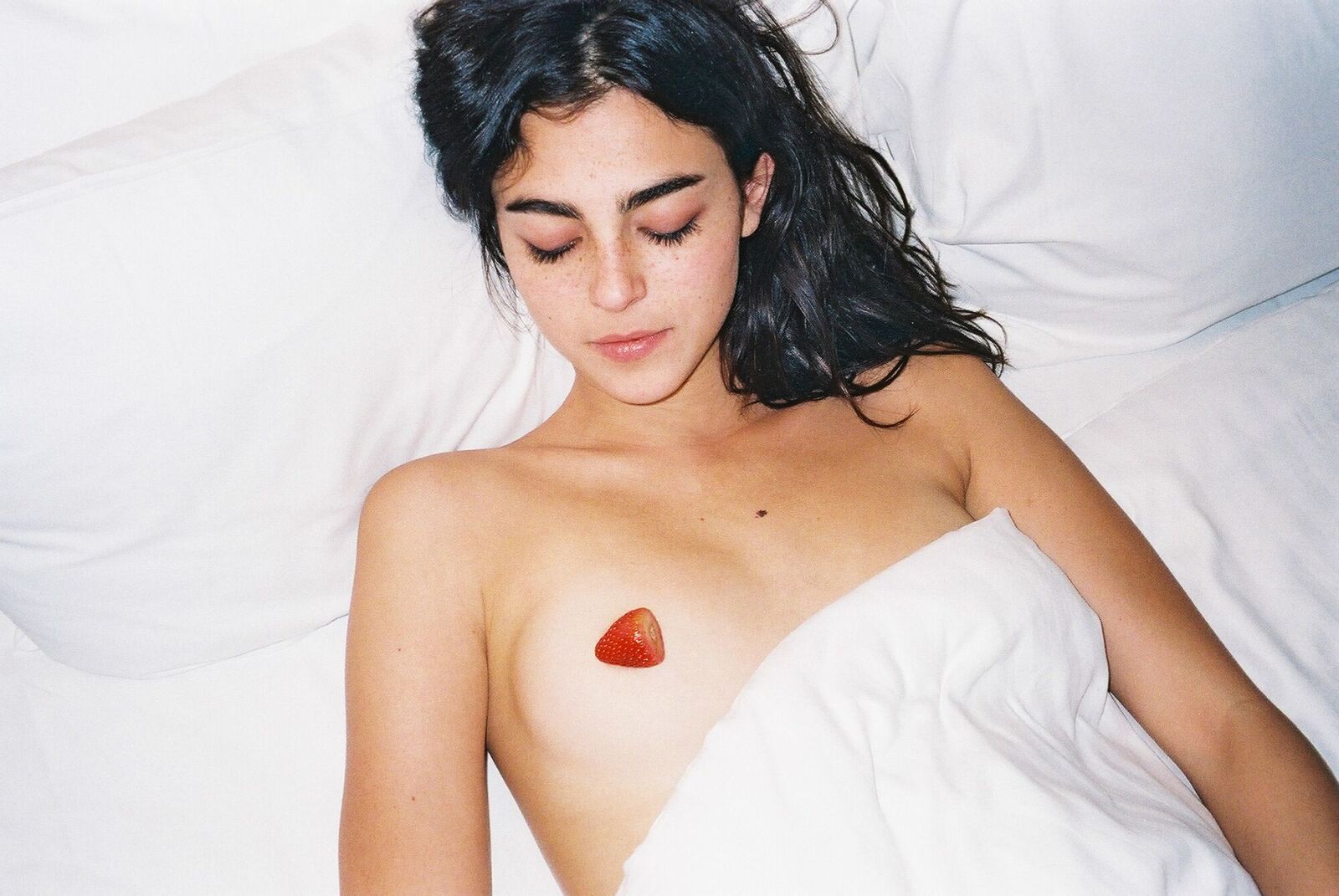 Young brunette model Jasmine Lia spent her day at a hotel together with Dominic Clarke (2019). She showed unusual poses in bed and her wonderful natural breasts.