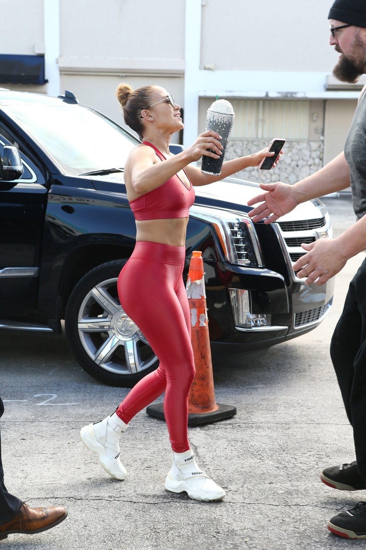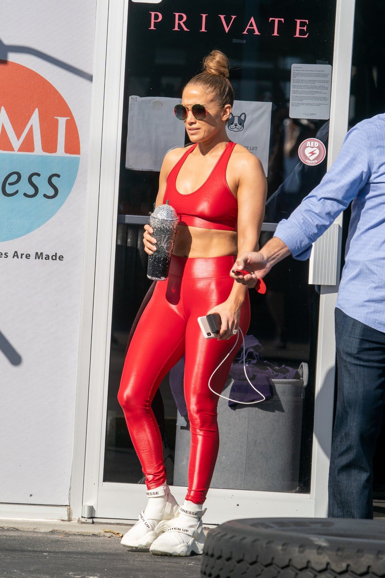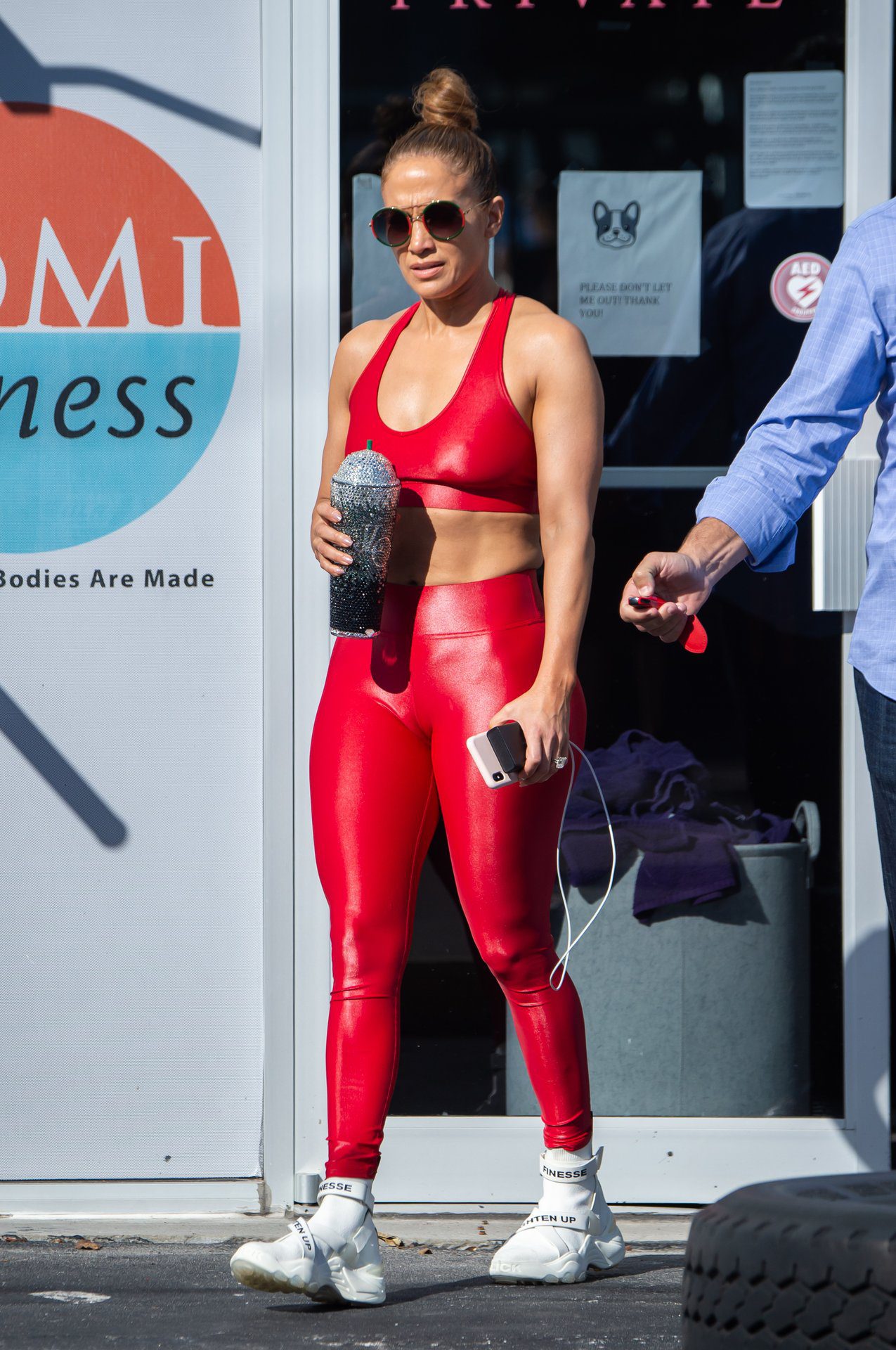 Jennifer Lopez was seen leaving the gym with A-Rod on Christmas Eve in Miami, 12/24/2019. Jlo looks great in a special red matching Christmas ensemble as she exits the gym and heads to the car.