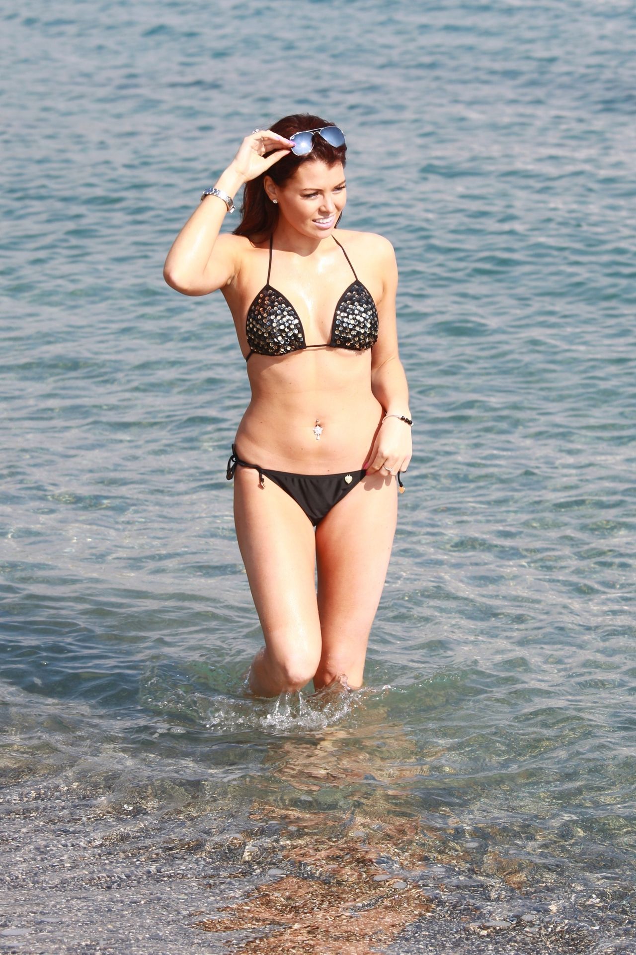 Television personality Jessica Wright was spotted in a black two-piece bikini at Malaga in Spain (2011).