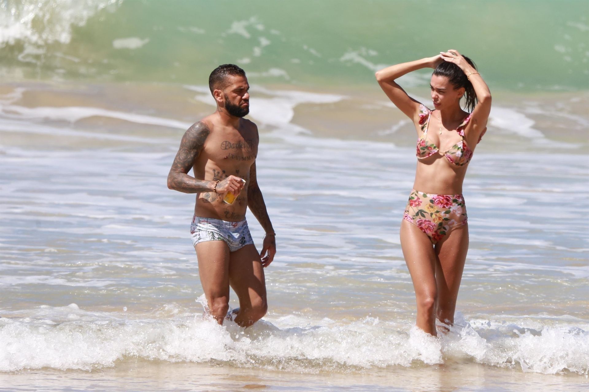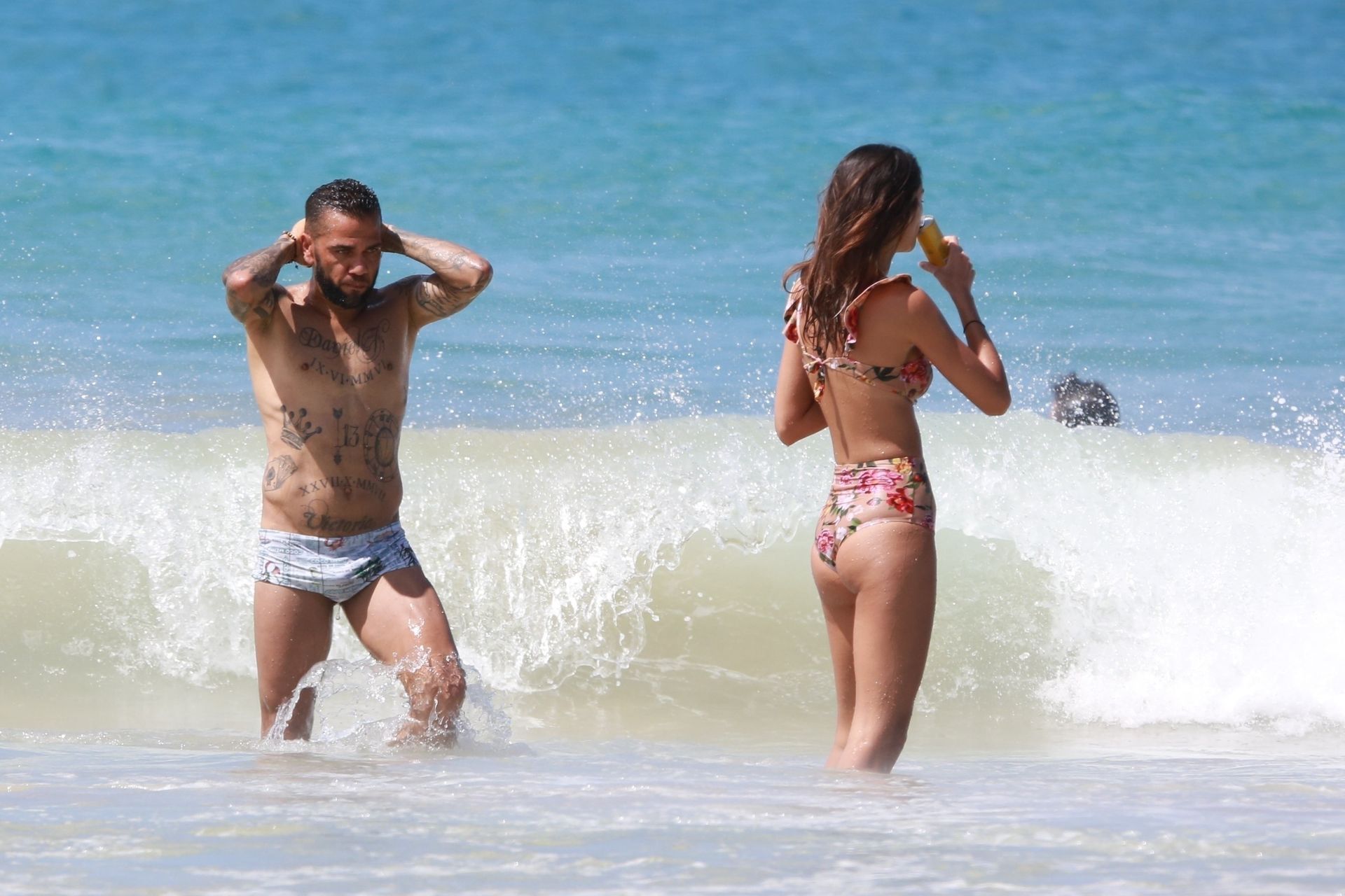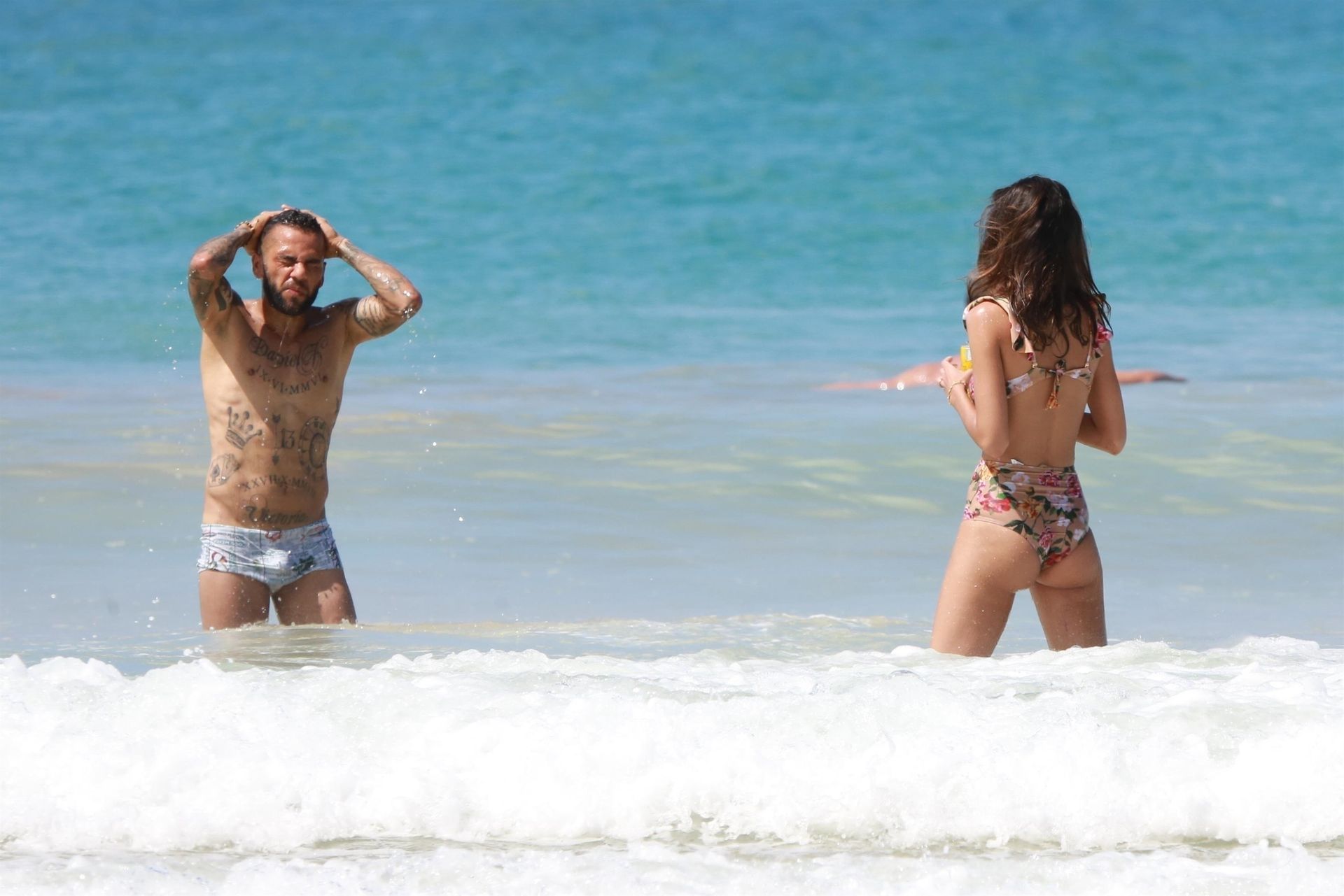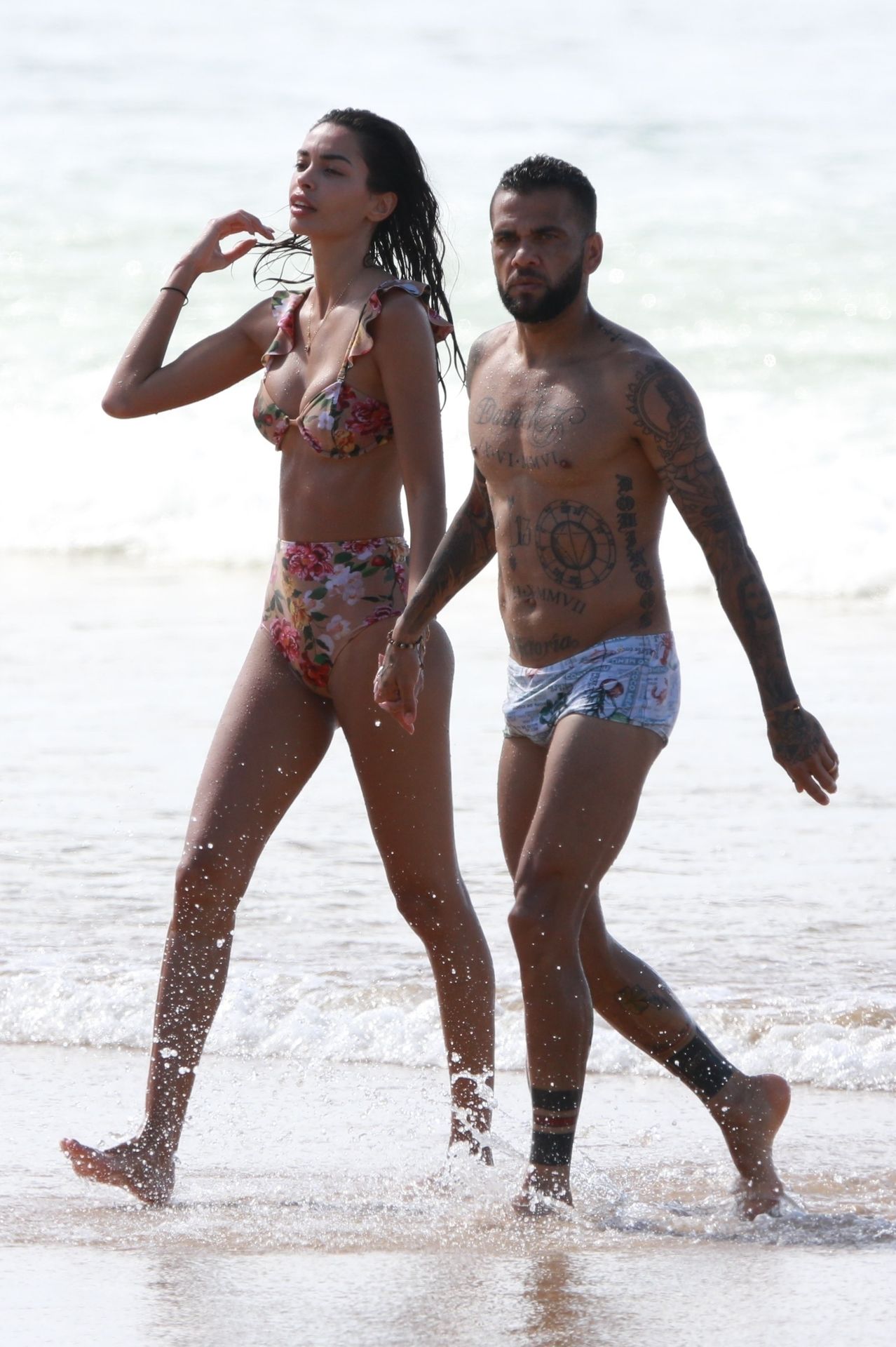 Brazilian footballer Daniel Alves and his wife, Spanish model Joana Sanz were seen at Conceicao beach in Fernando de Noronha, Brazil, 12/29/2019.