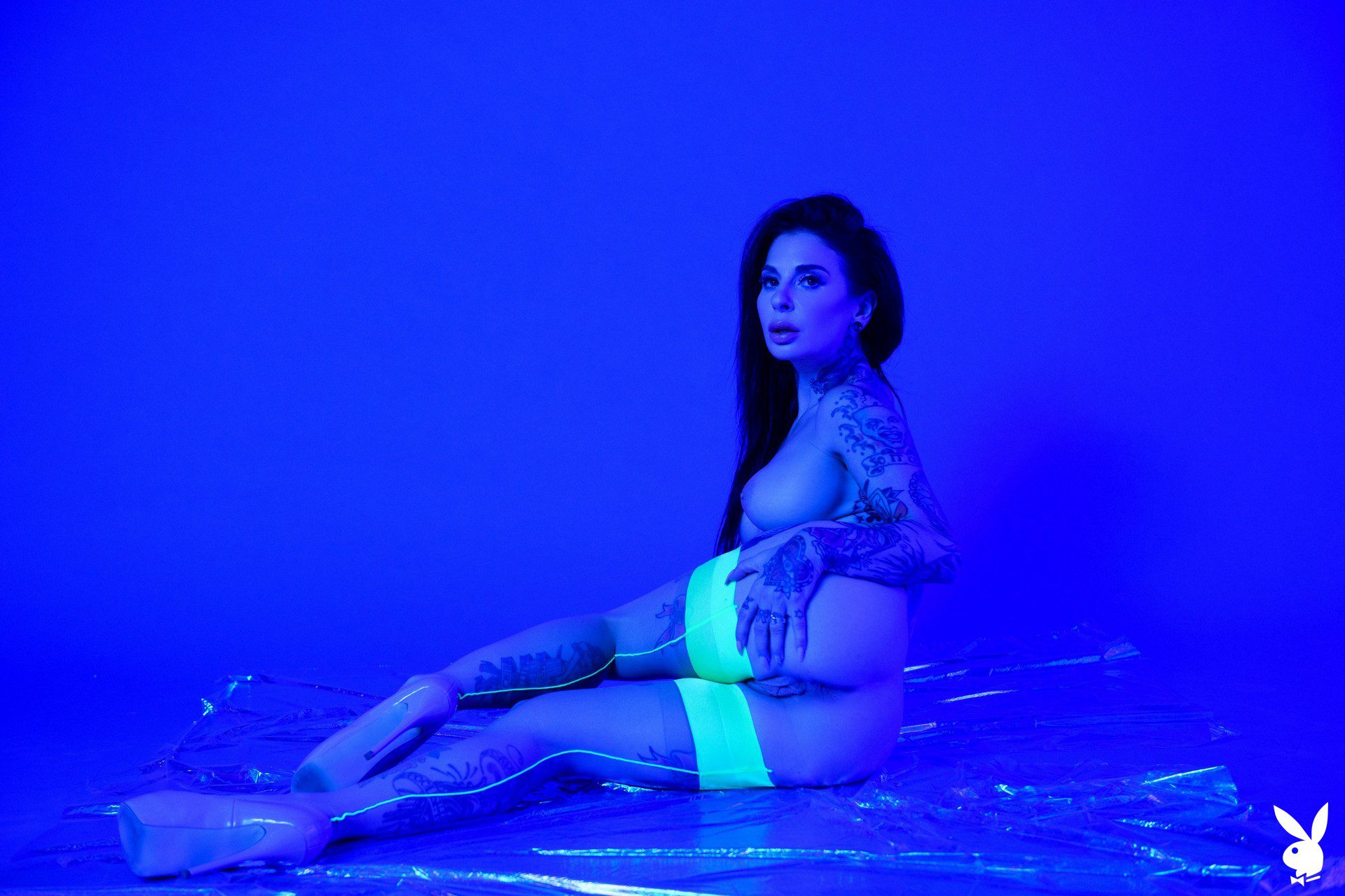 Adult celebrity Joanna Angel returns to Playboy Plus in this glowing pictorial from the photographer, Maddie Córdoba. Joanna is dressed in colorful neon lingerie on set in Los Angeles under black lights. “I feel like I’ve achieved the highest status you could achieve with your clothes off,” s miles Joanna of her career, “And that’s a hell of a lot cooler than achieving anything at all with your clothes on.” For Joanna, every part of this work makes it special. “I love all the hilarious and fascinating memories and stories this job has granted me with. I love all the people I’ve met, the places I’ve traveled to, and the opportunities I’ve had to create,” she shares thoughtfully. “Of course, I also love all the amazing sex I’ve had.” Posing nude allows Joanna to be playful and creative. “I love being able to style myself with intricate makeup, wardrobe, and set design,” she says. “It’s like celebrating our bare essentials in the most decadent way possible.” Check out Joanna’s first pictorial, too, right here on Playboy Plus!