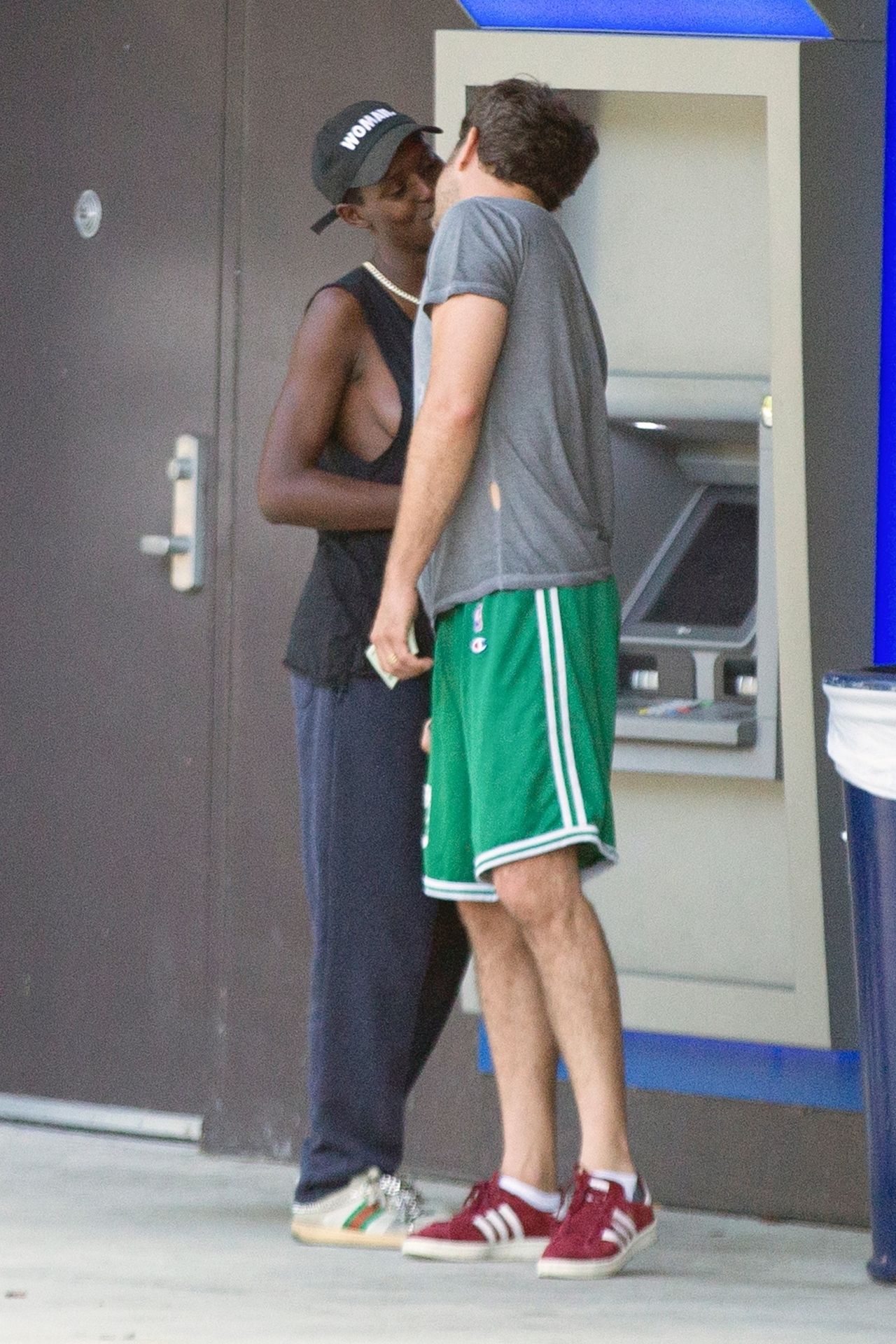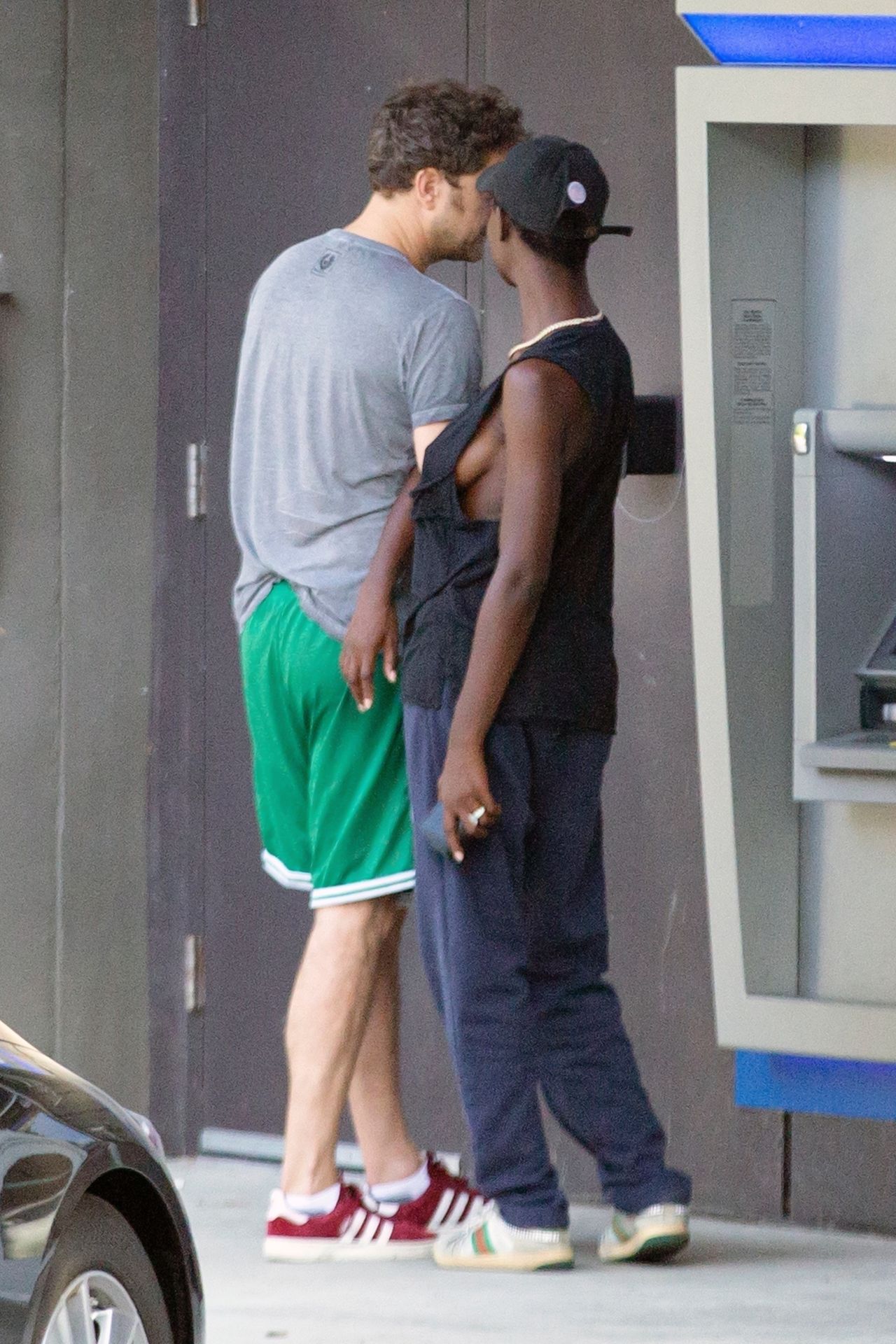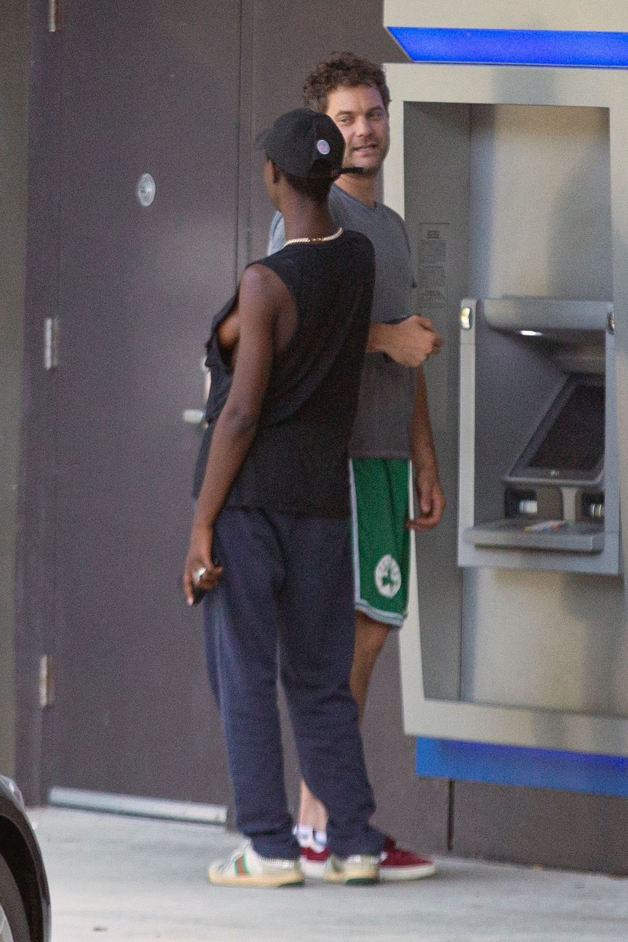 Joshua Jackson and fiancée Jodie Turner-Smith show their playful sides with some PDA while withdrawing some cash from a Chase bank in Hollywood, 09/10/2019. The couple could be seen smiling at each other before sharing some sweet kisses.