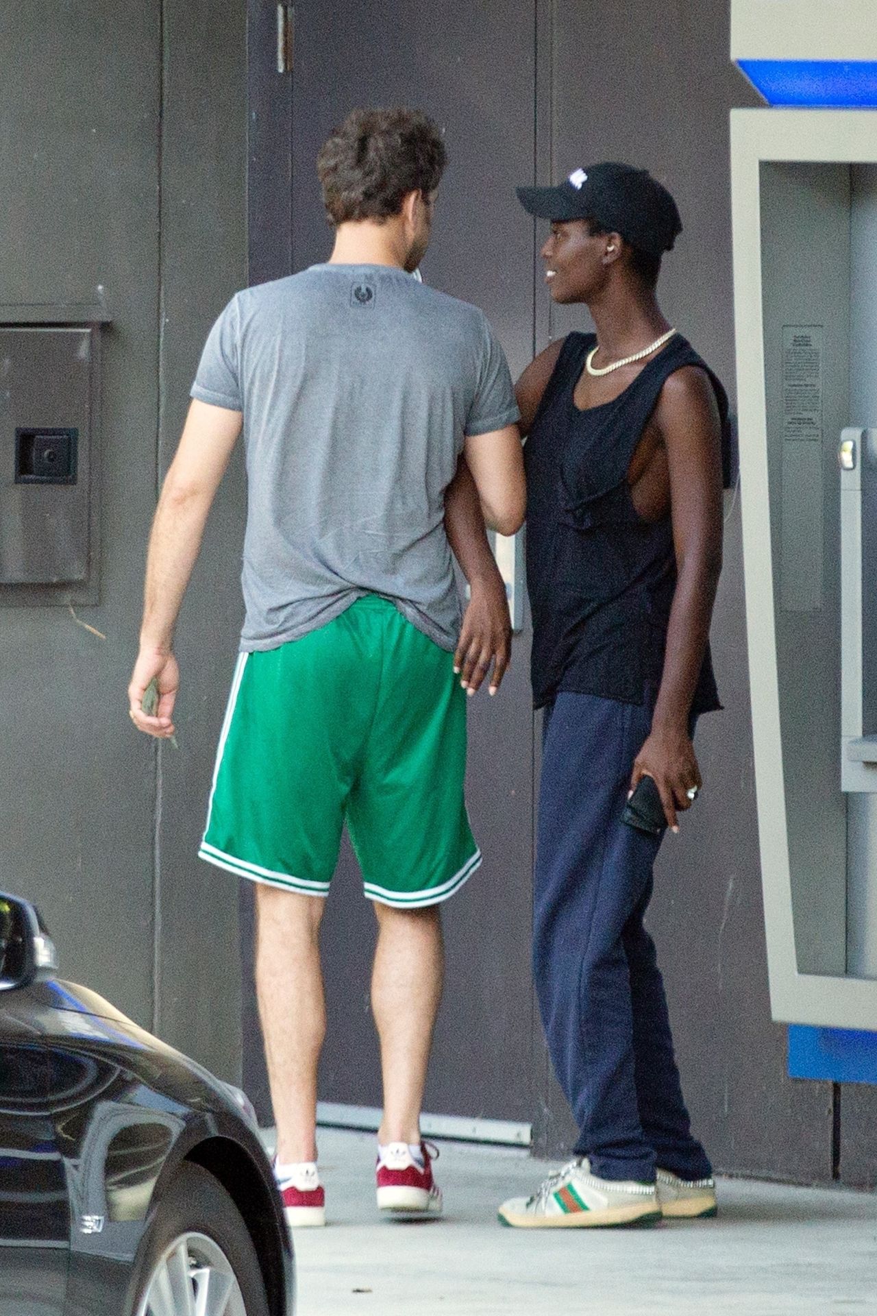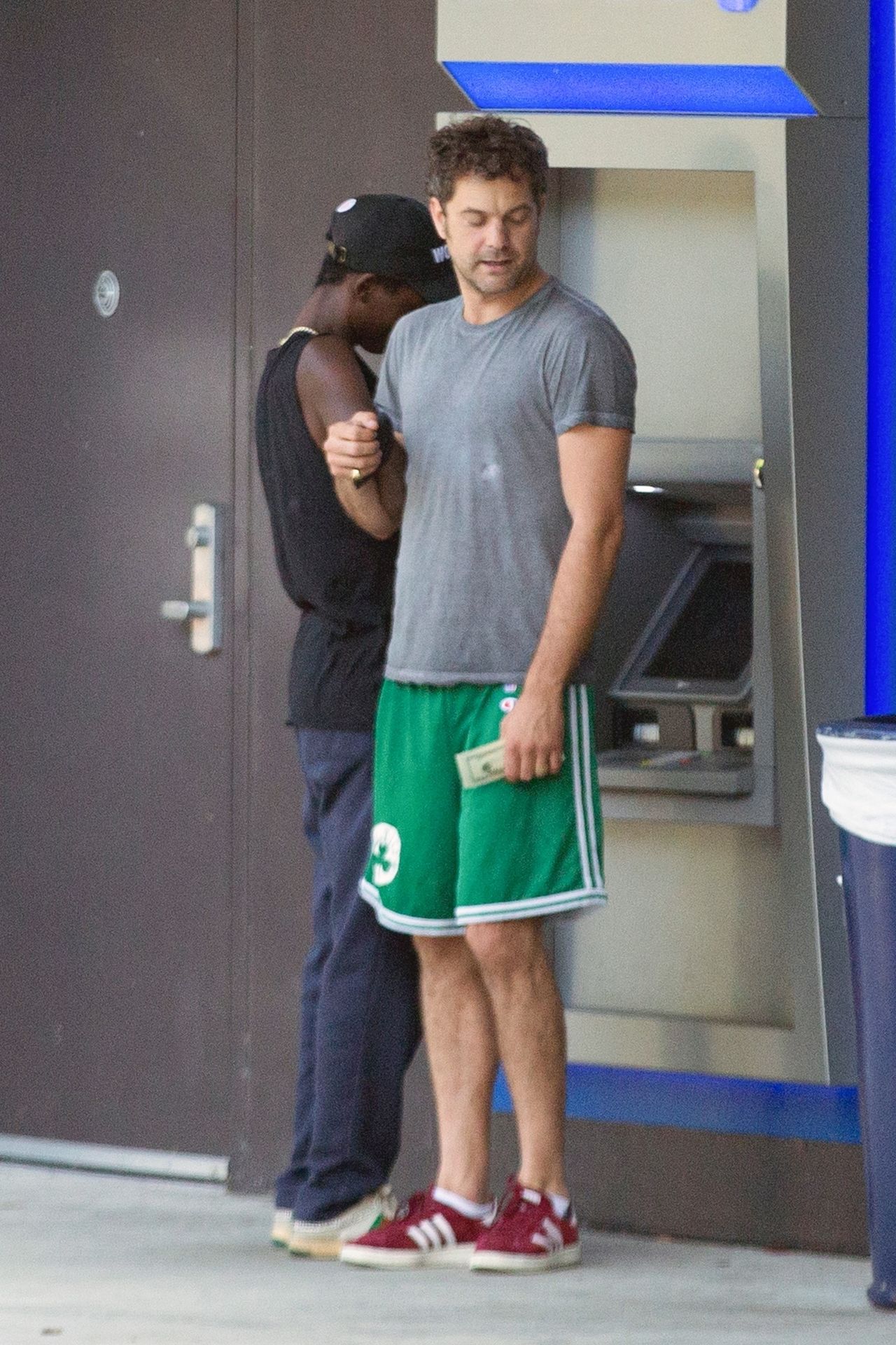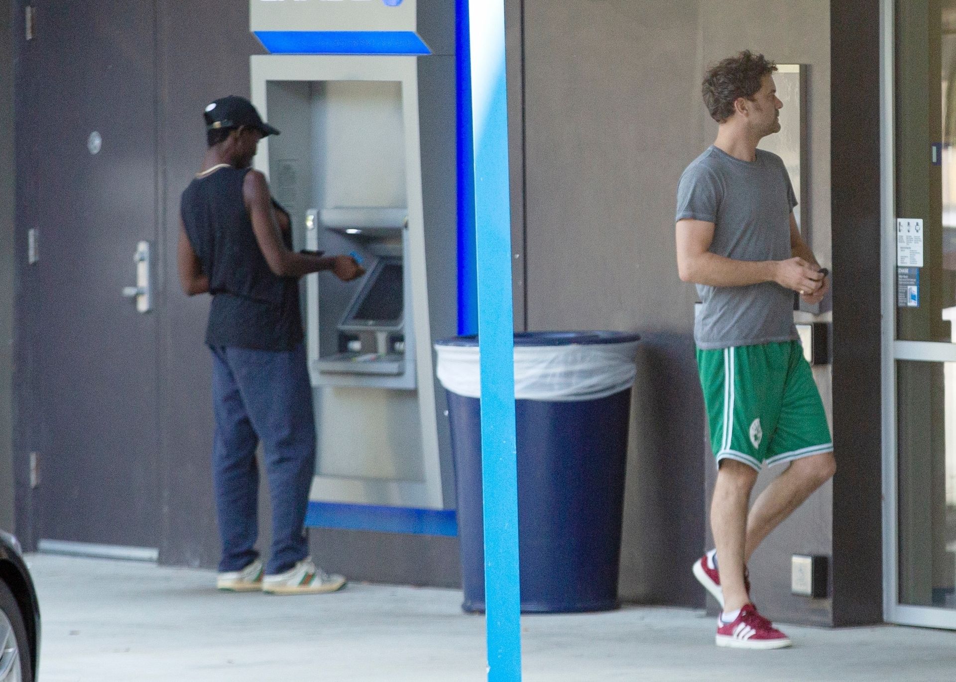 Joshua Jackson and fiancée Jodie Turner-Smith show their playful sides with some PDA while withdrawing some cash from a Chase bank in Hollywood, 09/10/2019. The couple could be seen smiling at each other before sharing some sweet kisses.