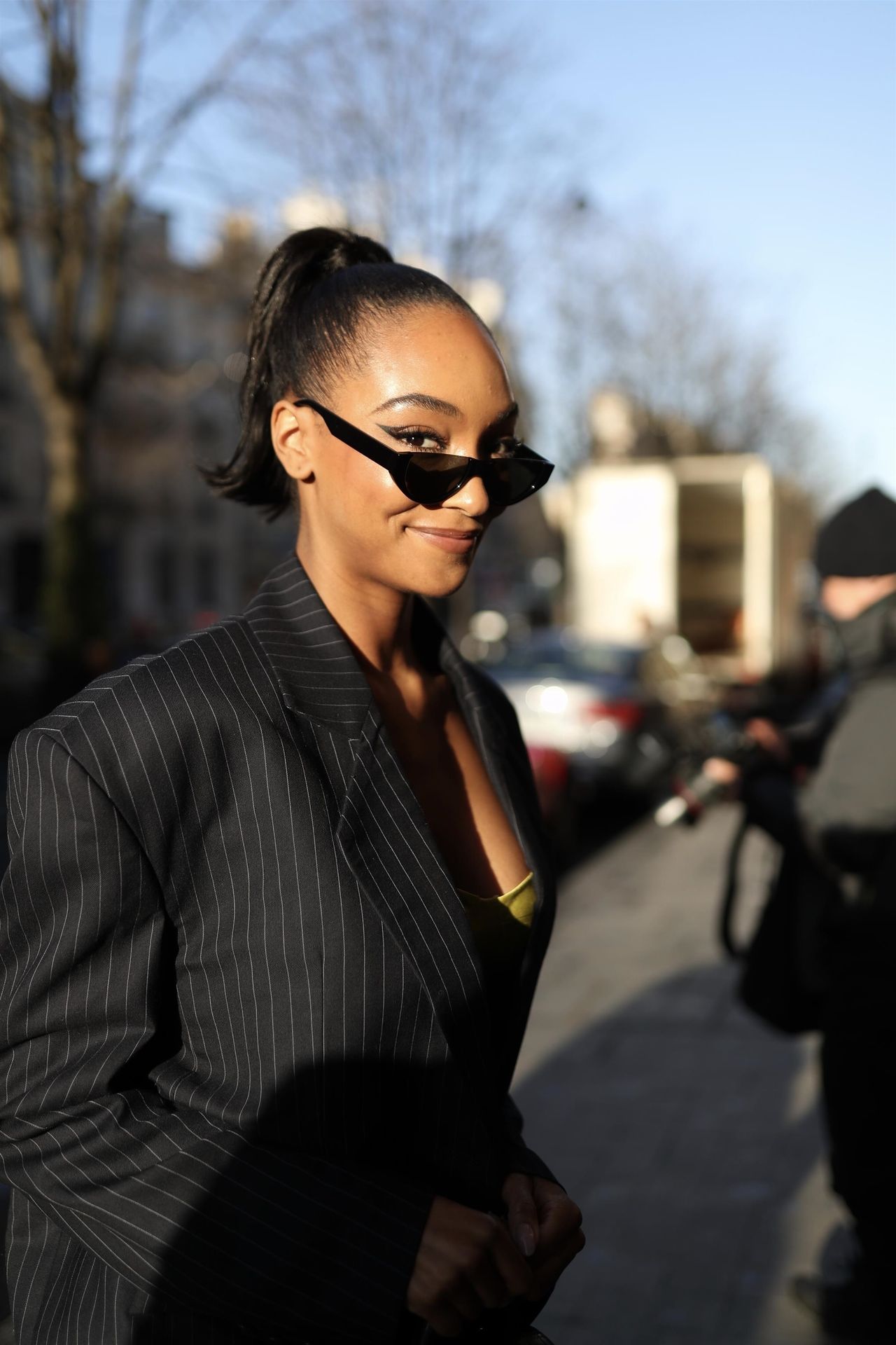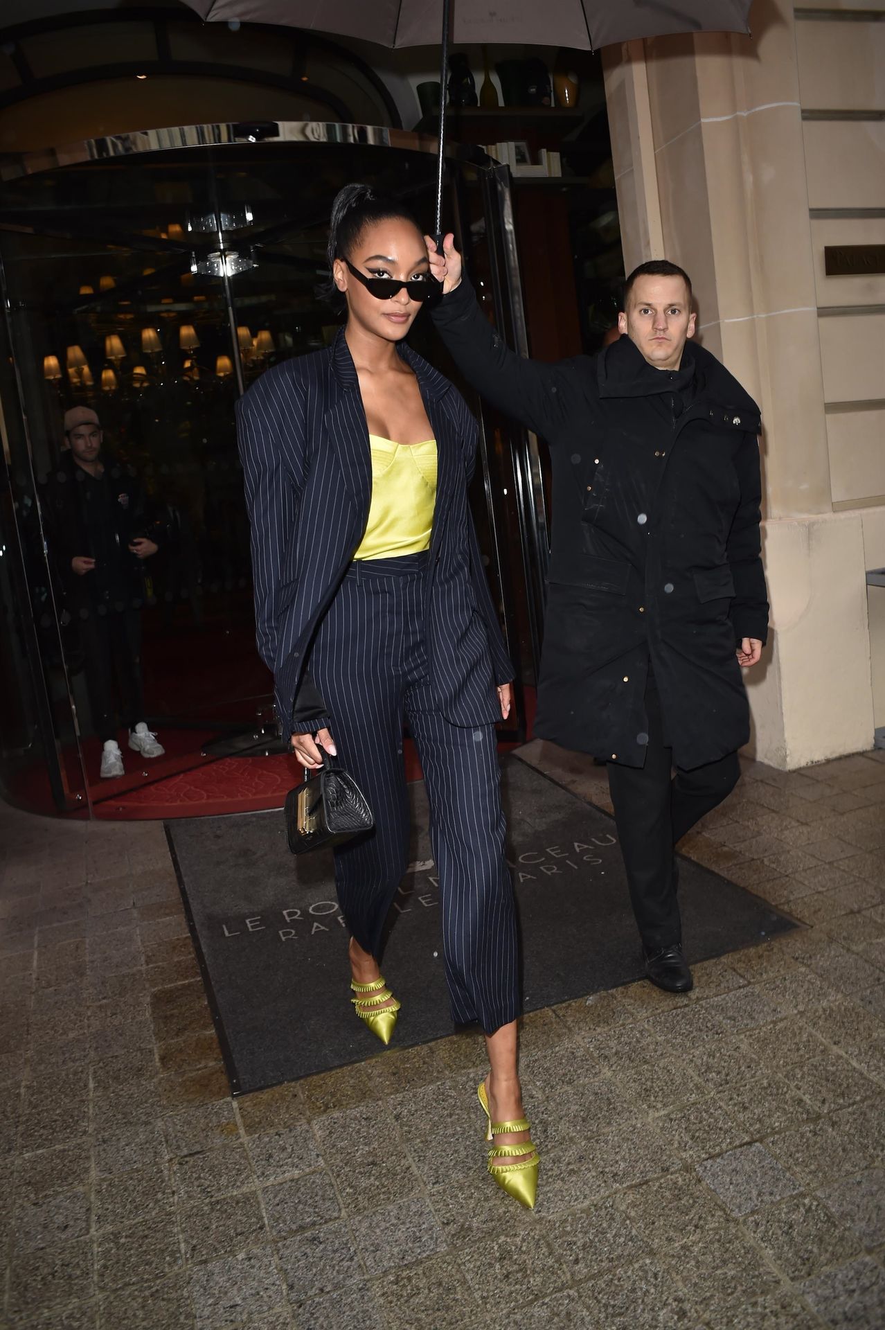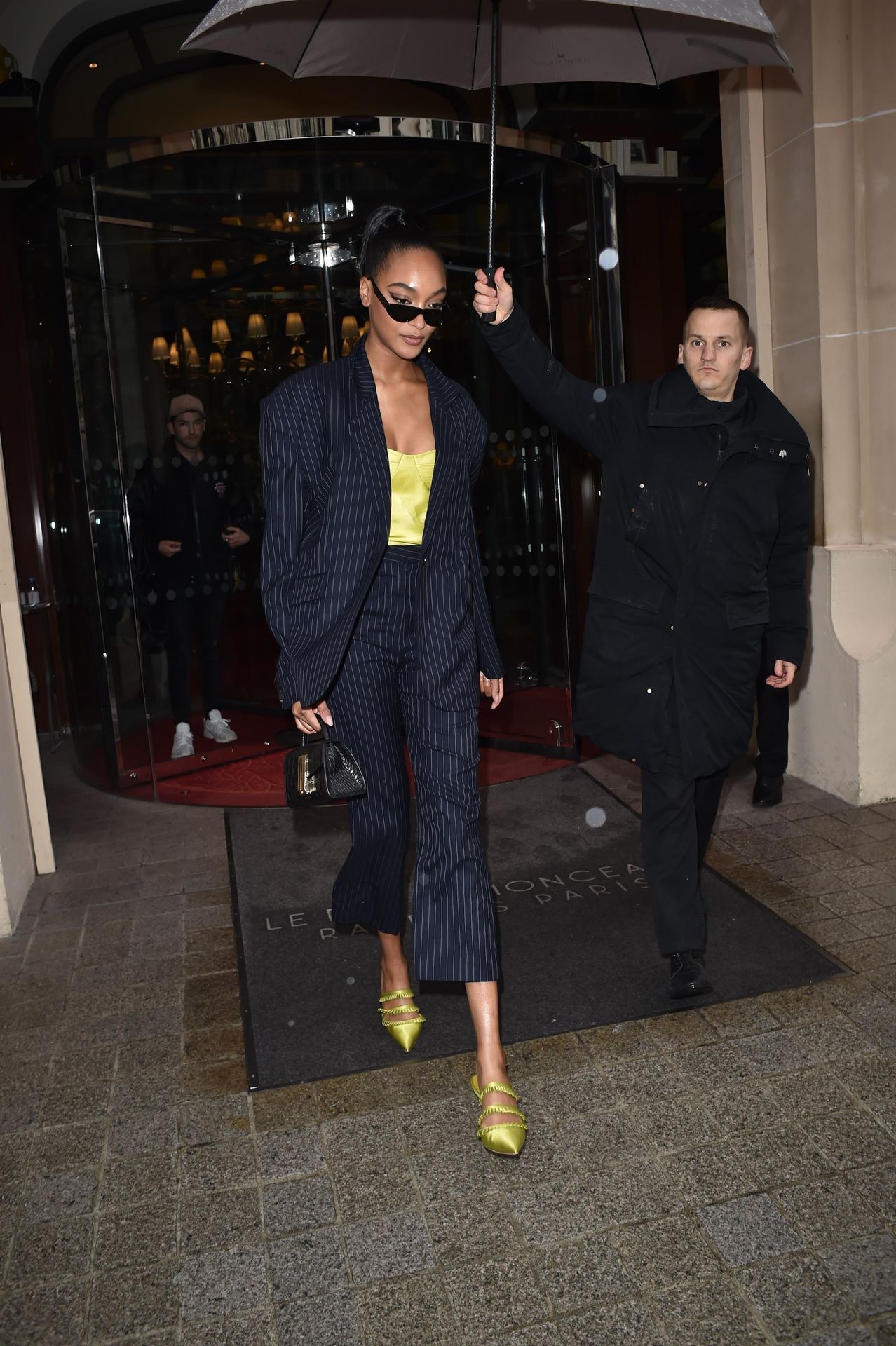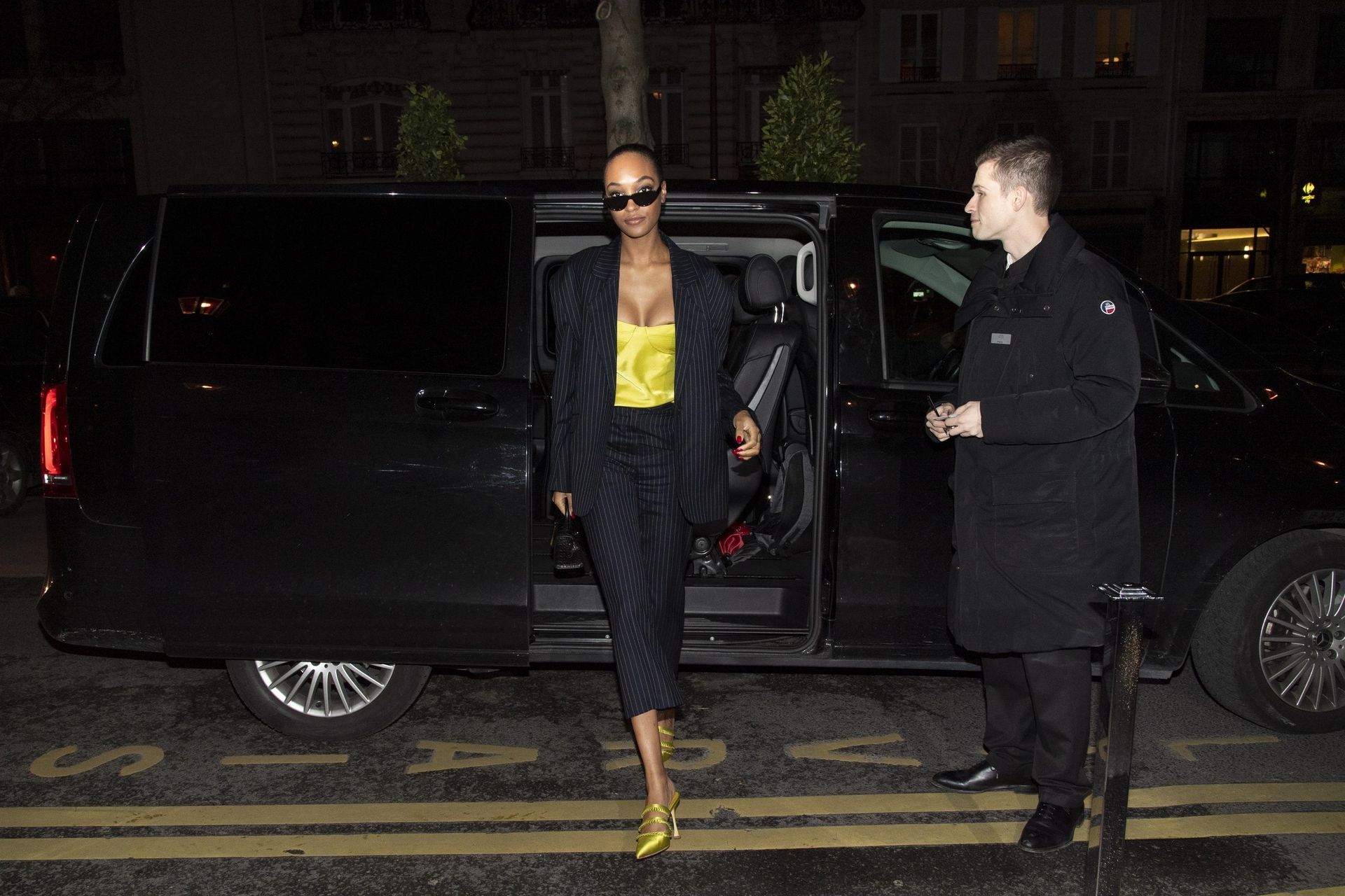 Model Jourdan Dunn steps out with her rumored mystery husband who tries to dodge pictures in a large coat with the hood up in Paris, 02/29/2020.