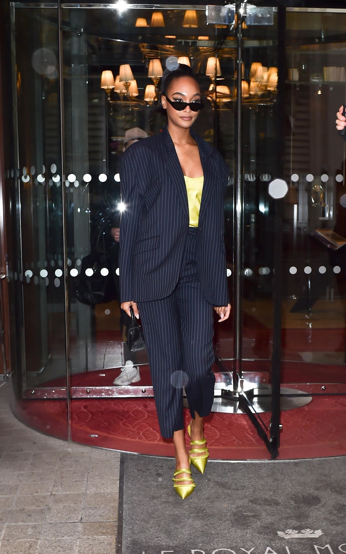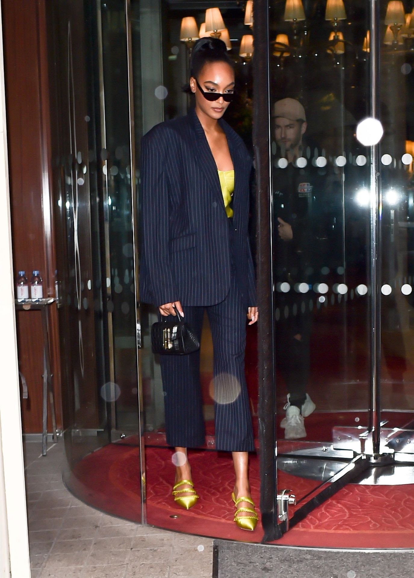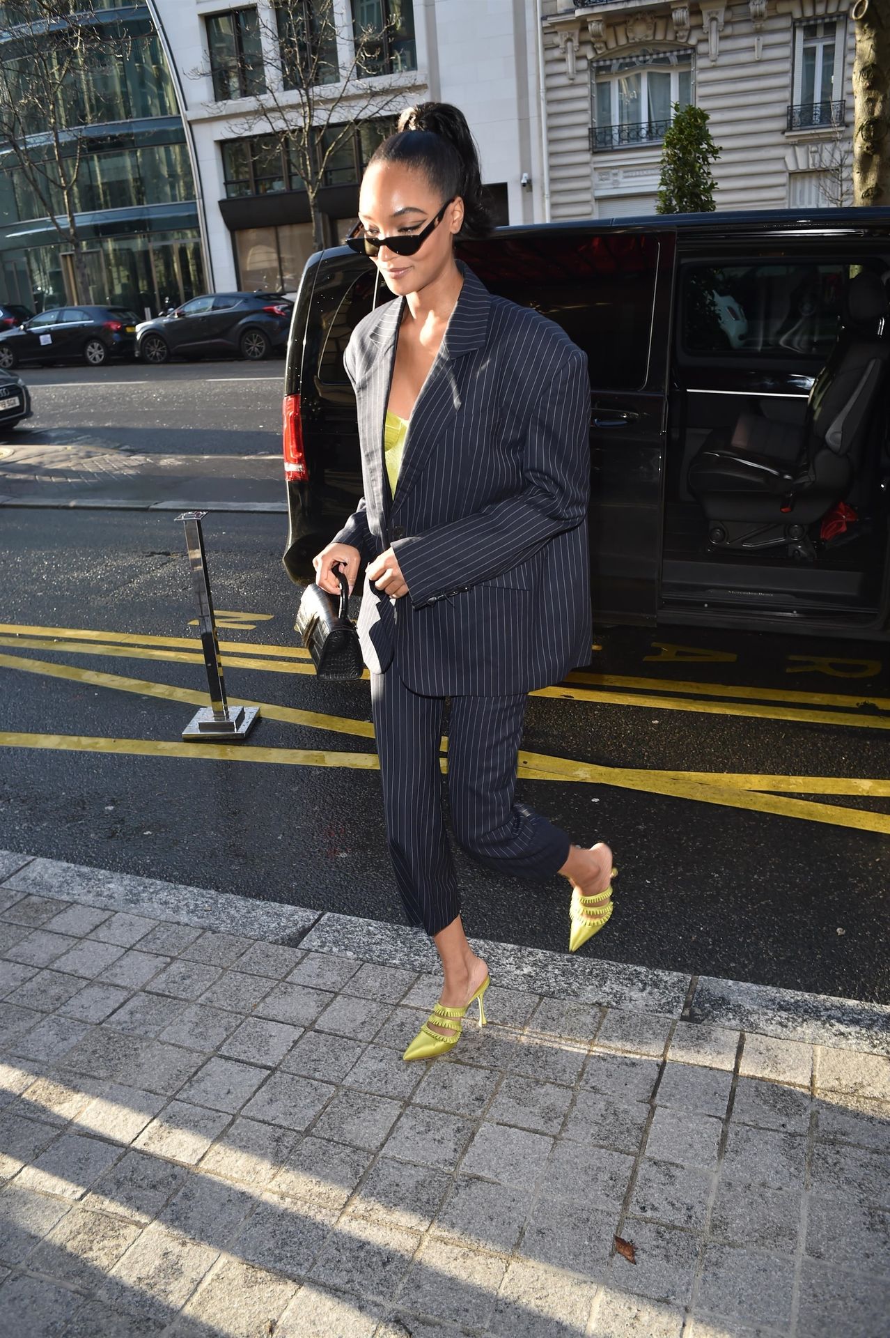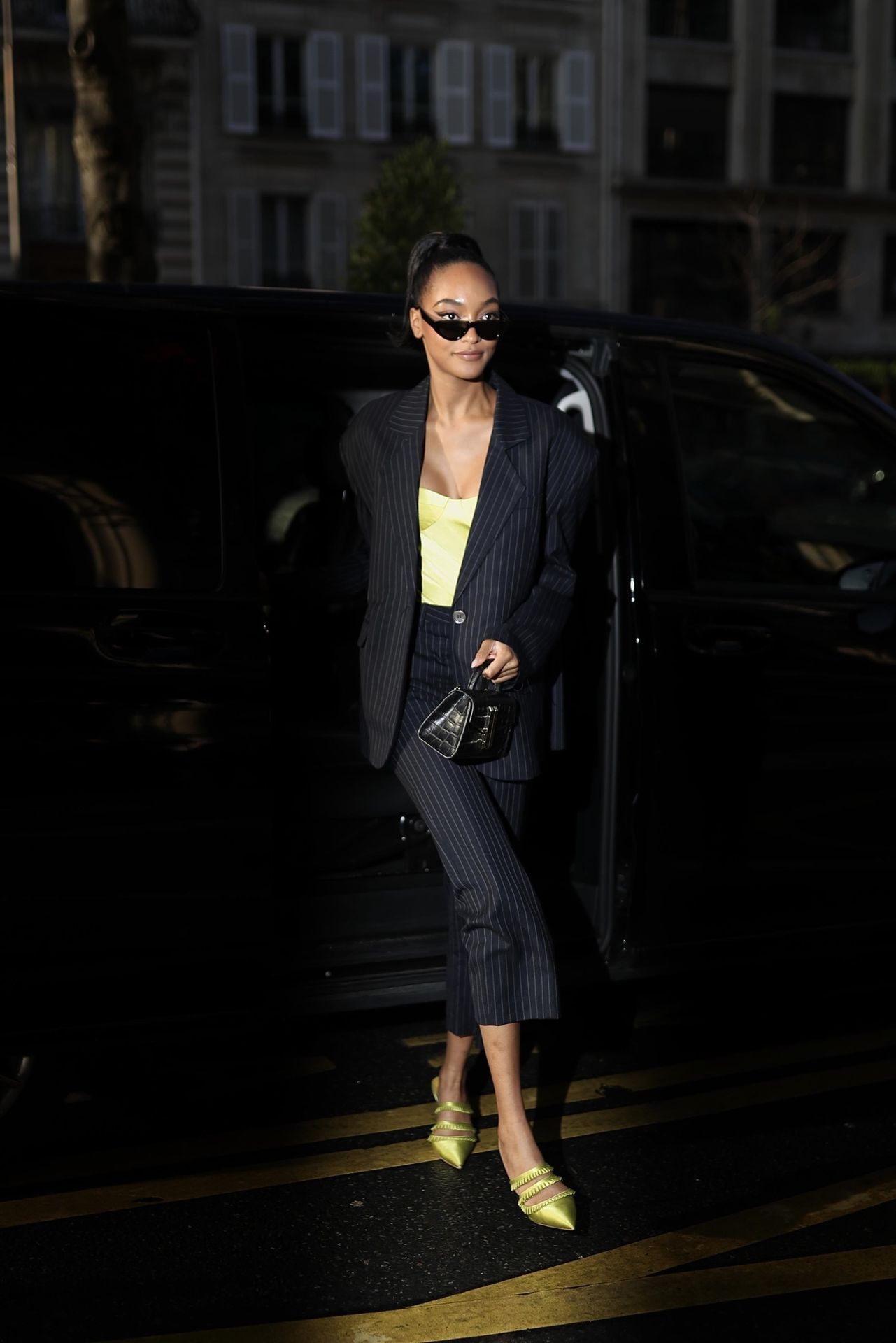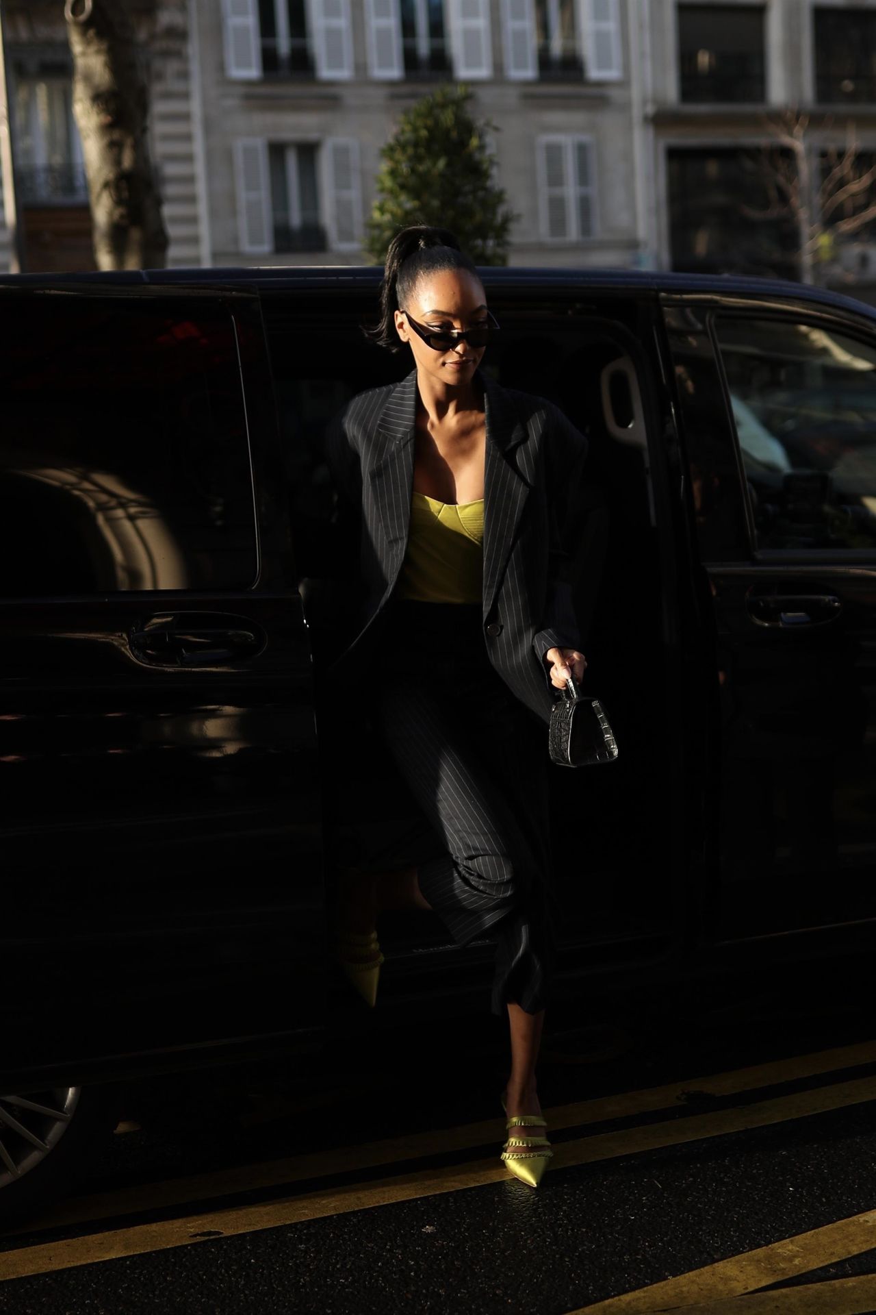 Model Jourdan Dunn steps out with her rumored mystery husband who tries to dodge pictures in a large coat with the hood up in Paris, 02/29/2020.