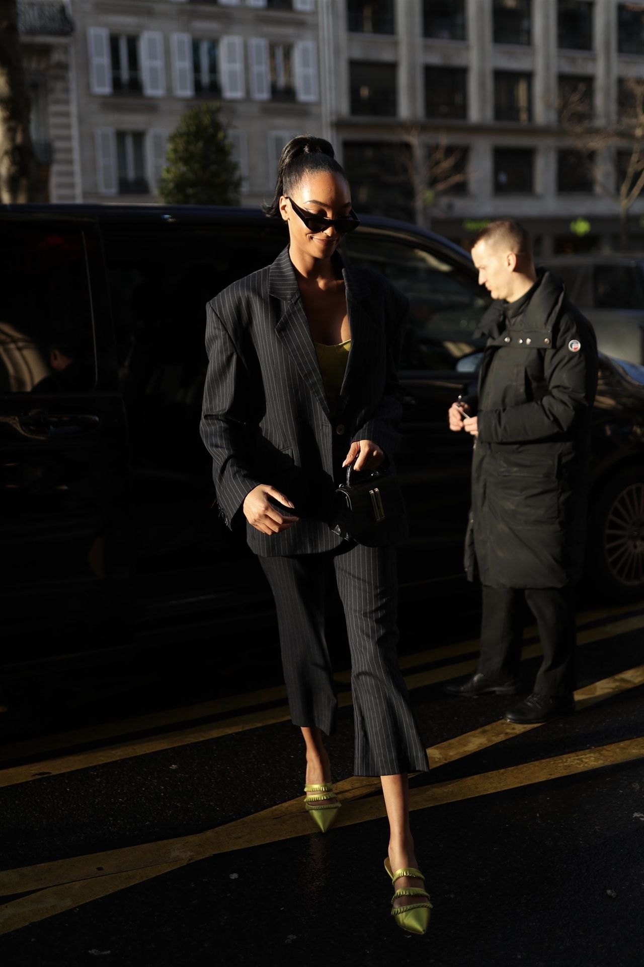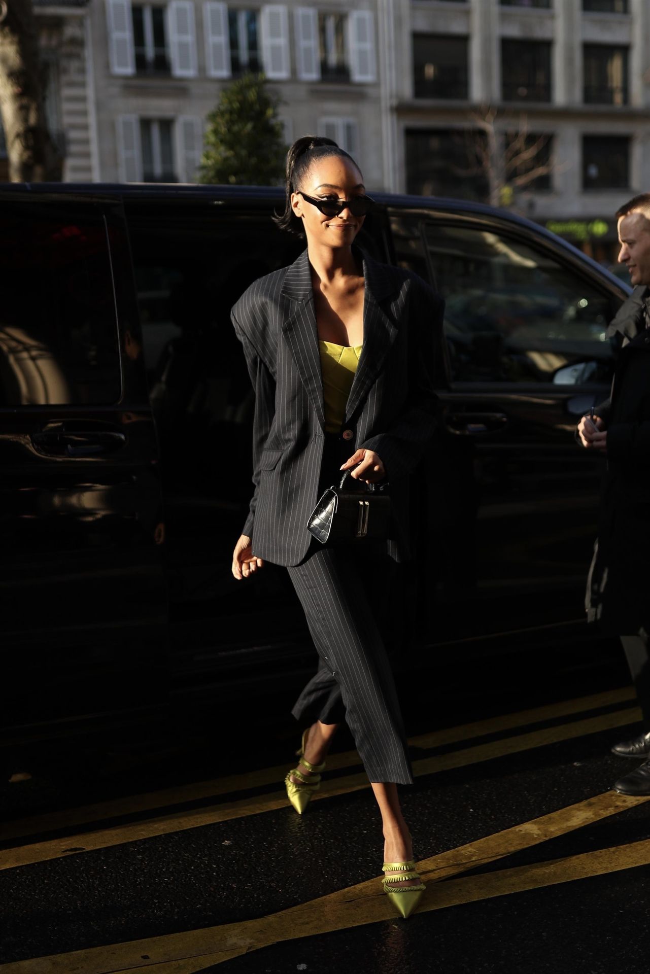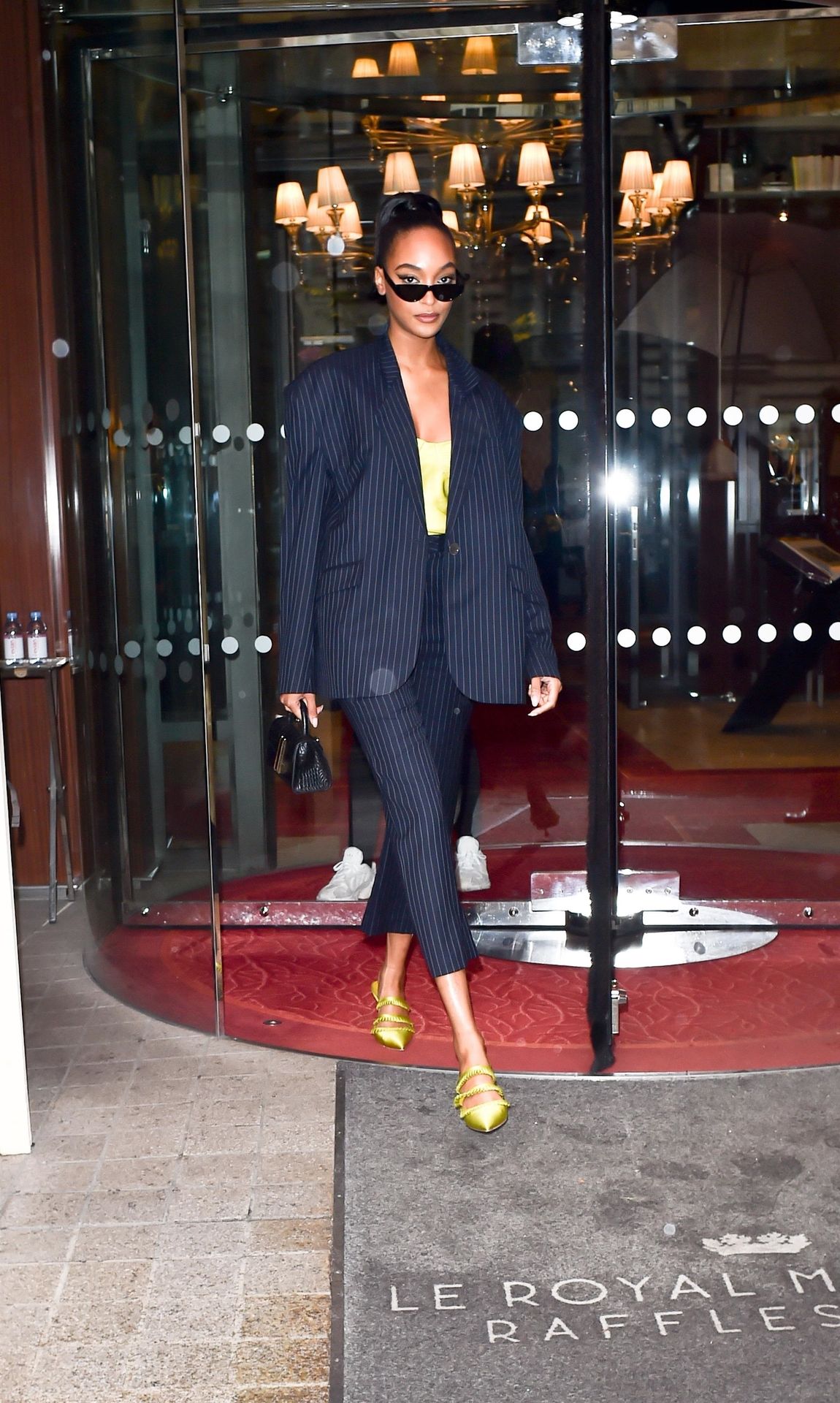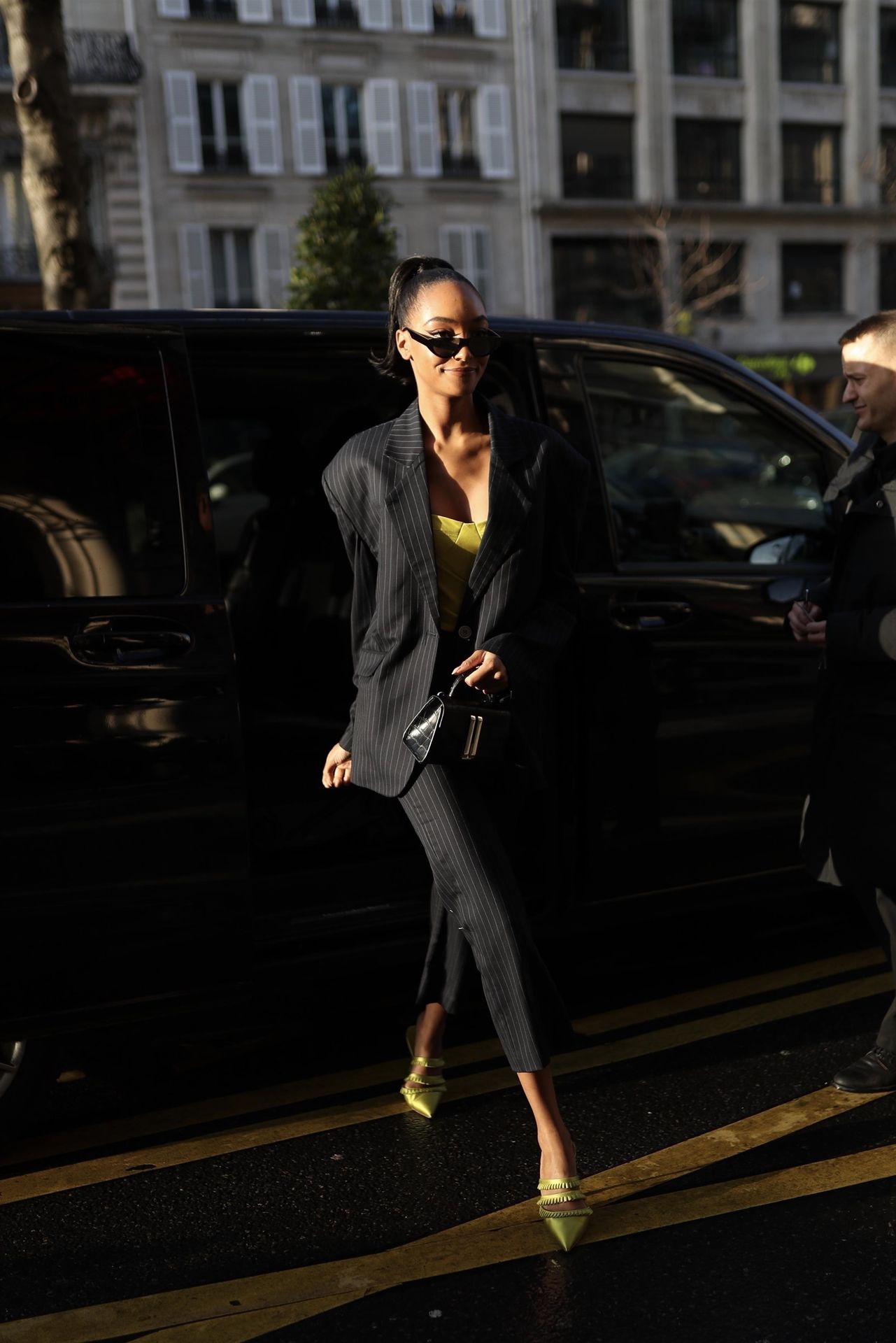 Model Jourdan Dunn steps out with her rumored mystery husband who tries to dodge pictures in a large coat with the hood up in Paris, 02/29/2020.