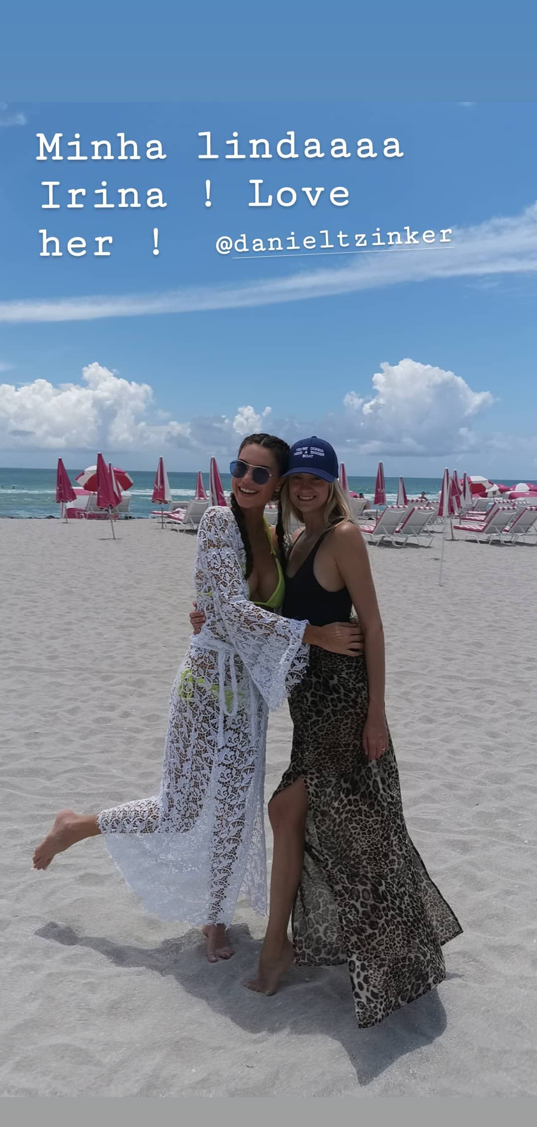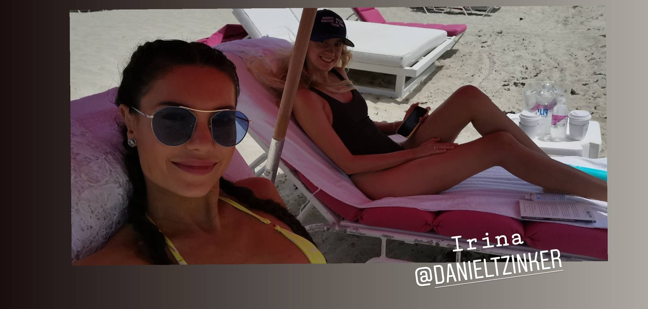 Fashion model Julia Pereira was seen in a yellow triangle top bikini at the beach on Monday afternoon in Miami Beach, 07/15/2019. Julia spend her day off at the beach with Irina Tokman.