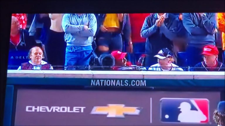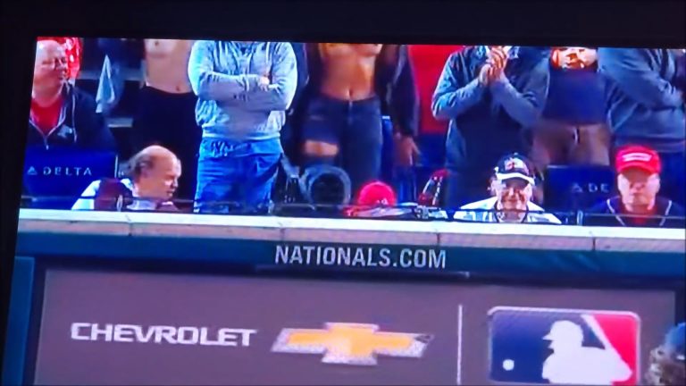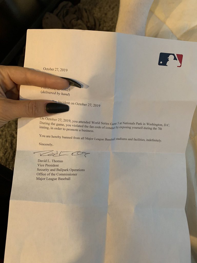 Models Julia Rose and Lauren Summer banned from MLB for flashing boobs at Nationals Park in Washington, D. C. (October 2019).