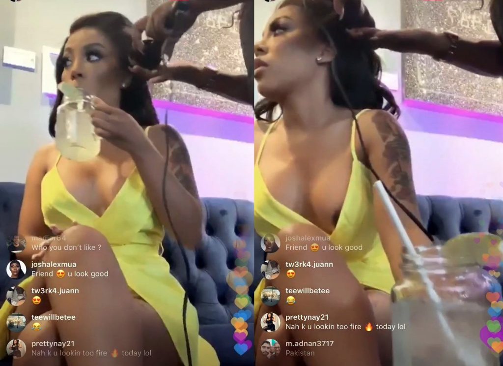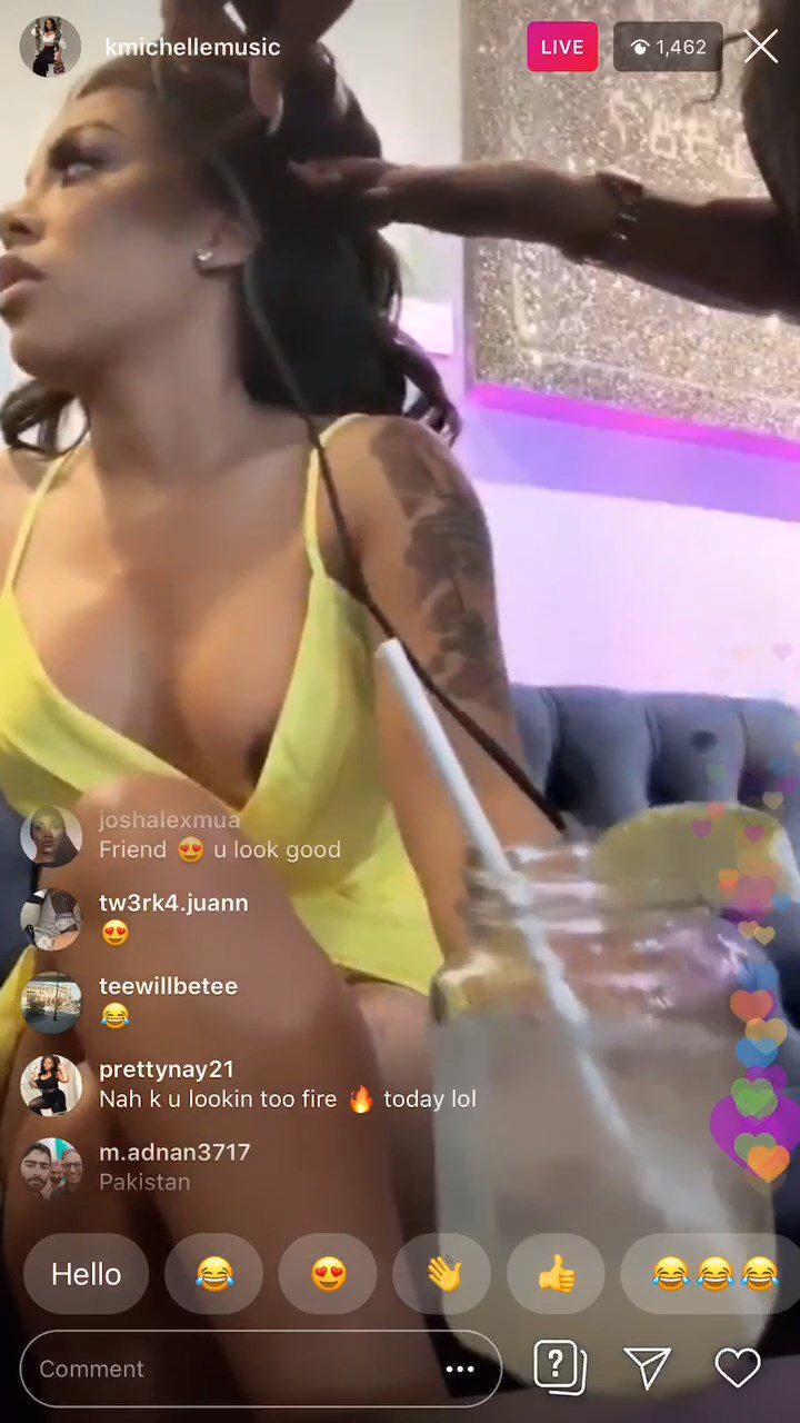 R&B singer K. Michelle accidentally showed her brown areola wearing a yellow dress during her Instagram live, 07/17/2019.
