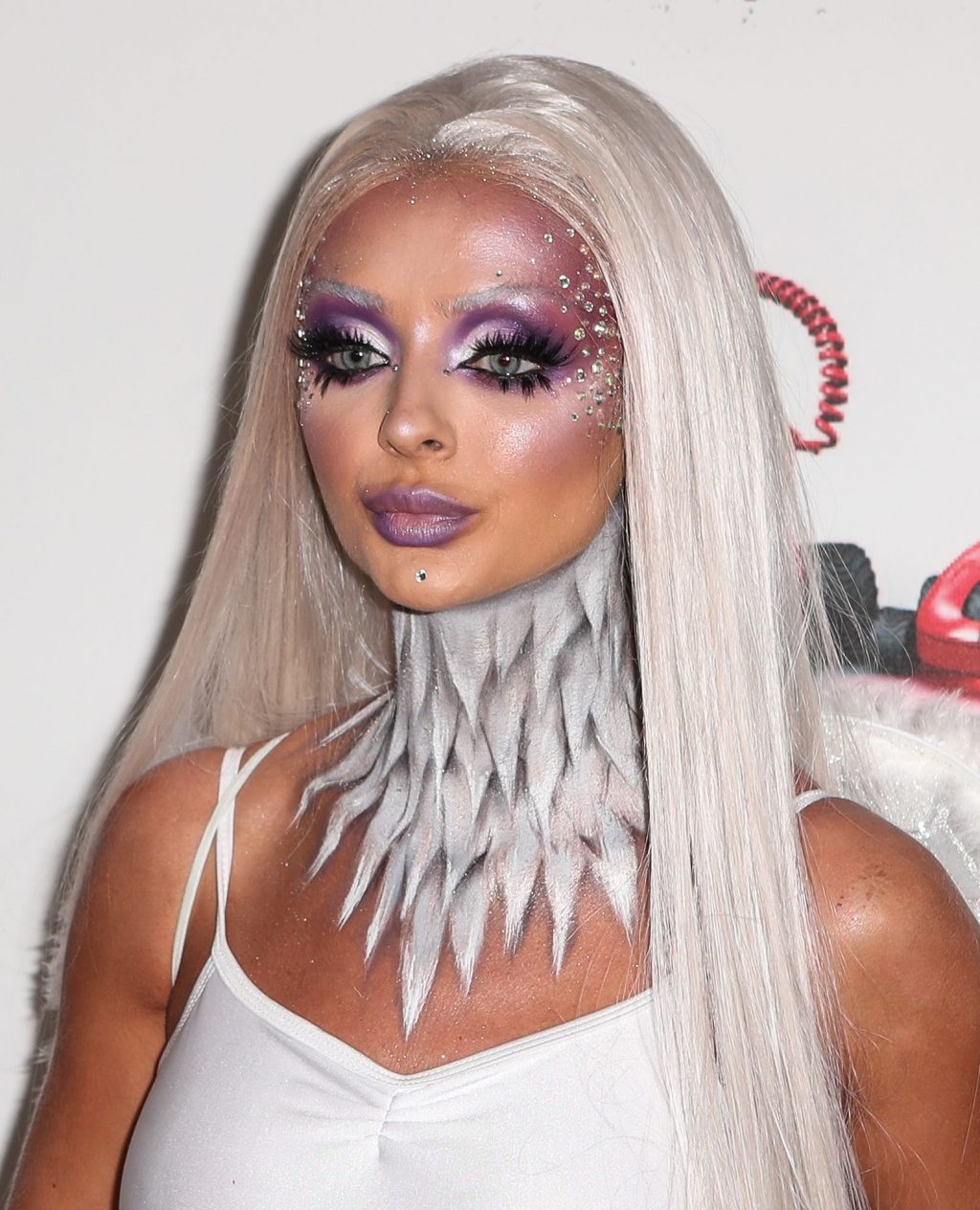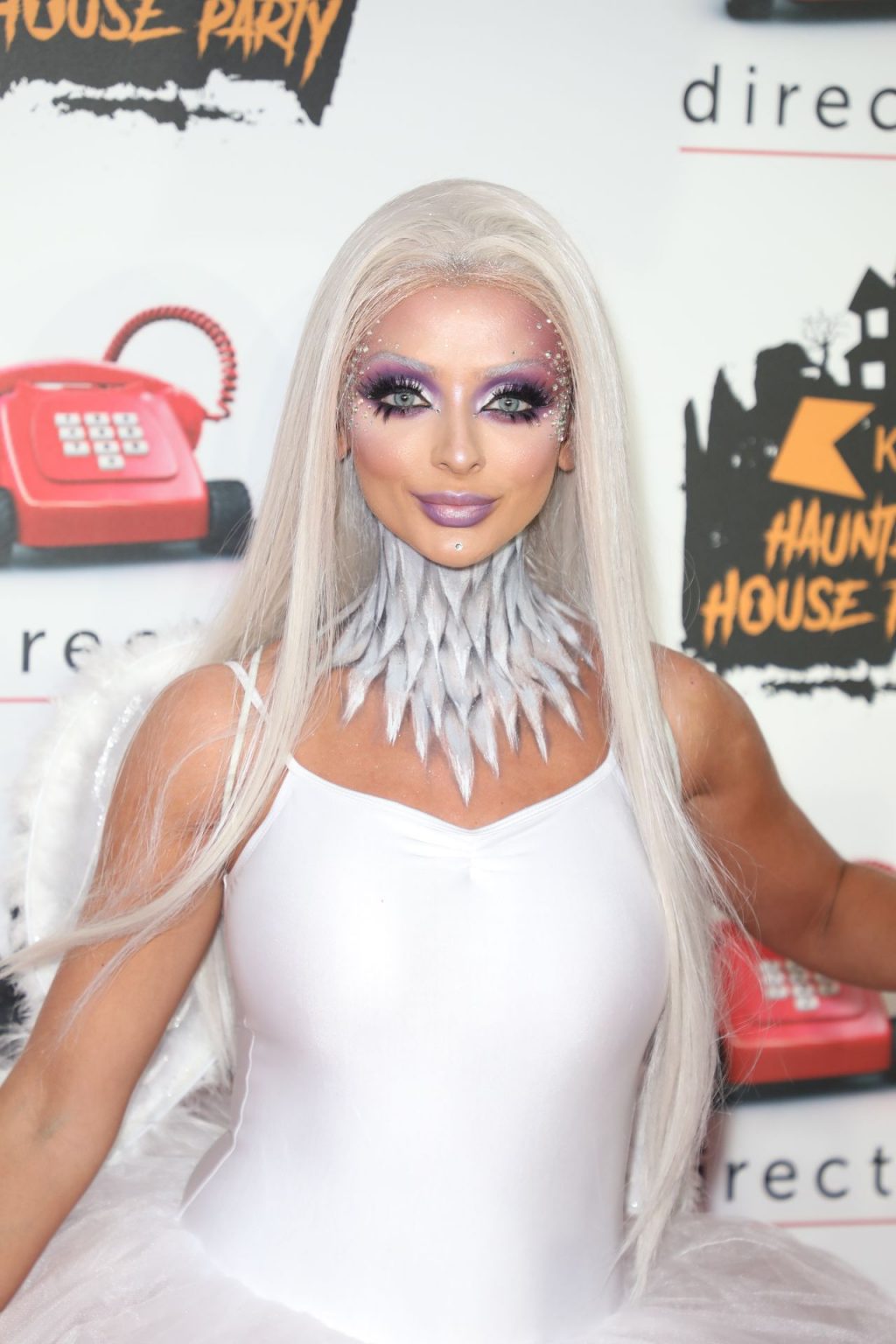 Makeup artist and reality TV show contestant Kady McDermott flaunts her innocent Halloween costume at the KISS Haunted House Party at the SSE Arena, Wembley, 10/25/2019.