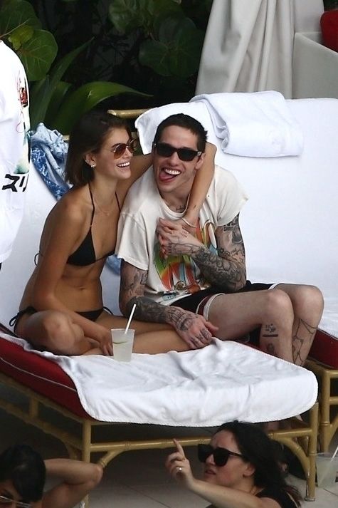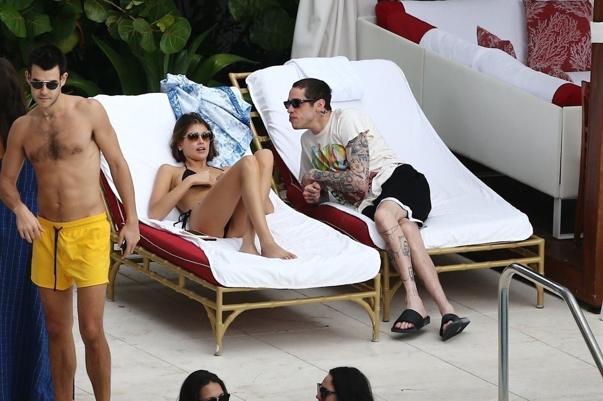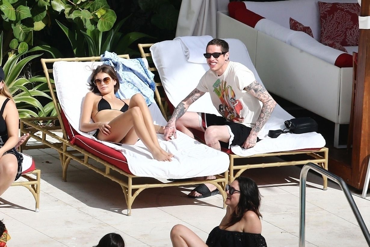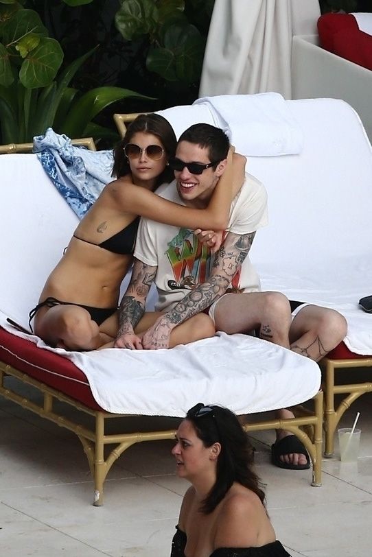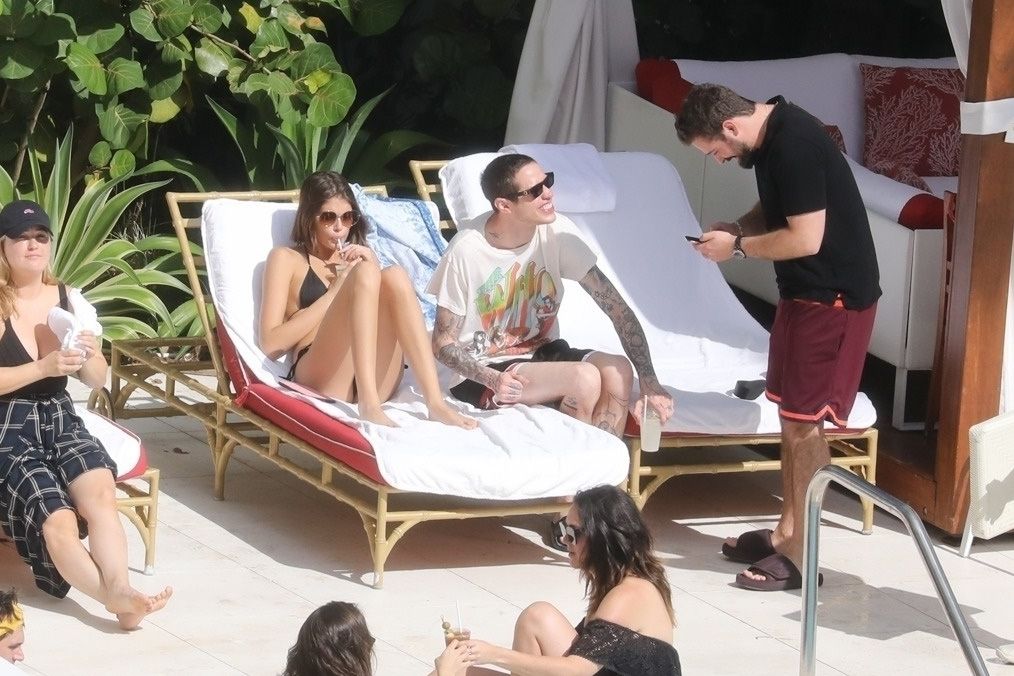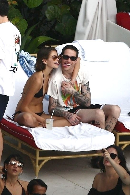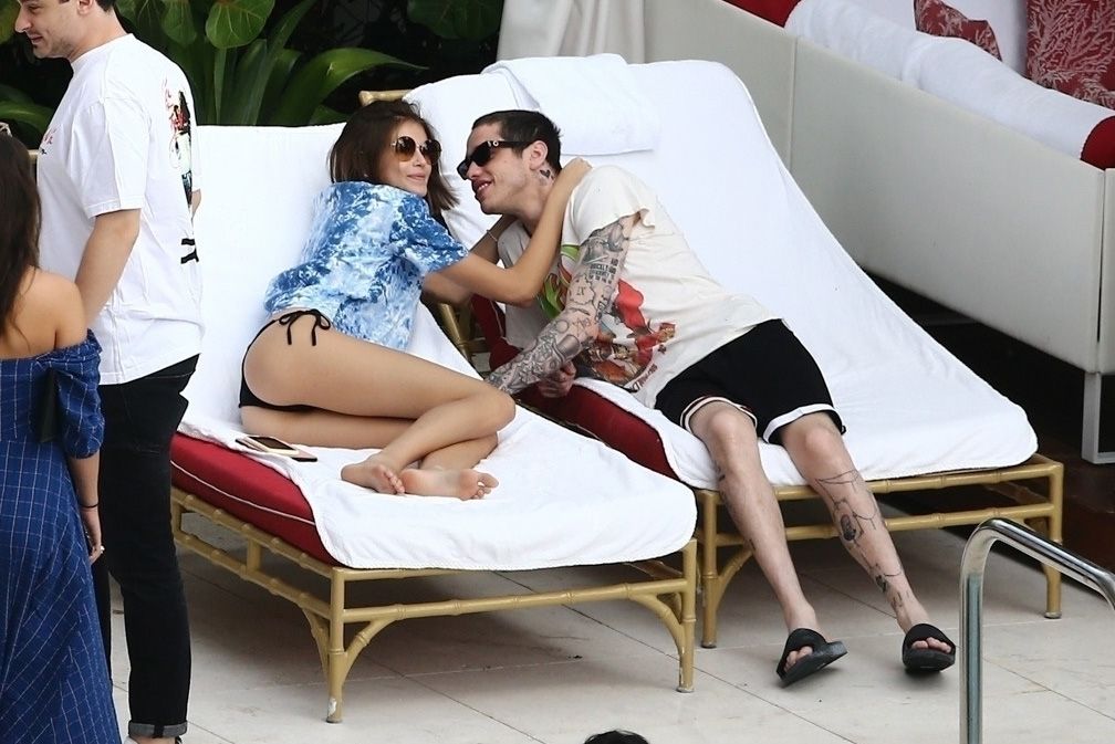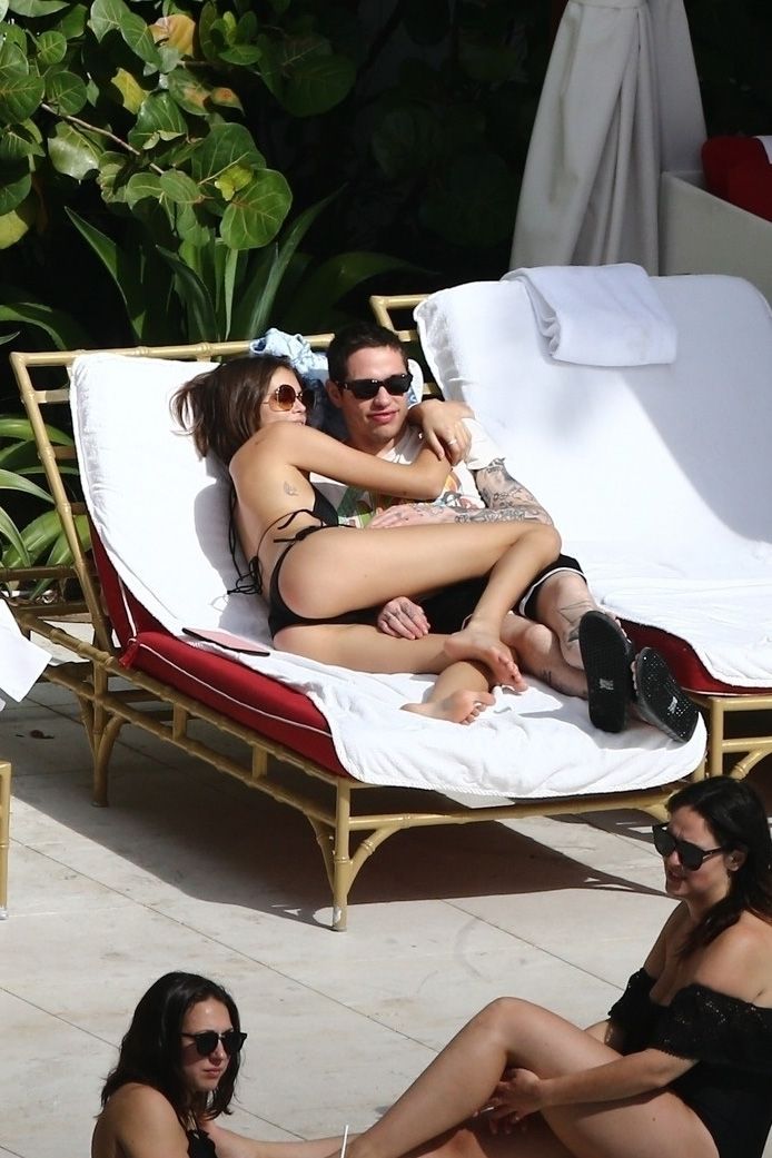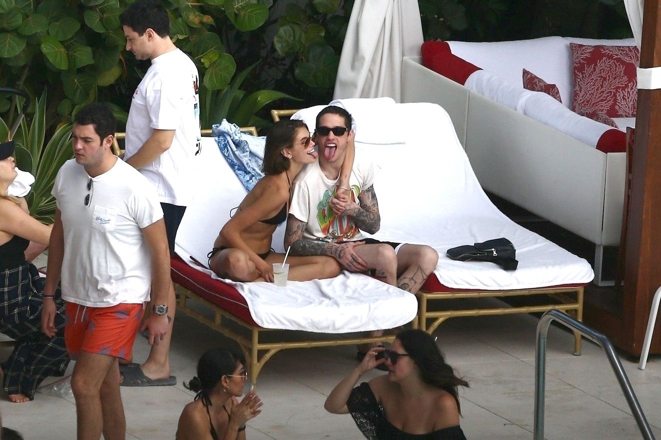 Pete Davidson and Kaia Gerber make out while vacationing together, 11/23/2019. The duo can’t seem to keep their hands off of each other as they confirm some kind of relationship. They are seen heavily kissing and holding hands poolside as they enjoy the Miami trip with friends.