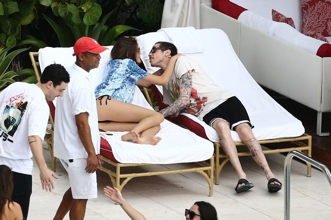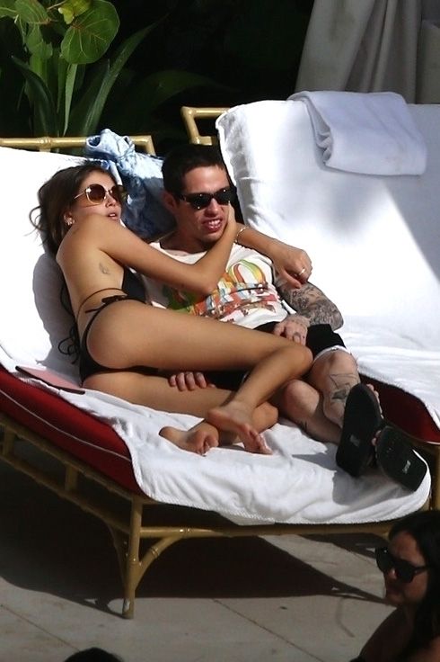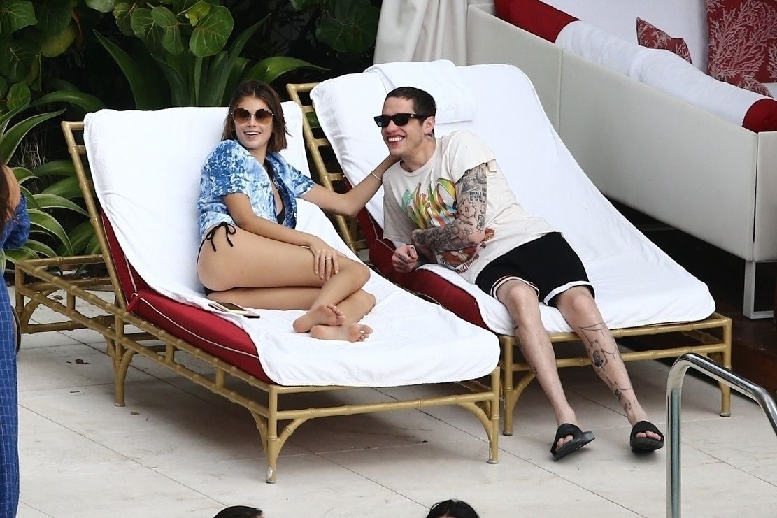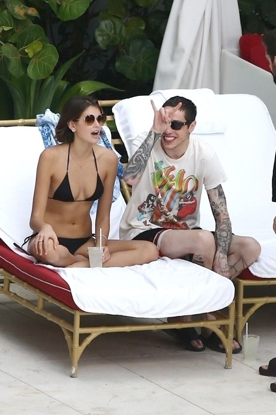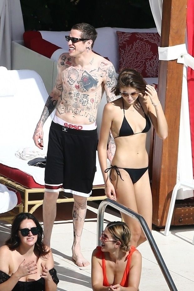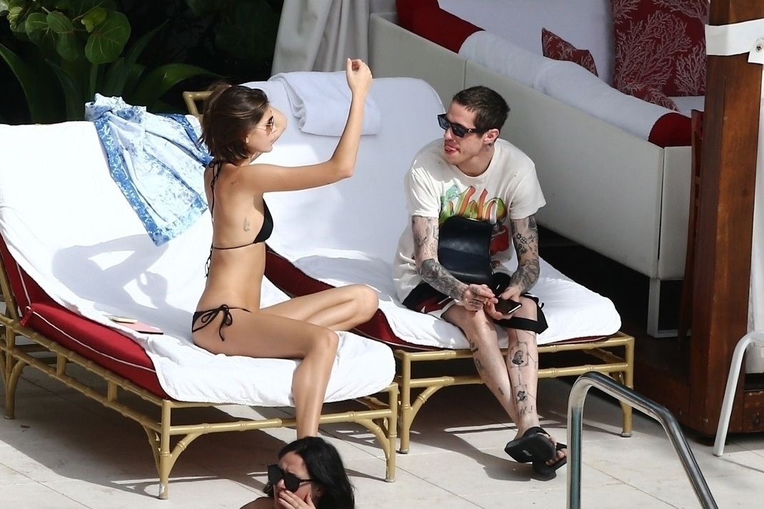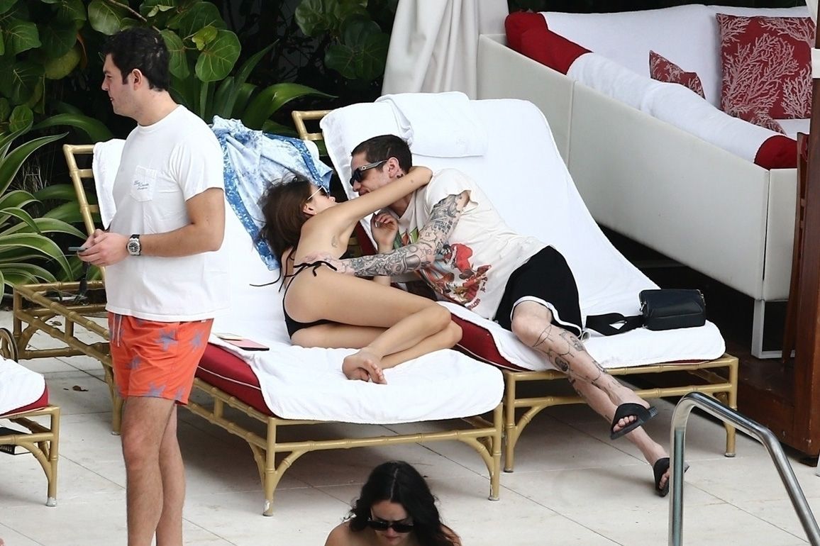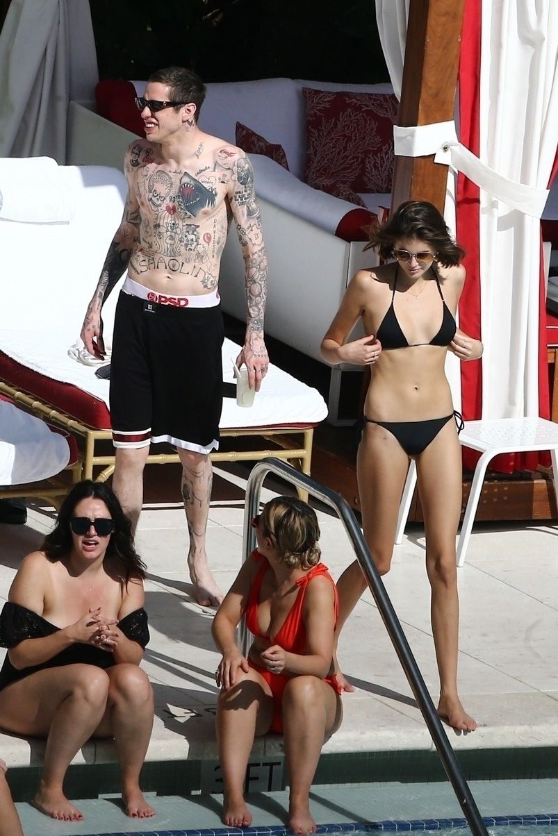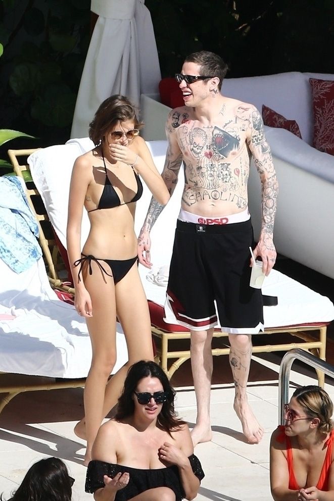 Pete Davidson and Kaia Gerber make out while vacationing together, 11/23/2019. The duo can’t seem to keep their hands off of each other as they confirm some kind of relationship. They are seen heavily kissing and holding hands poolside as they enjoy the Miami trip with friends.