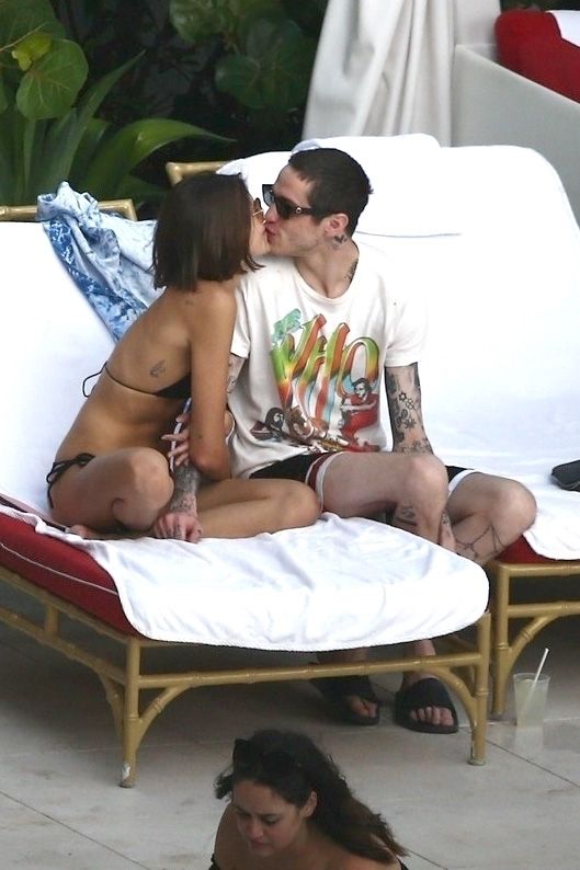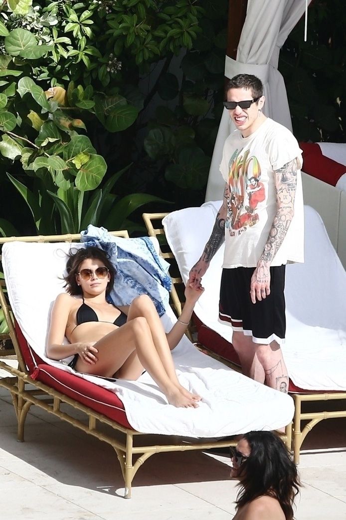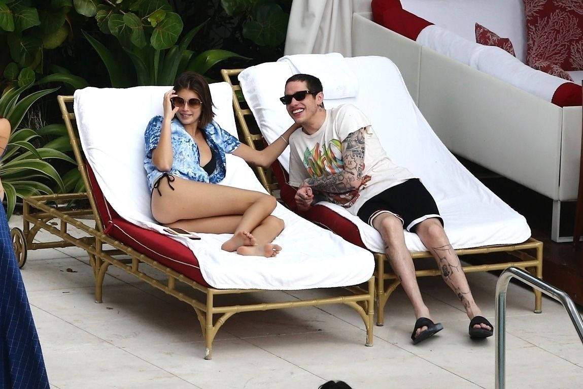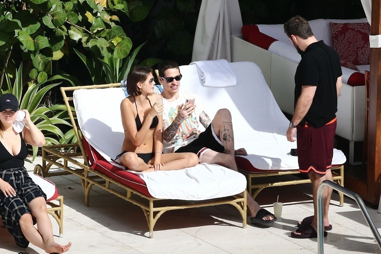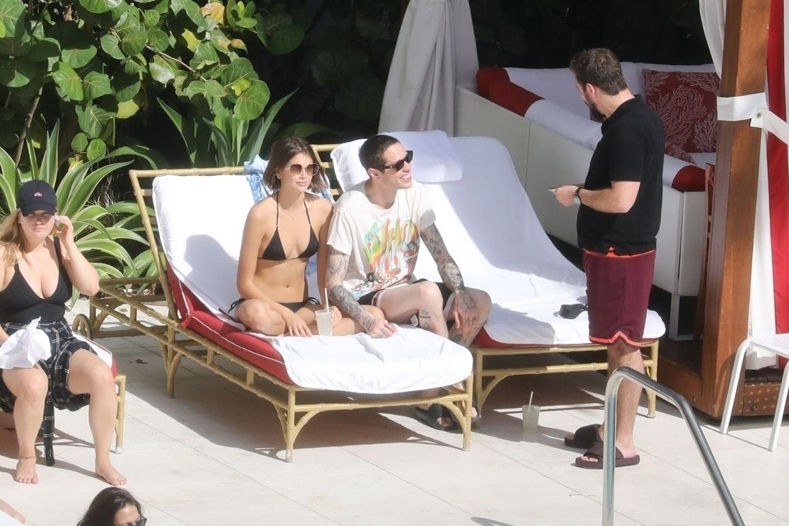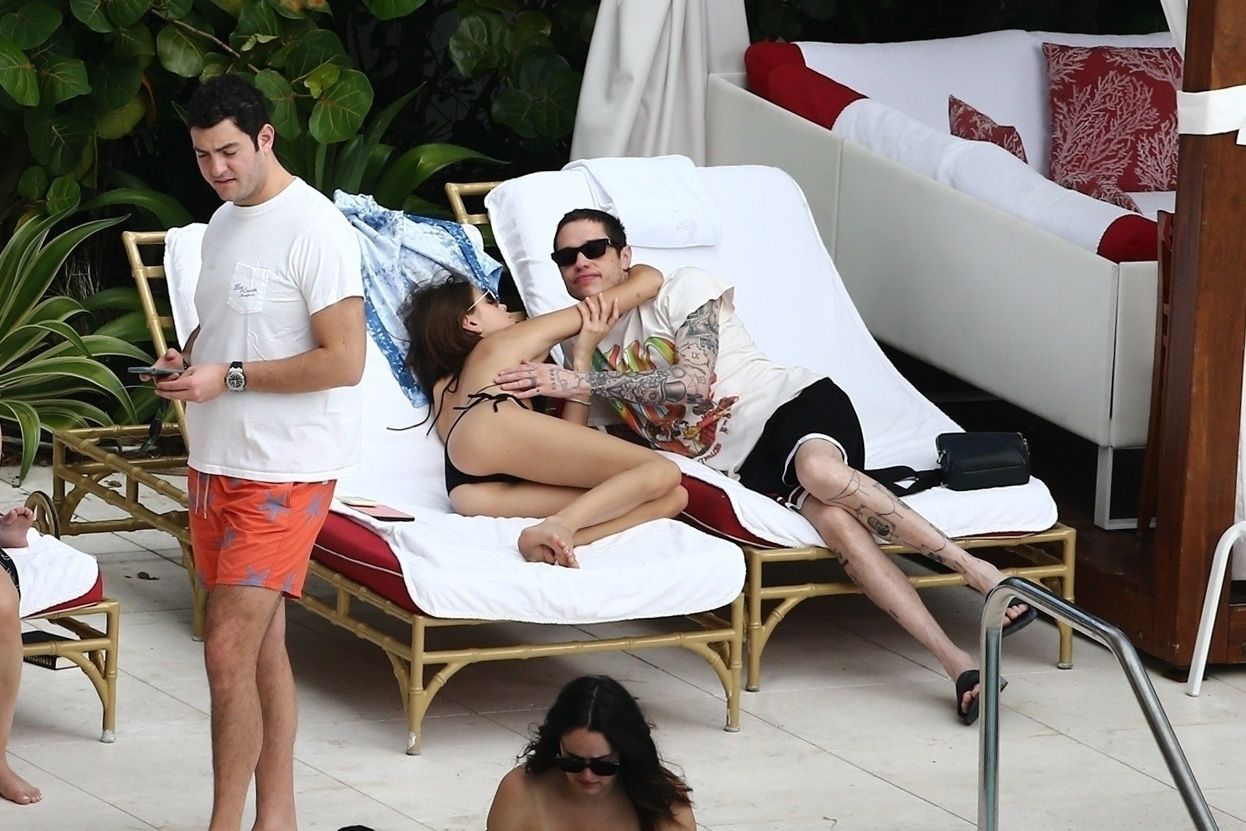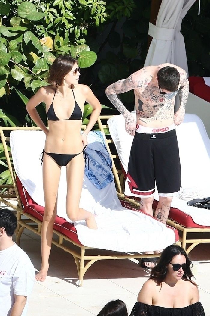 Pete Davidson and Kaia Gerber make out while vacationing together, 11/23/2019. The duo can’t seem to keep their hands off of each other as they confirm some kind of relationship. They are seen heavily kissing and holding hands poolside as they enjoy the Miami trip with friends.