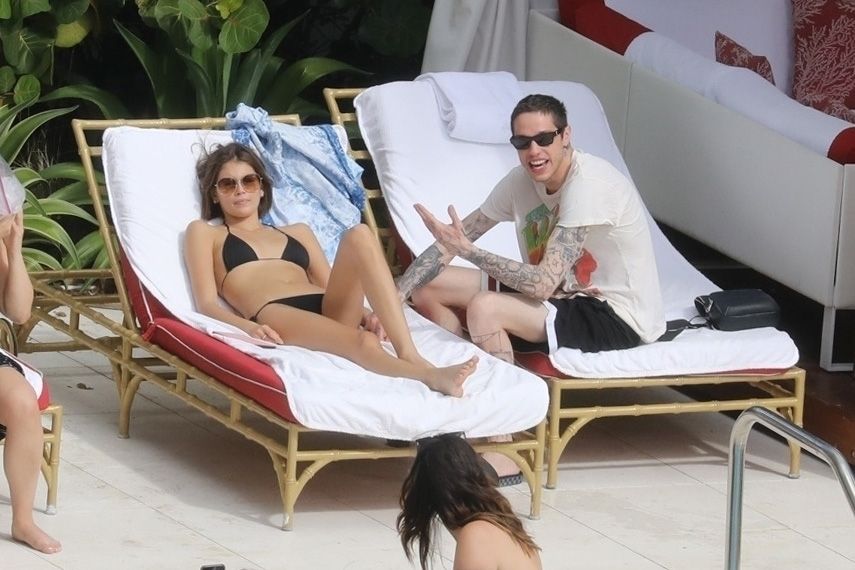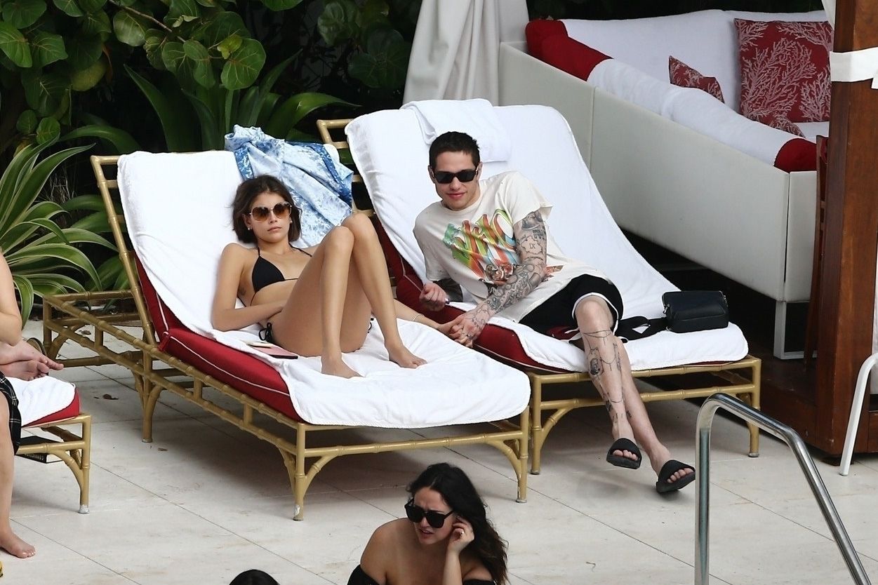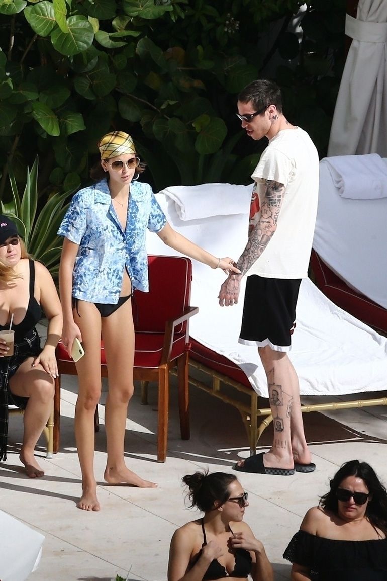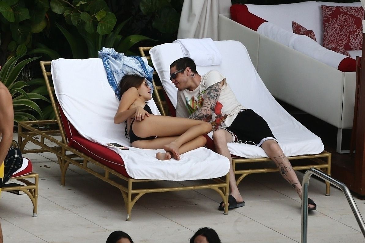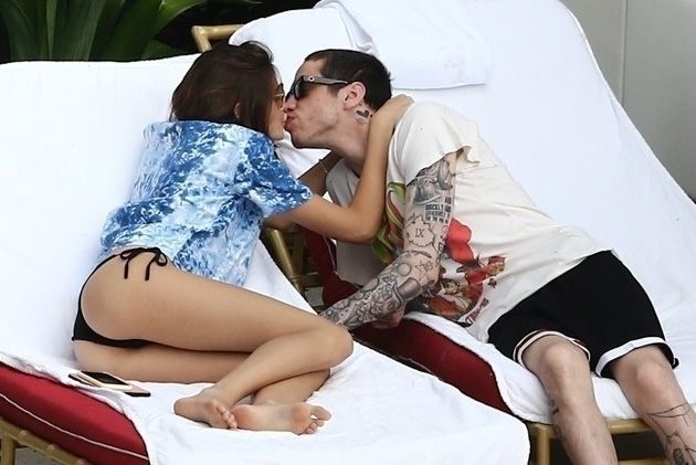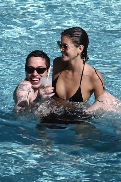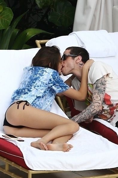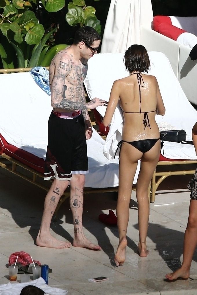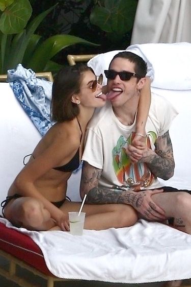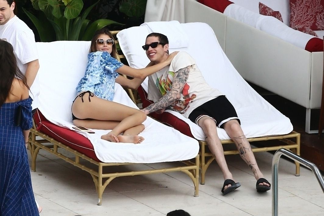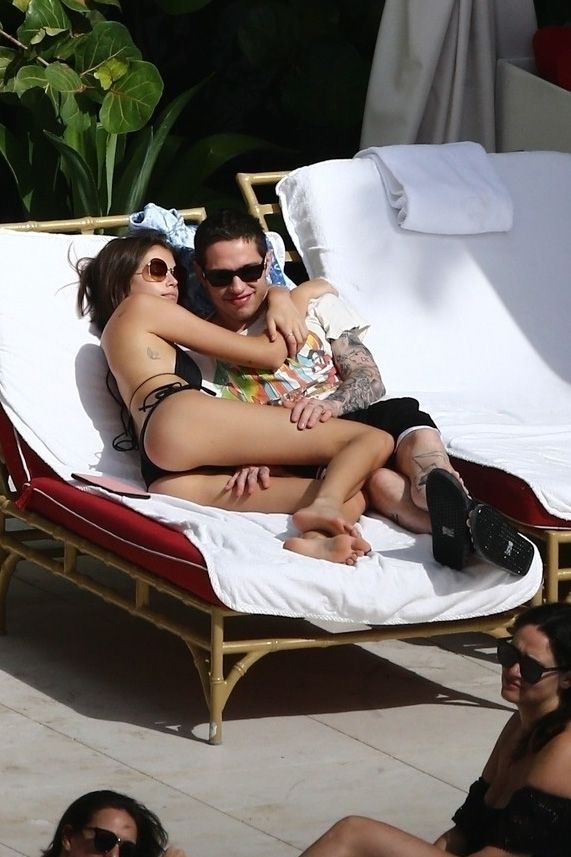 Pete Davidson and Kaia Gerber make out while vacationing together, 11/23/2019. The duo can’t seem to keep their hands off of each other as they confirm some kind of relationship. They are seen heavily kissing and holding hands poolside as they enjoy the Miami trip with friends.
