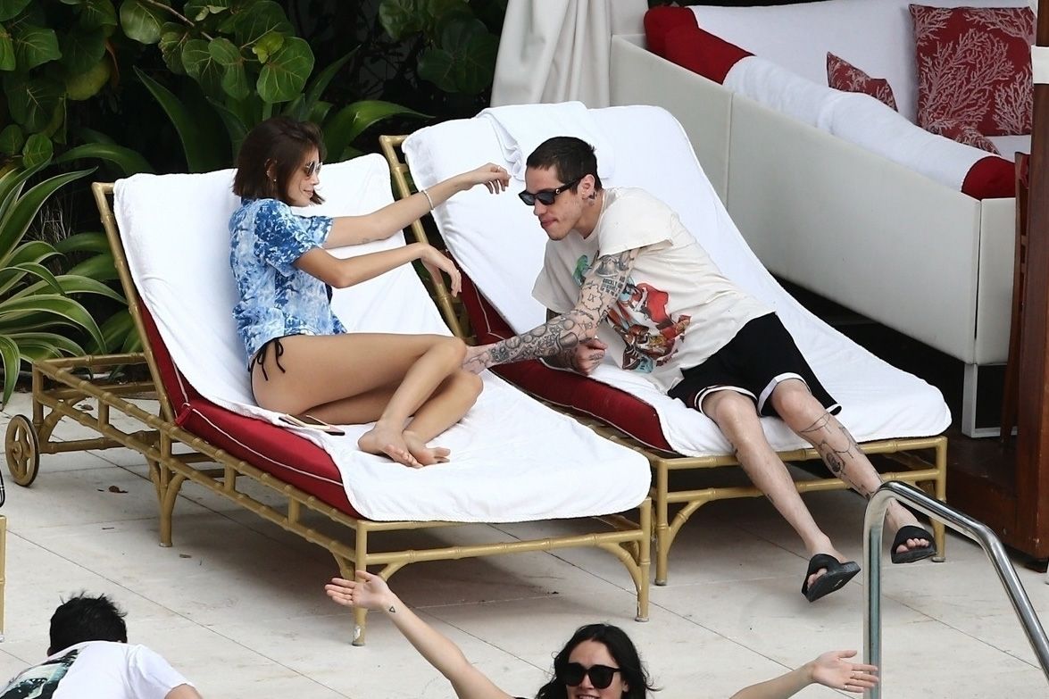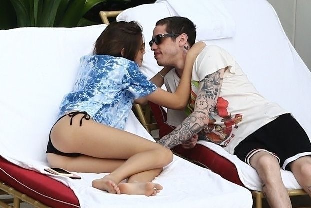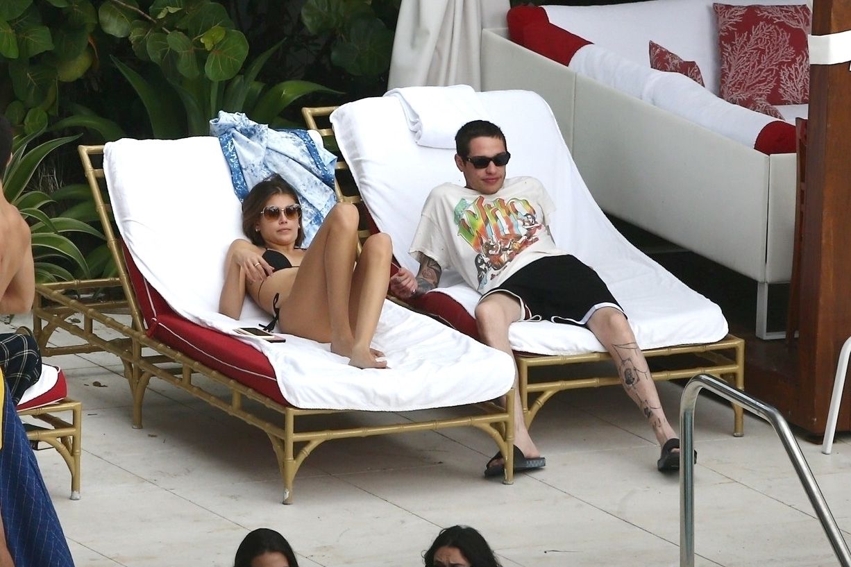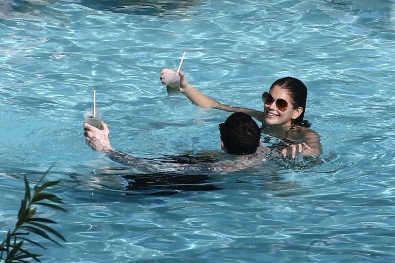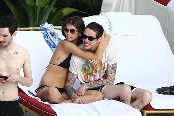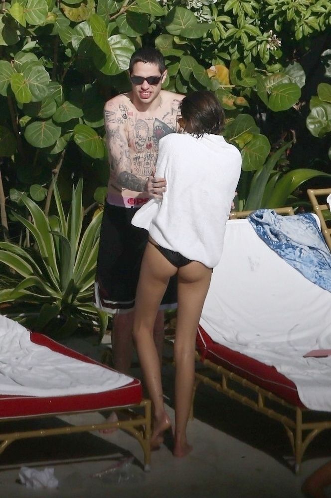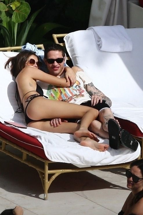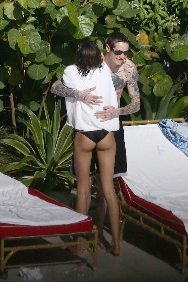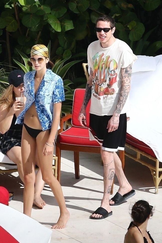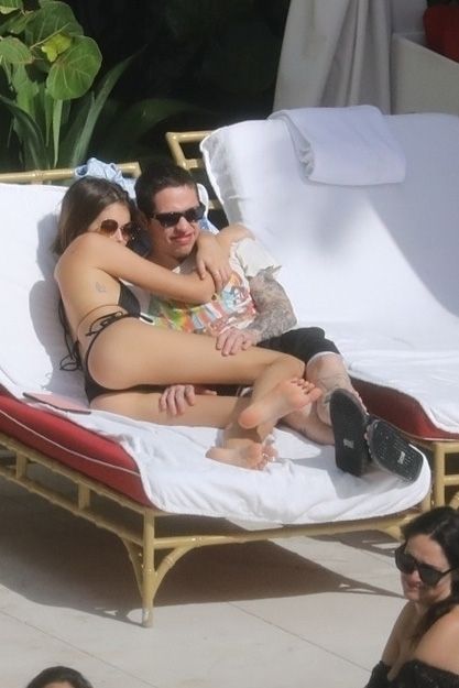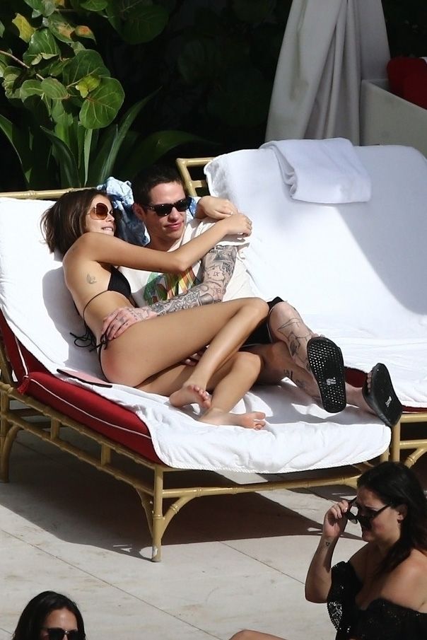Pete Davidson and Kaia Gerber make out while vacationing together, 11/23/2019. The duo can’t seem to keep their hands off of each other as they confirm some kind of relationship. They are seen heavily kissing and holding hands poolside as they enjoy the Miami trip with friends.