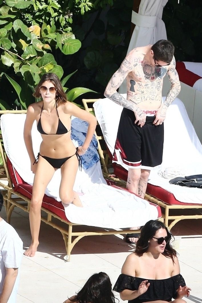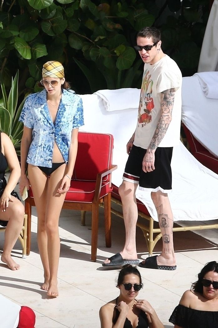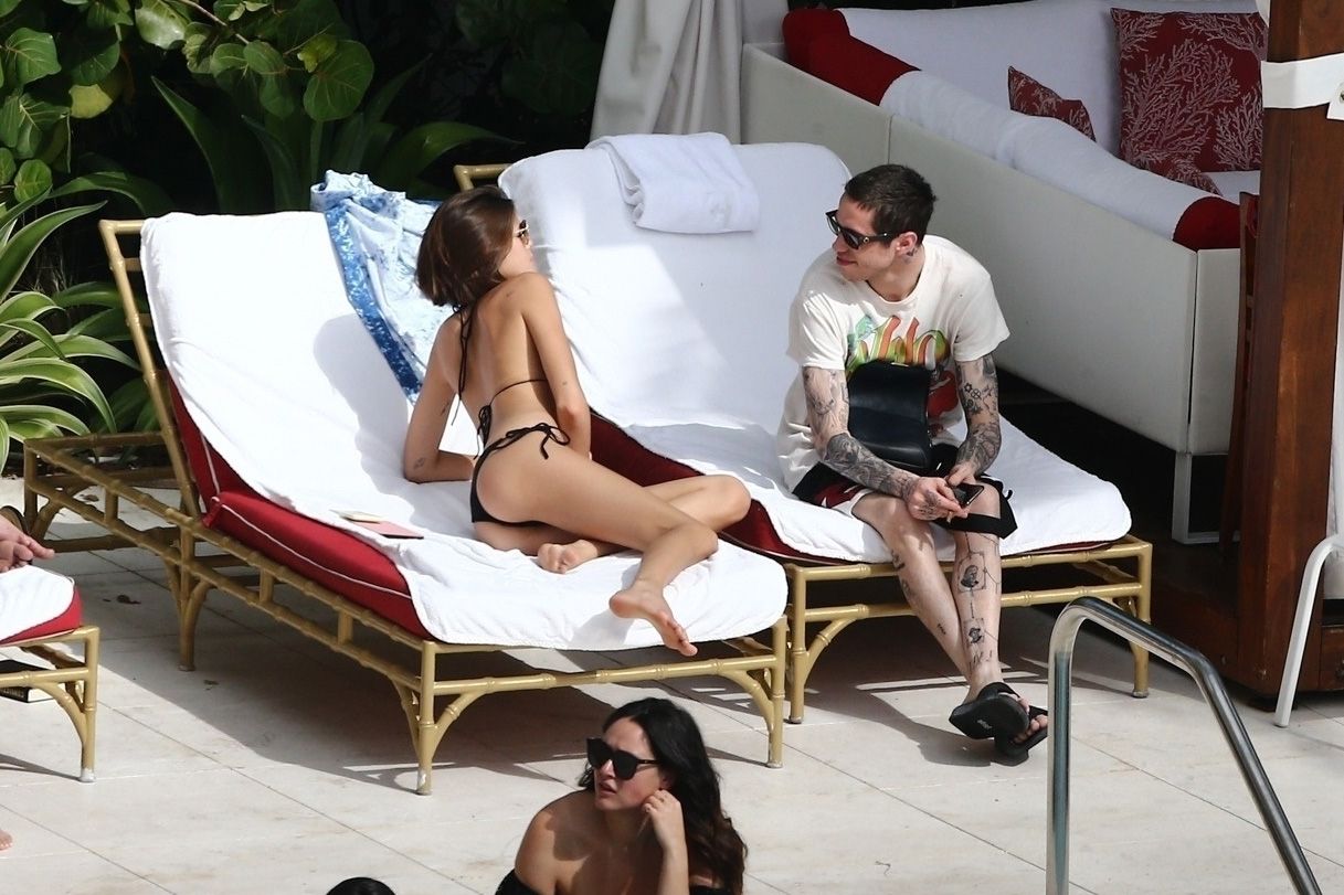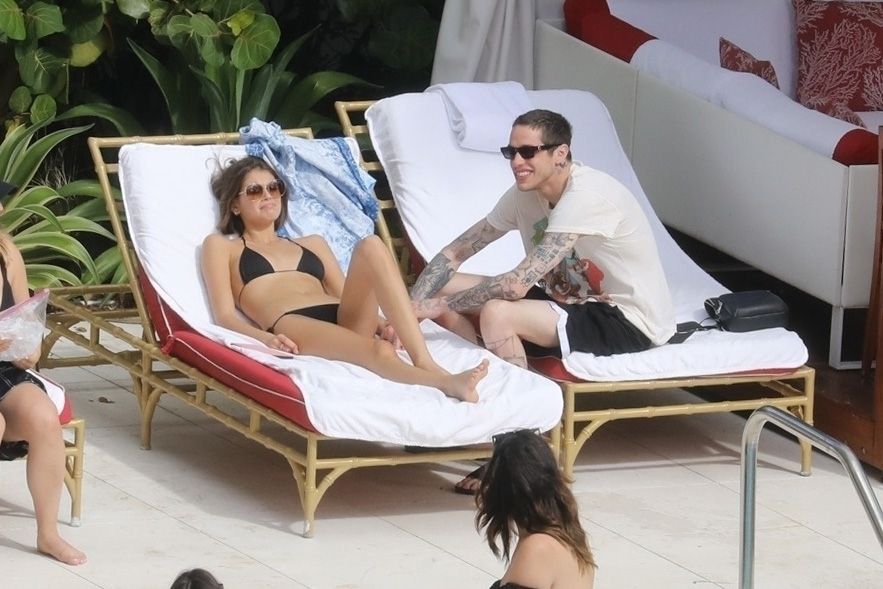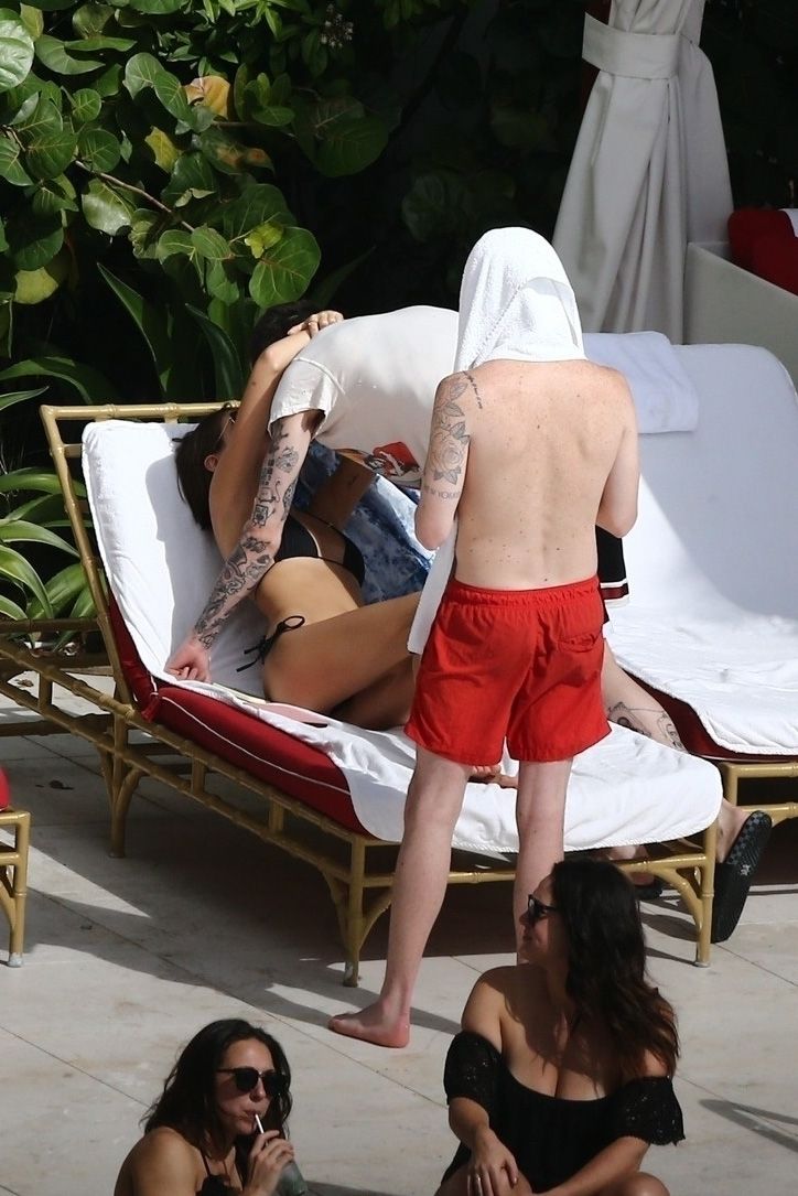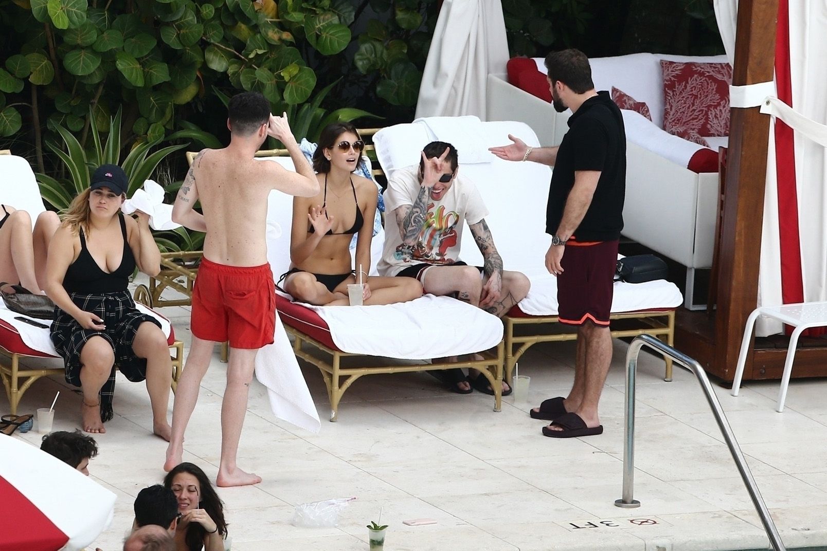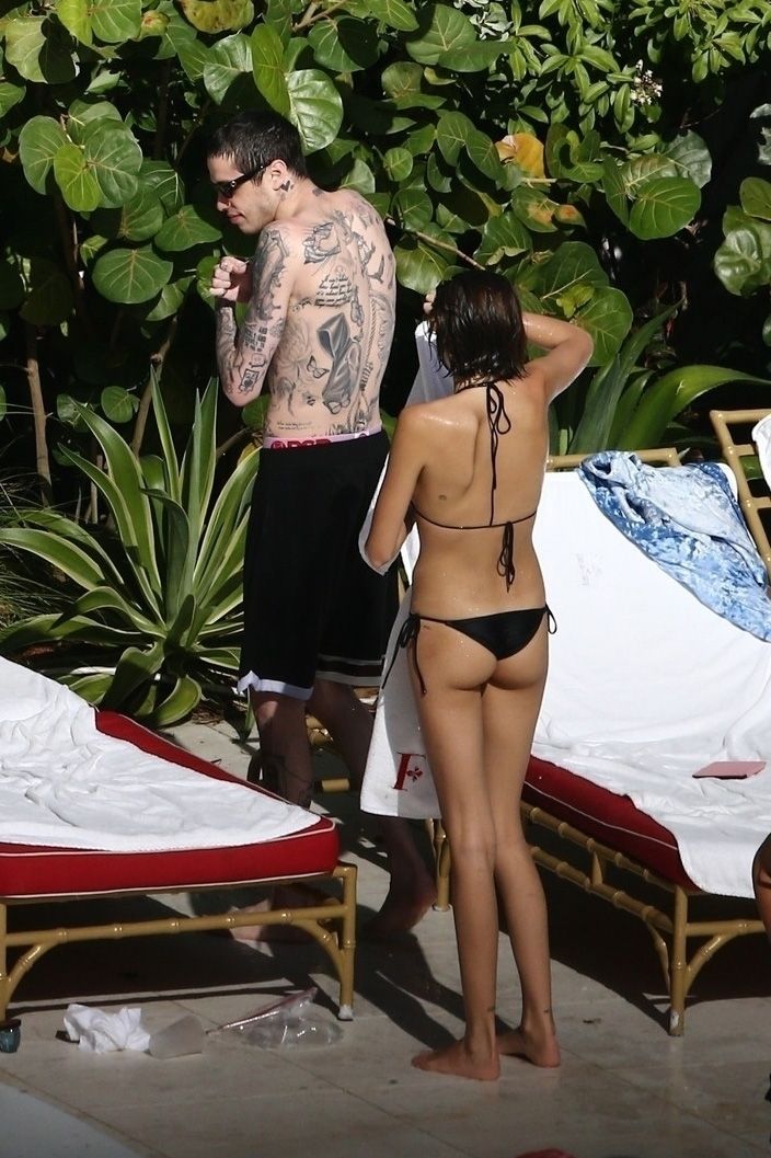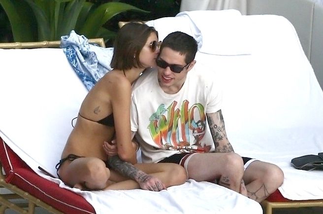 Pete Davidson and Kaia Gerber make out while vacationing together, 11/23/2019. The duo can’t seem to keep their hands off of each other as they confirm some kind of relationship. They are seen heavily kissing and holding hands poolside as they enjoy the Miami trip with friends.