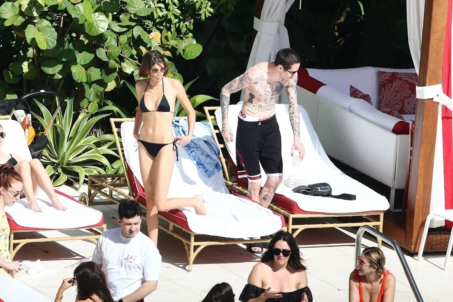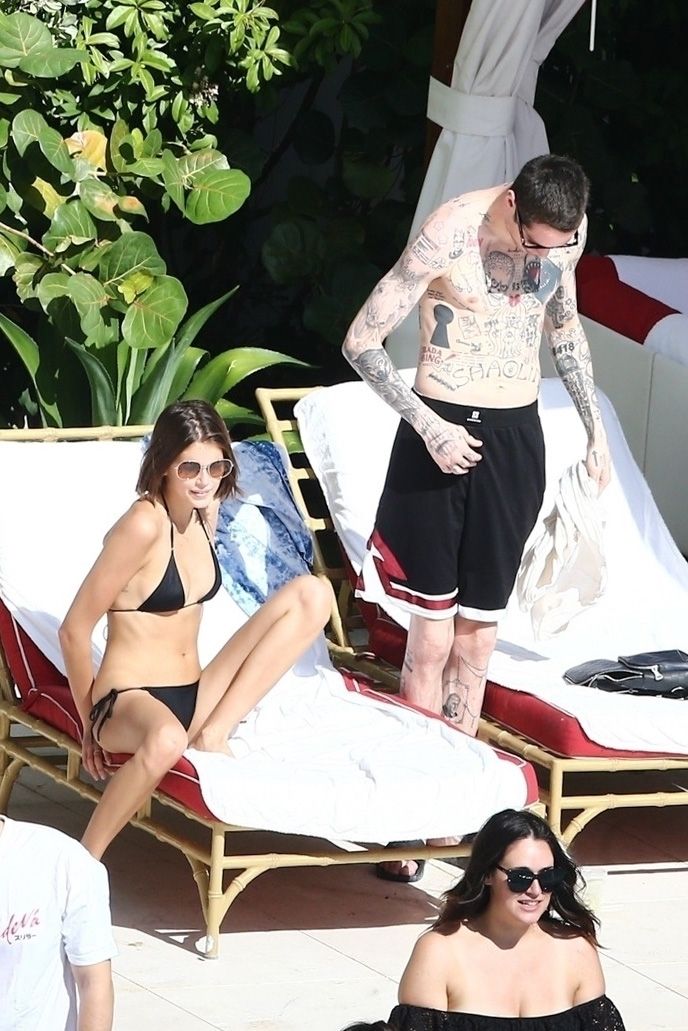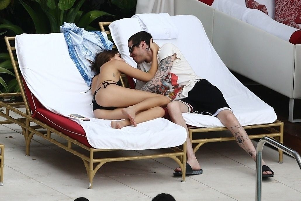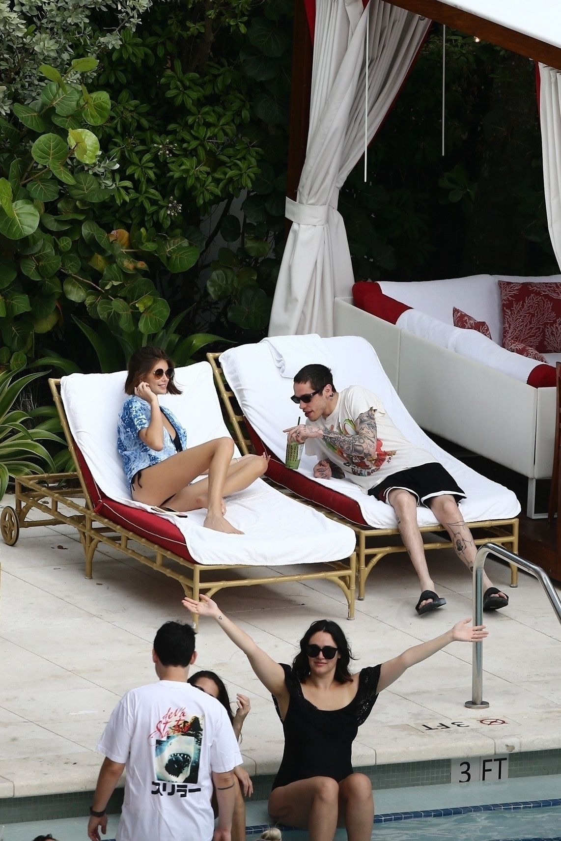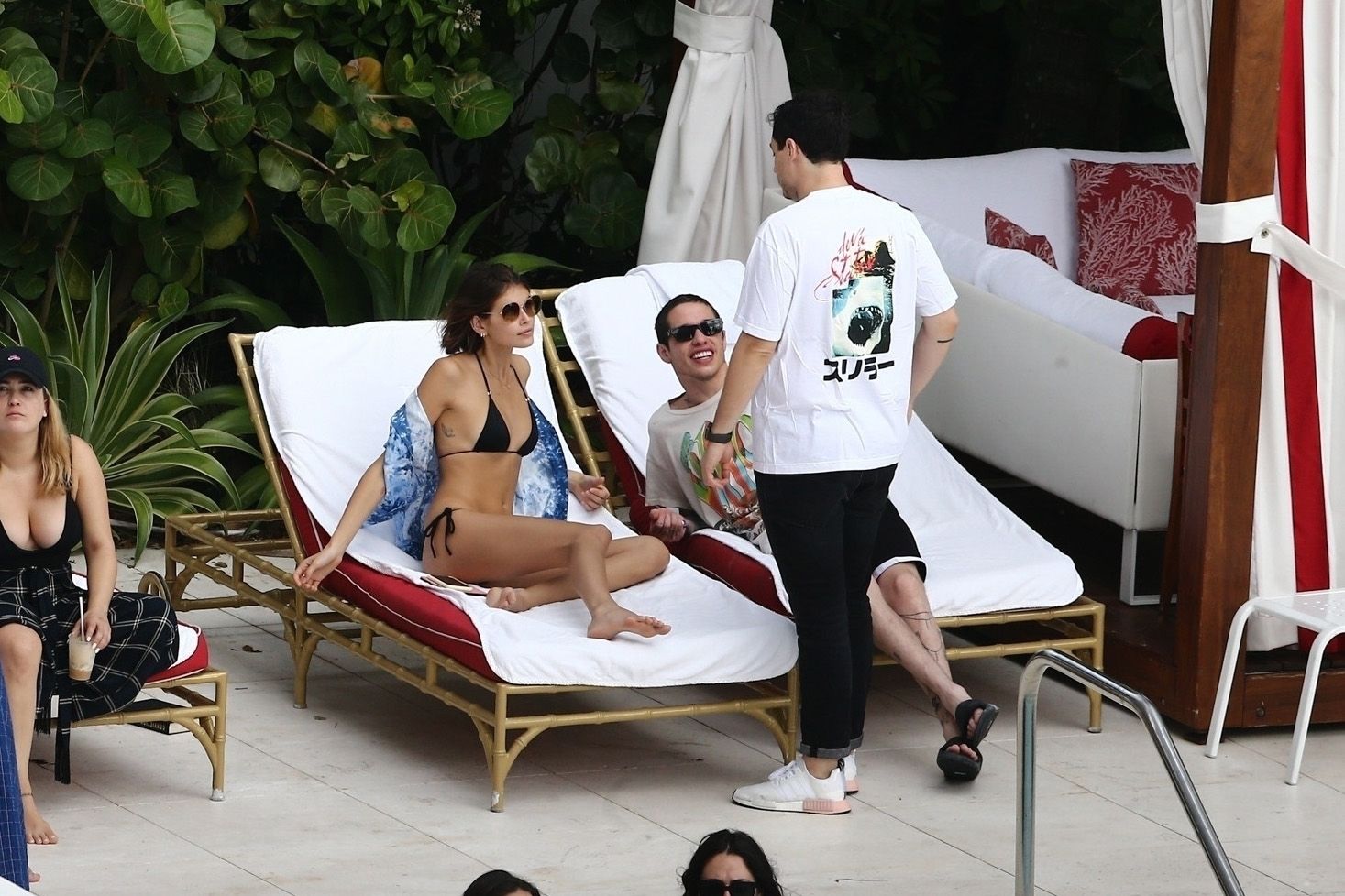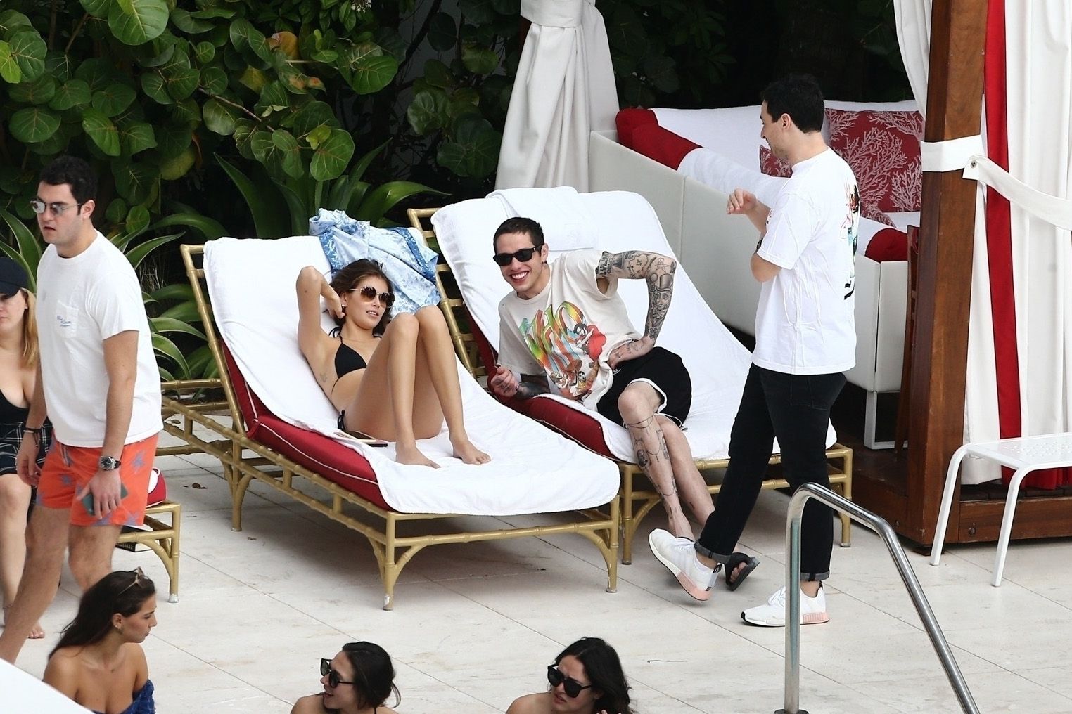 Pete Davidson and Kaia Gerber make out while vacationing together, 11/23/2019. The duo can’t seem to keep their hands off of each other as they confirm some kind of relationship. They are seen heavily kissing and holding hands poolside as they enjoy the Miami trip with friends.