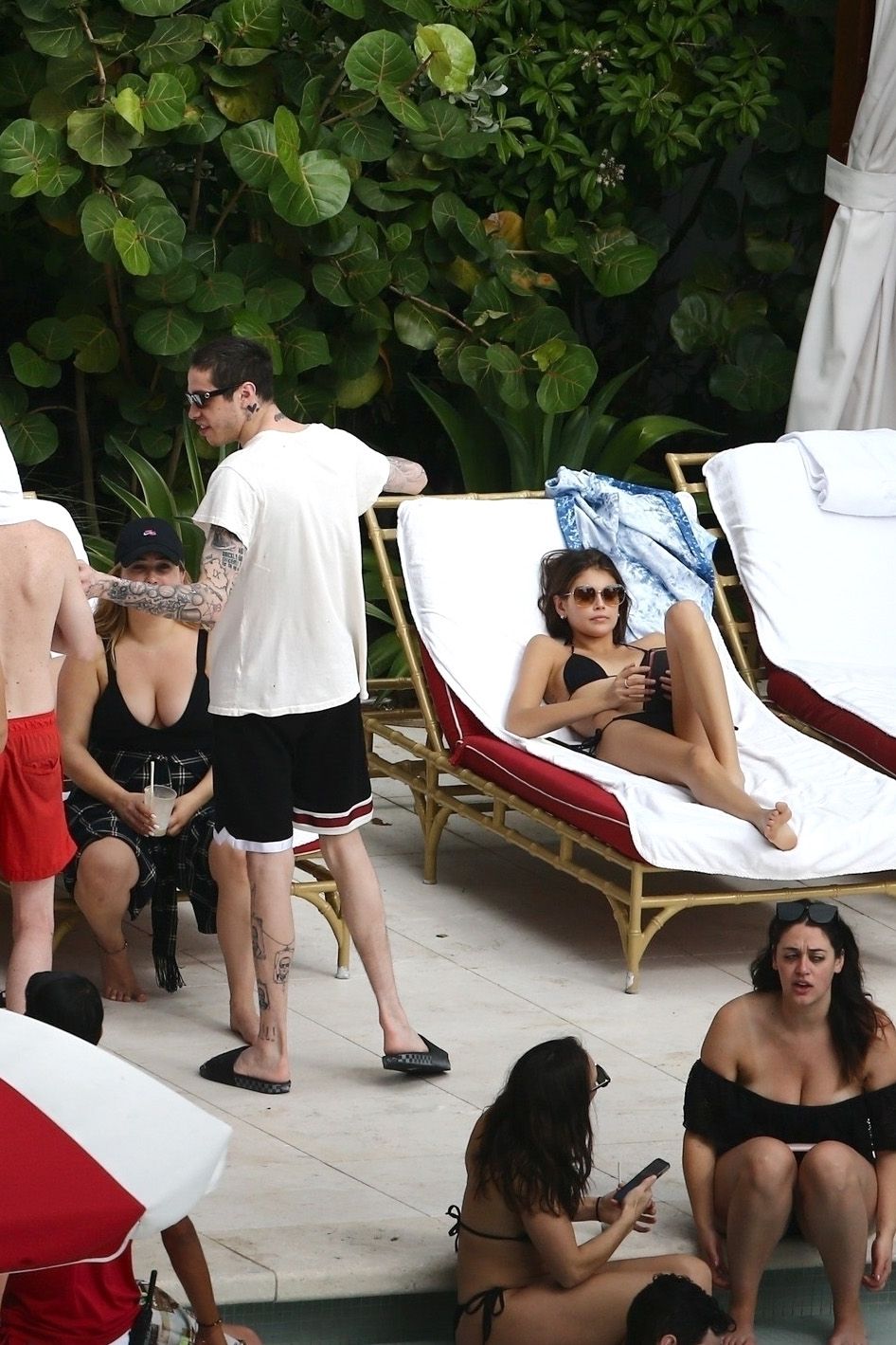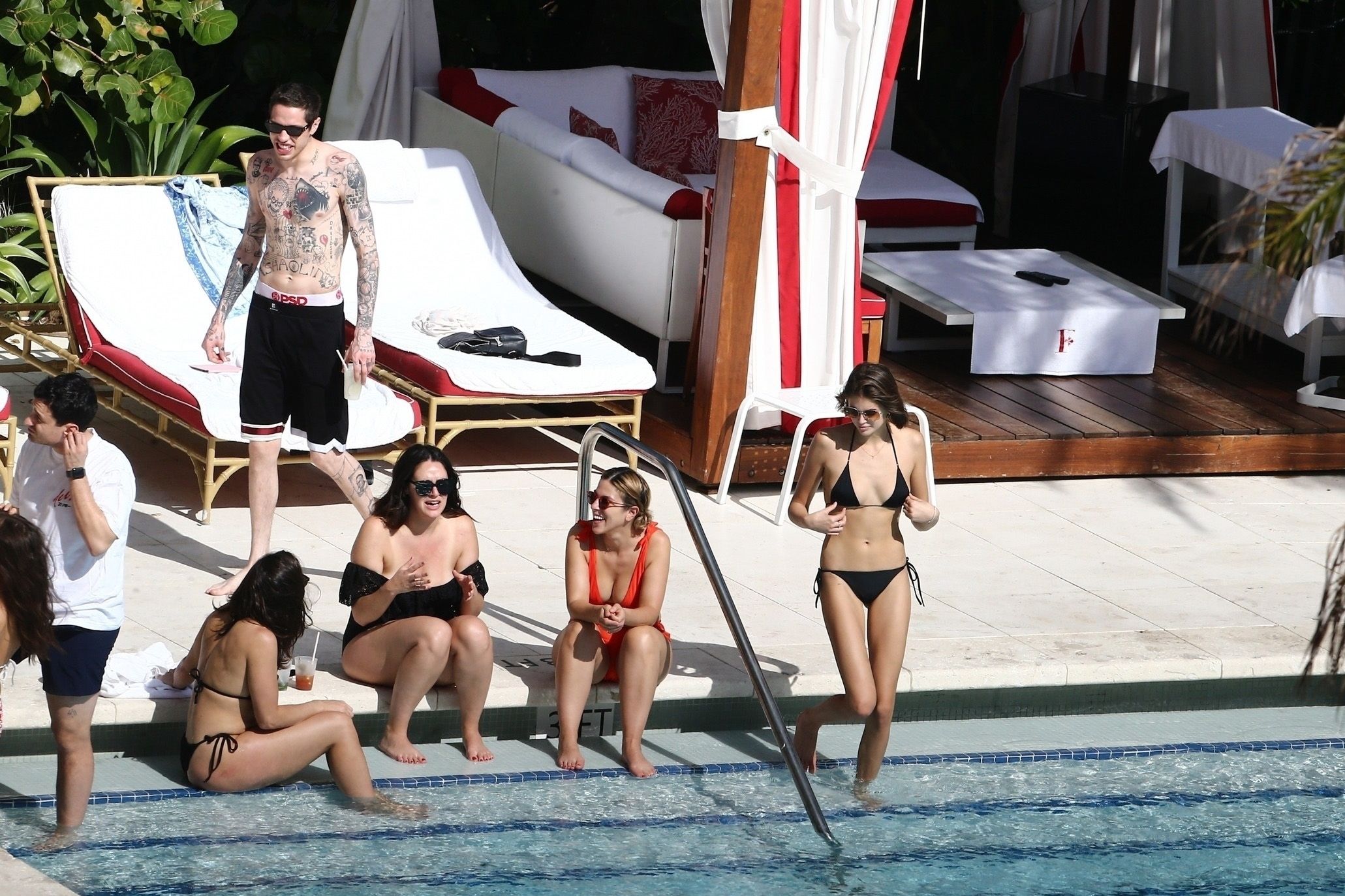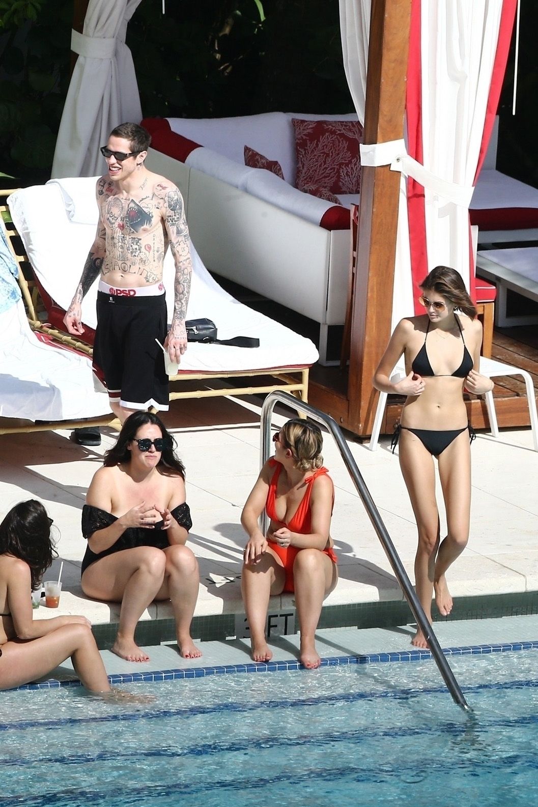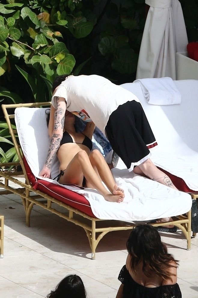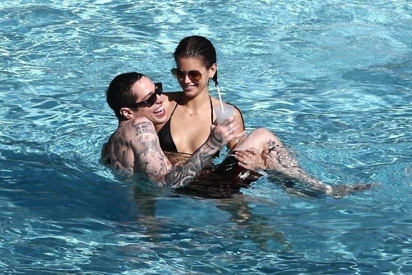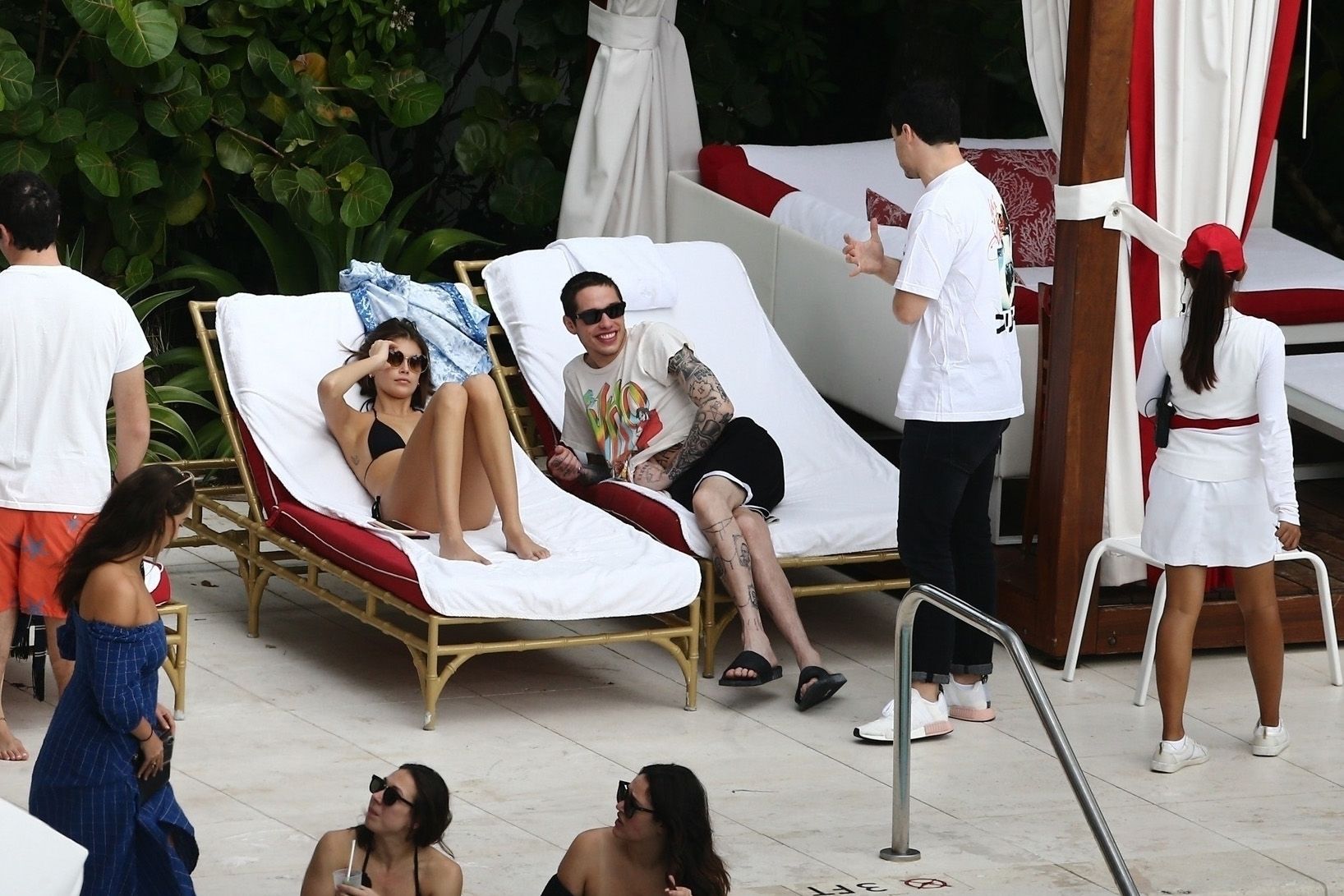 Pete Davidson and Kaia Gerber make out while vacationing together, 11/23/2019. The duo can’t seem to keep their hands off of each other as they confirm some kind of relationship. They are seen heavily kissing and holding hands poolside as they enjoy the Miami trip with friends.