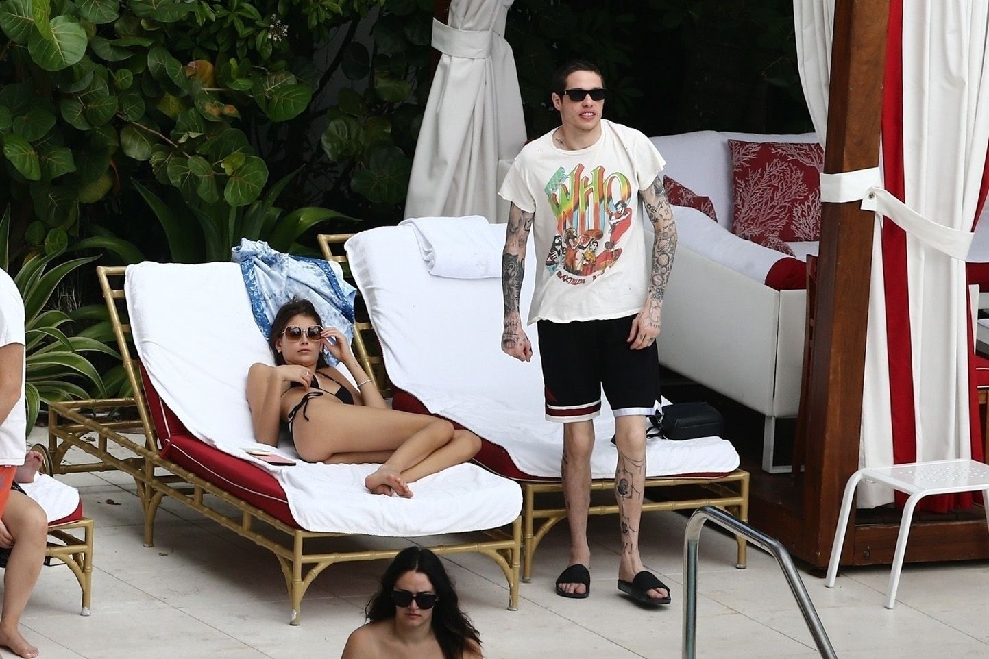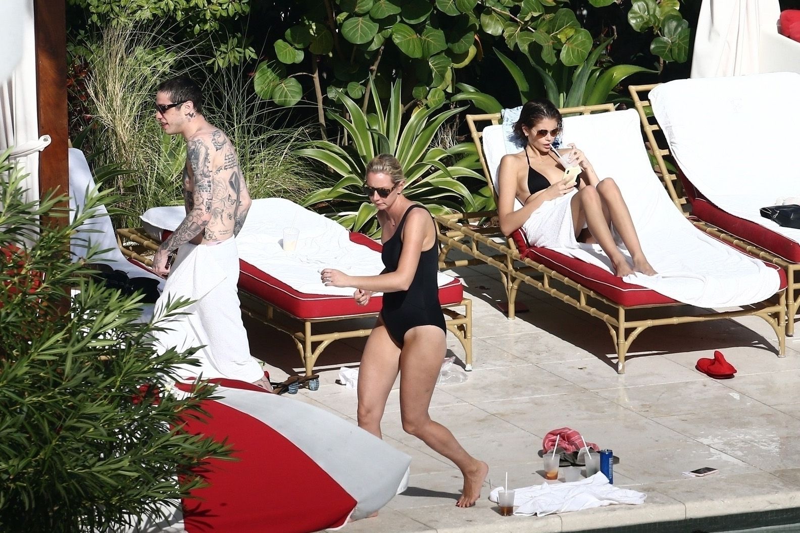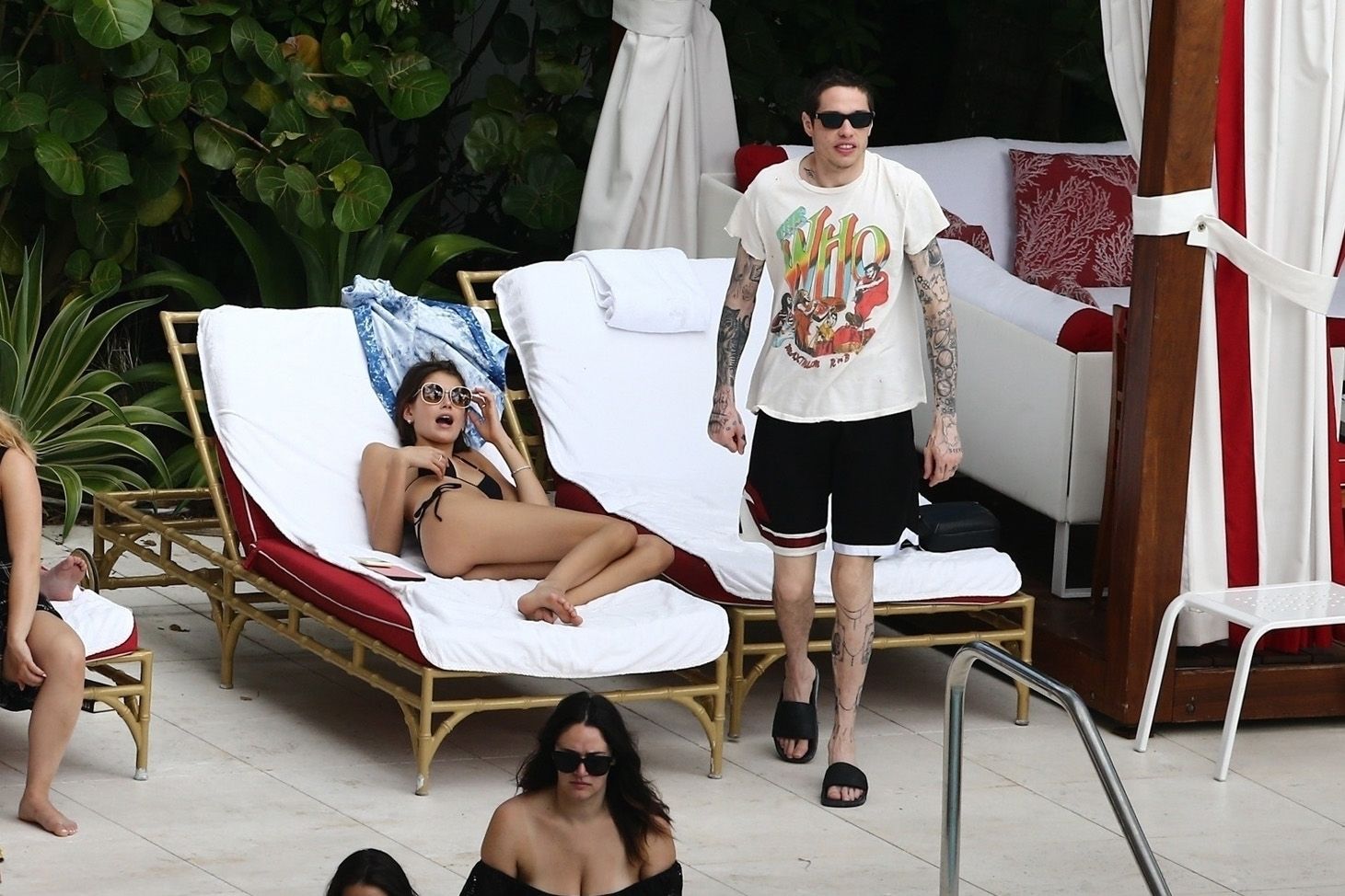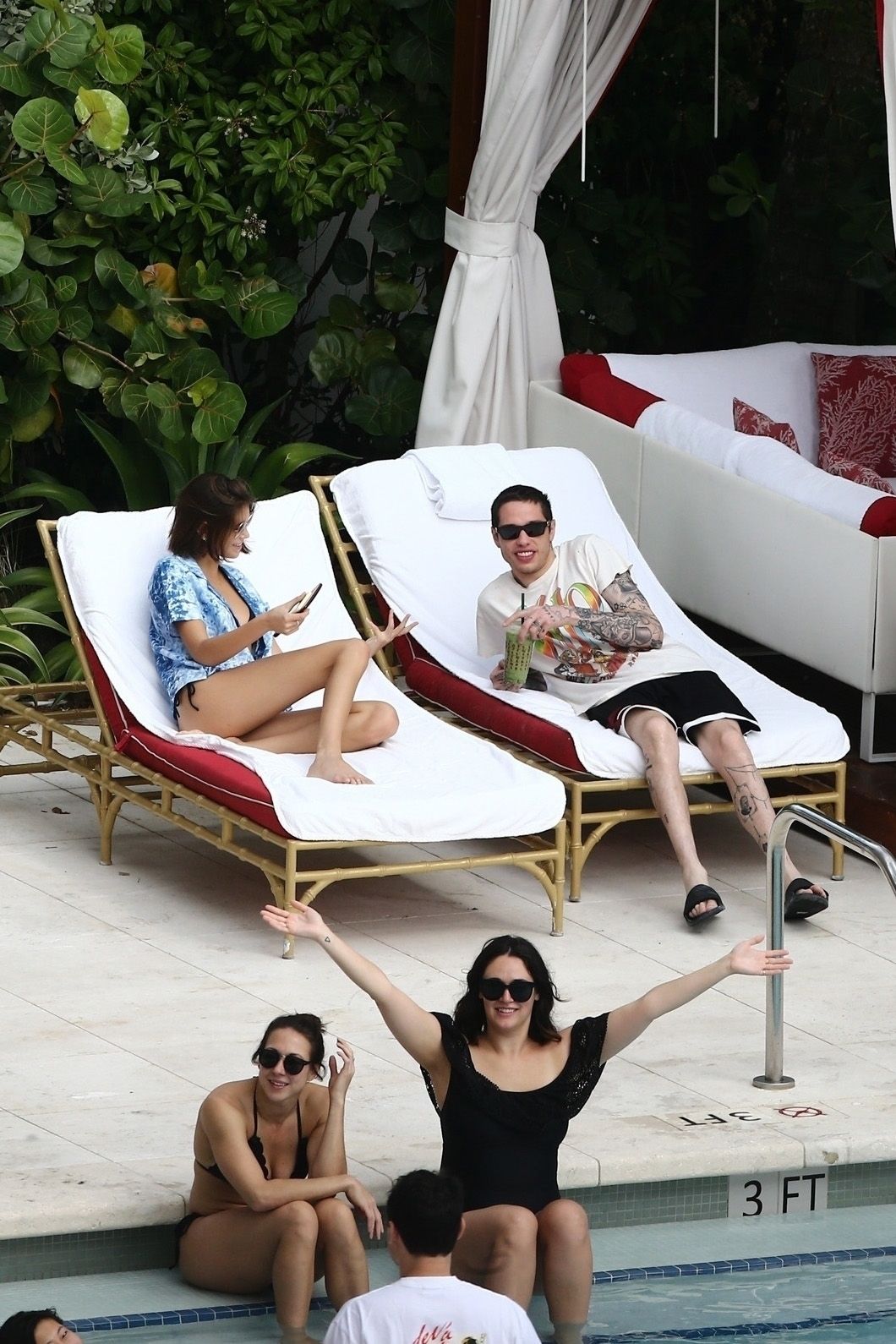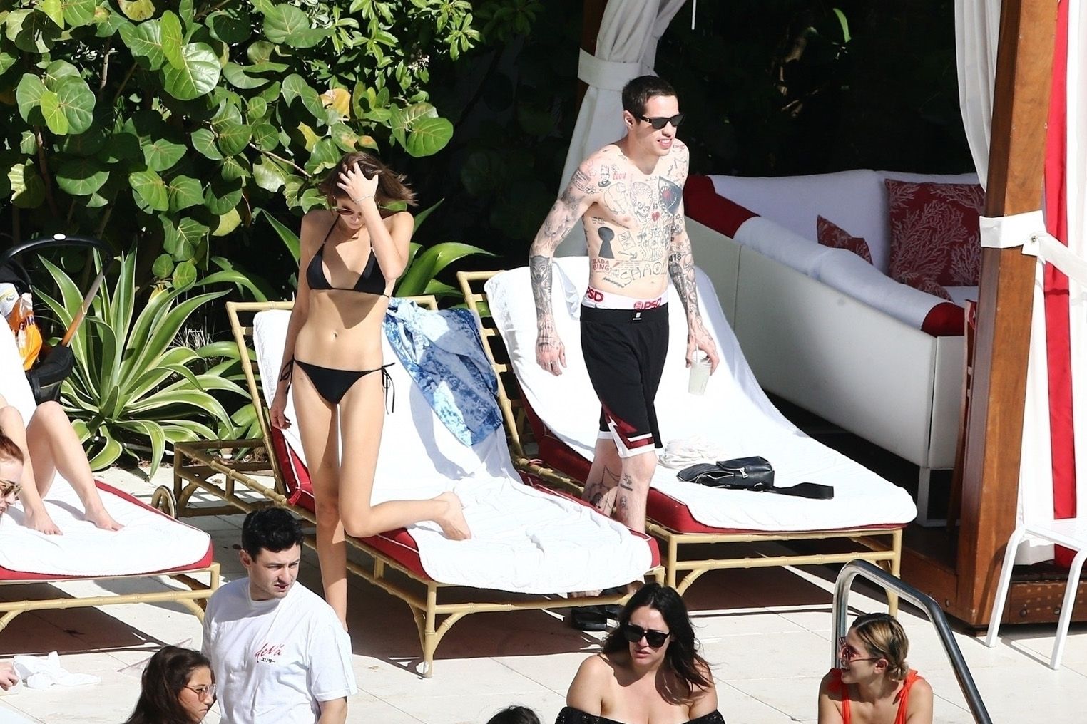 Pete Davidson and Kaia Gerber make out while vacationing together, 11/23/2019. The duo can’t seem to keep their hands off of each other as they confirm some kind of relationship. They are seen heavily kissing and holding hands poolside as they enjoy the Miami trip with friends.