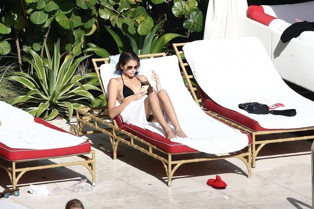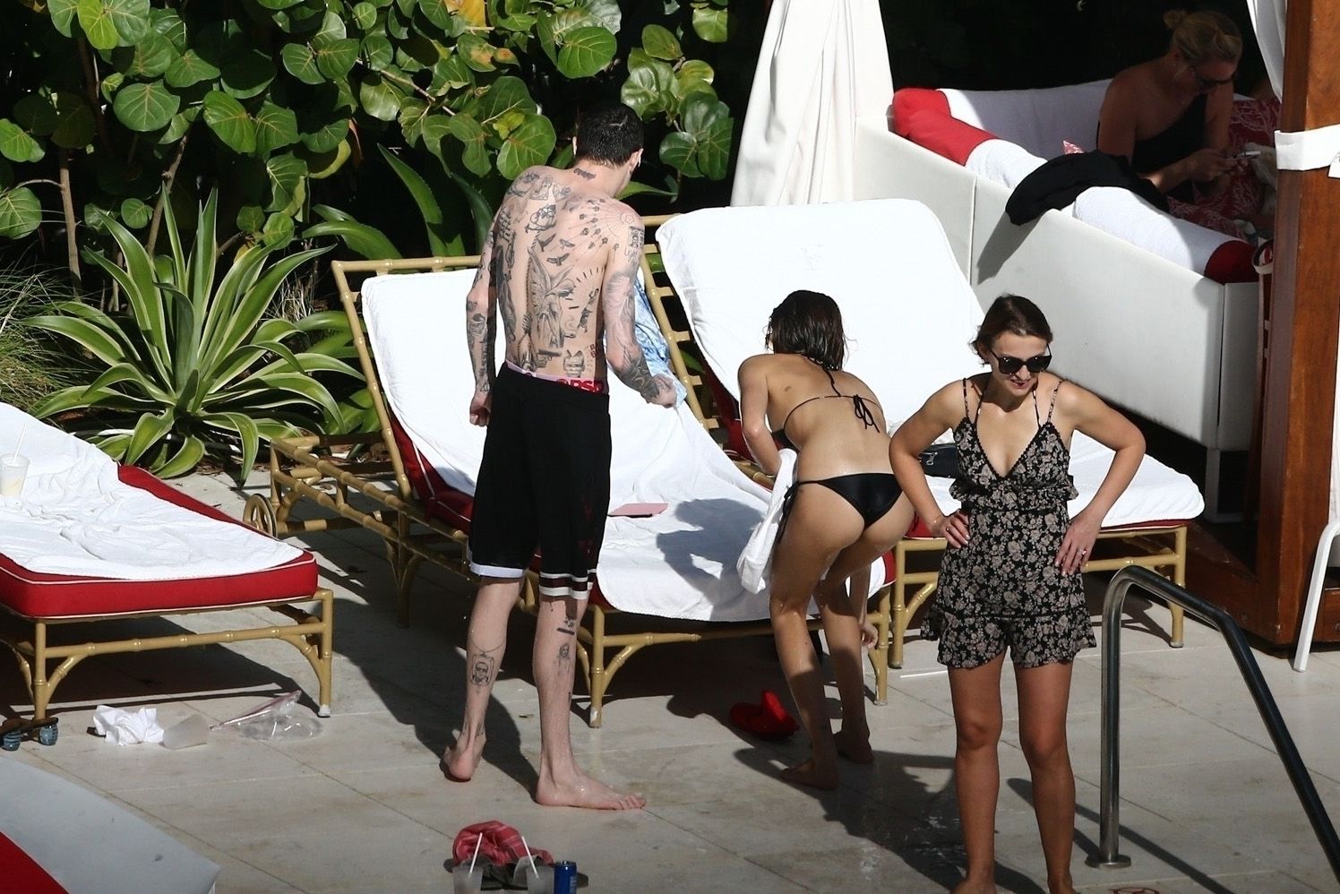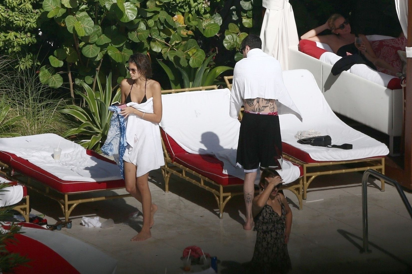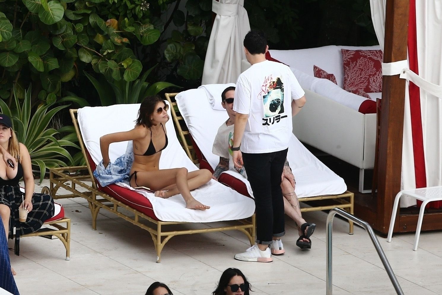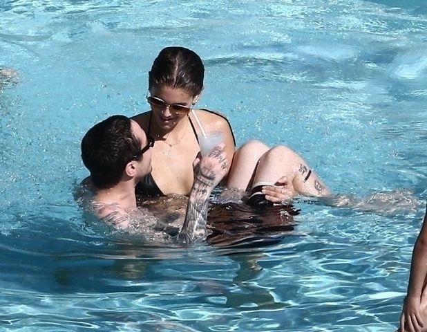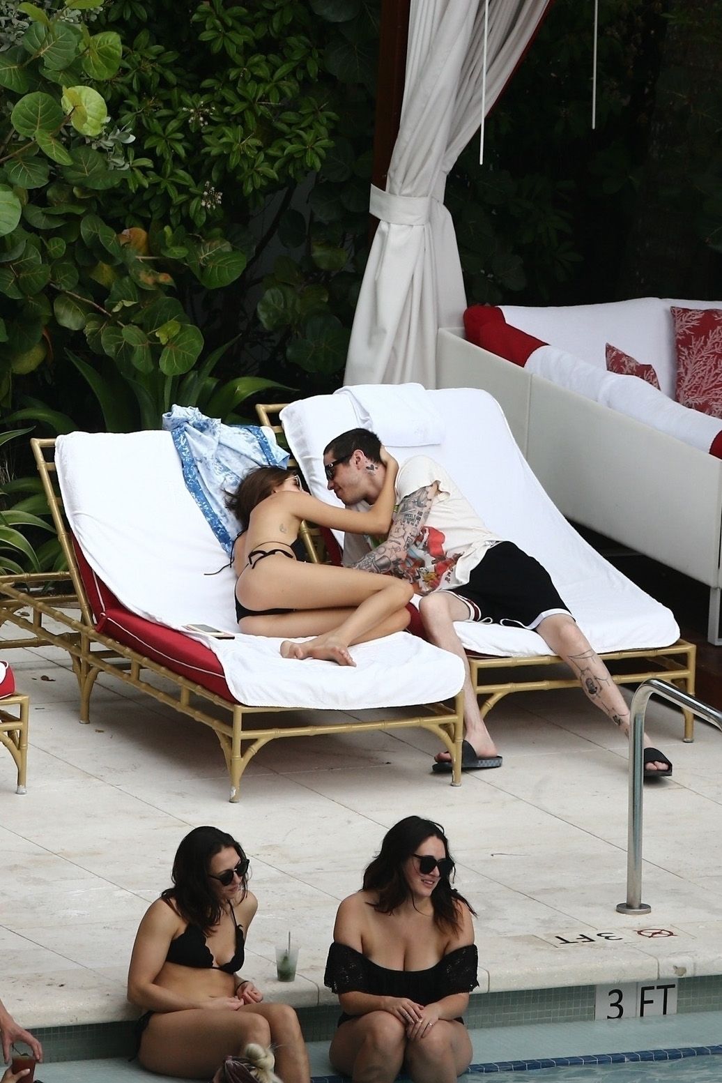 Pete Davidson and Kaia Gerber make out while vacationing together, 11/23/2019. The duo can’t seem to keep their hands off of each other as they confirm some kind of relationship. They are seen heavily kissing and holding hands poolside as they enjoy the Miami trip with friends.