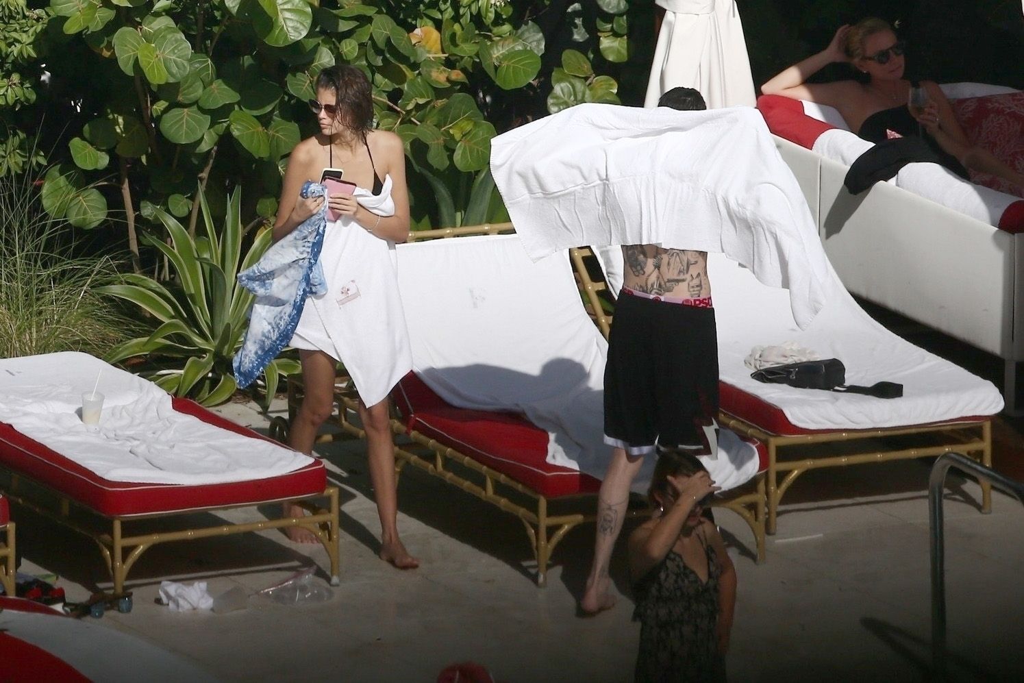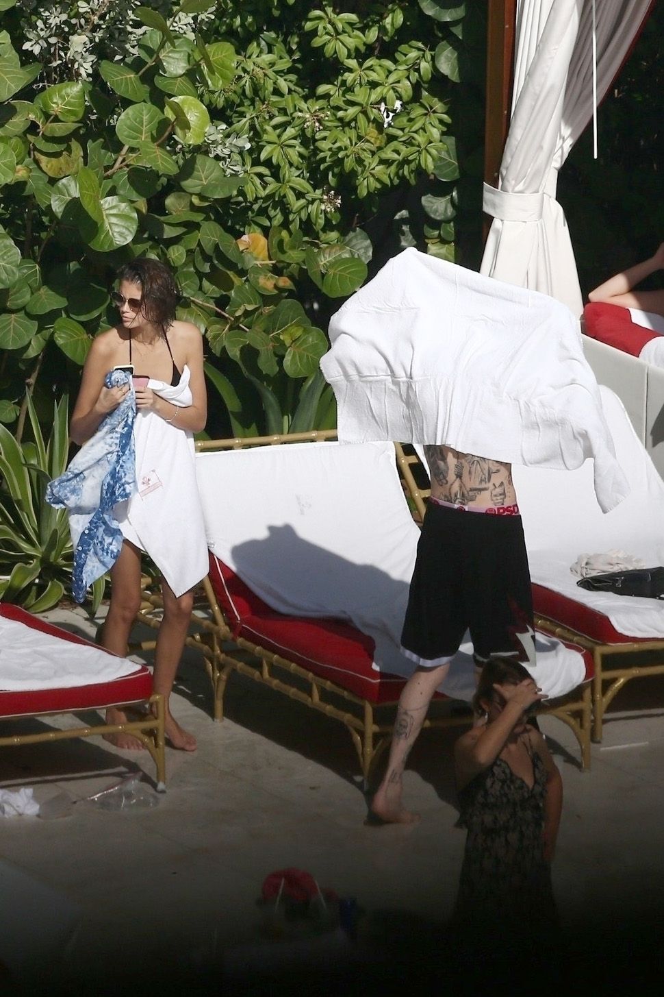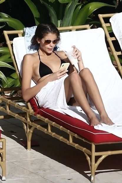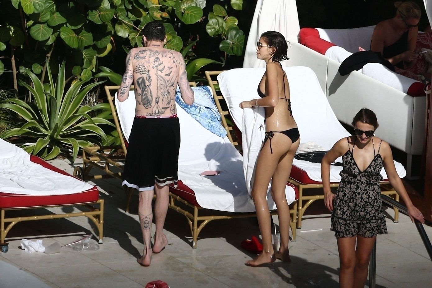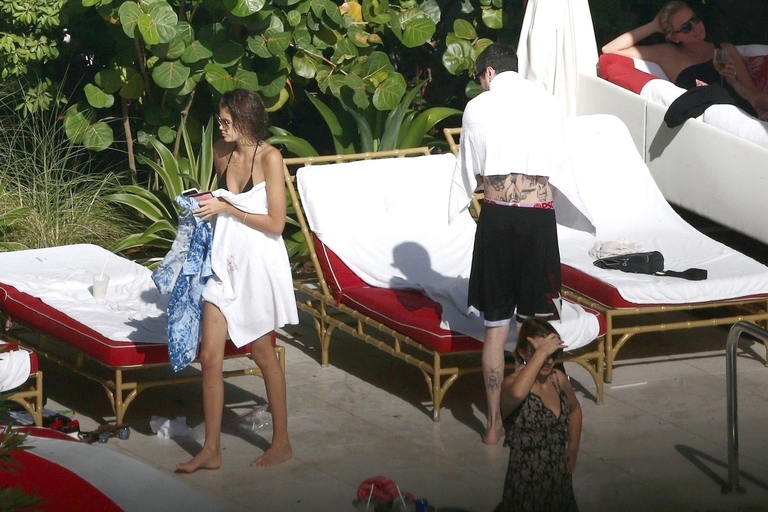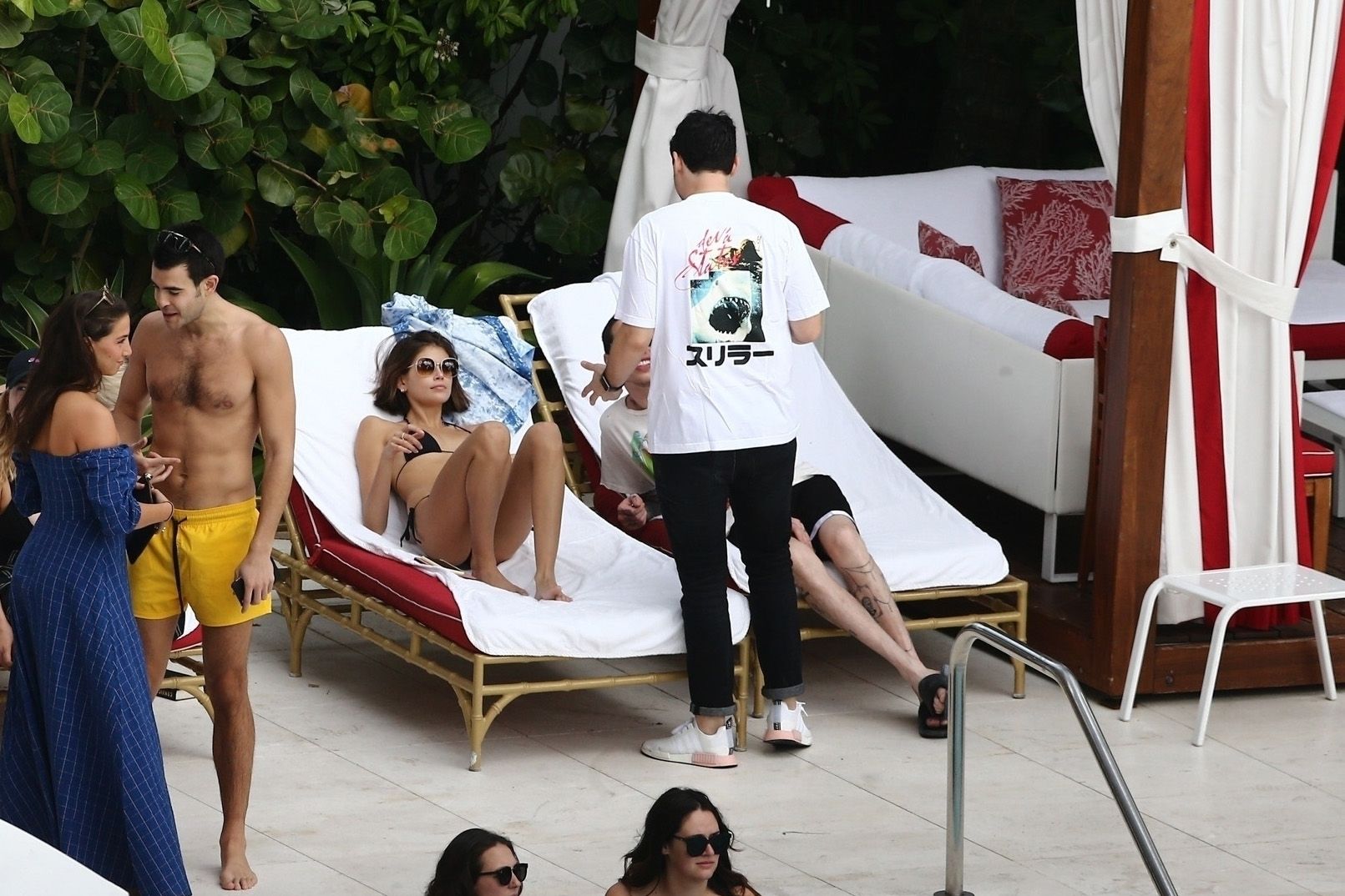 Pete Davidson and Kaia Gerber make out while vacationing together, 11/23/2019. The duo can’t seem to keep their hands off of each other as they confirm some kind of relationship. They are seen heavily kissing and holding hands poolside as they enjoy the Miami trip with friends.