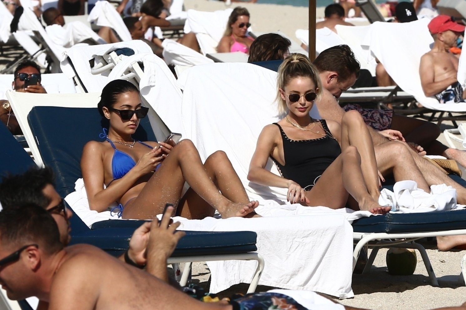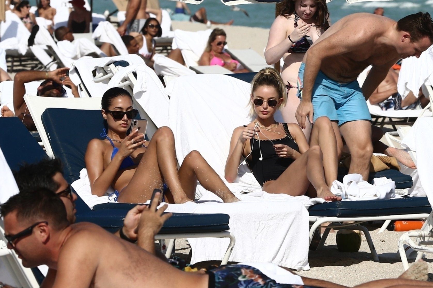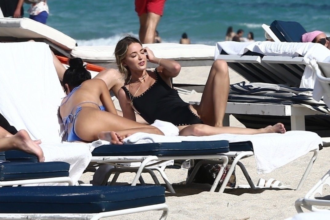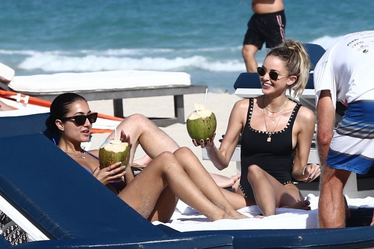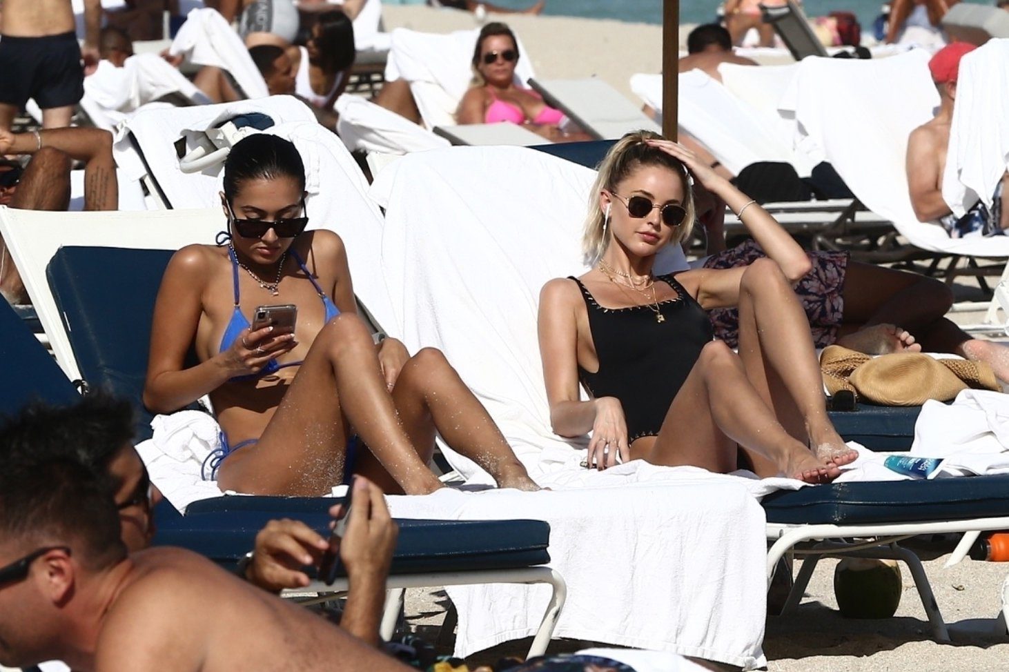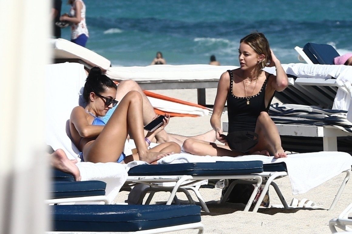 Social media personality Kaitlynn Carter enjoys a day on the beach with Racquel Natasha during Art Basel in Miami, 12/10/2019.