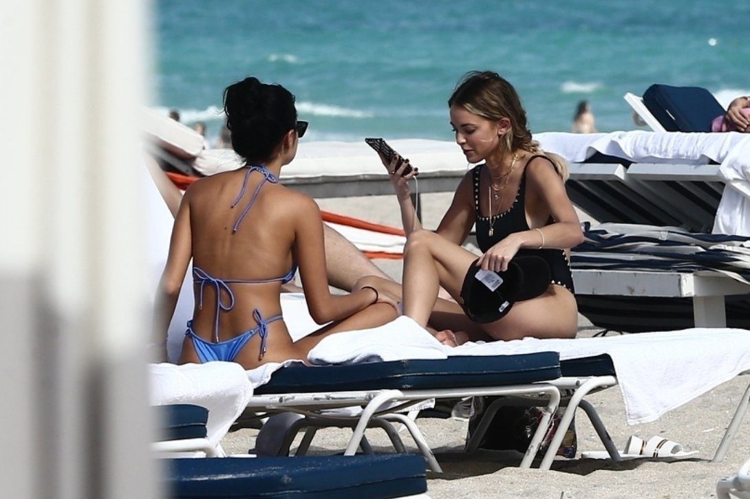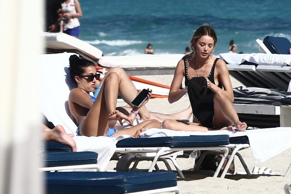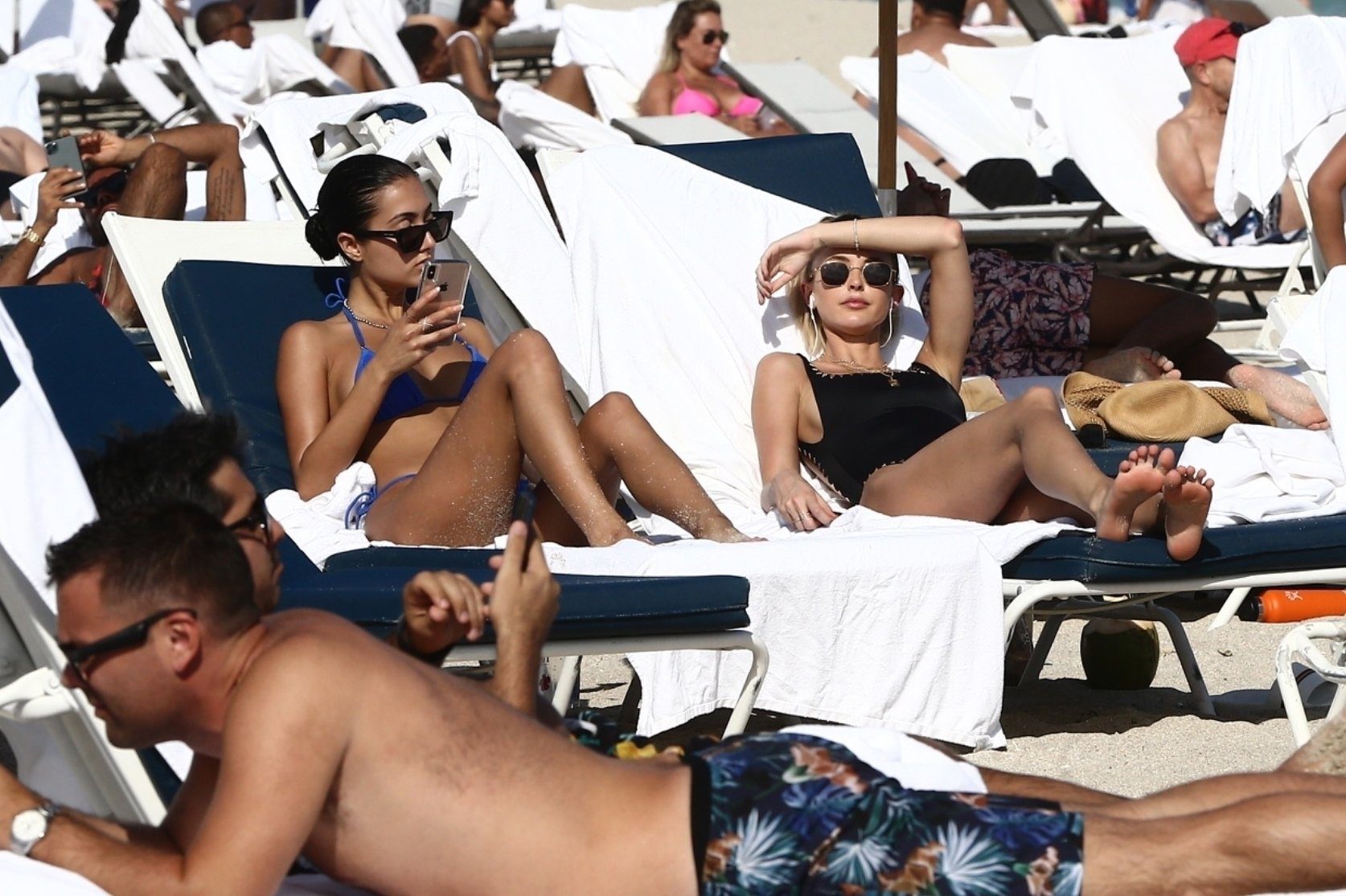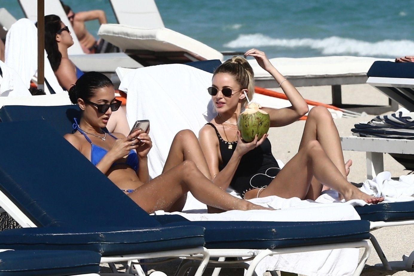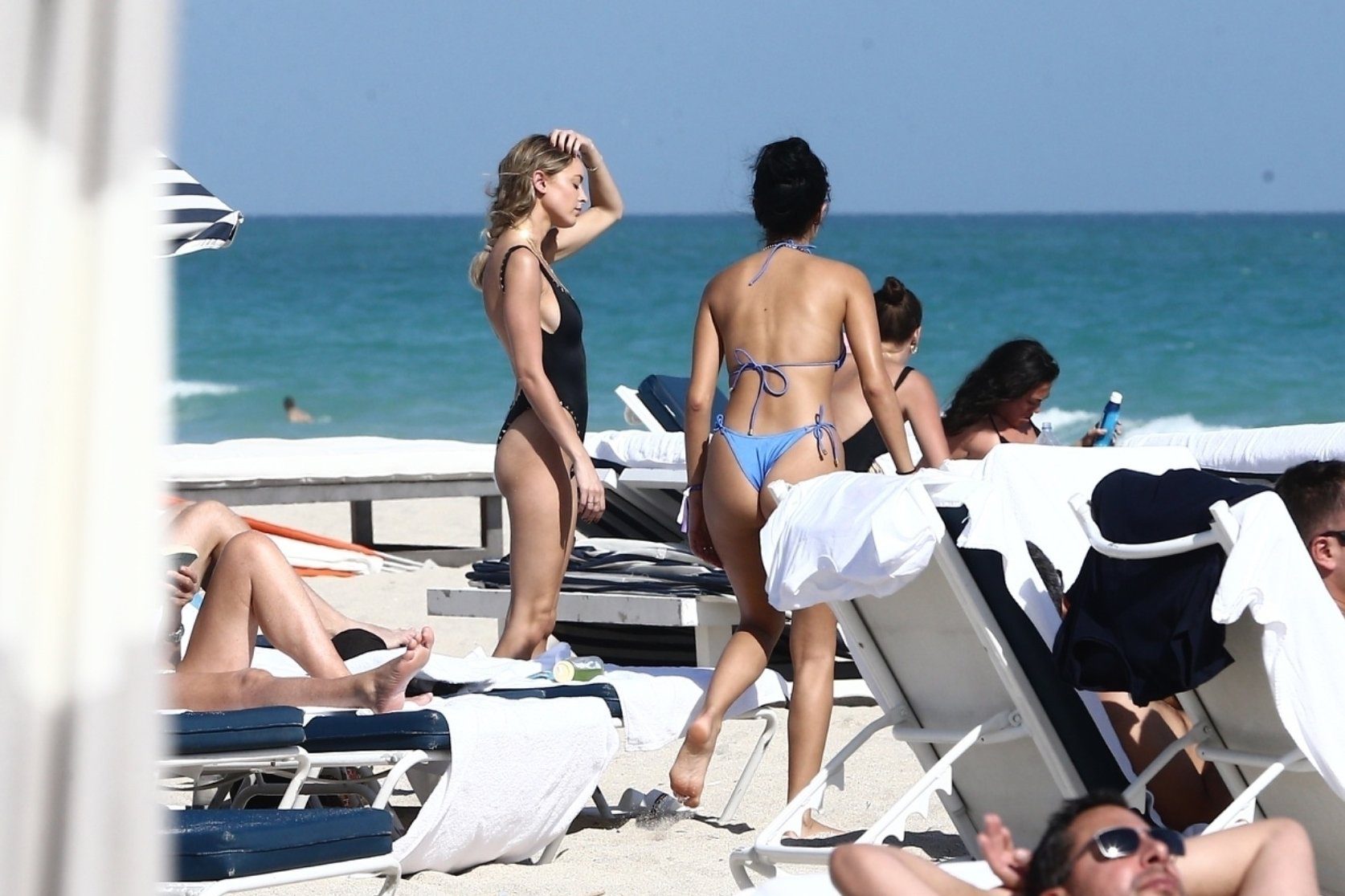 Social media personality Kaitlynn Carter enjoys a day on the beach with Racquel Natasha during Art Basel in Miami, 12/10/2019.