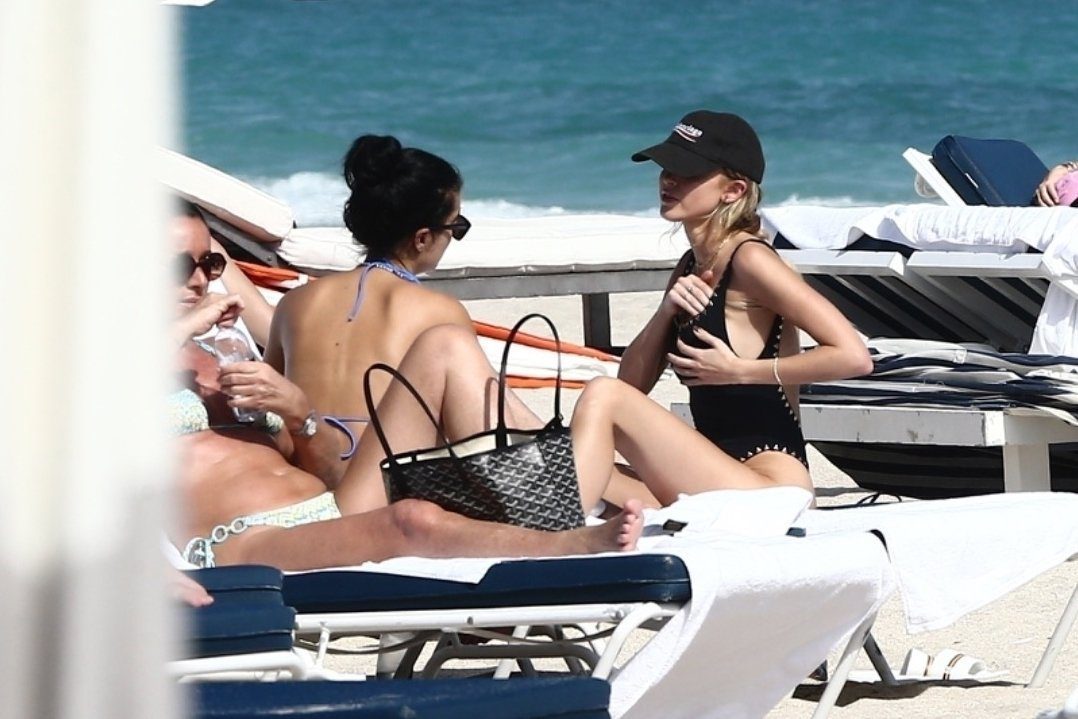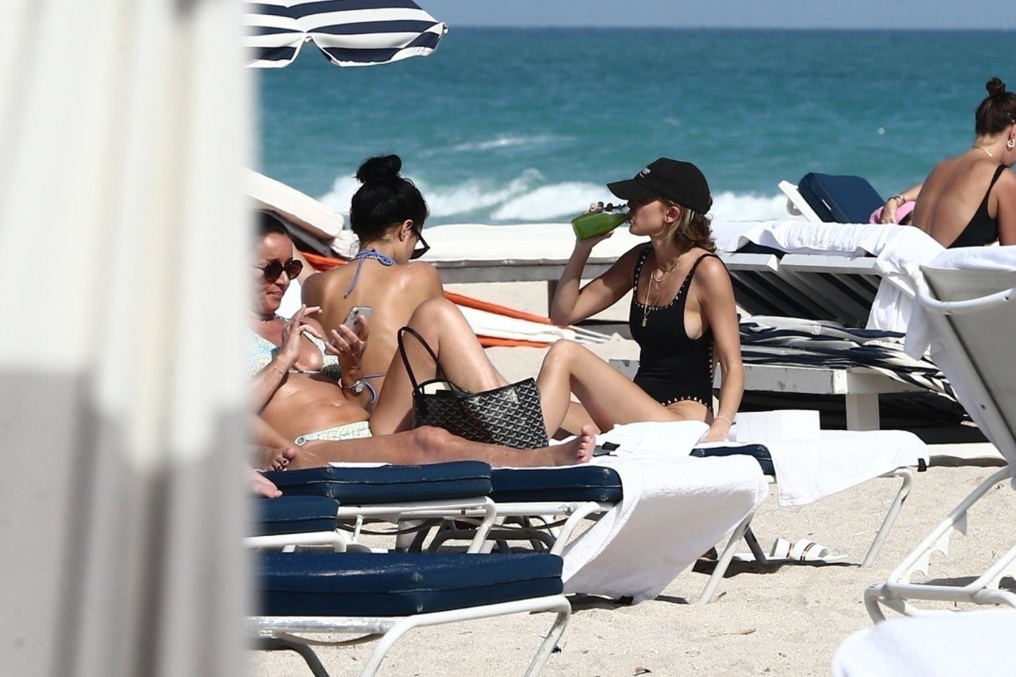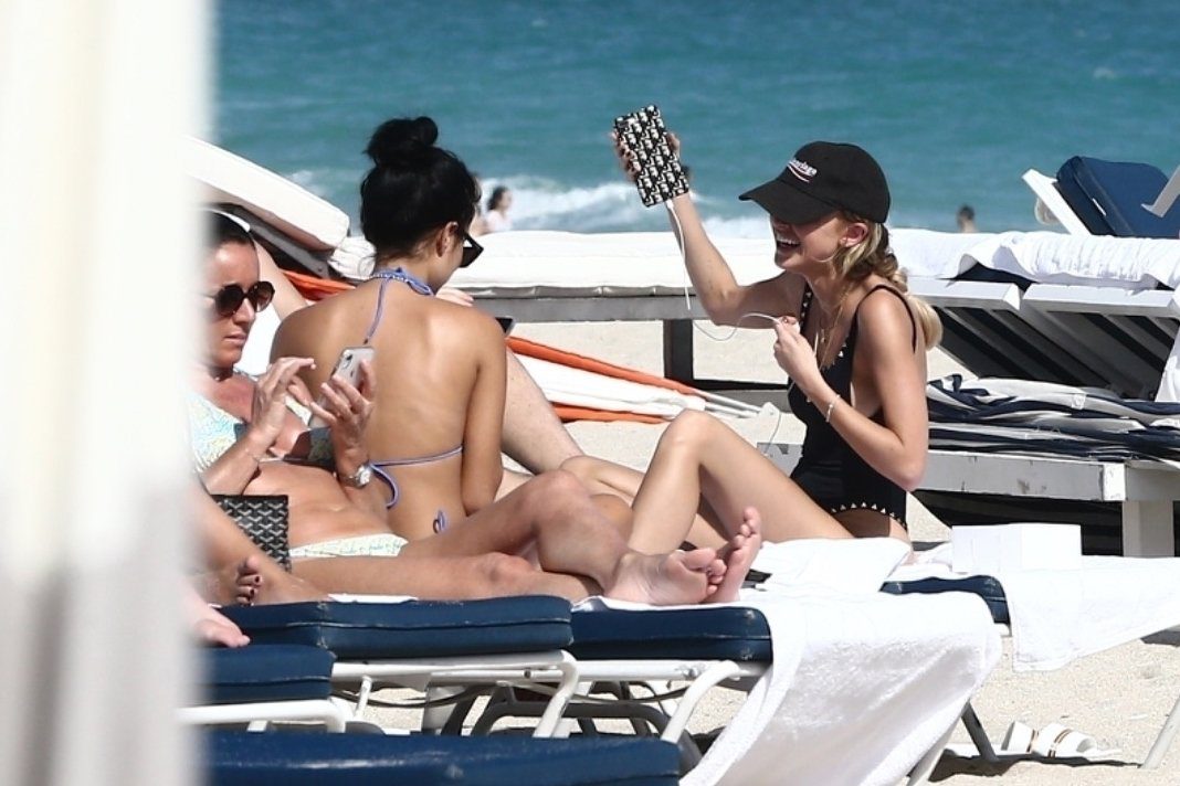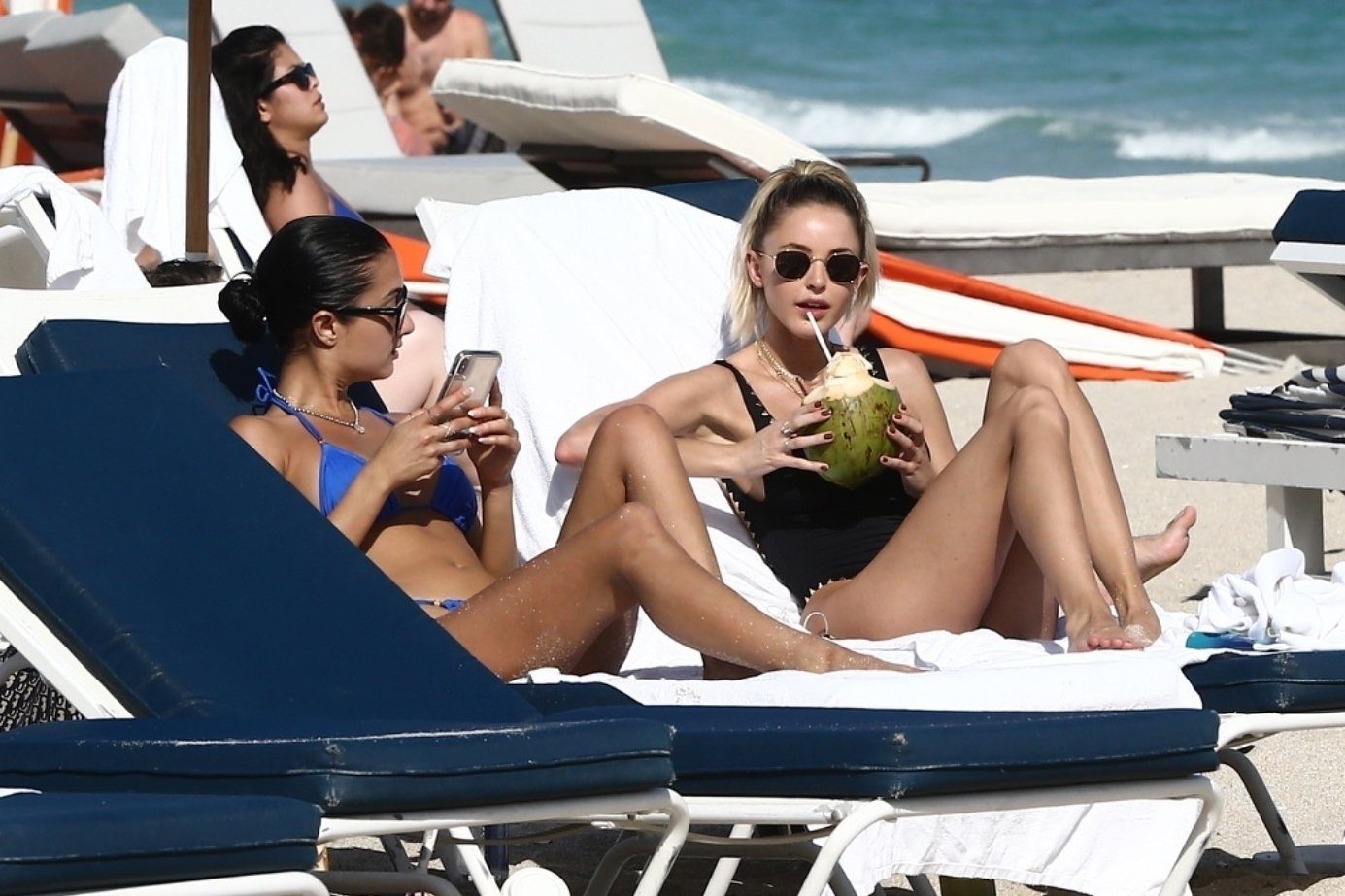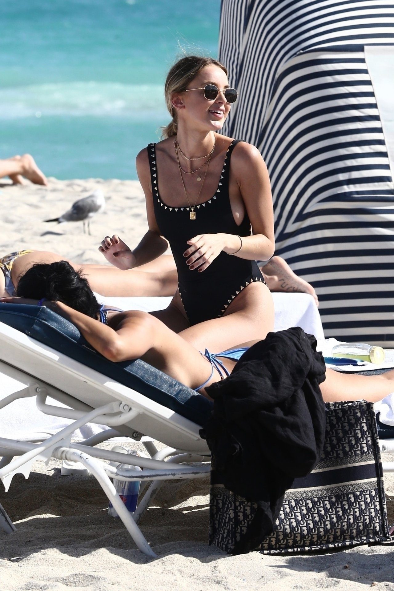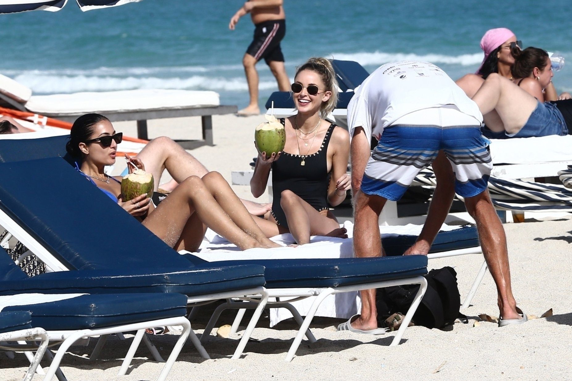 Social media personality Kaitlynn Carter enjoys a day on the beach with Racquel Natasha during Art Basel in Miami, 12/10/2019.