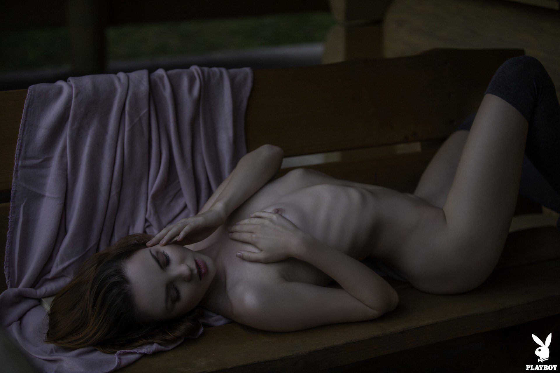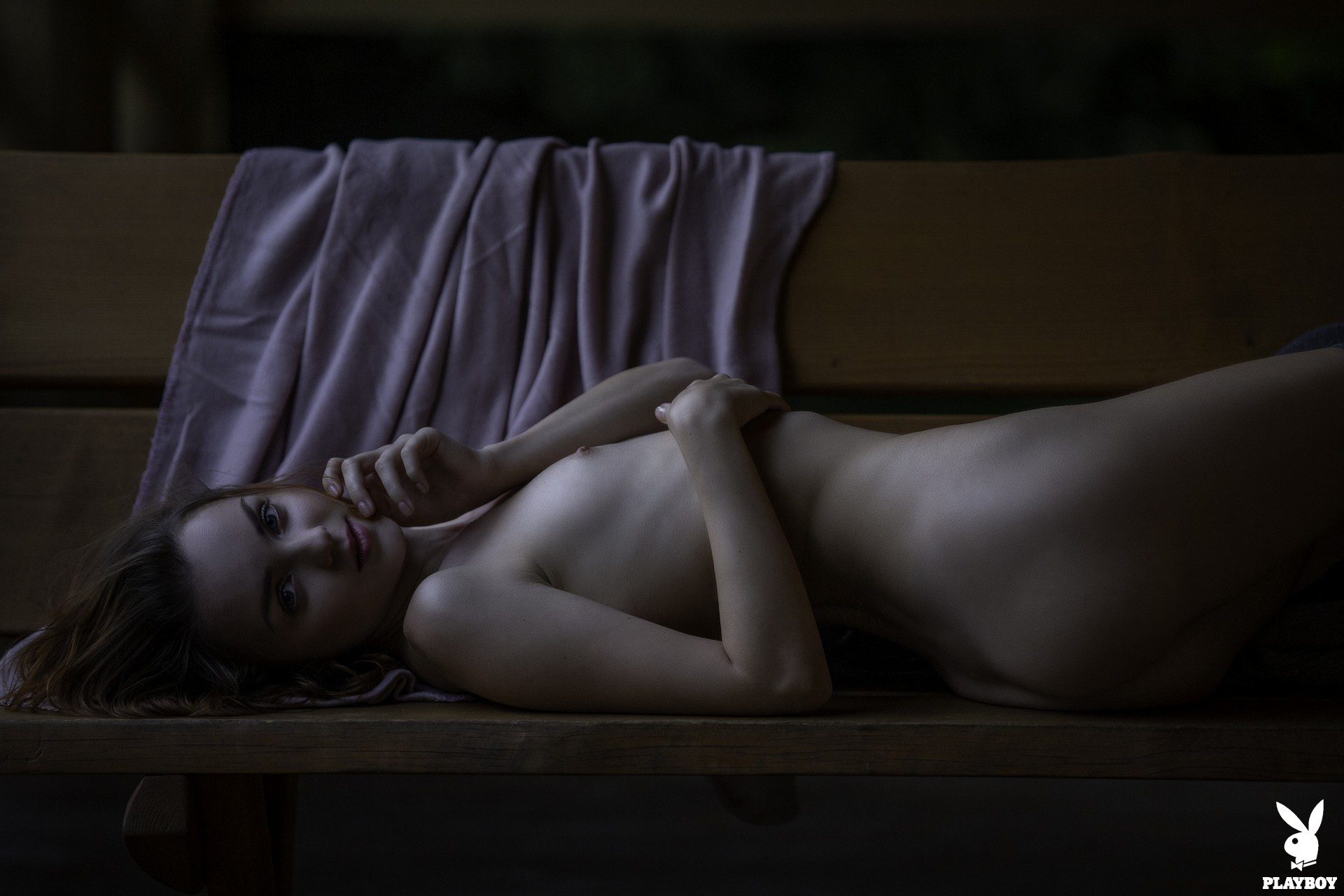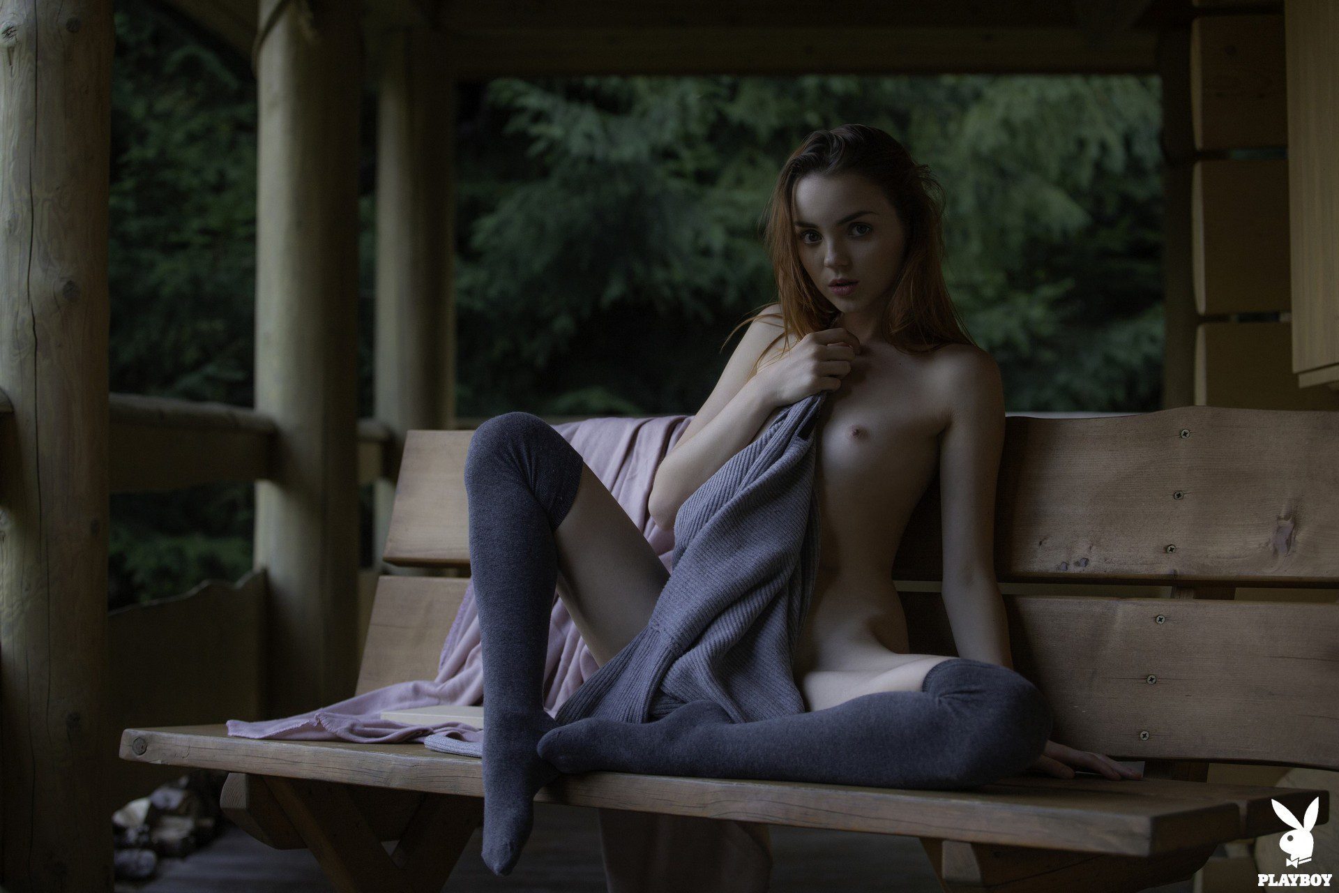 Curl up with a great book with the beautiful Newcomer, Kate Great. Looking sexy and totally comfortable, Kate is dressed in knee-high socks, an oversized sweater, and gray panties as the photographer, David Merenyi captures her elegant beauty. Looking sweet and so sultry, Kate indulges in her naughty read, only to take a little break for all of her new Playboy Plus fans. An intellectual, this is something Kate would be doing even if she weren’t in front of the camera. “In my spare time I enjoy dancing, reading and going to museums,” she says. Slowly losing pieces of her casual outfit, Kate looks out to the forest while giving the camera a beautiful glimpse of her smile. “What I love most about my body are my legs,” she tells us. “The outfit I feel sexiest in are pajamas!” Easy-going, all-natural, and totally gorgeous, you won’t be able to get enough of the beautiful, Kate Great, right here on Playboy Plus!