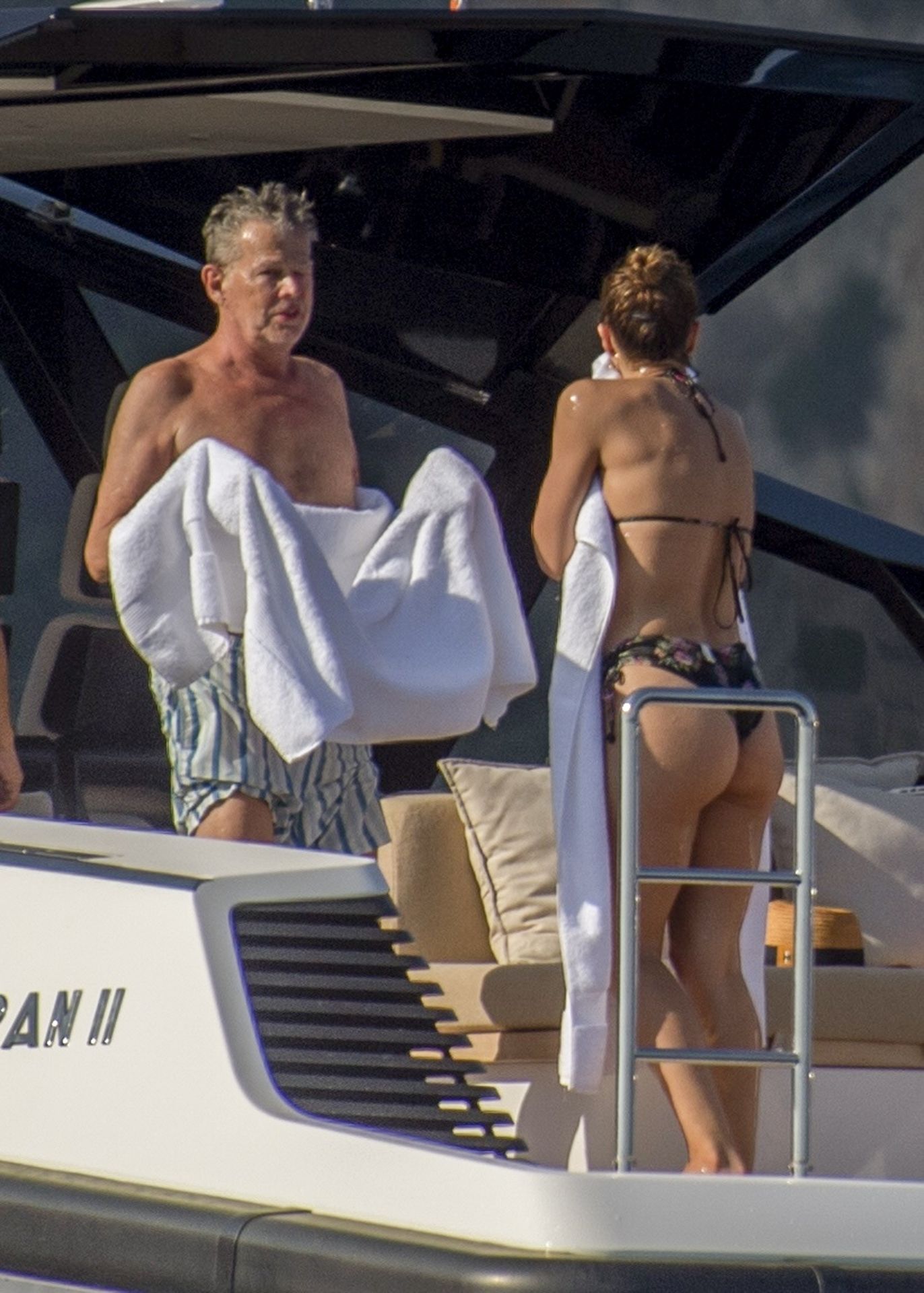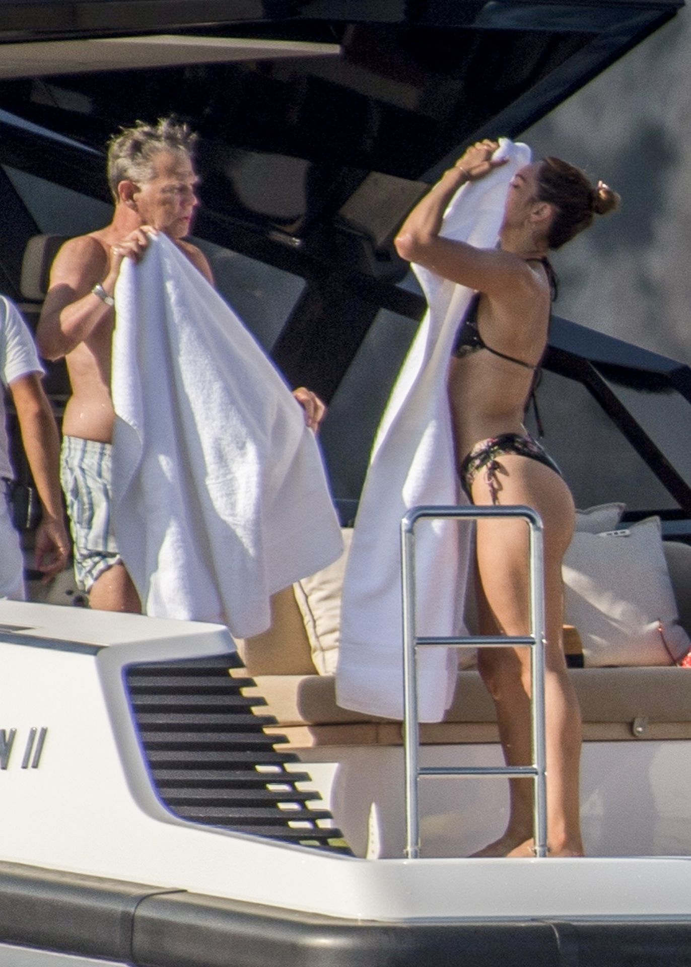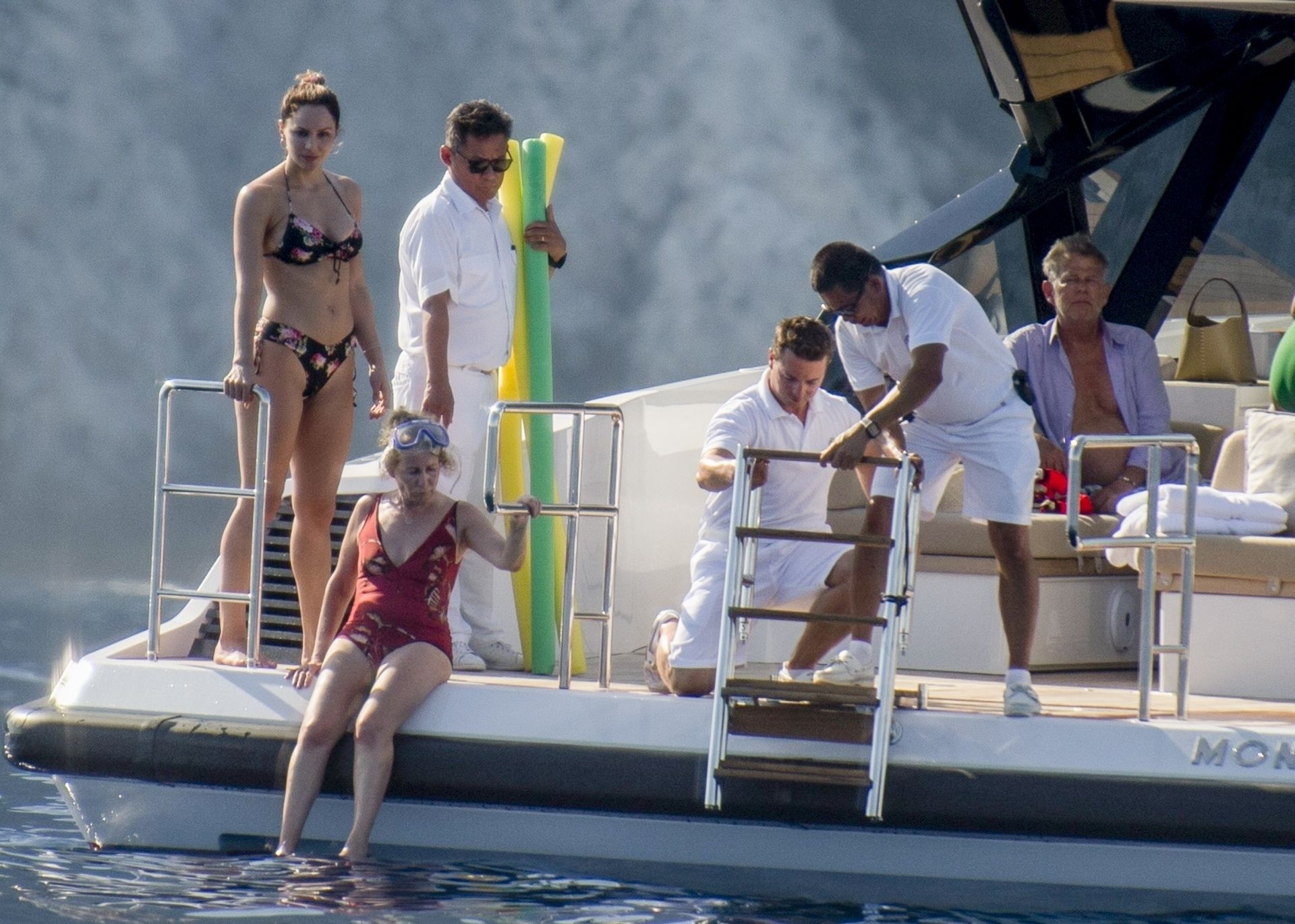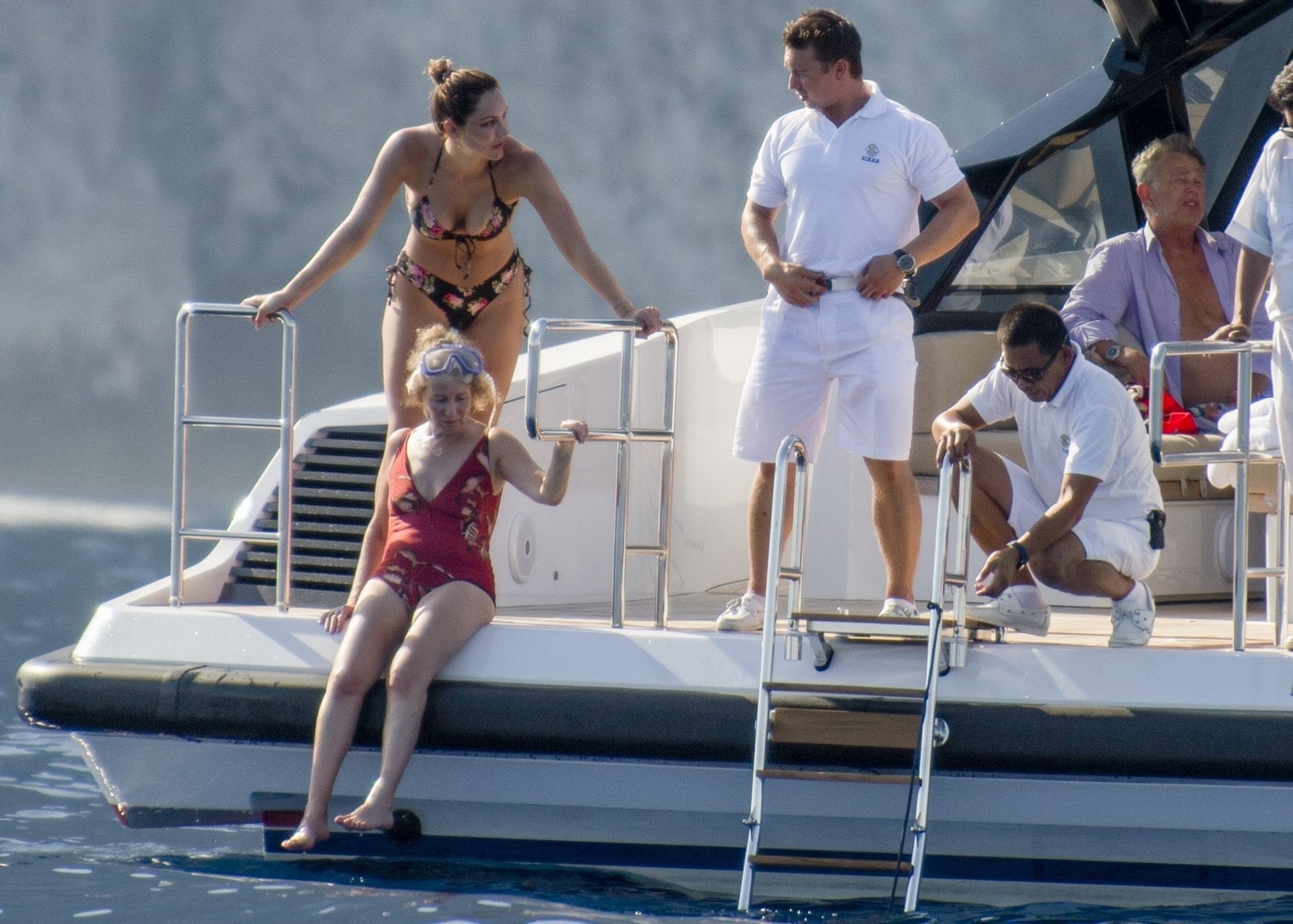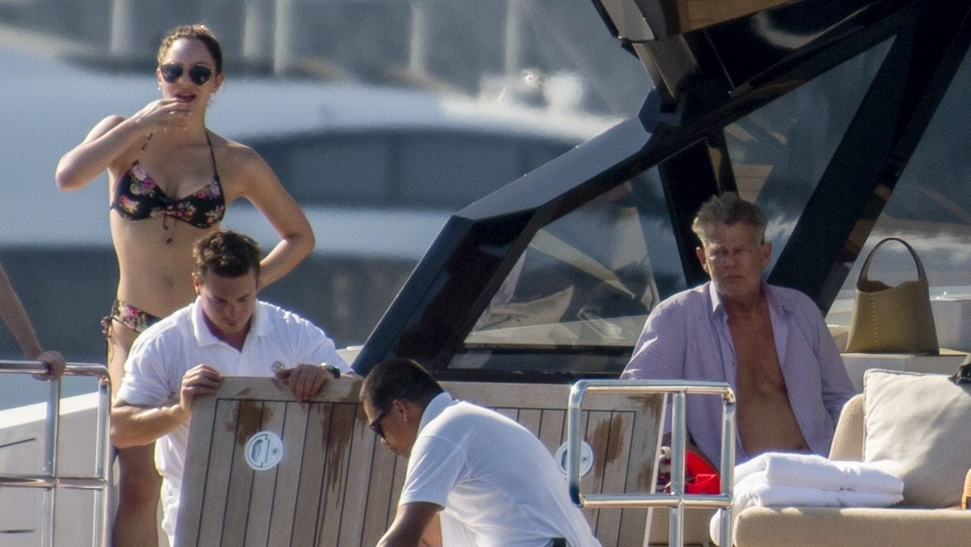 Newlyweds Katharine McPhee and David Foster take a dip in the ocean while relaxing on their yacht during their honeymoon in Capri, 07/03/2019.