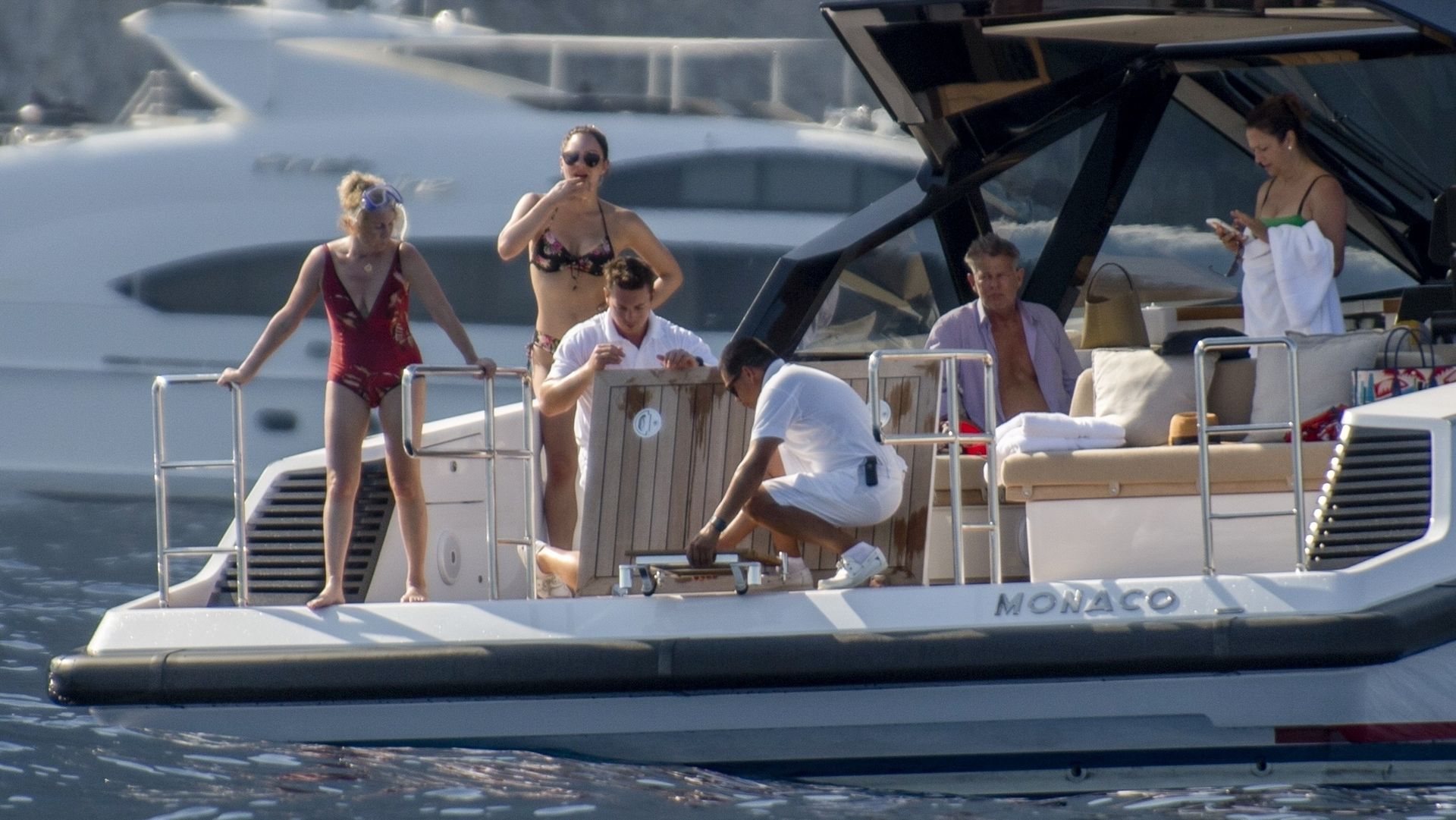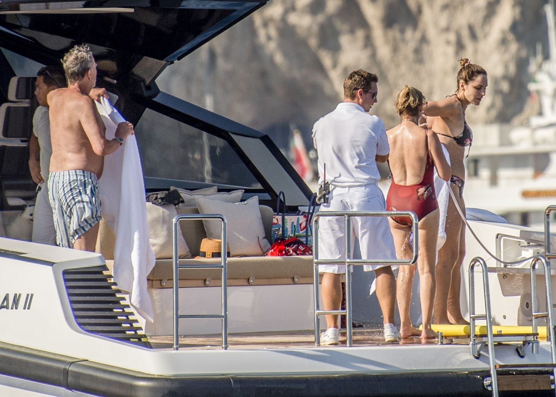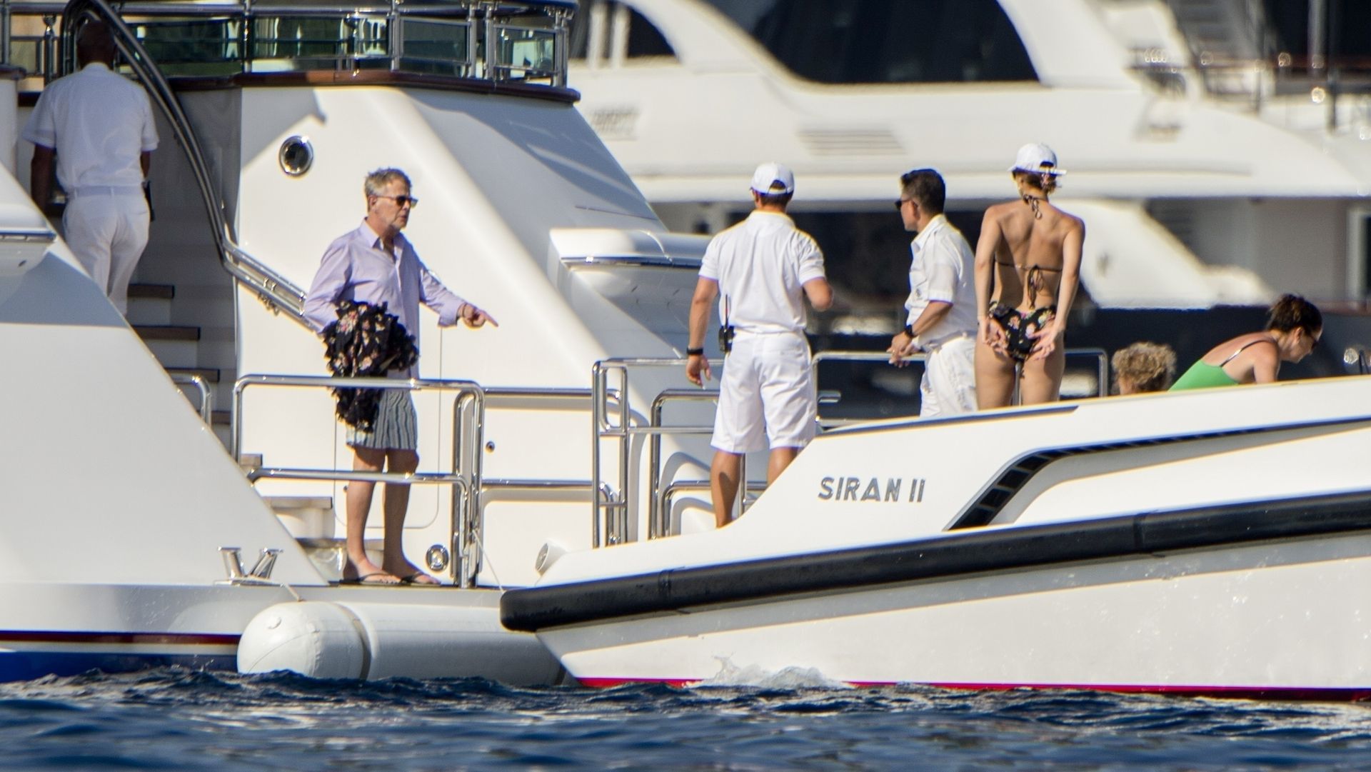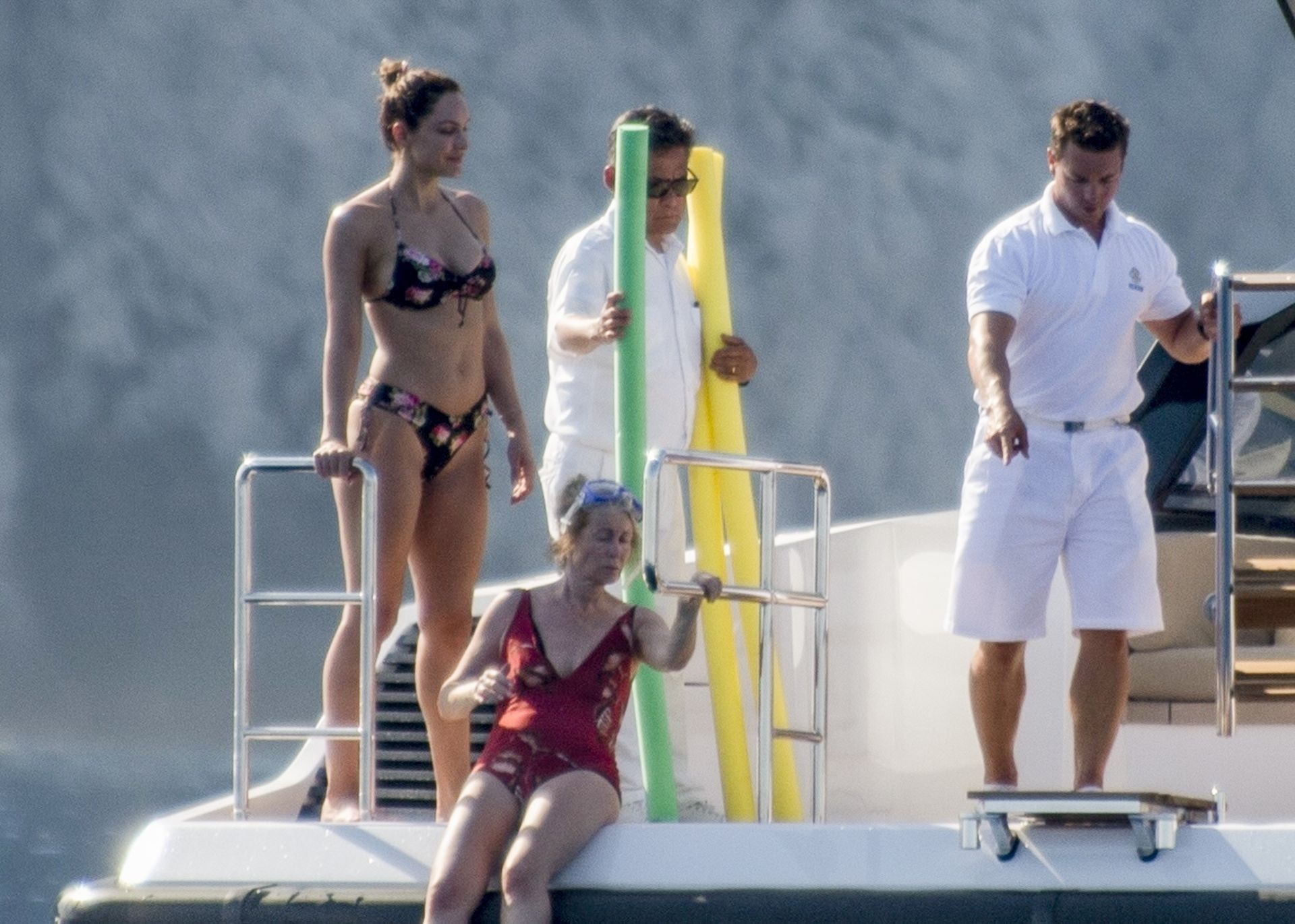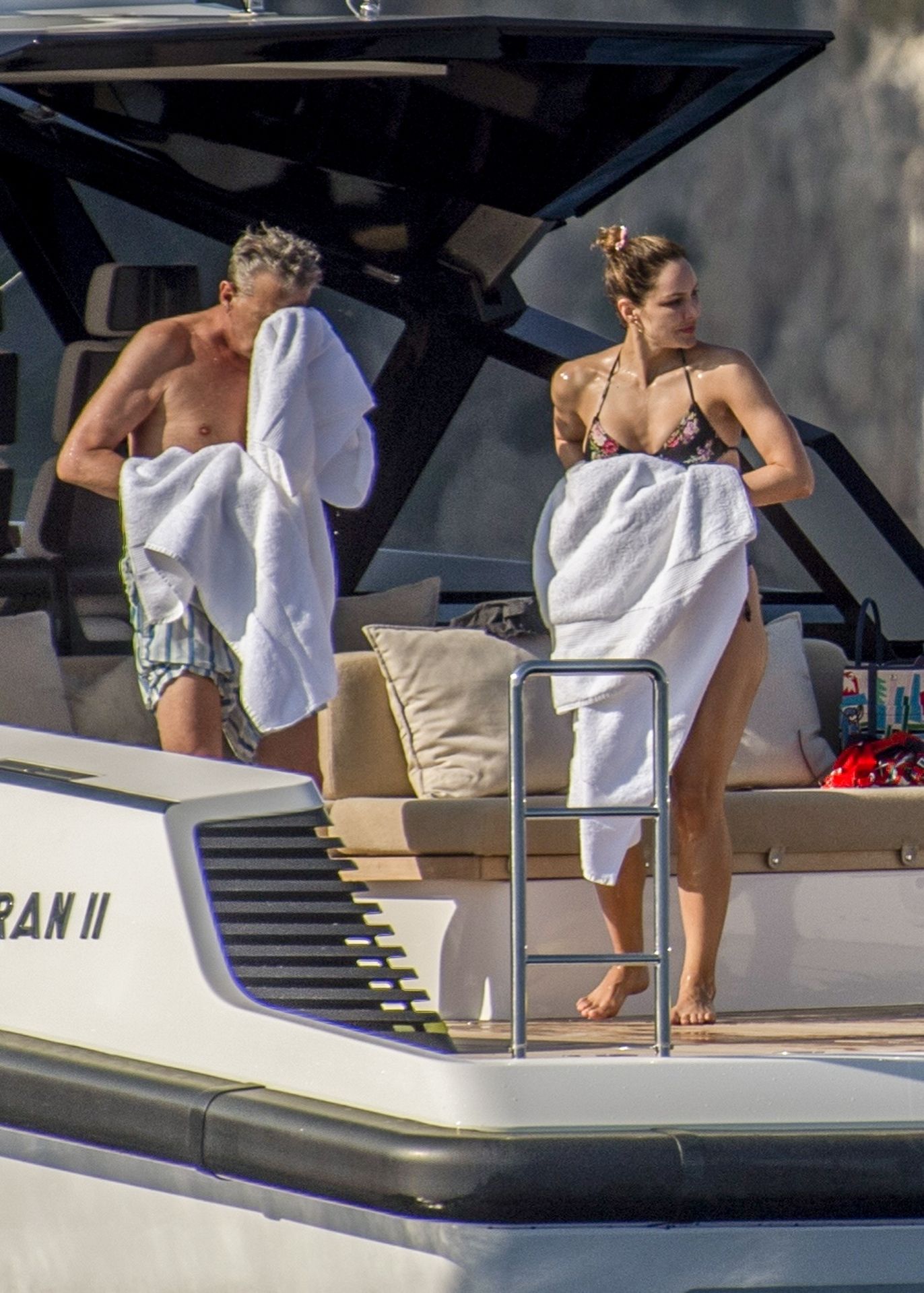 Newlyweds Katharine McPhee and David Foster take a dip in the ocean while relaxing on their yacht during their honeymoon in Capri, 07/03/2019.