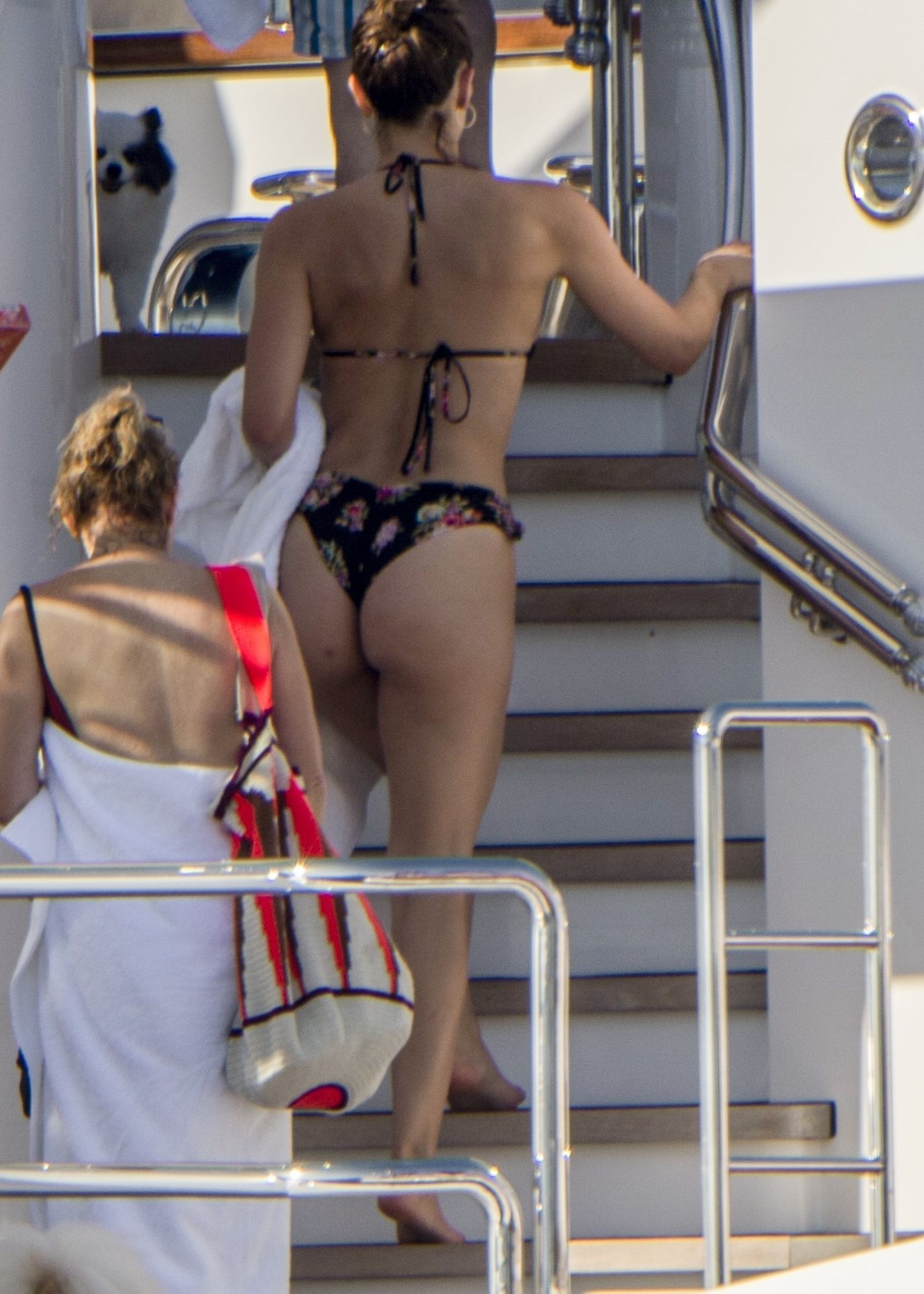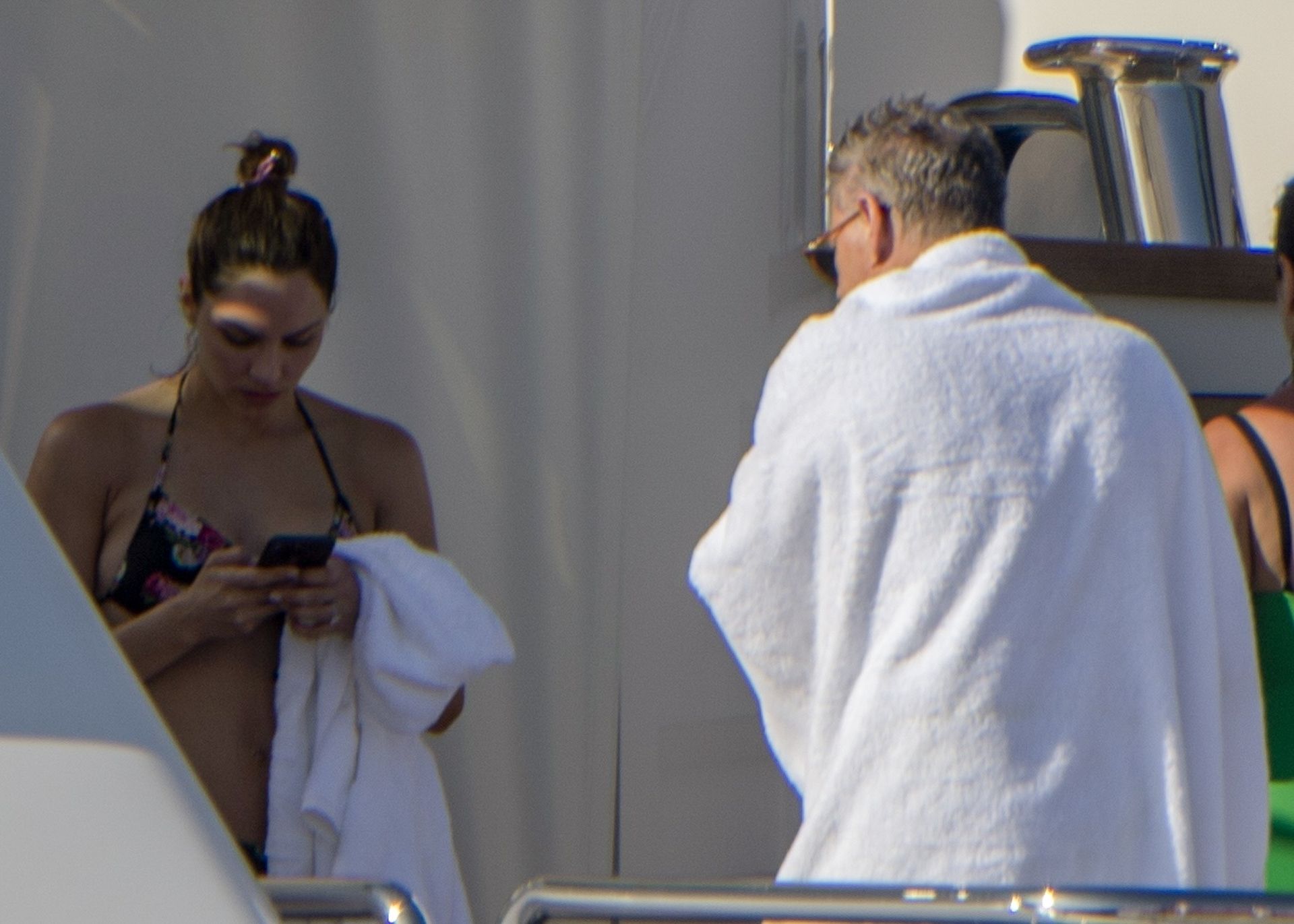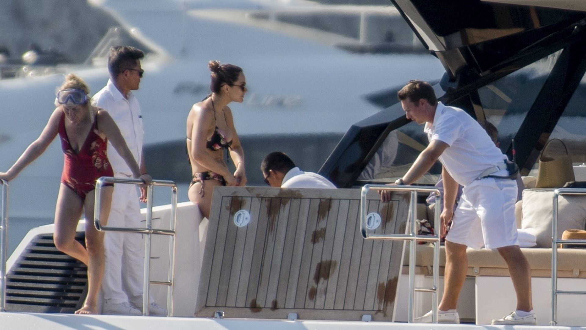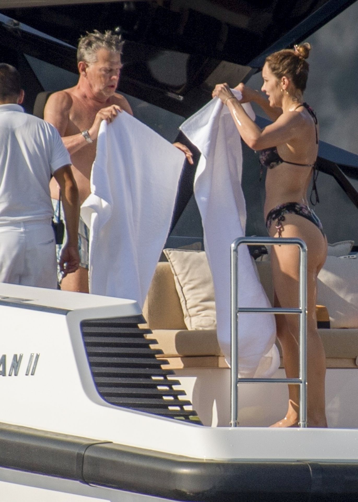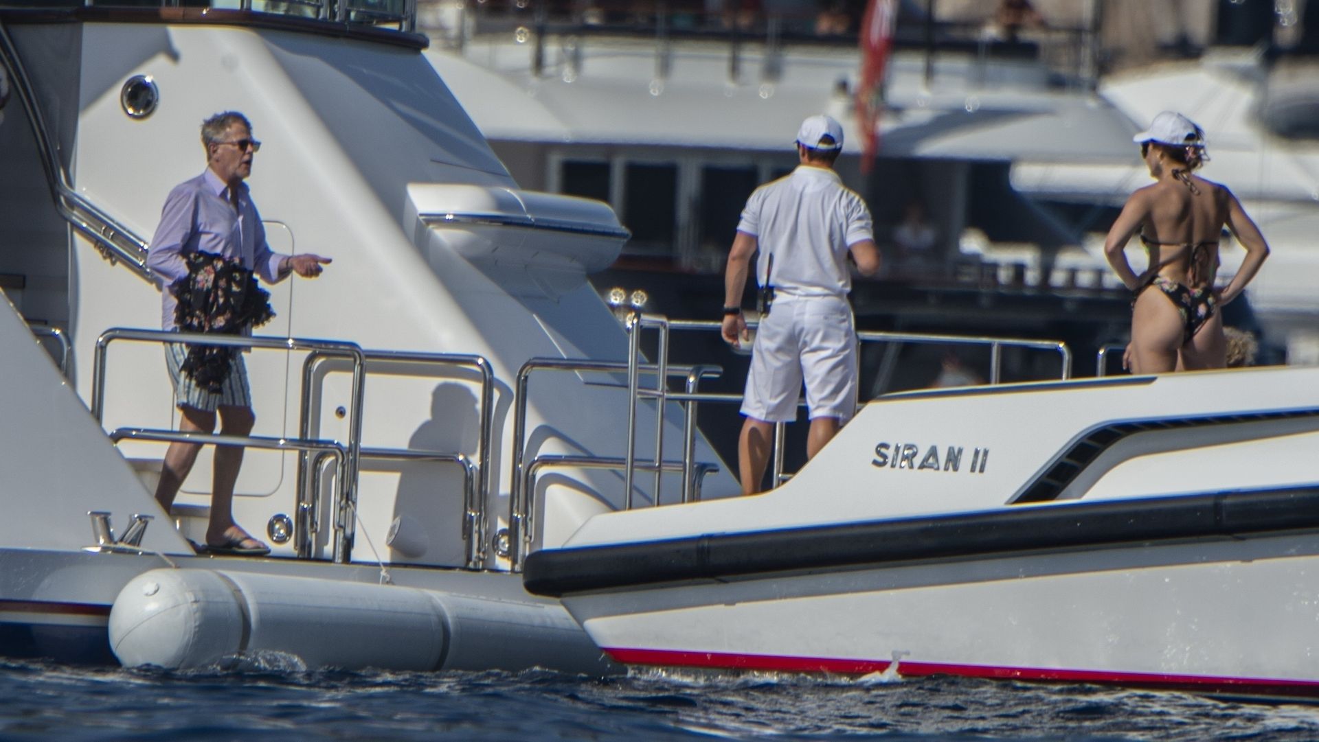 Newlyweds Katharine McPhee and David Foster take a dip in the ocean while relaxing on their yacht during their honeymoon in Capri, 07/03/2019.