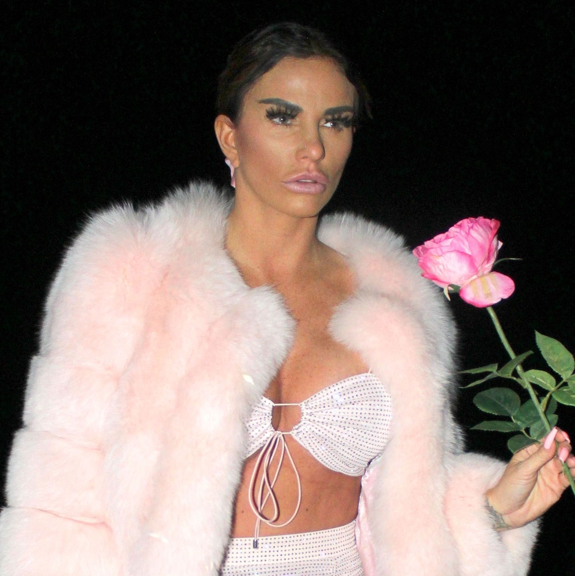 Katie Price (aka Jordan) couldn’t be happier draped in her favorite color with a pink-themed attire returning from a Boxing day night out on the tiles!