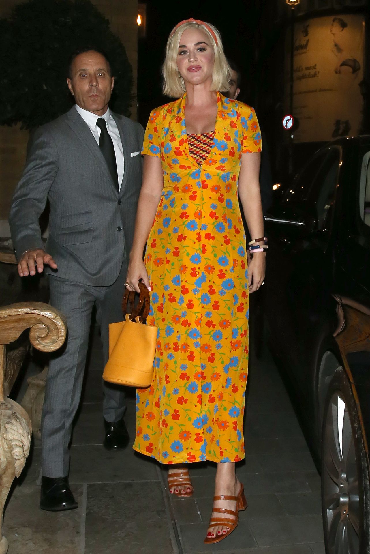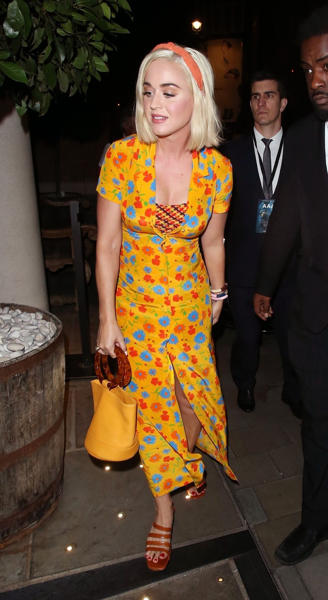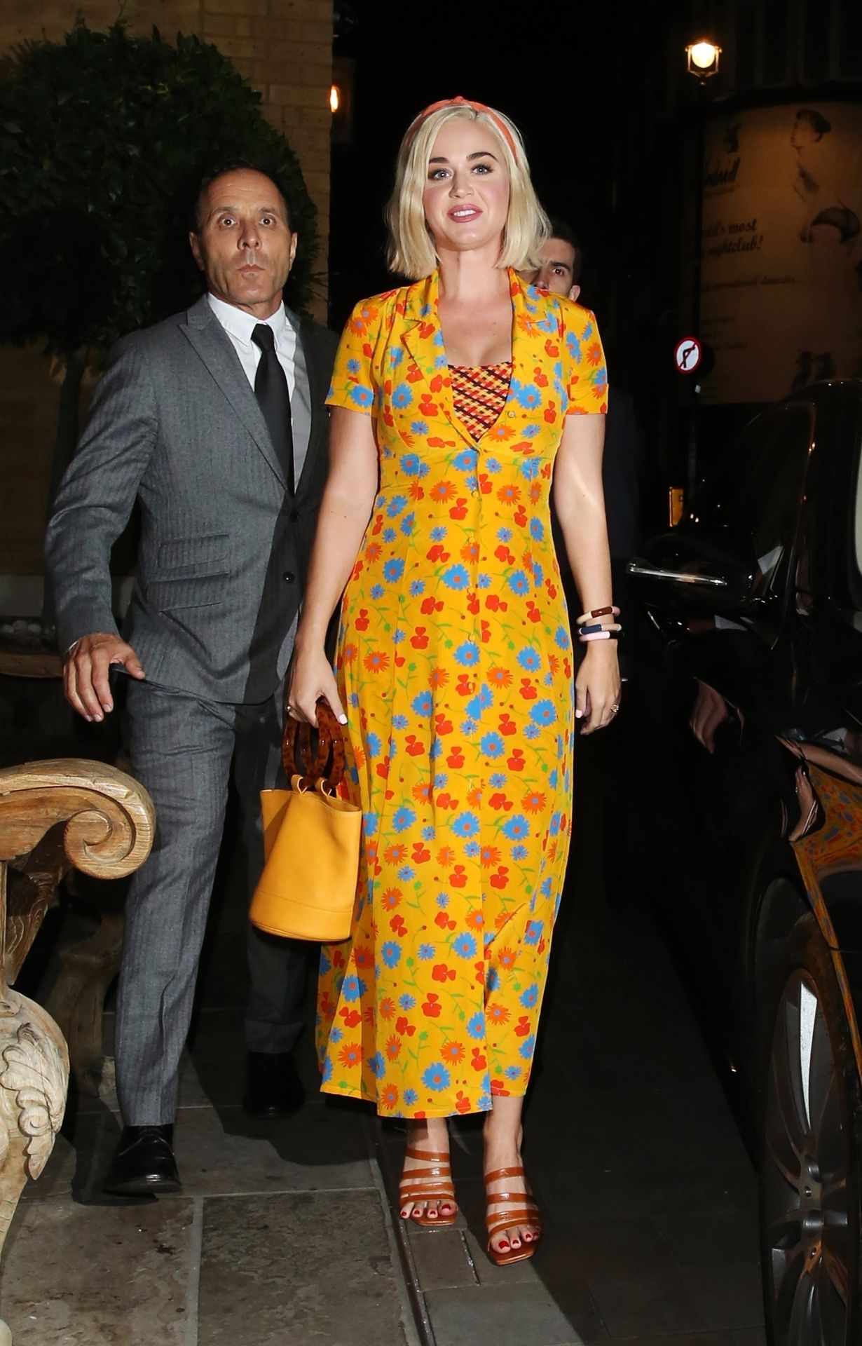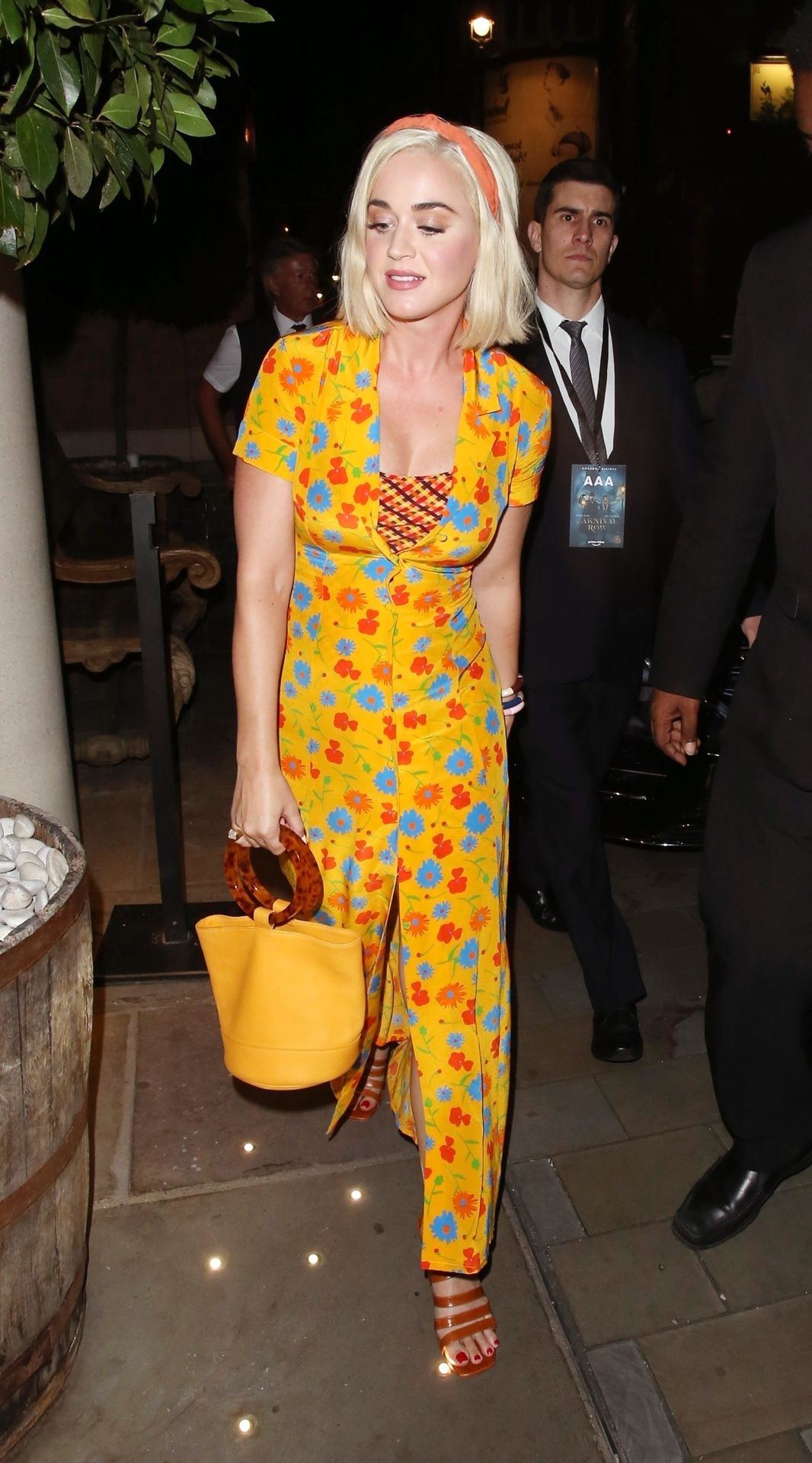 Katy Perry is seen arriving at The Ham Yard Hotel in London, 08/28/2019. Carnival Row which stars Orlando Bloom was also being launched at the Hotel this evening.