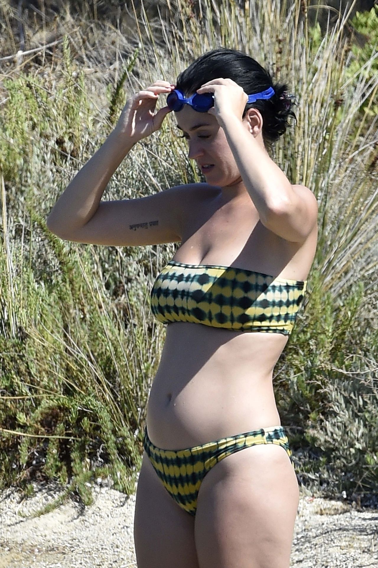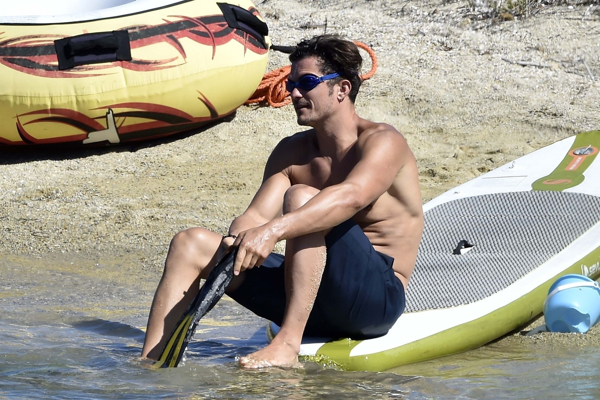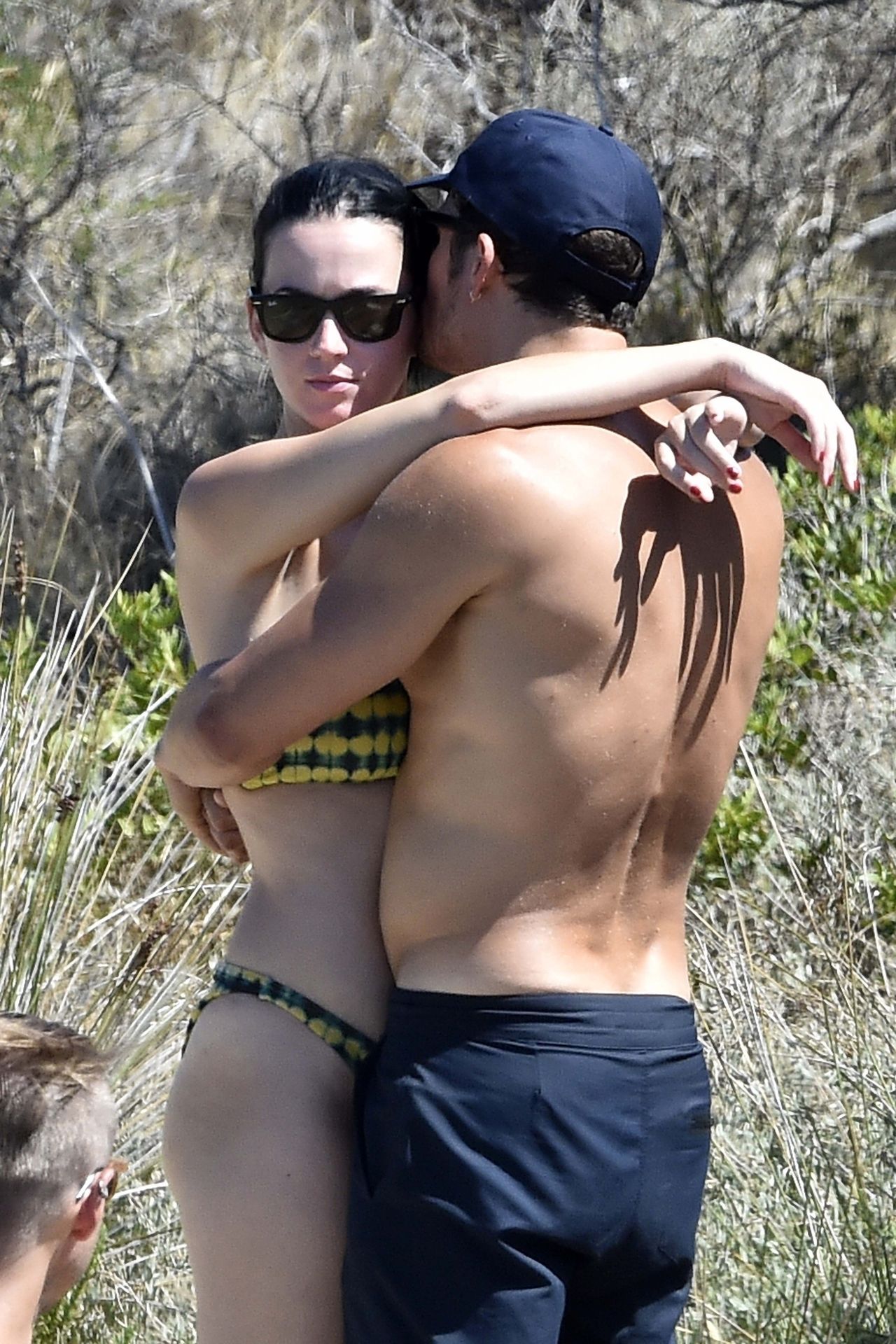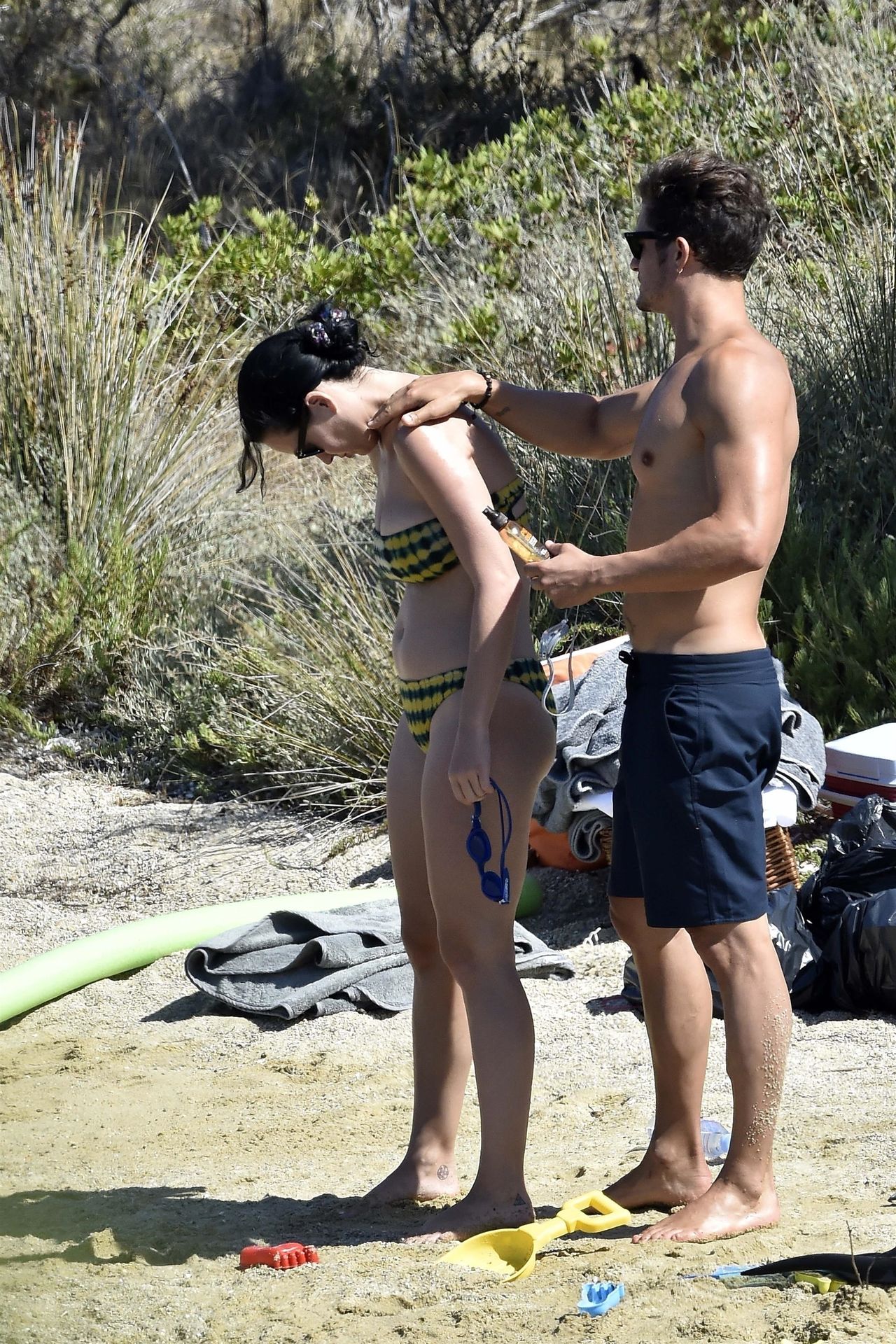 PICTURED HERE: Katy Perry and beau Orlando Bloom have a fun little beach day while vacationing in Italy, 08/02/2019. The hot couple indulged in some water activity like snorkeling and paddle boarding. Orlando was quite the exhibitionist removing his board shorts and letting it all hang out while paddling Katy on their paddleboard. Katy and Orlando had lunch on the beach and can be seen kissing and cuddling under the sun as the two appear to be really in-love.