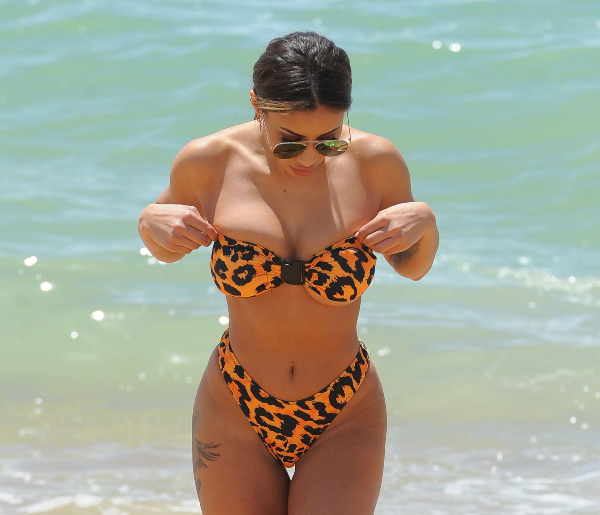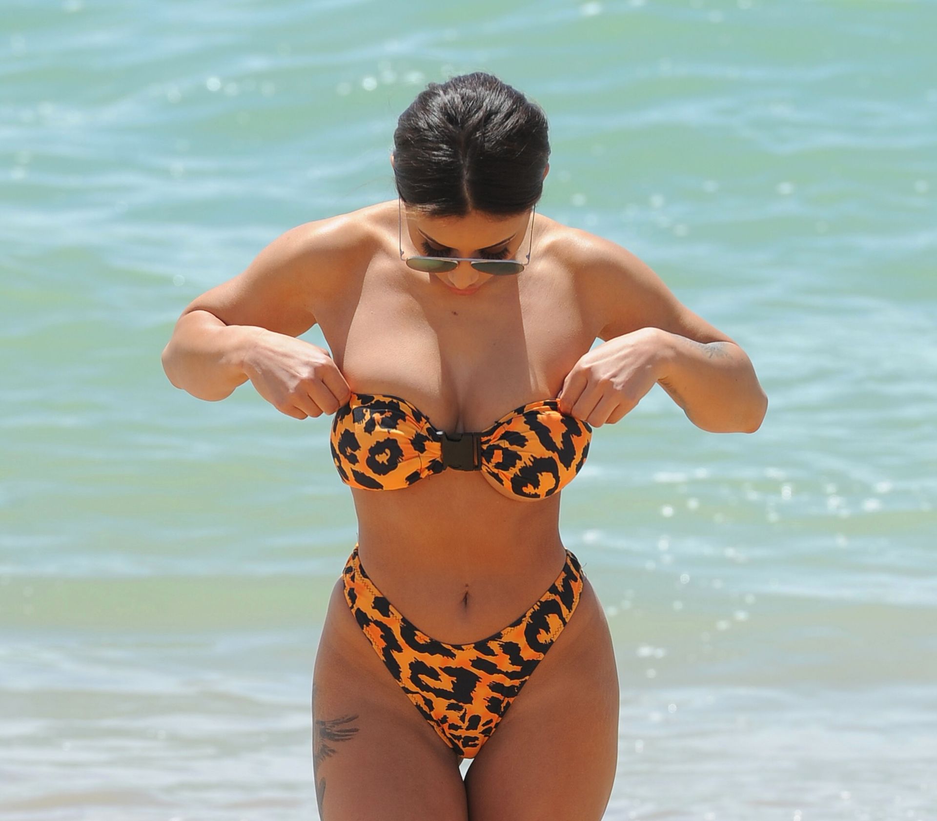 “Big Brother” and “Ex on the Beach” star Kayleigh Morris takes a break on the beach in Ibiza, Spain, 05/16/2019. The tanned hottie fixed the bikini that almost exposed her boobs.