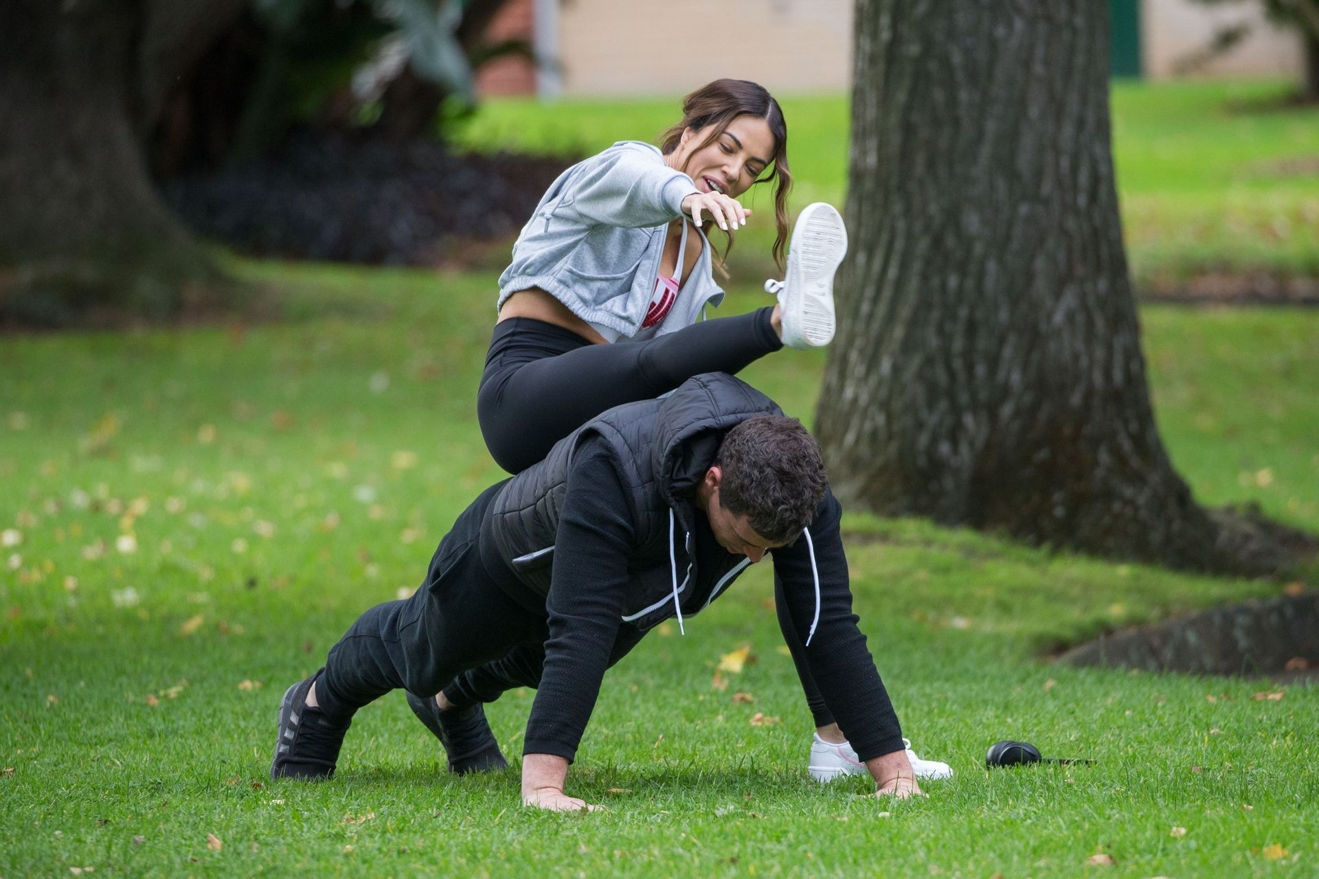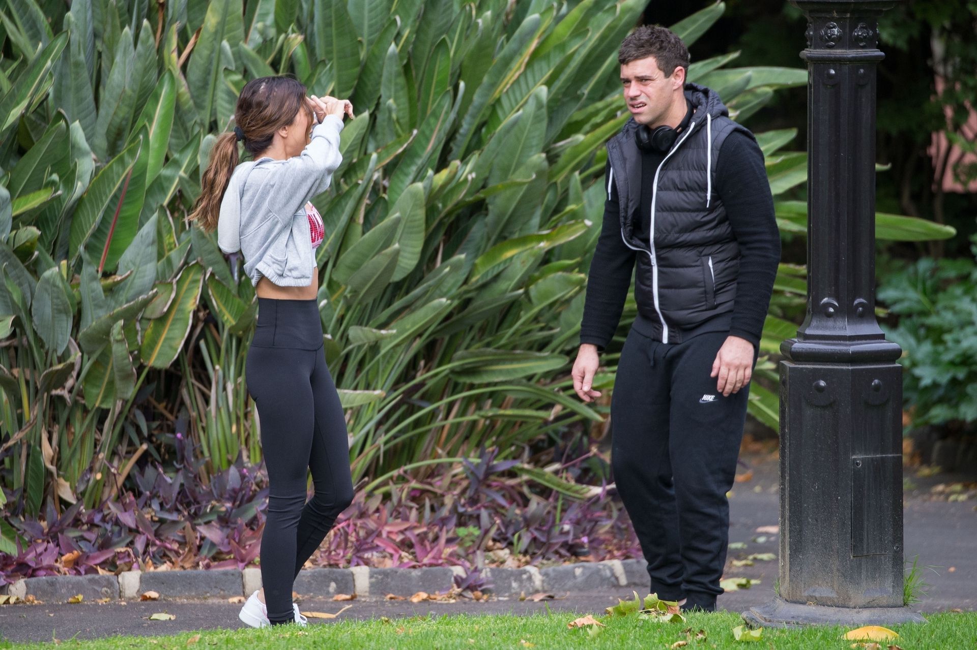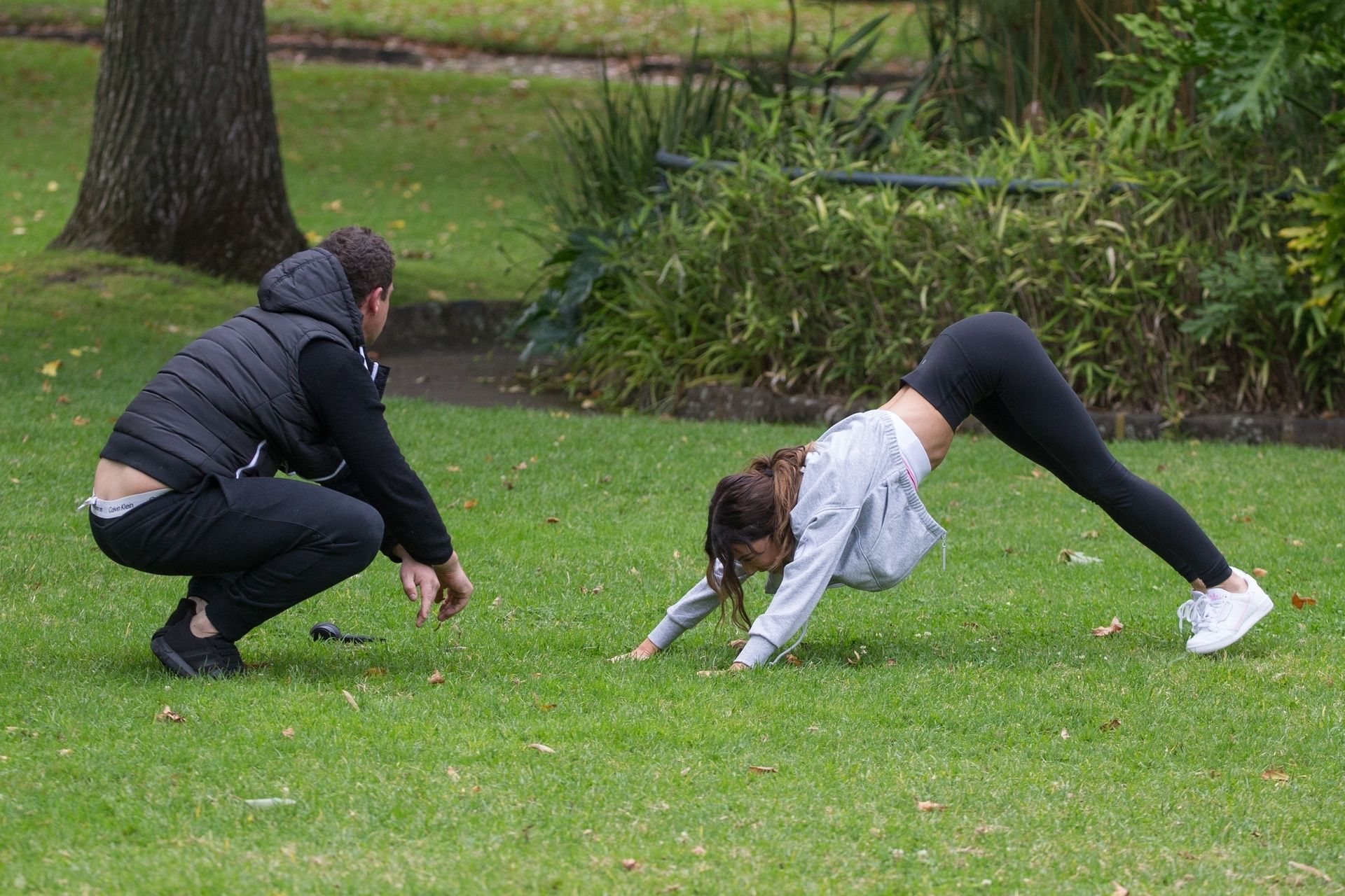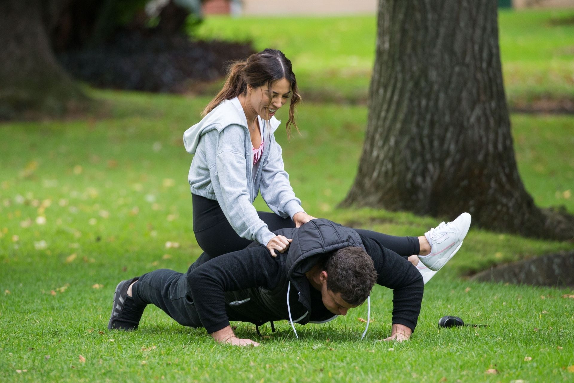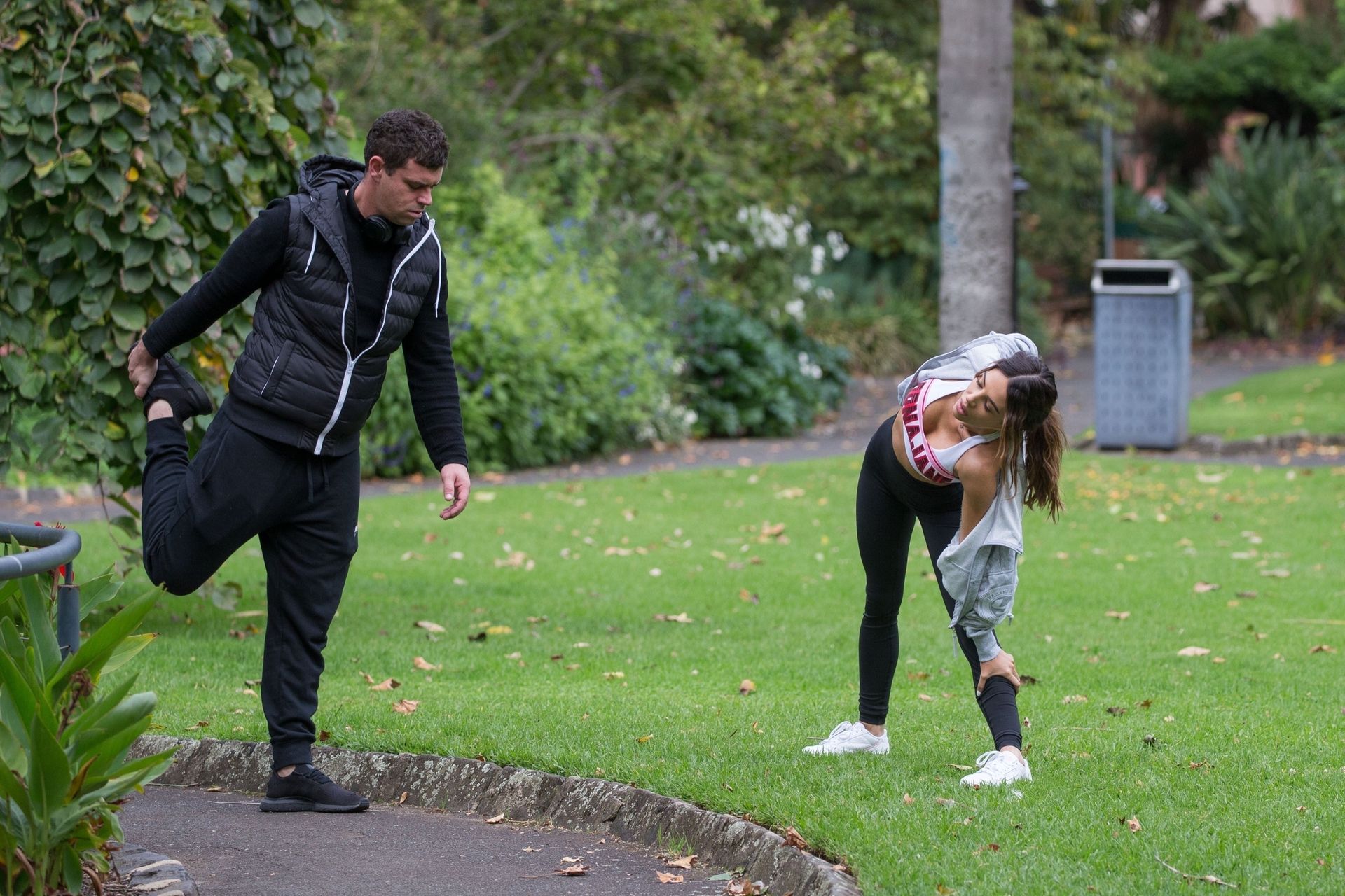 Kasey KC Osborne and Michael from MAFS were seen visiting a local park for some exercise in Melbourne, 04/13/2020. The pair were seen stretching and running around the park before stopping to do some squats, pushups and star jumps. After their work out, KC was seen sitting on Michael’s back as he did some pushups, with KC tumbling off onto of him.