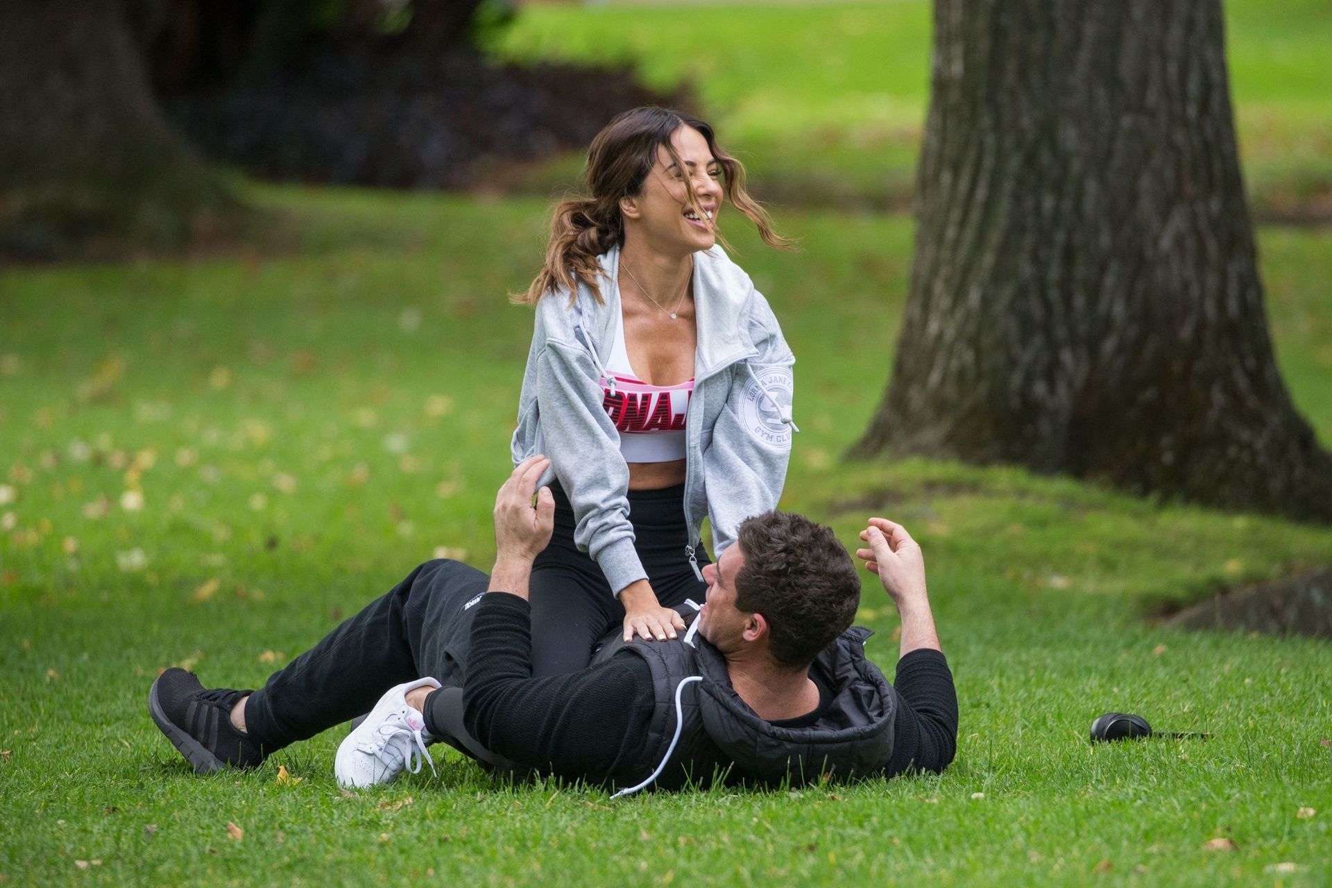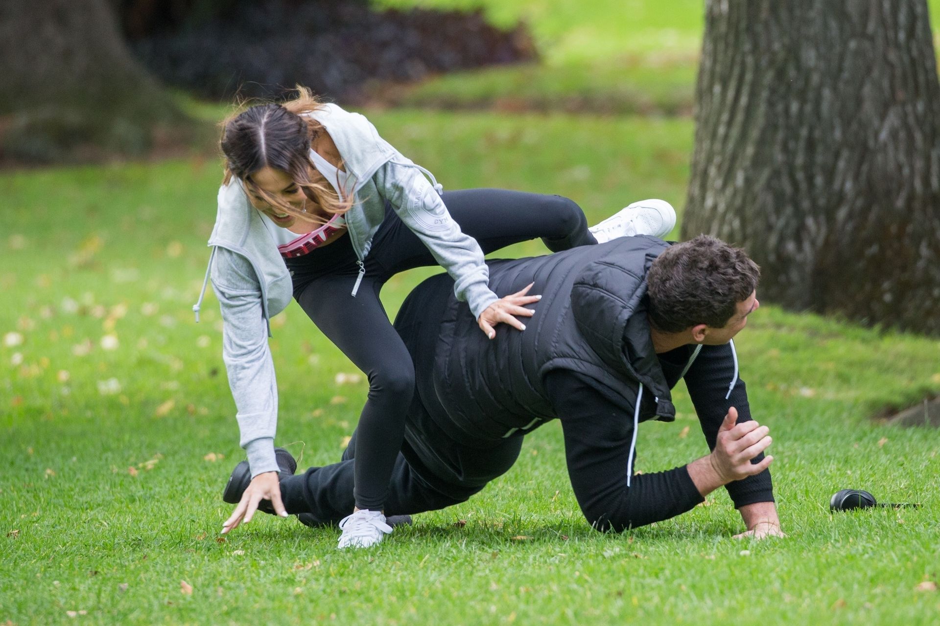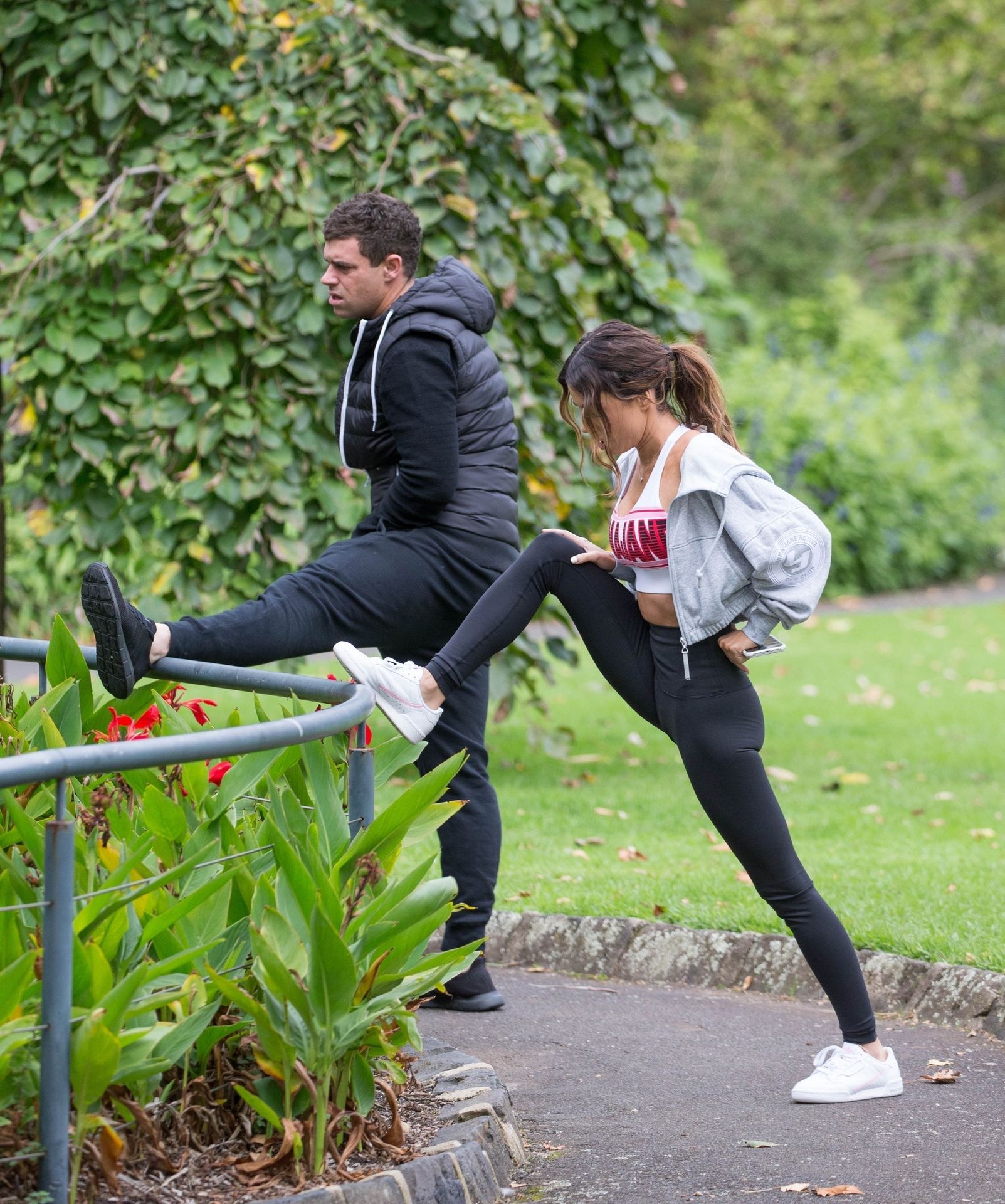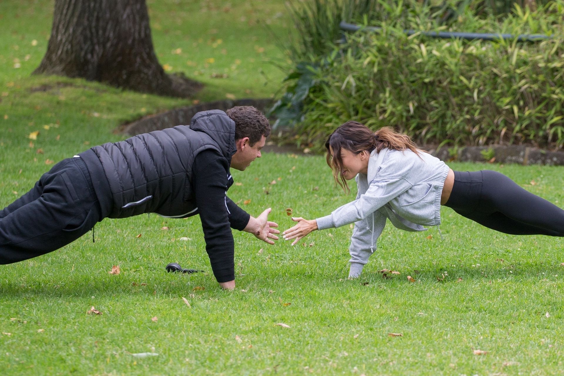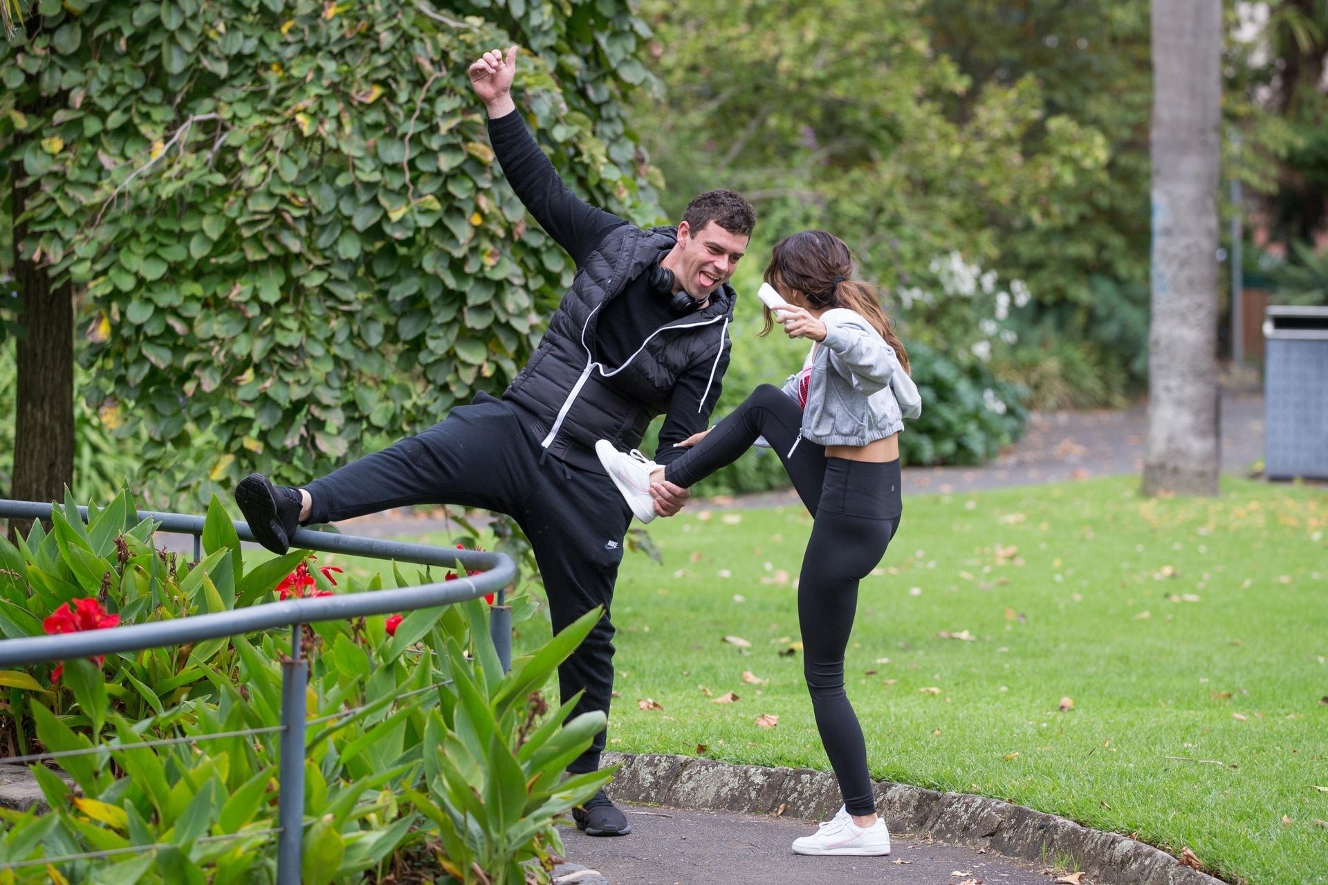Kasey KC Osborne and Michael from MAFS were seen visiting a local park for some exercise in Melbourne, 04/13/2020. The pair were seen stretching and running around the park before stopping to do some squats, pushups and star jumps. After their work out, KC was seen sitting on Michael’s back as he did some pushups, with KC tumbling off onto of him.