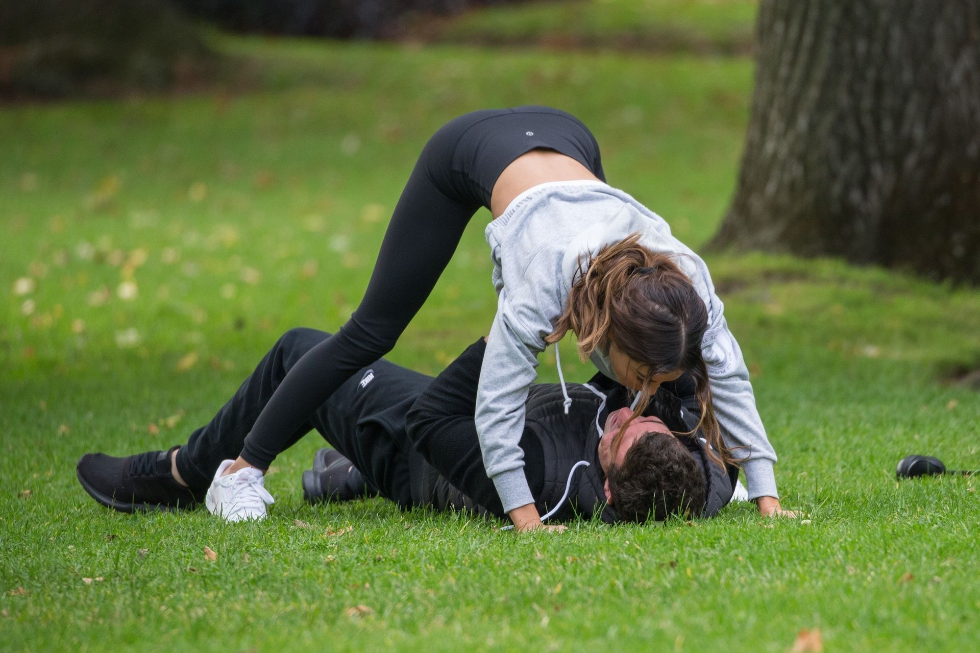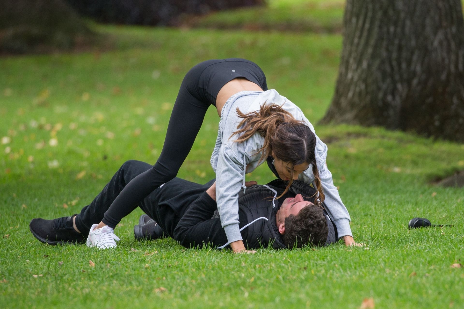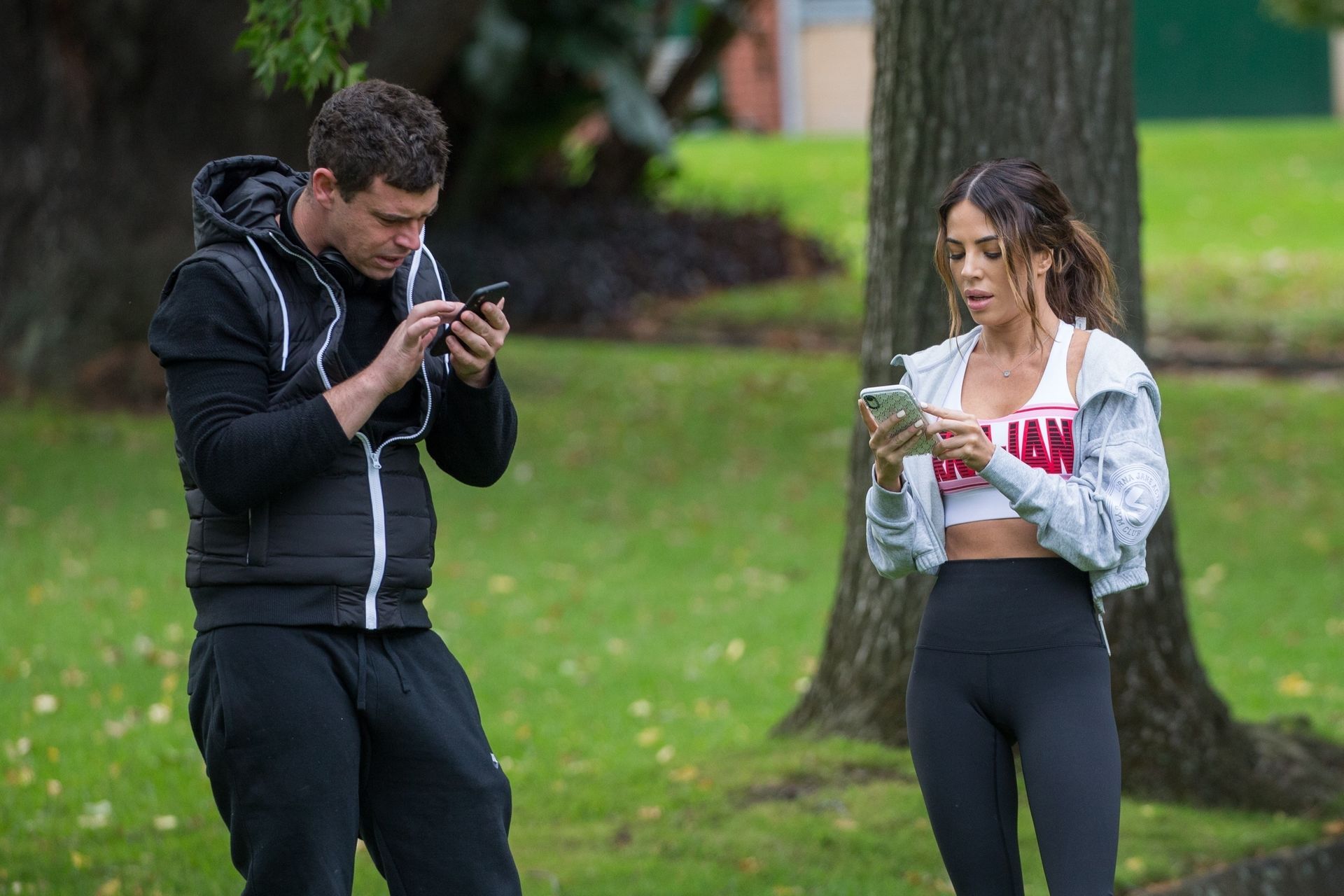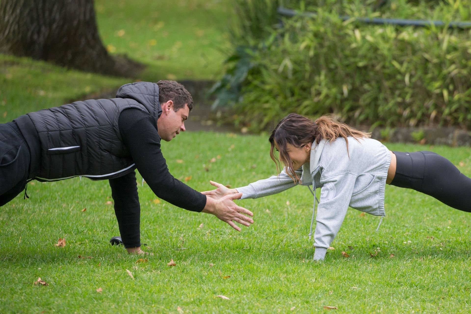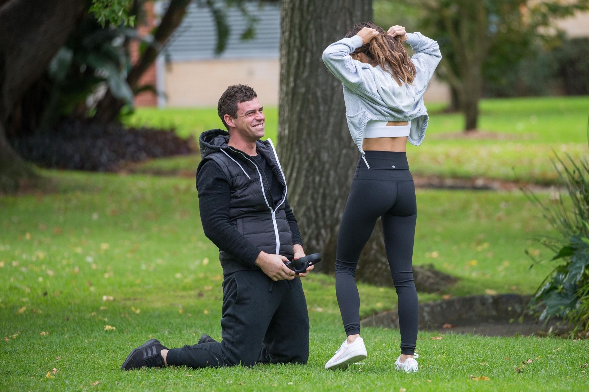 Kasey KC Osborne and Michael from MAFS were seen visiting a local park for some exercise in Melbourne, 04/13/2020. The pair were seen stretching and running around the park before stopping to do some squats, pushups and star jumps. After their work out, KC was seen sitting on Michael’s back as he did some pushups, with KC tumbling off onto of him.