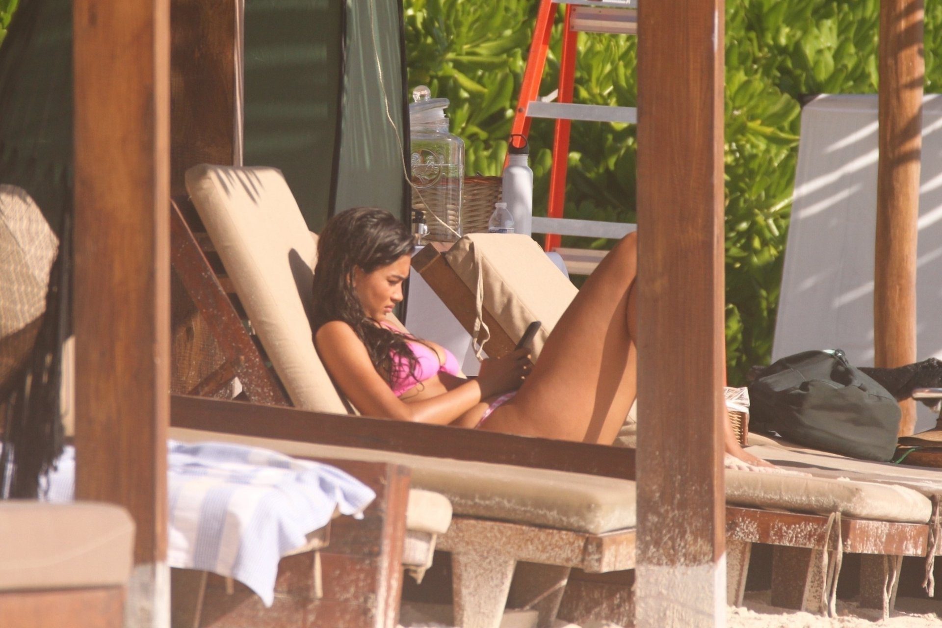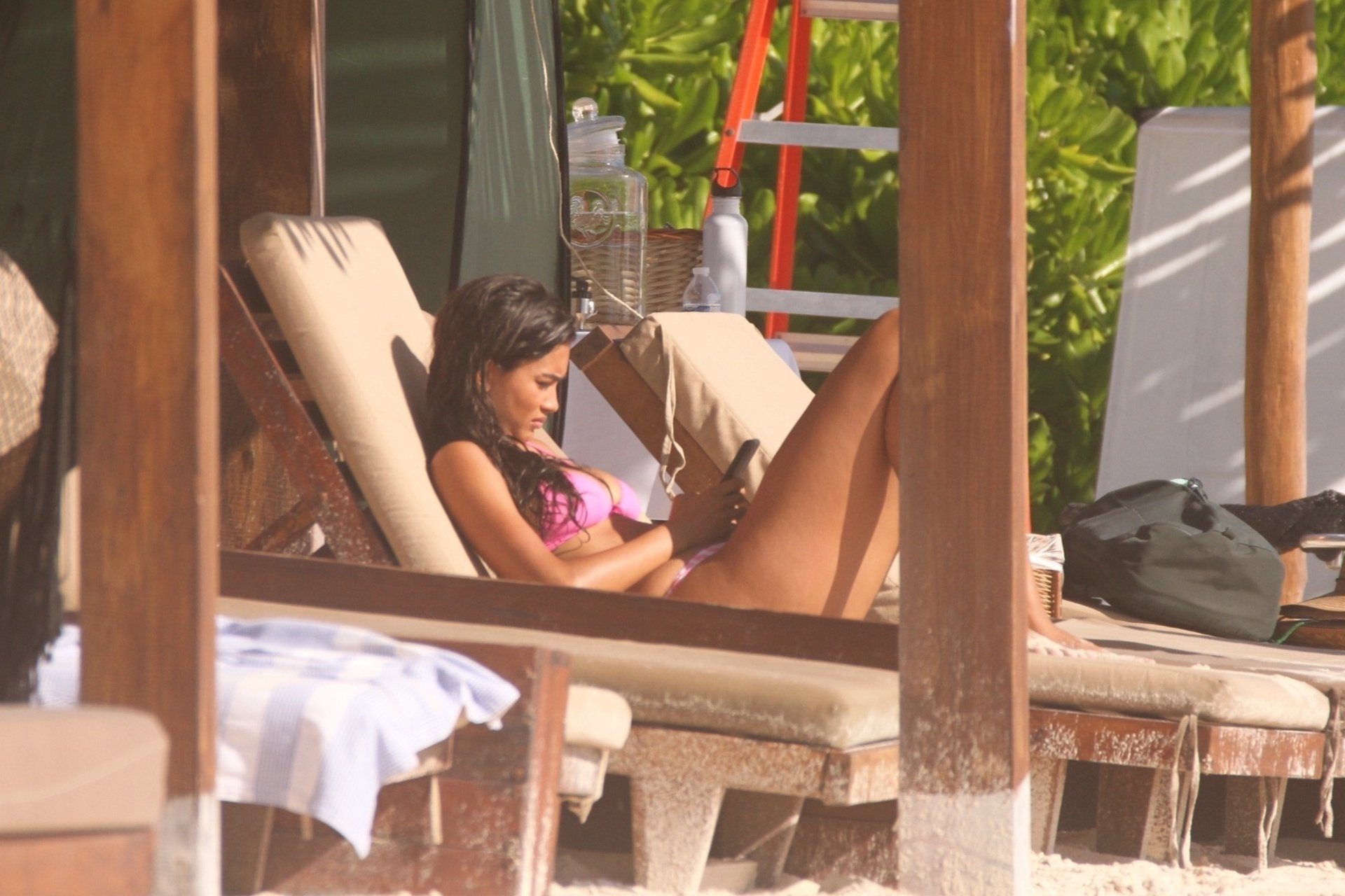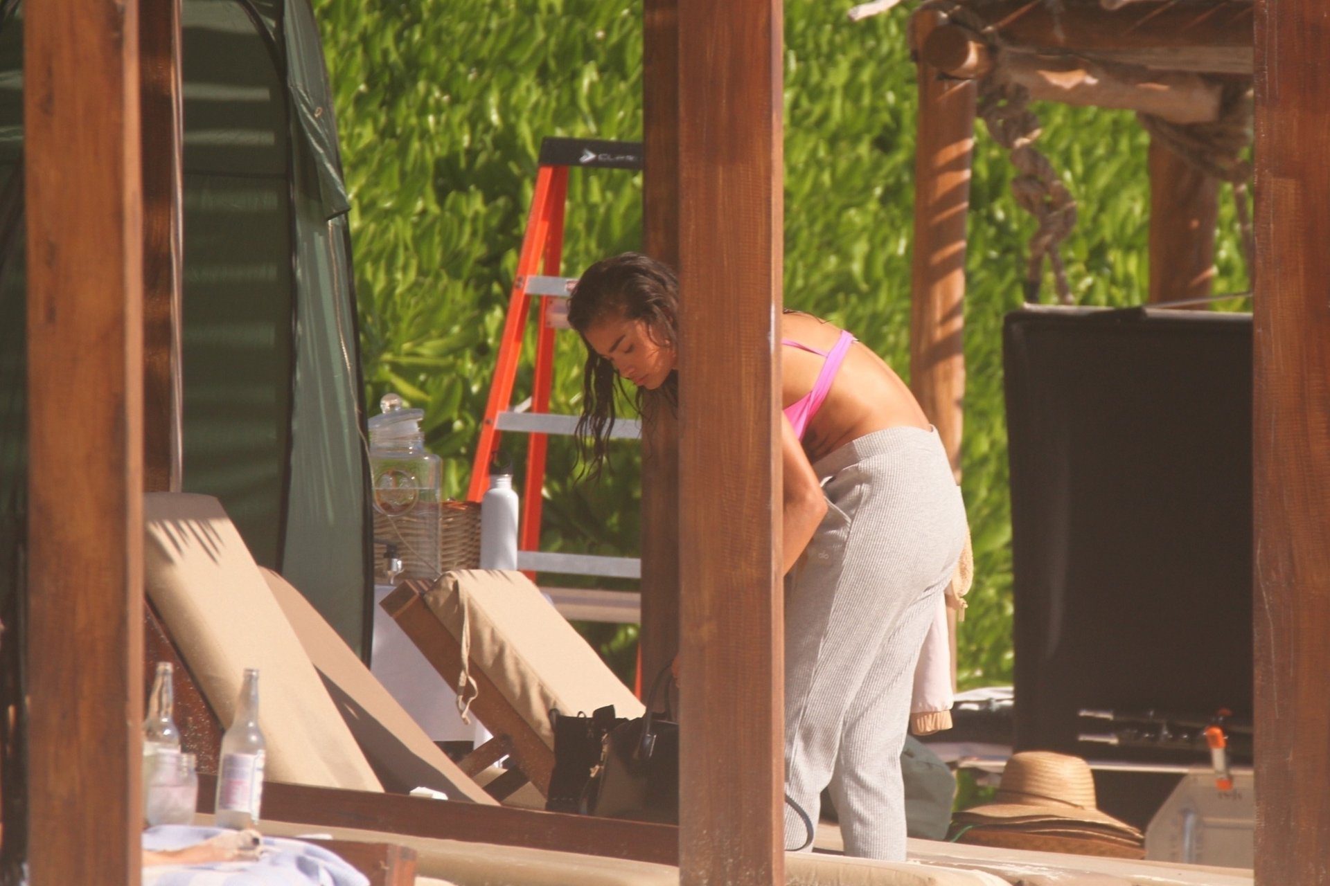 Model Kelly Gale out on the beach relaxing after an early morning photo shoot in Mexico, 12/14/2019.